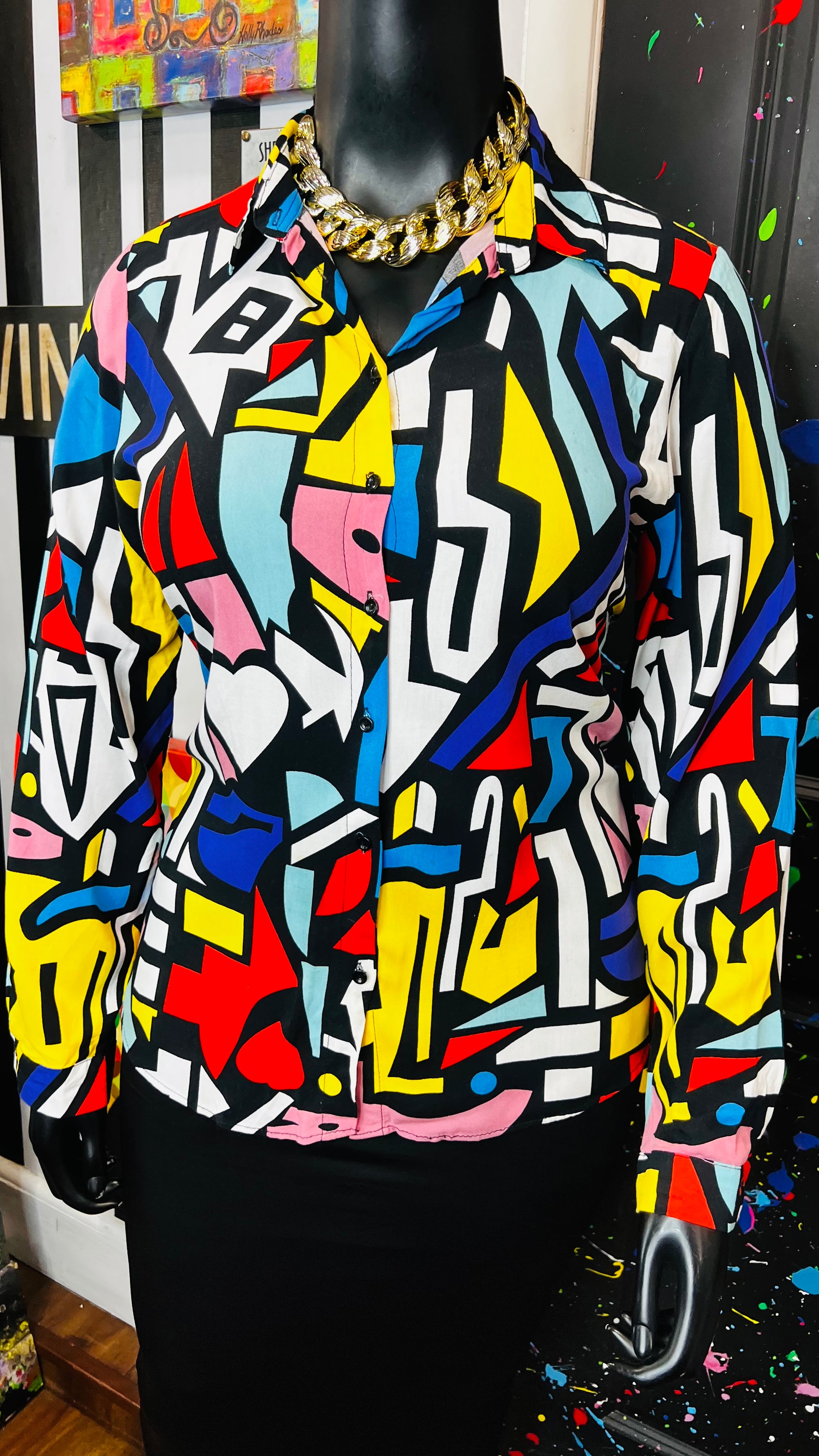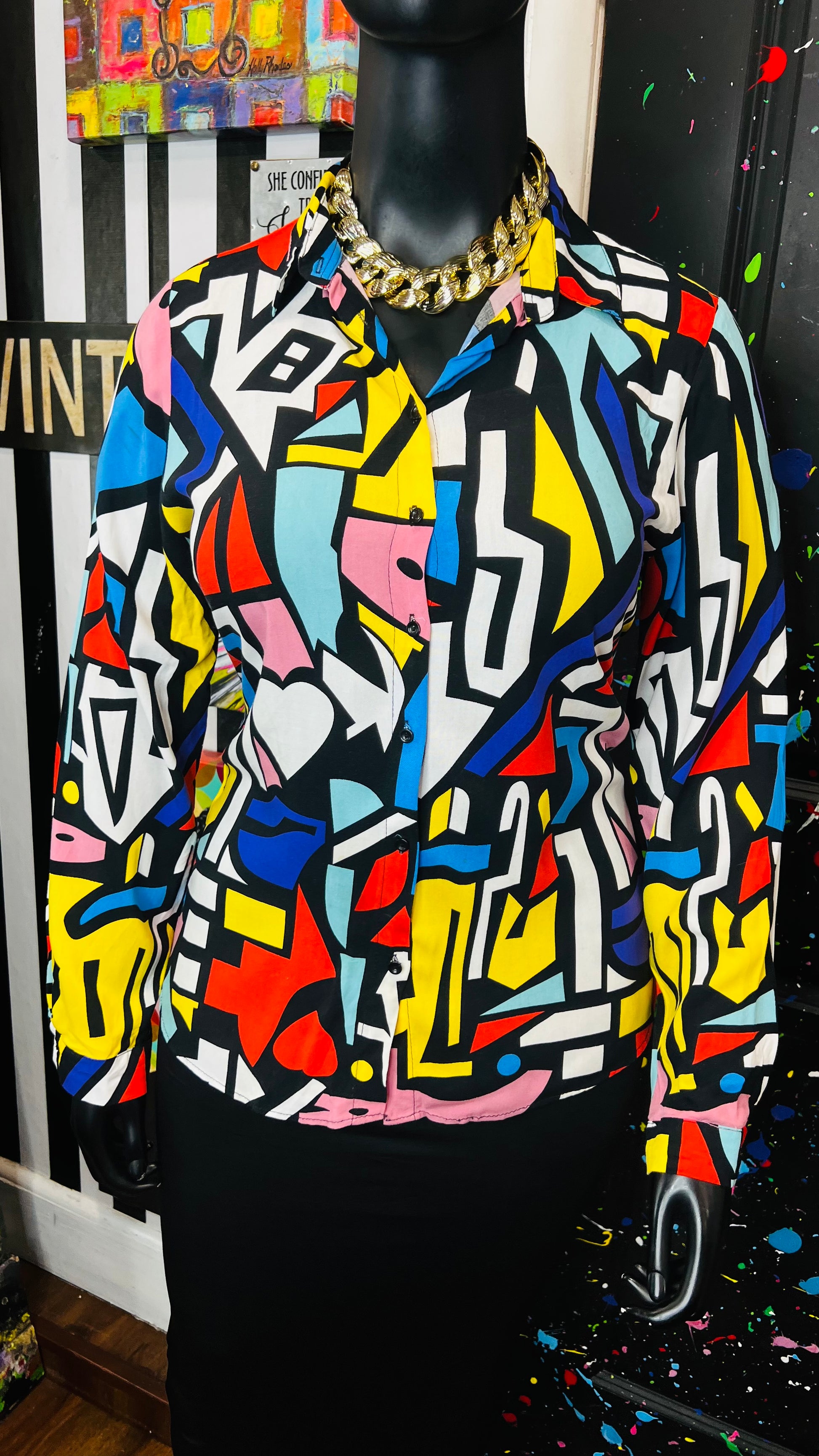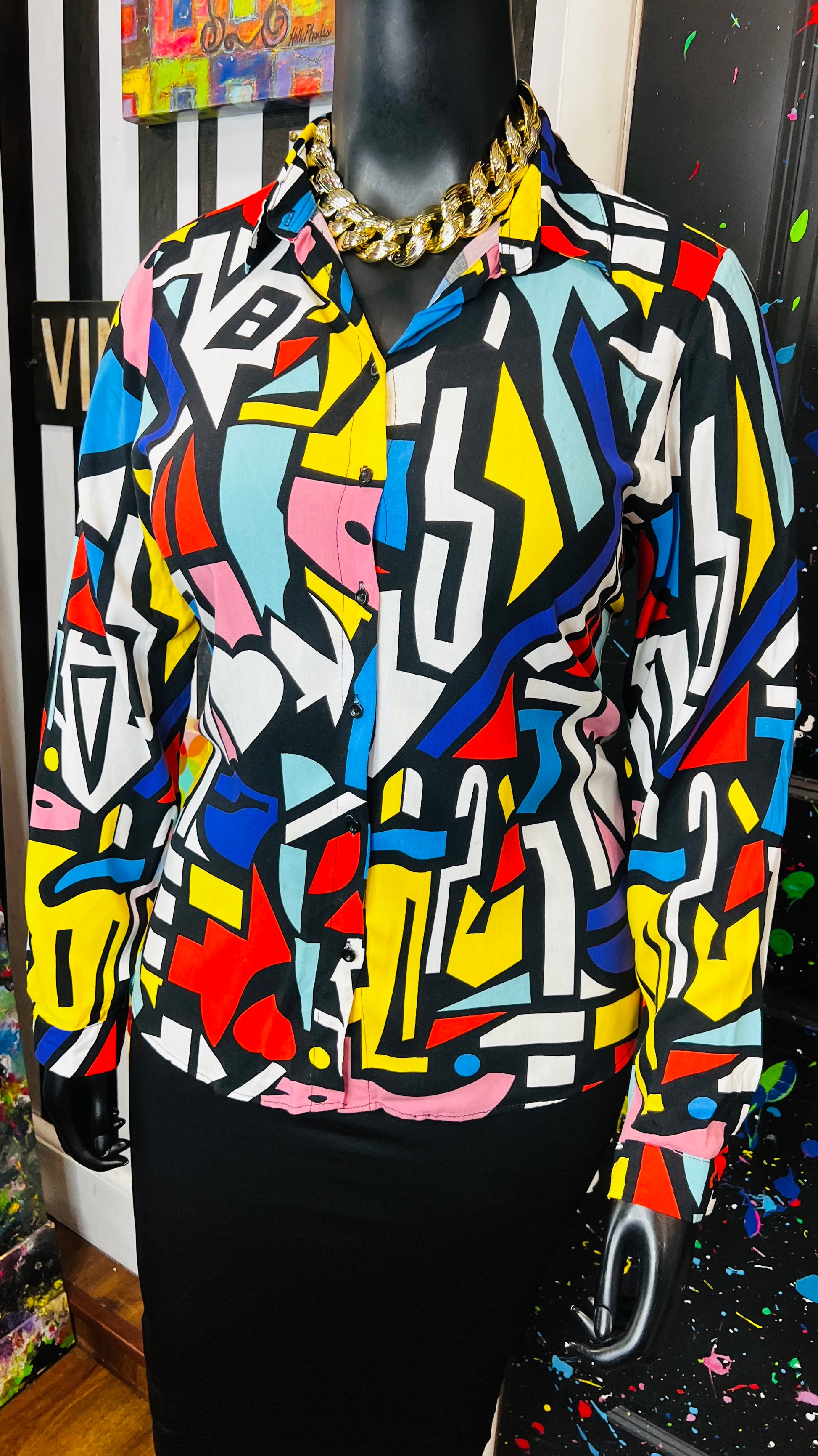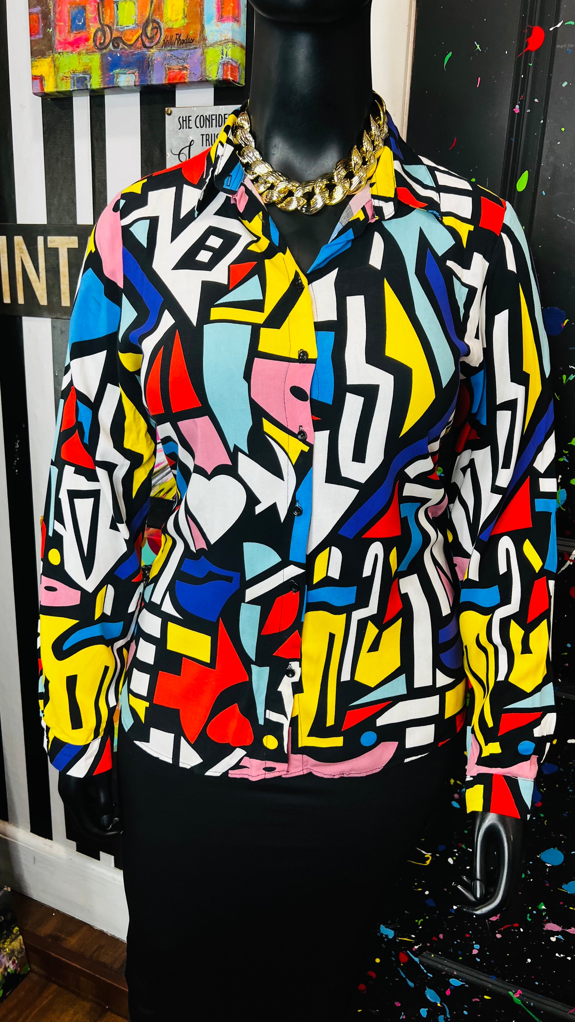 Abstract Colorblock Rayon Blouse (14)