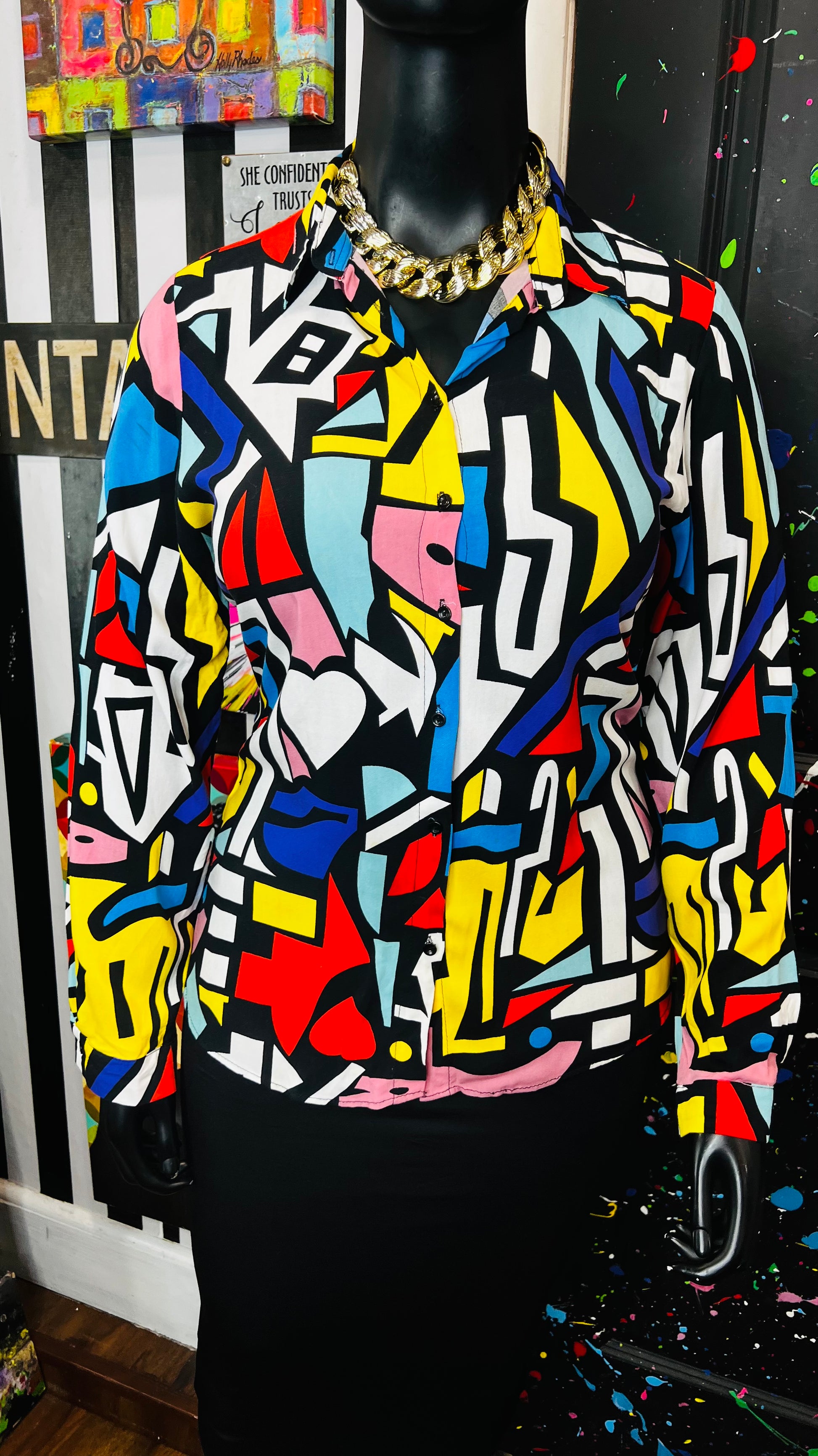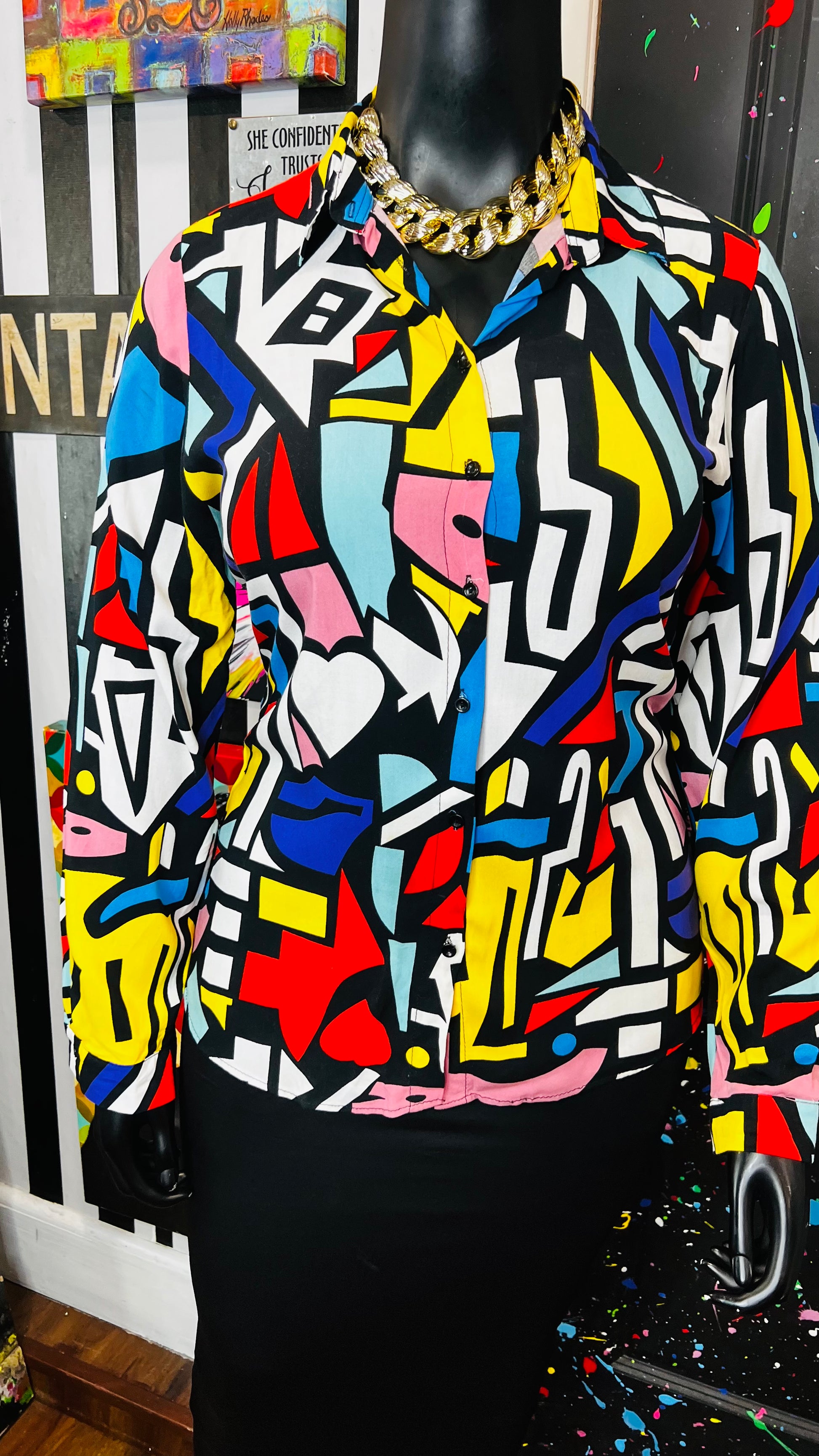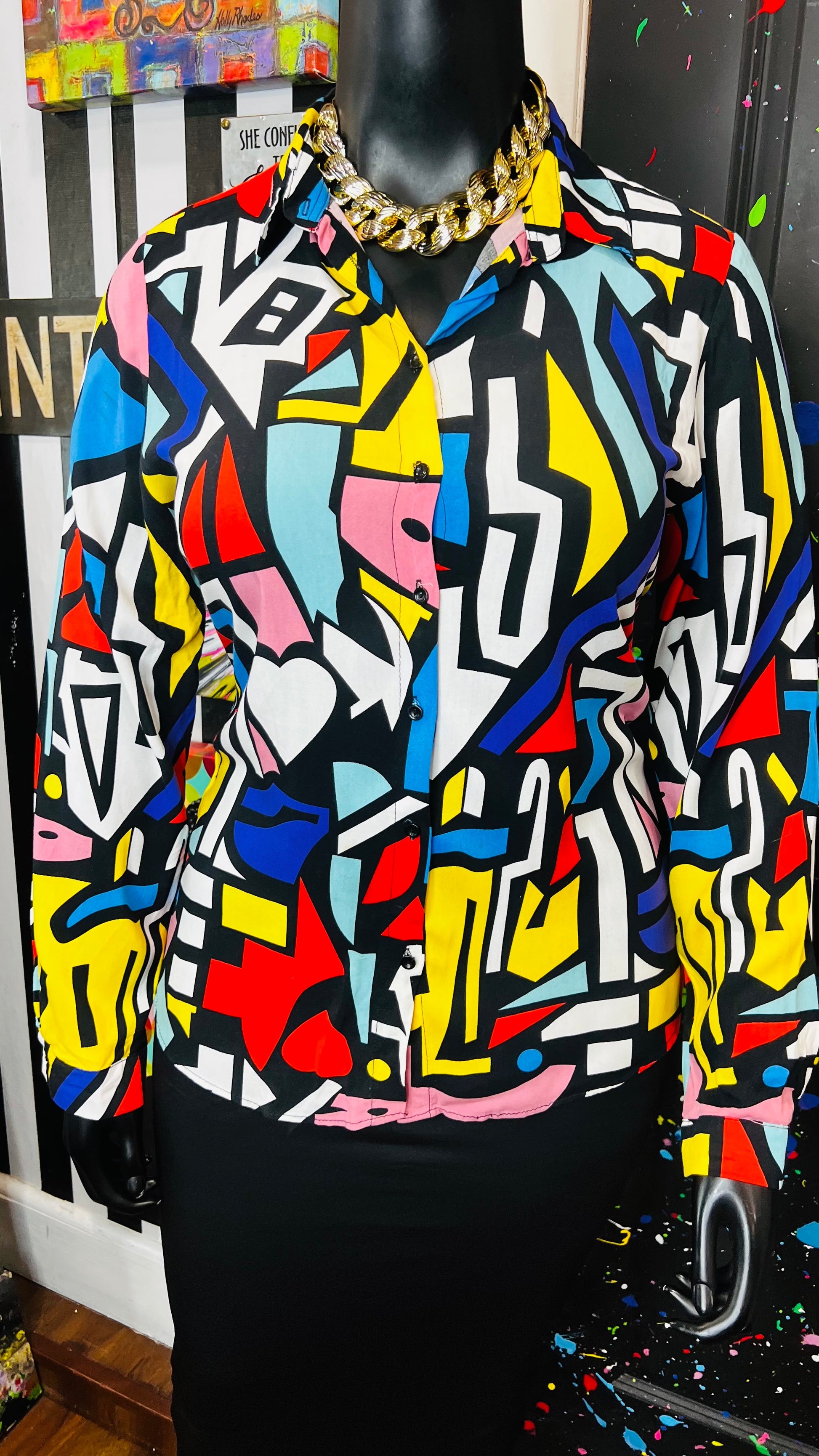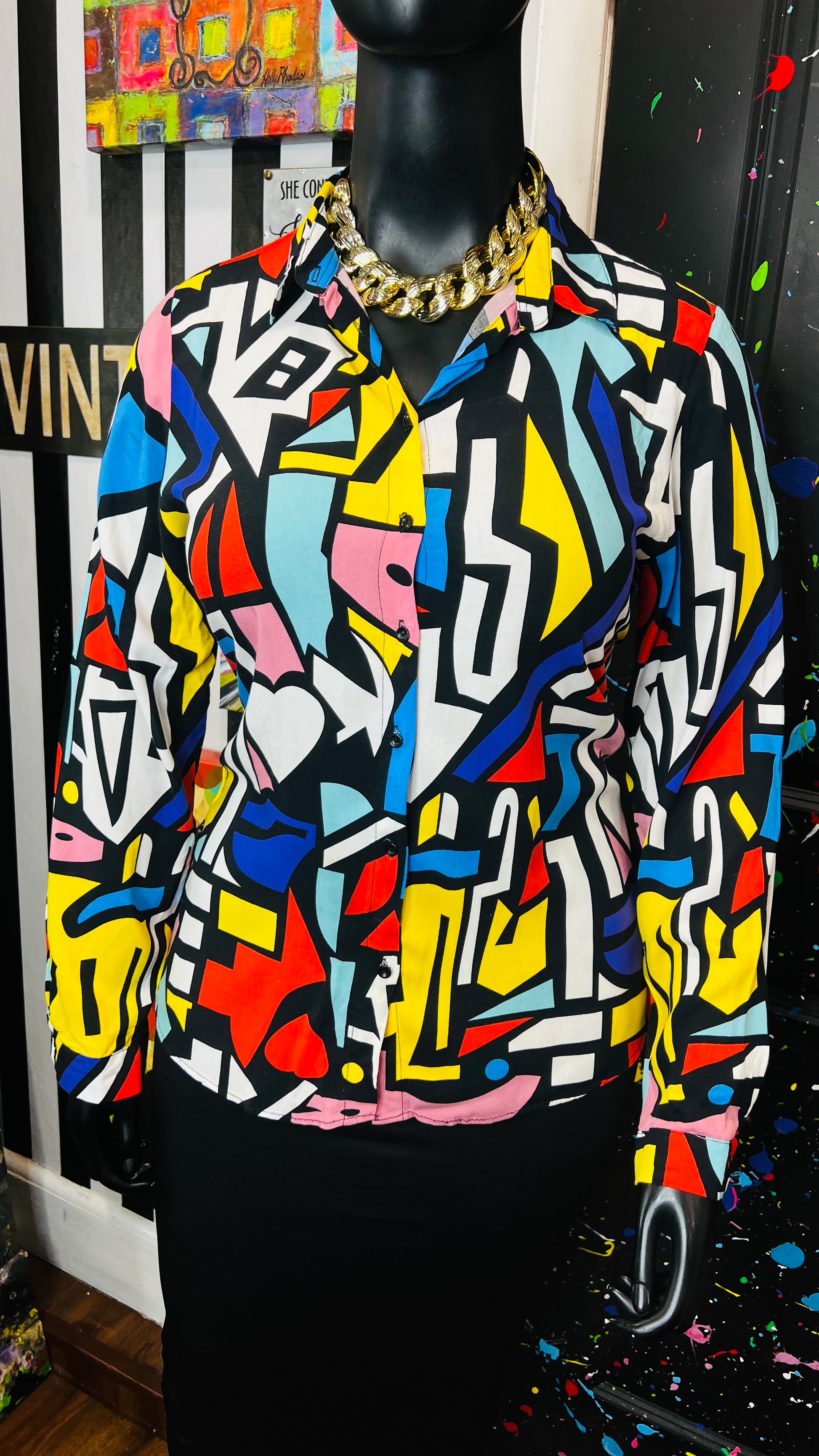 Abstract Colorblock Rayon Blouse (14)