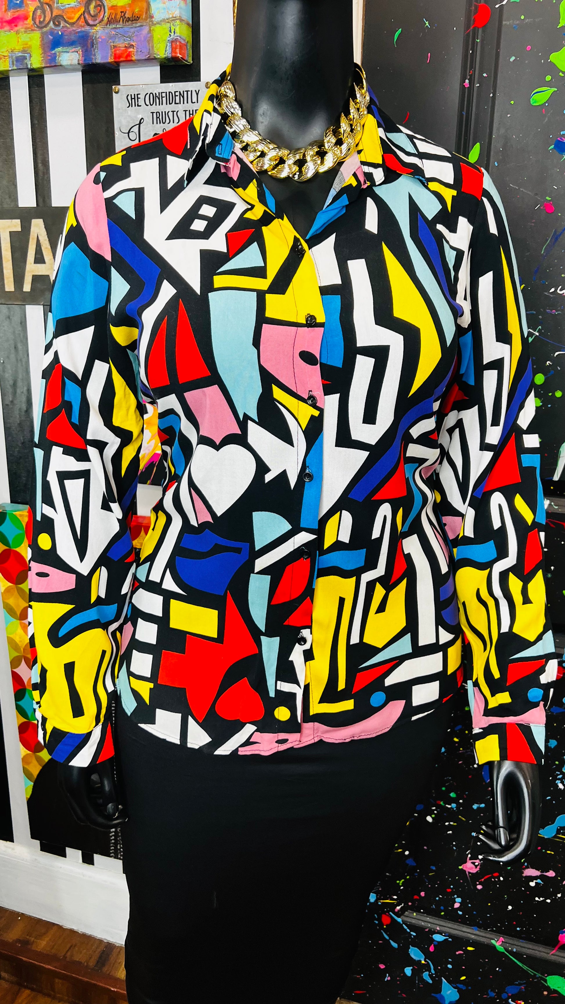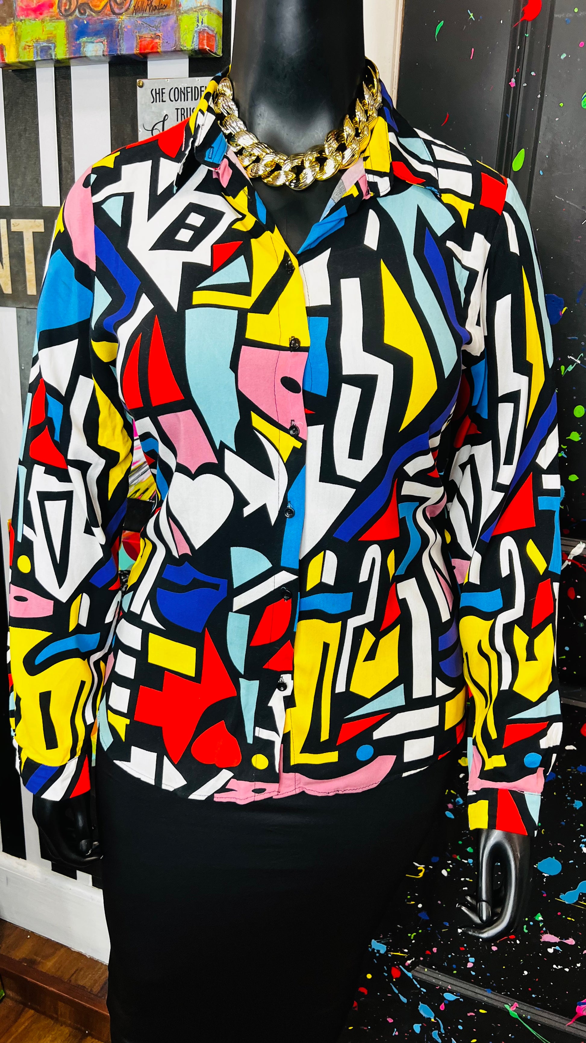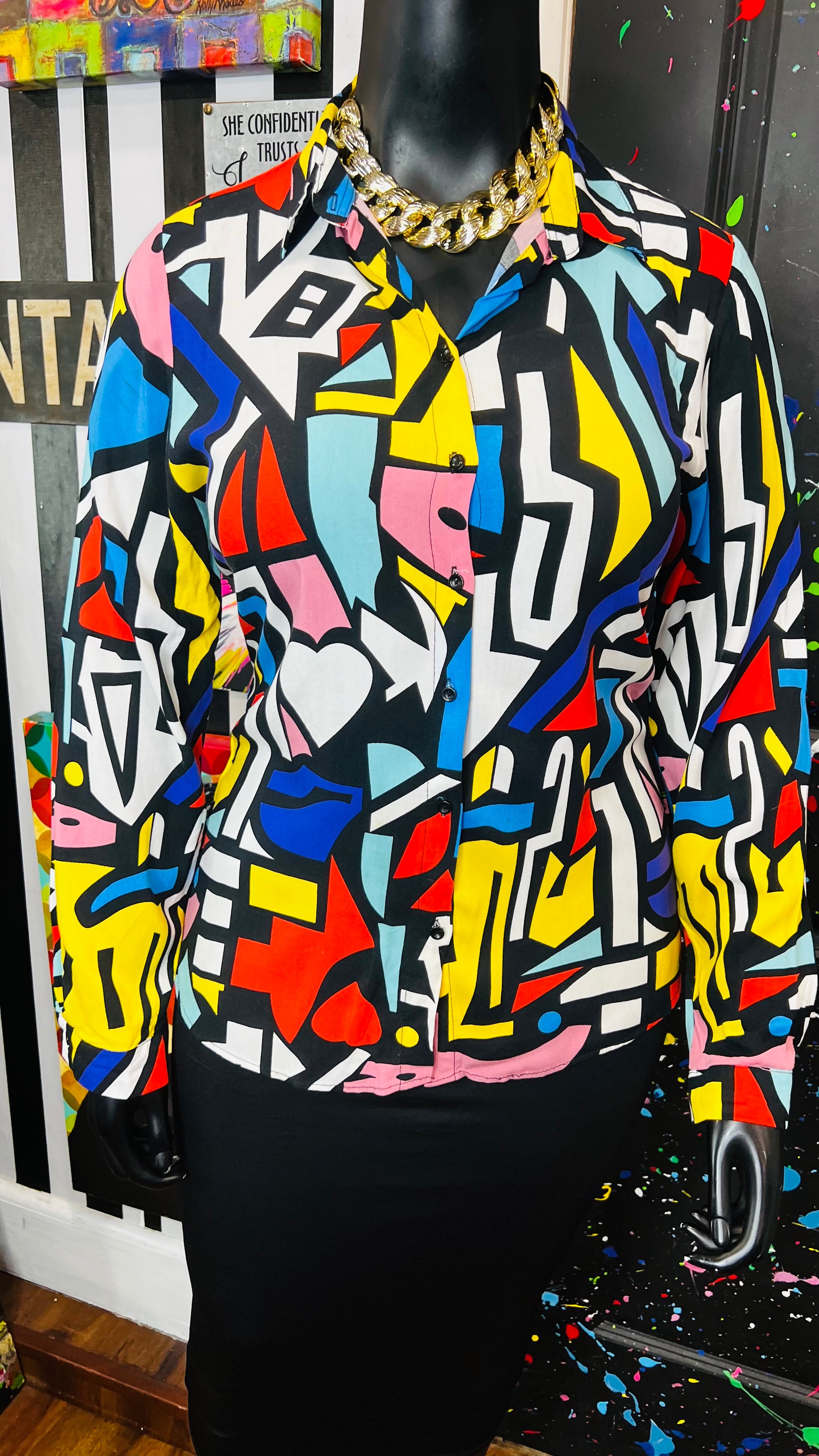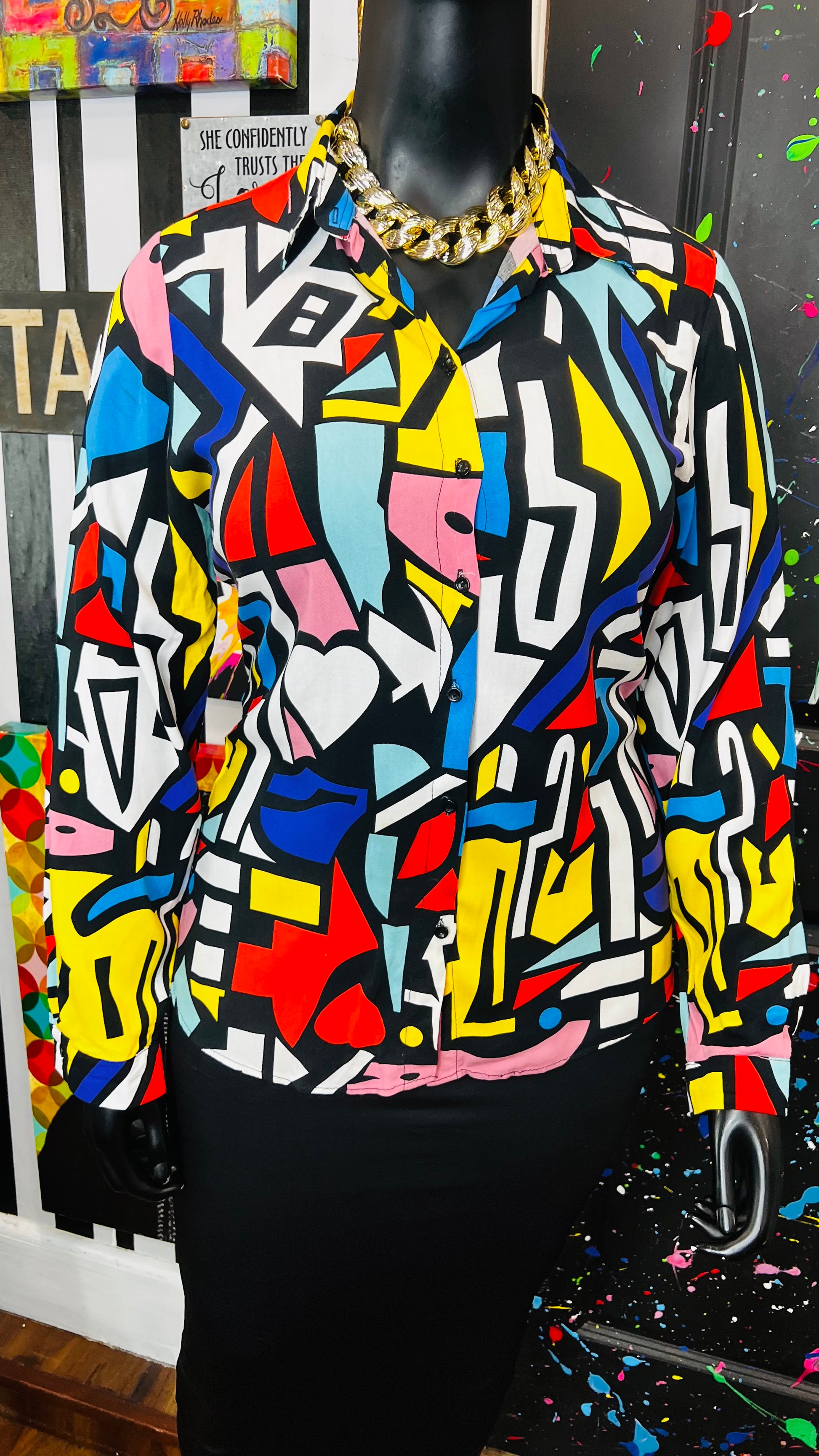 Abstract Colorblock Rayon Blouse (14)