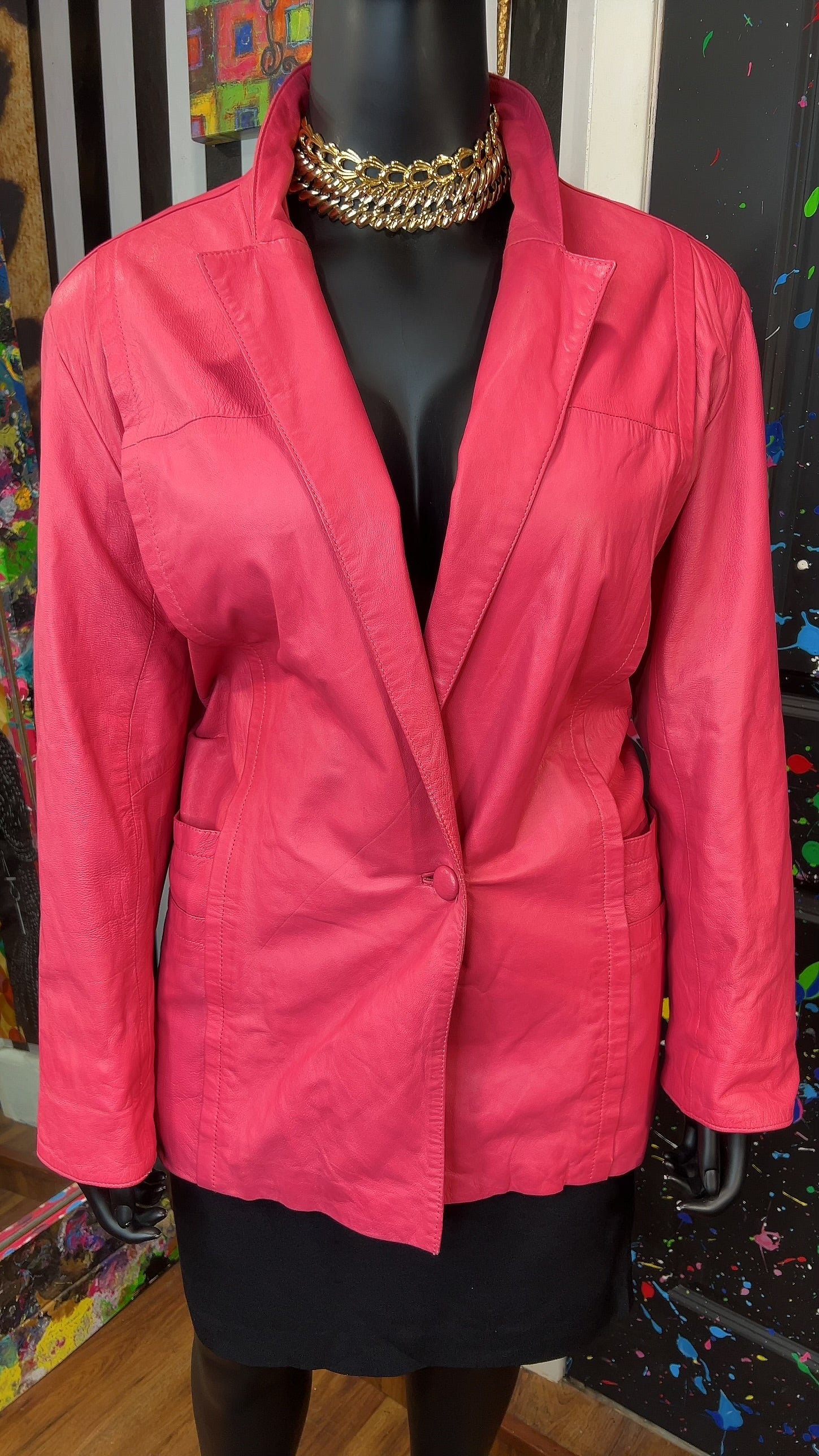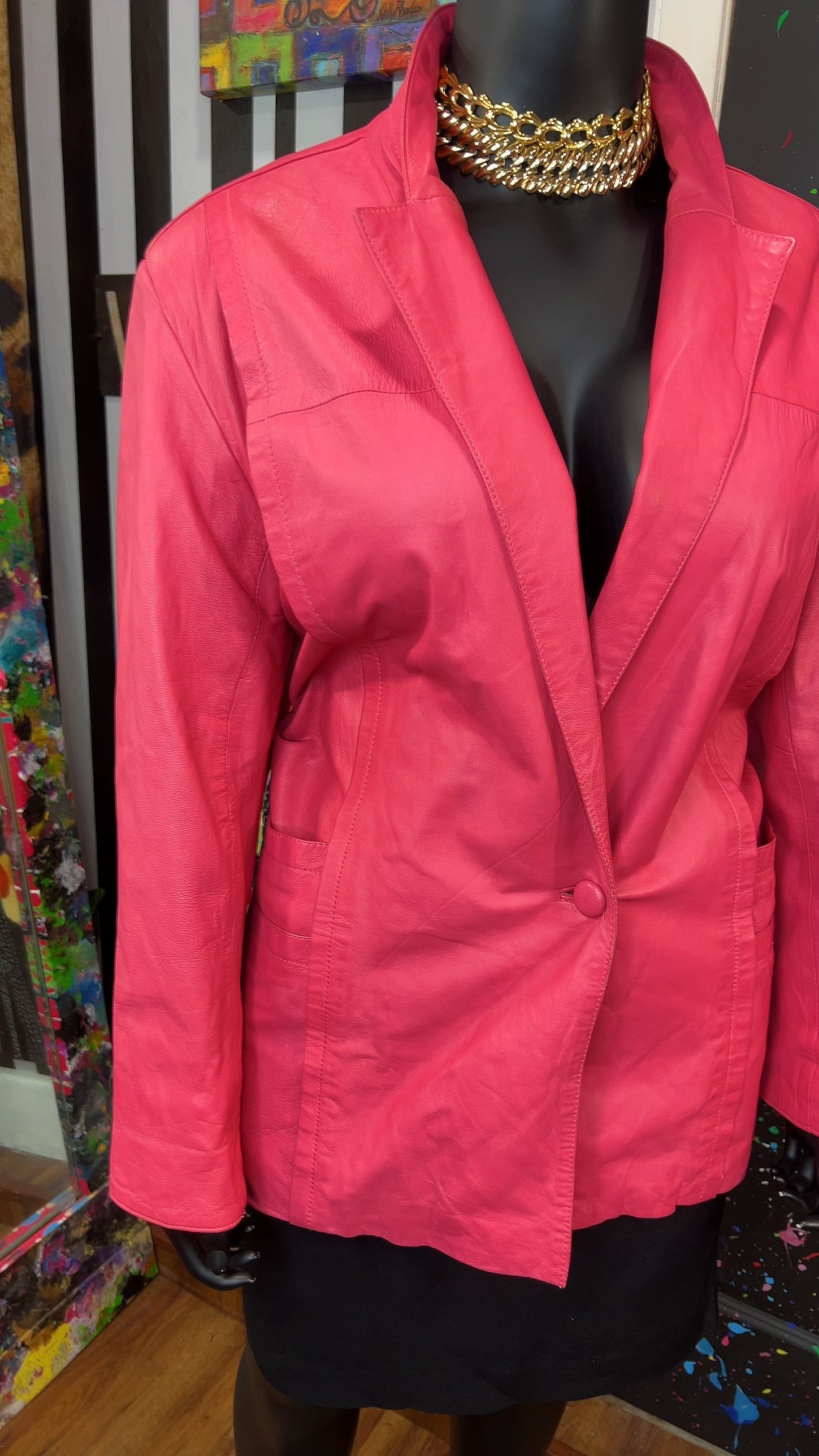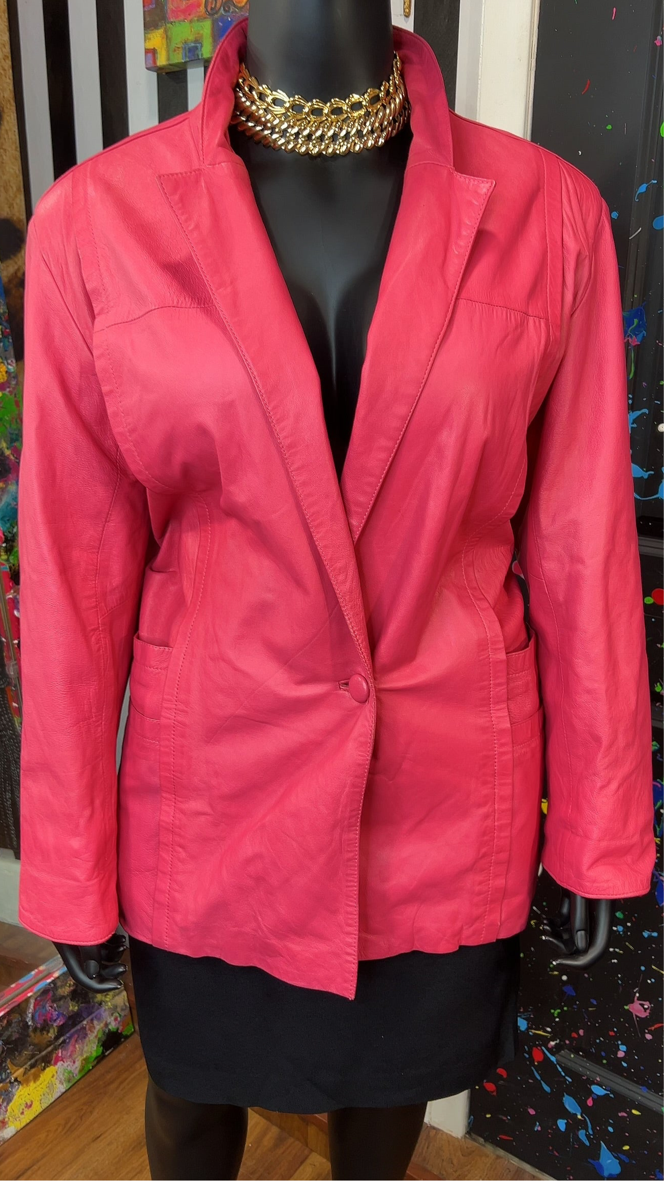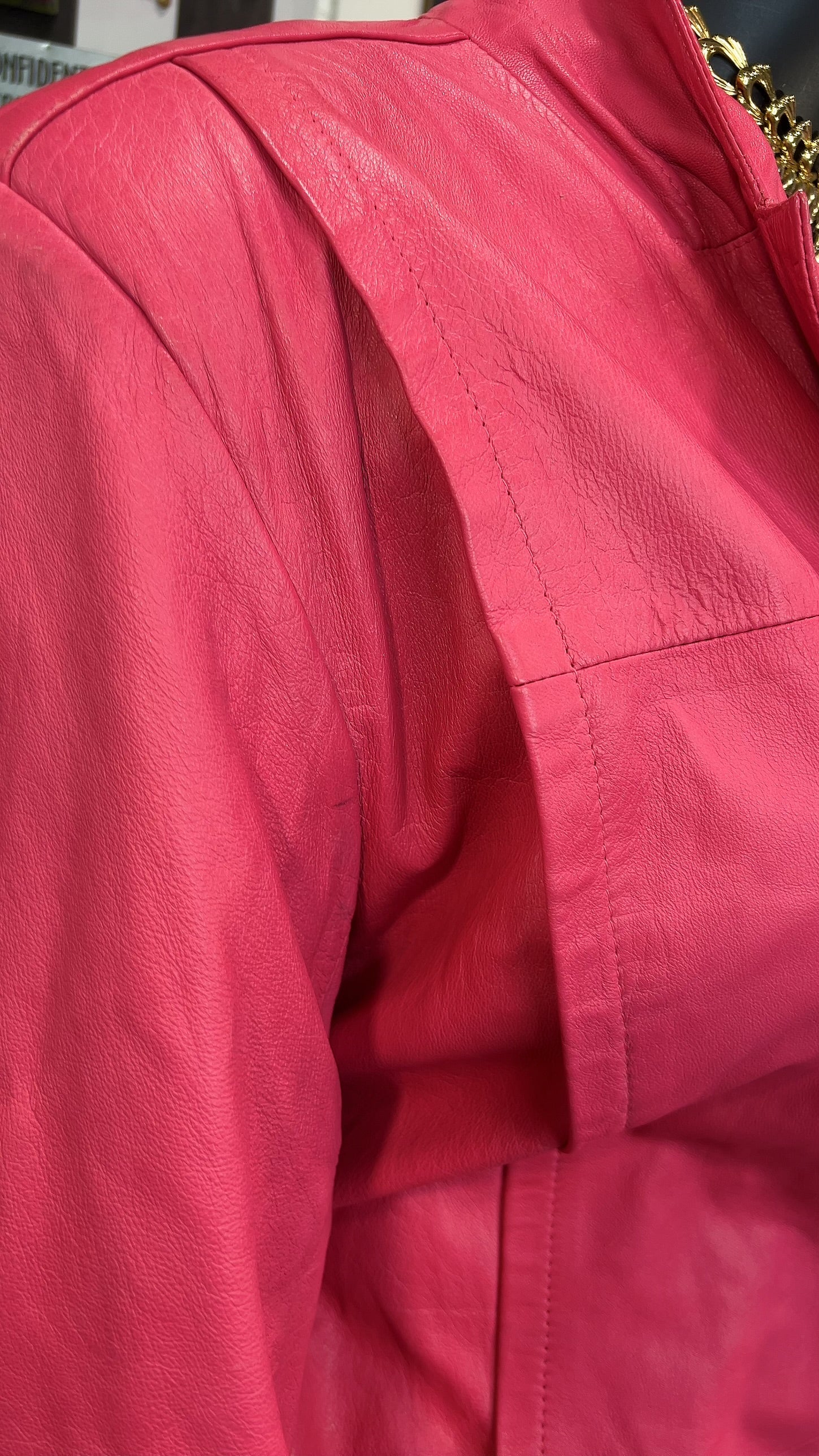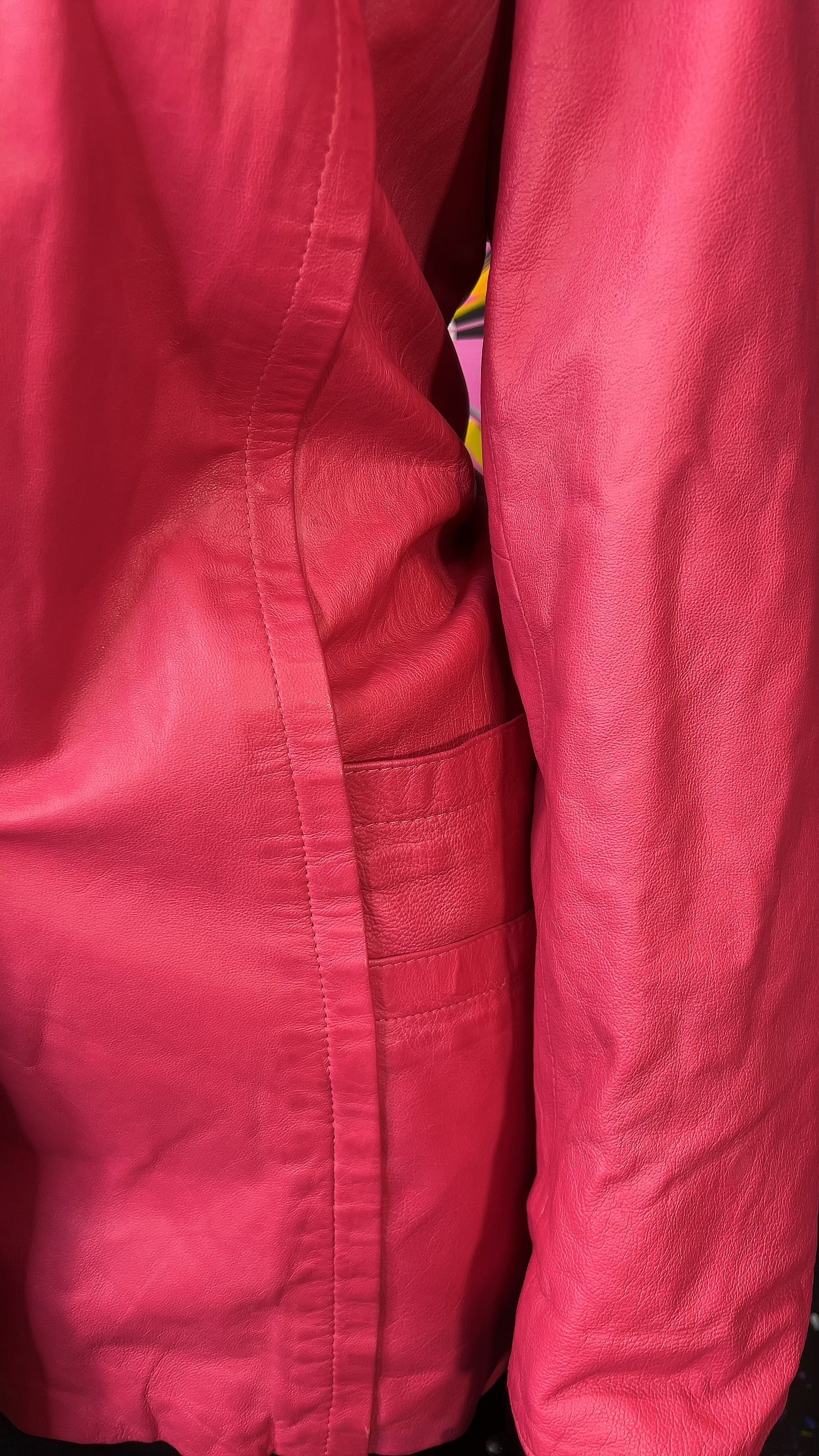 Vintage Genuine Leather Pink Blazer Coat (18)