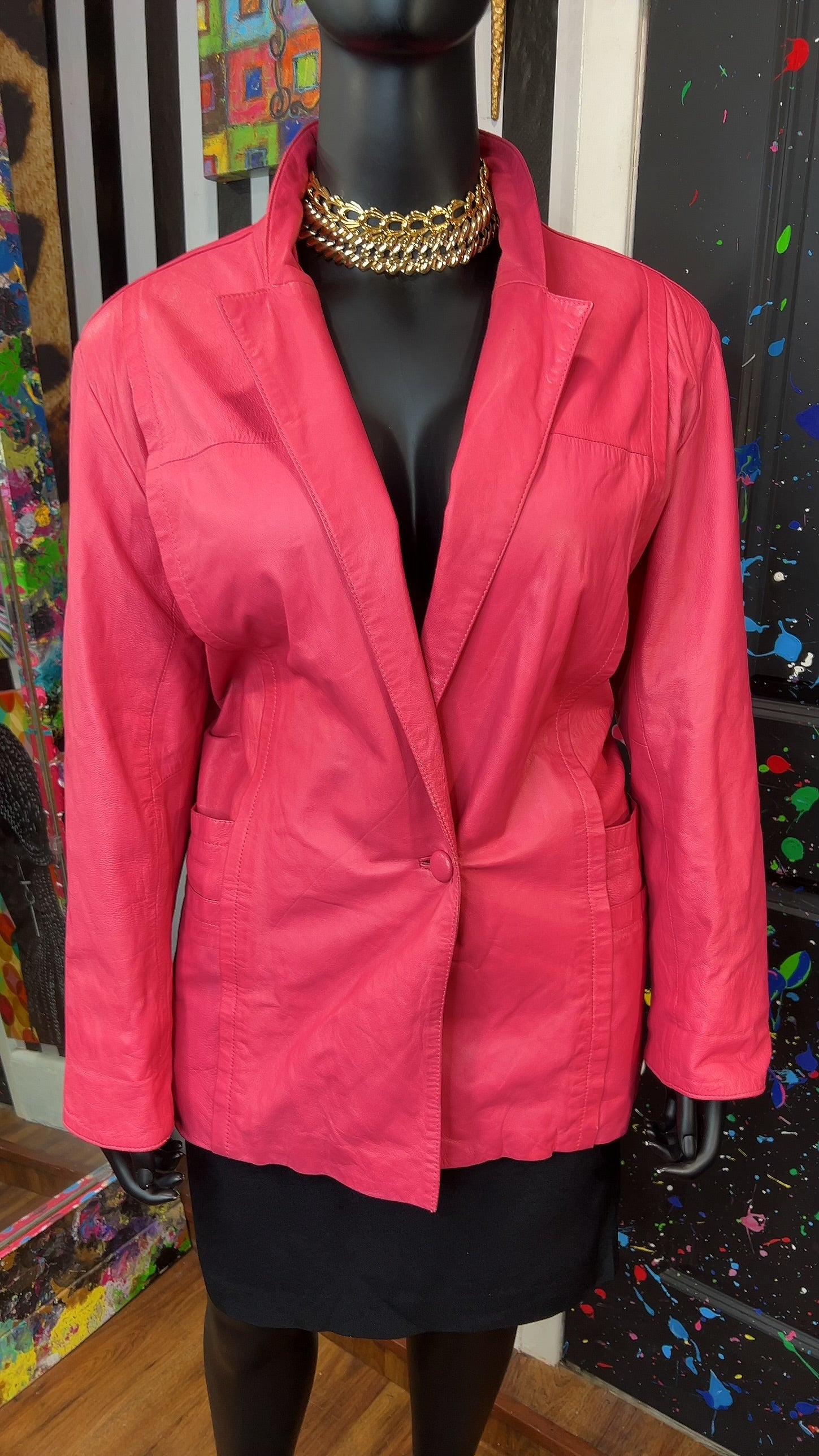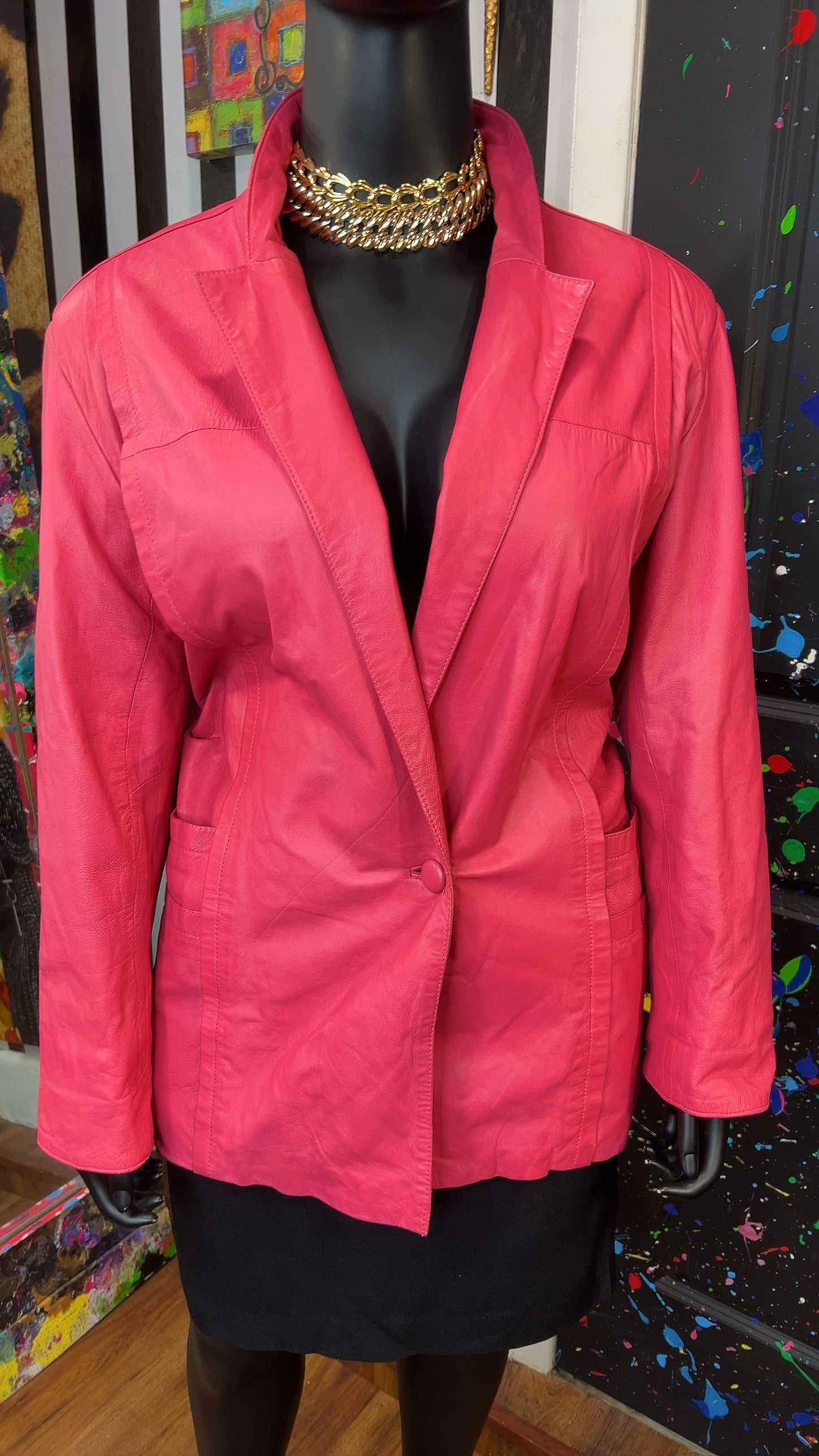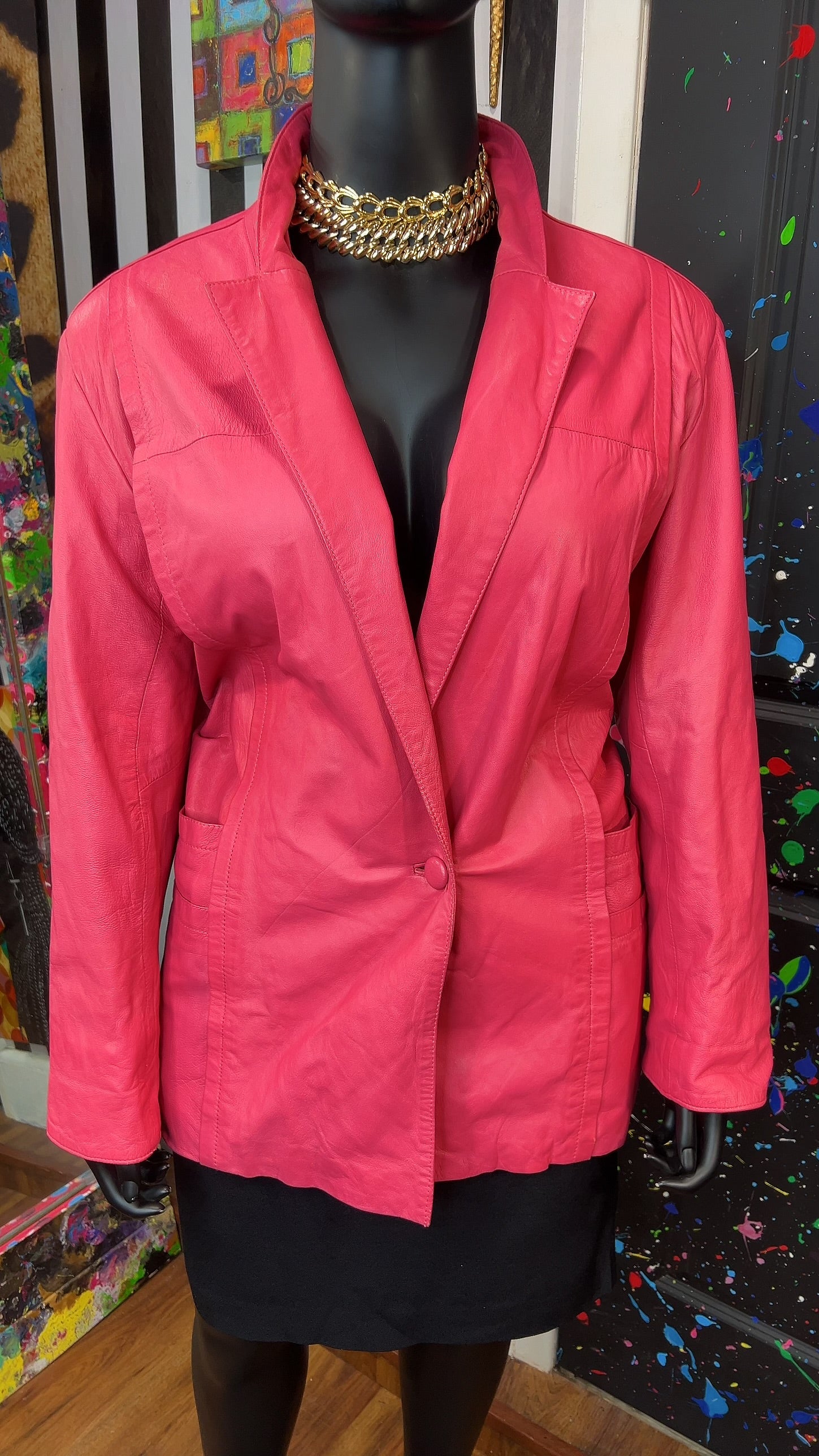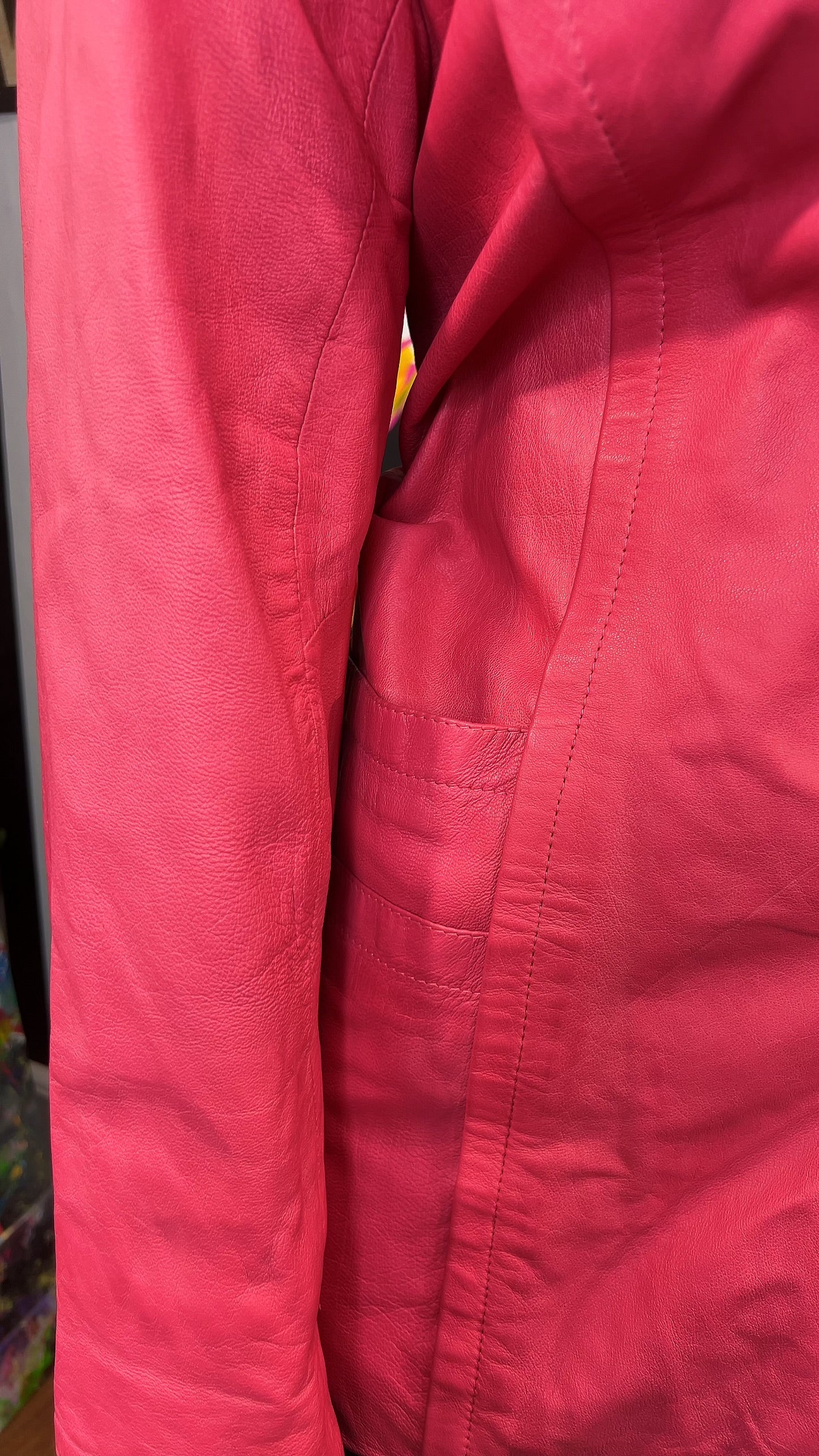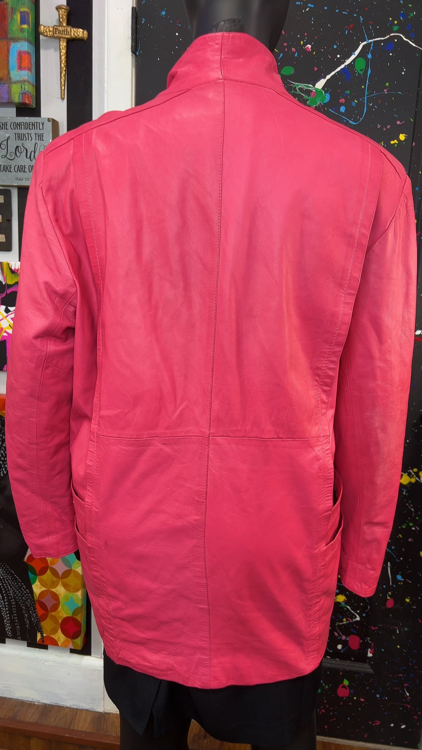 Vintage Genuine Leather Pink Blazer Coat (18)