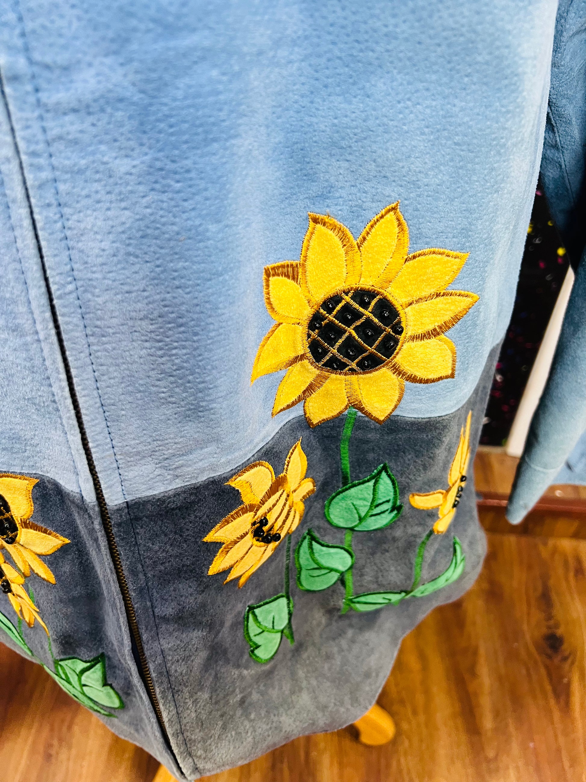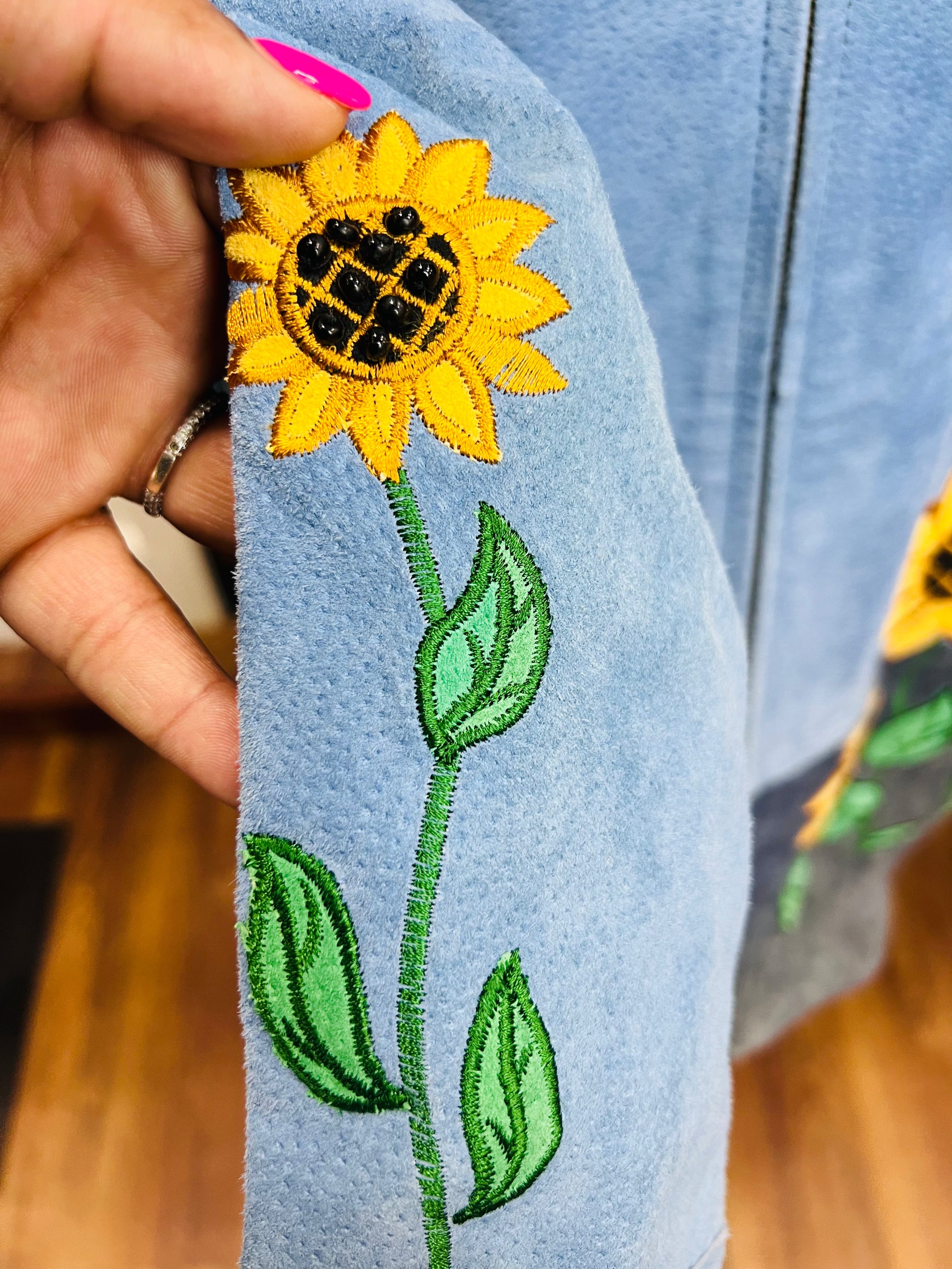 Vintage Suede Genuine Leather Sunflower Jacket (16)