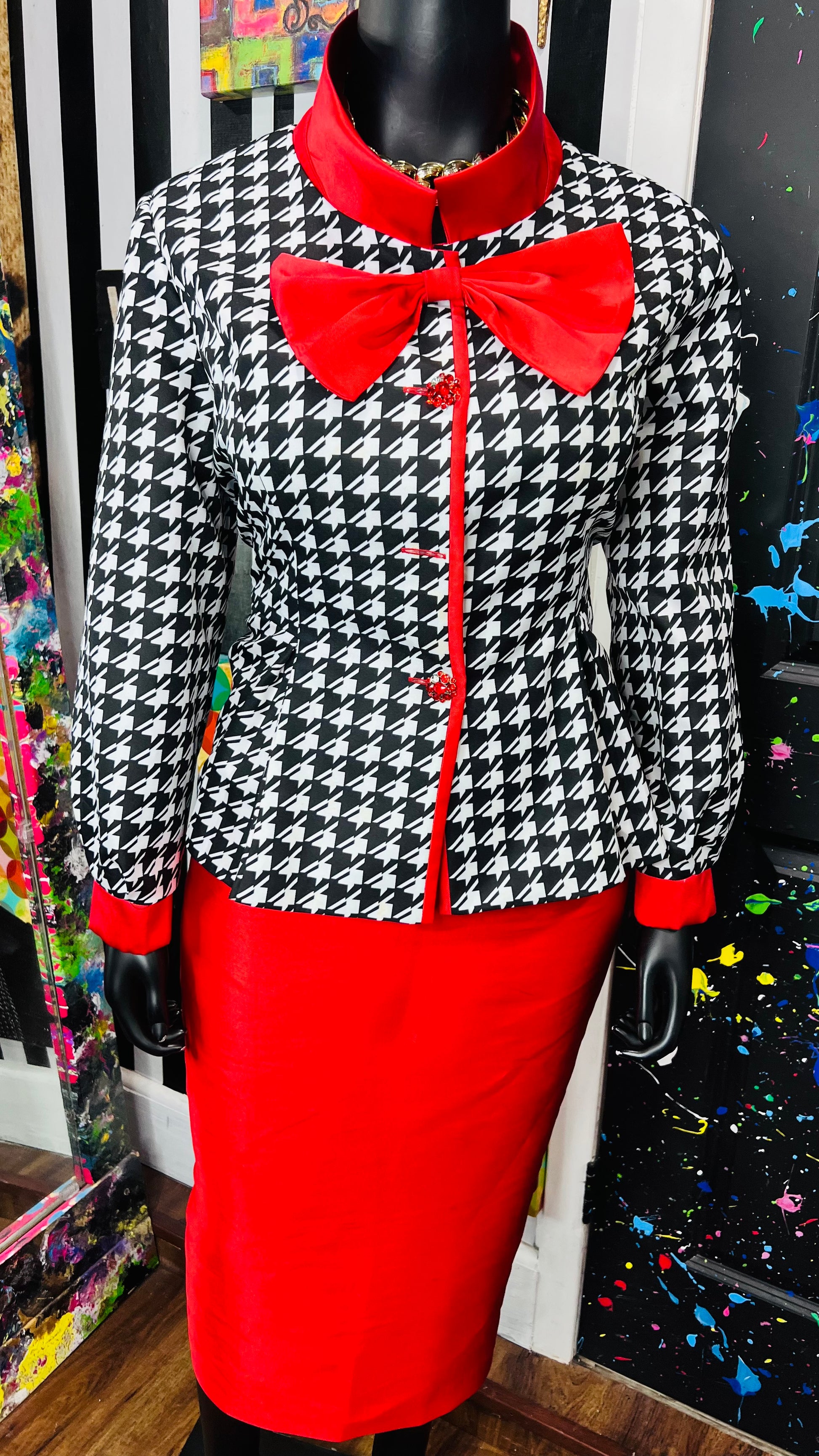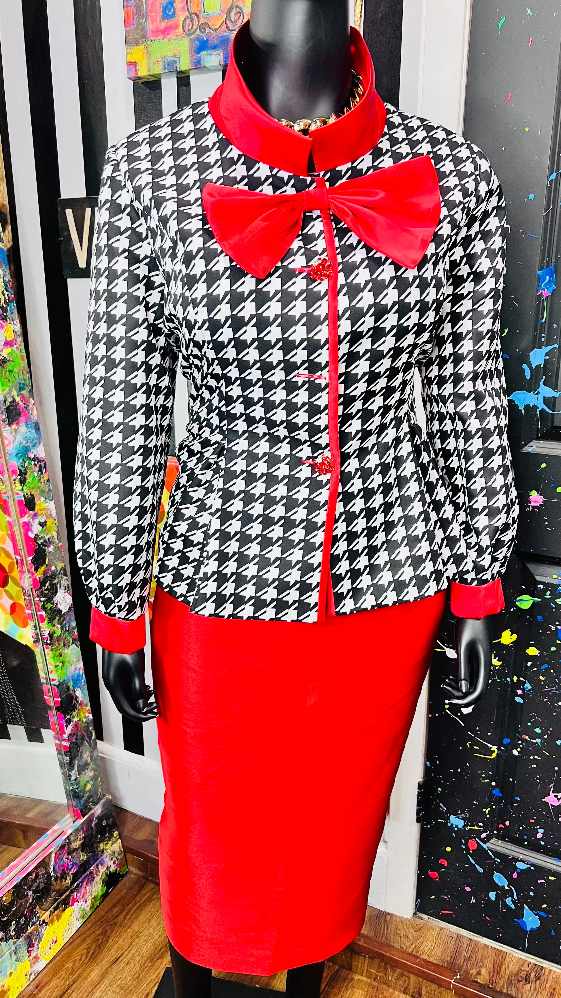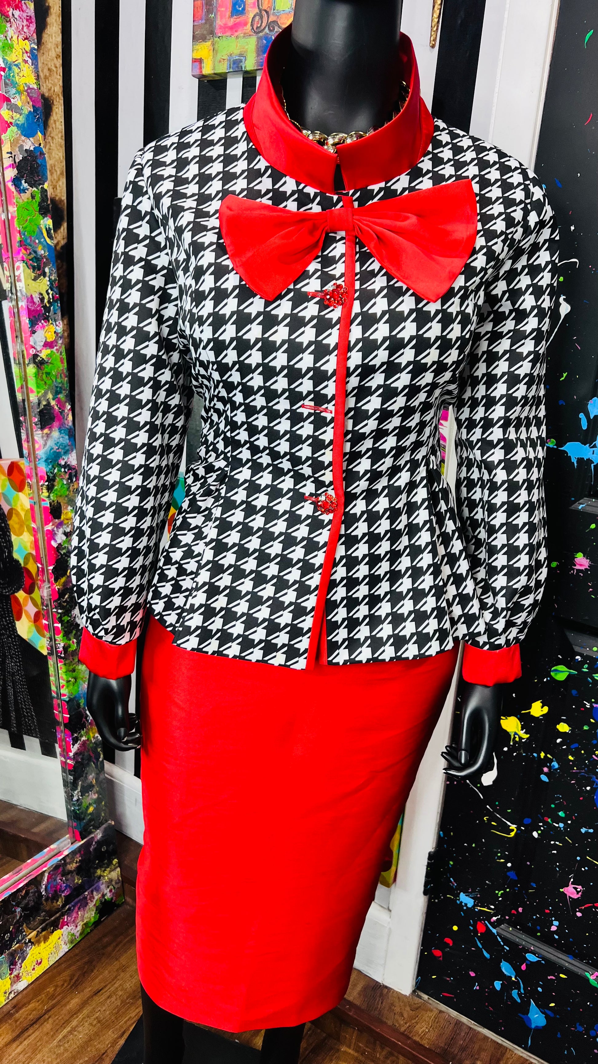 Houndstooth Peplum Waist Skirt Suit (18W)