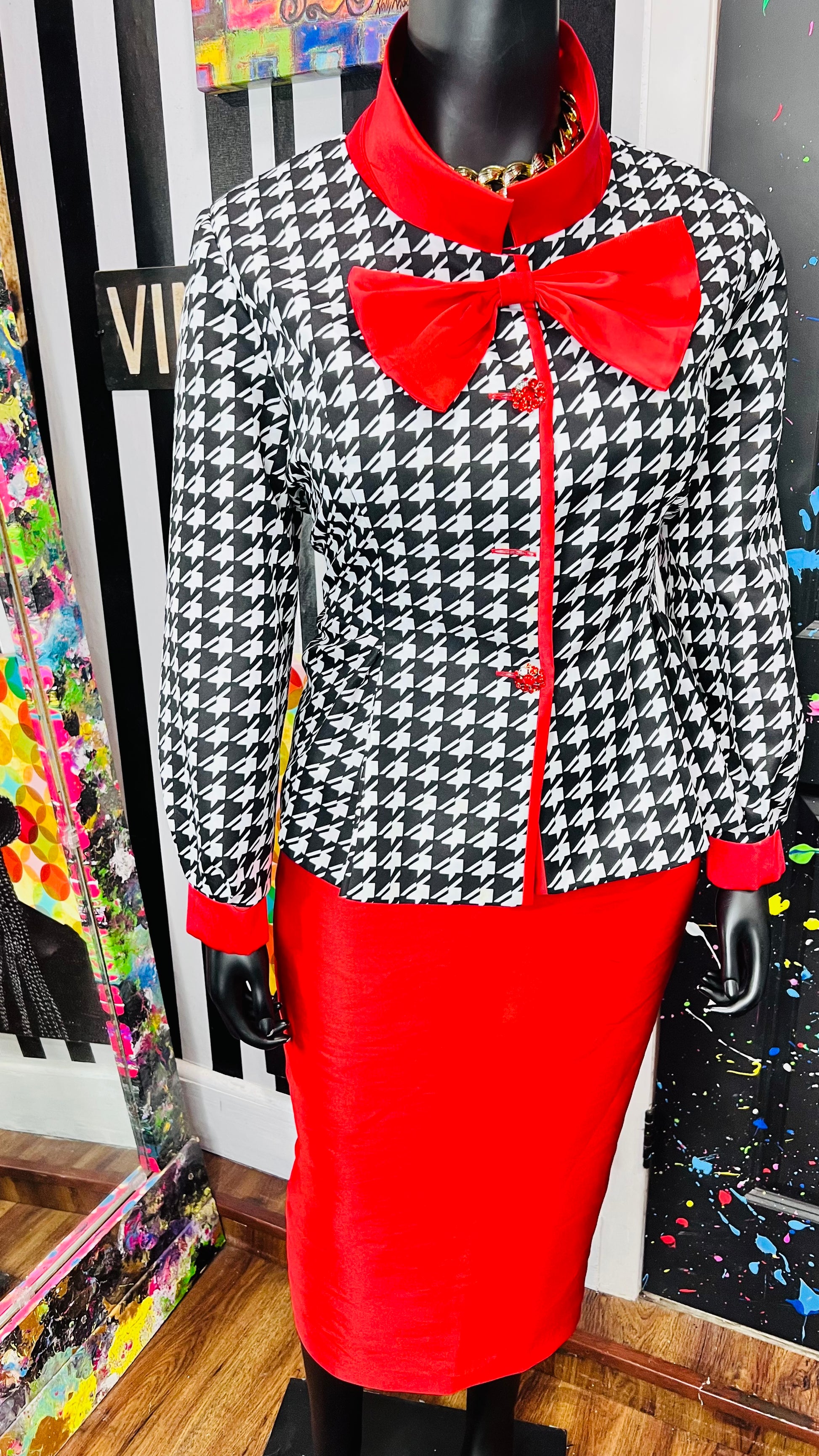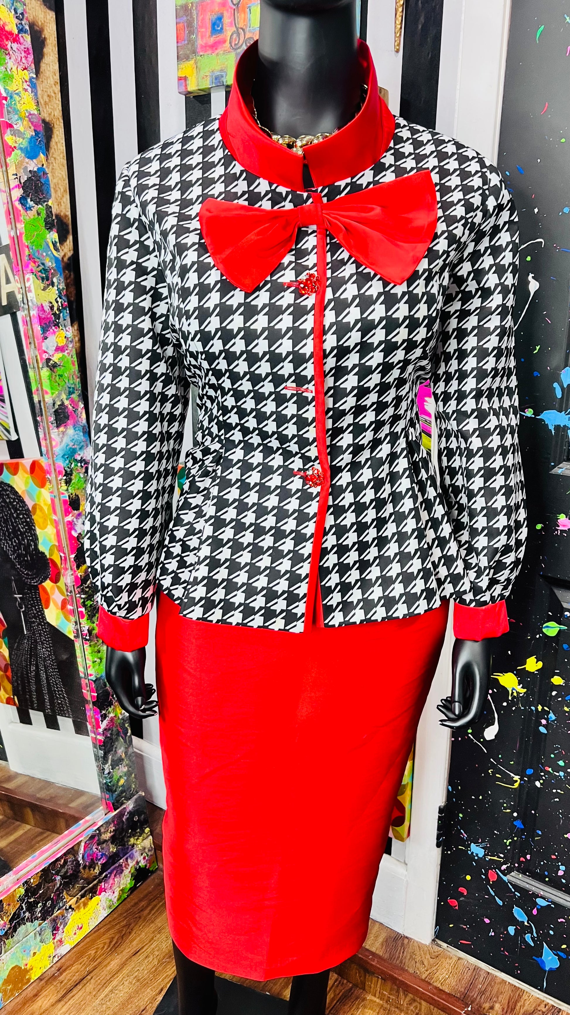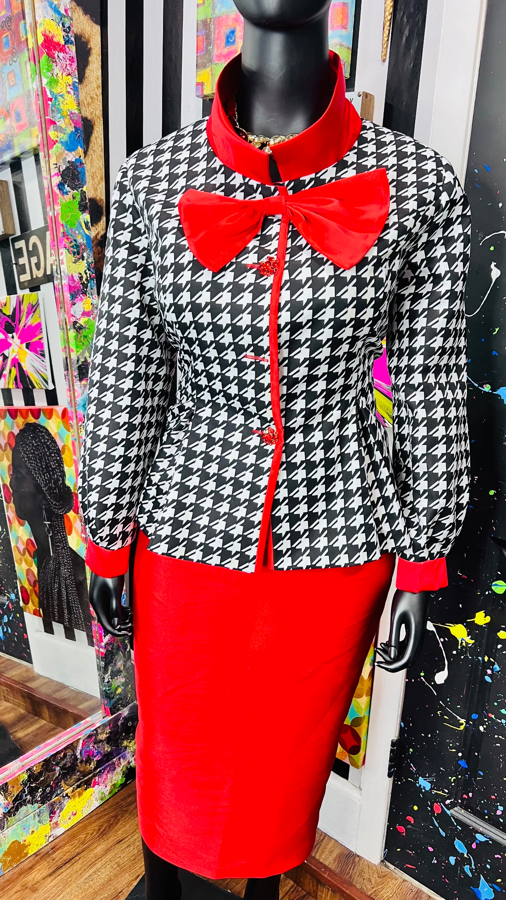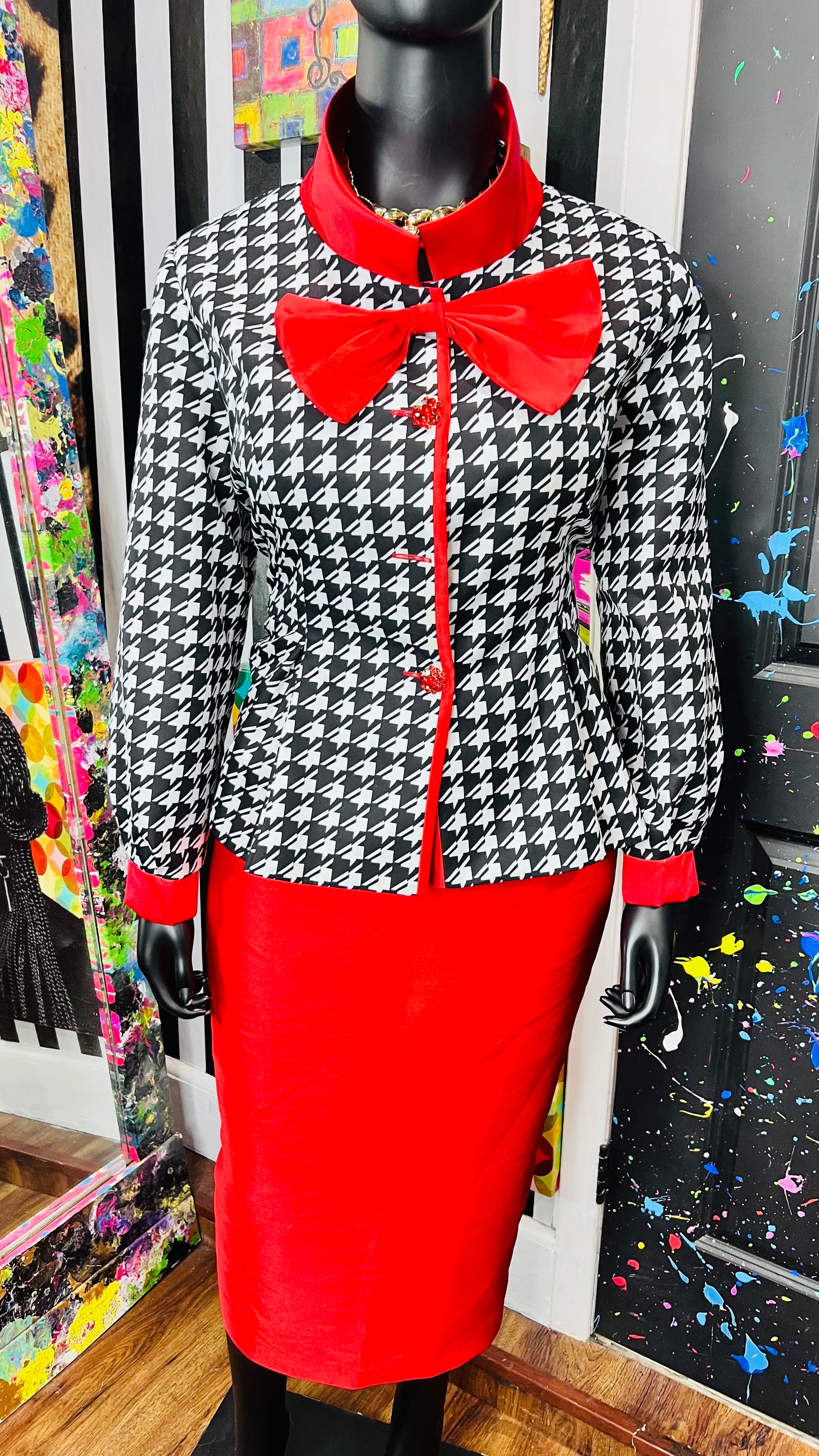 Houndstooth Peplum Waist Skirt Suit (18W)