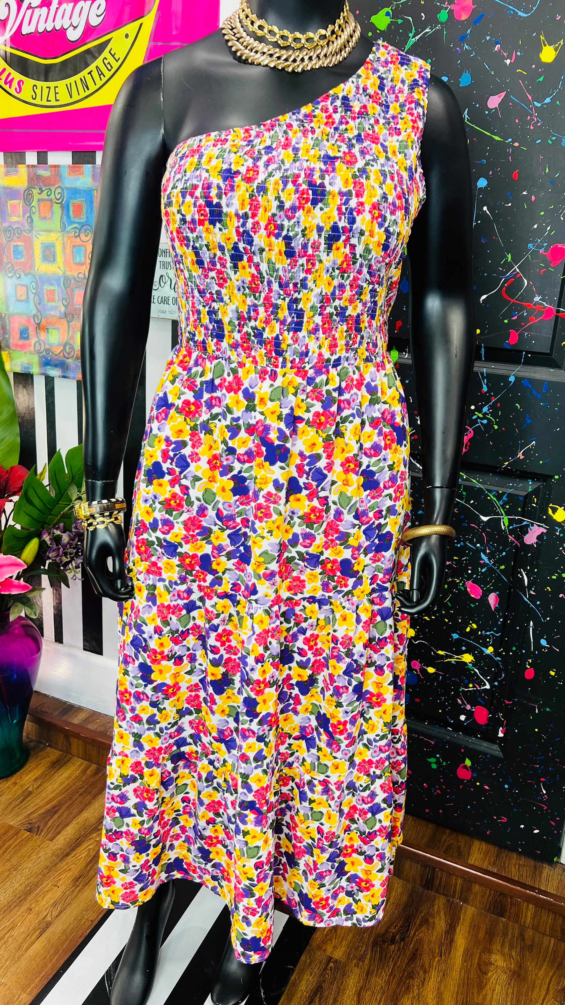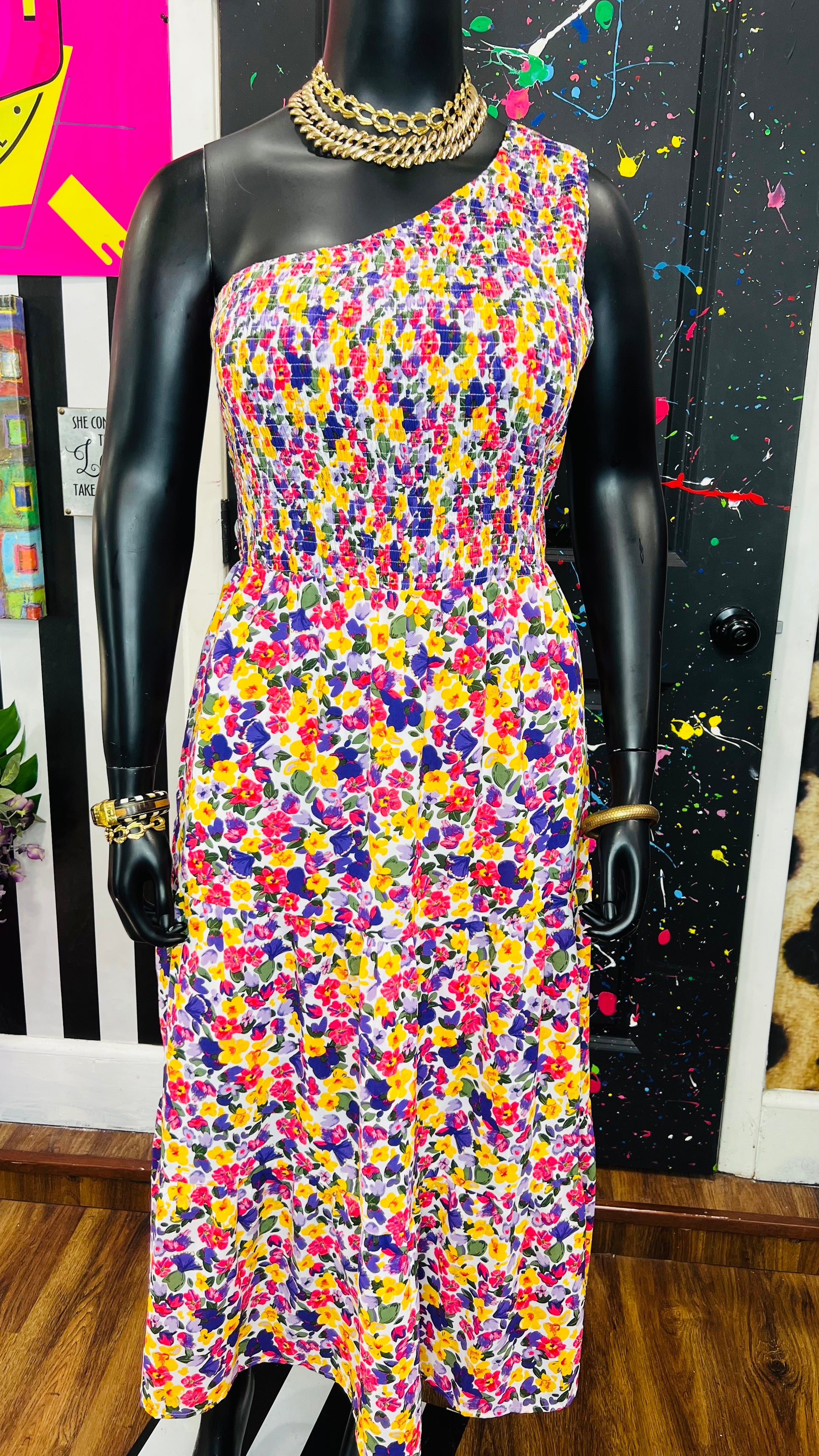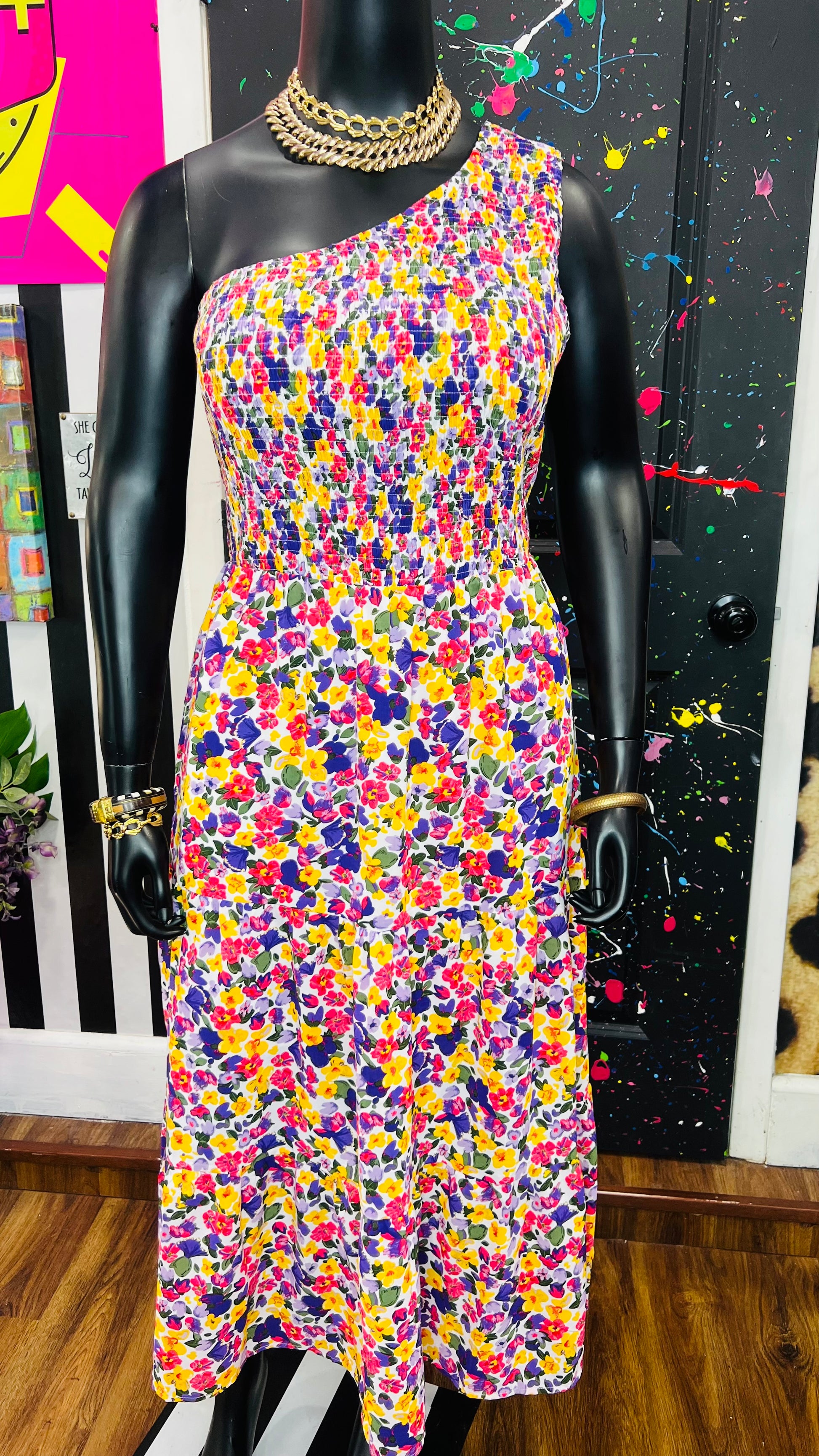One Shoulder Floral Dress
