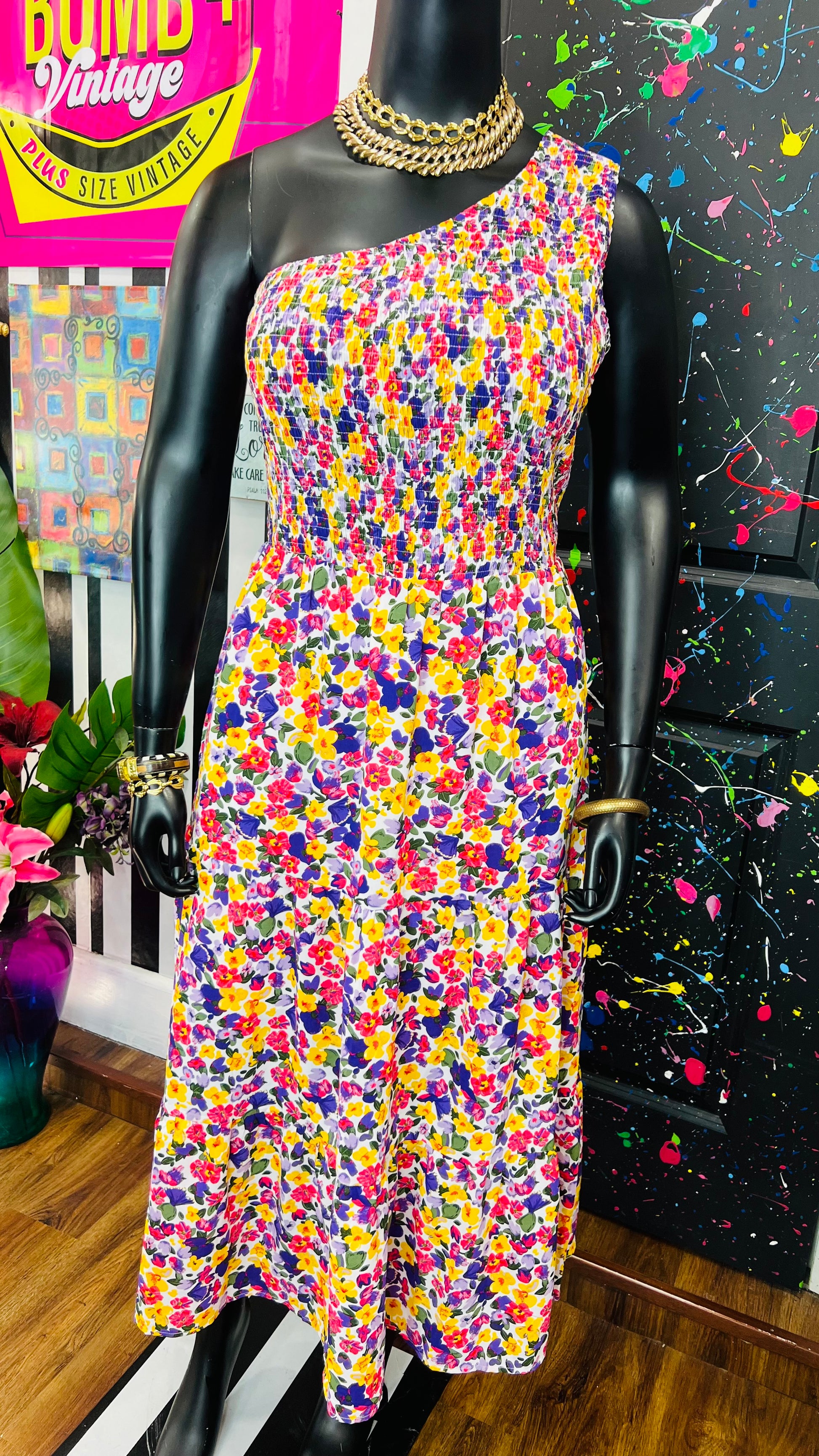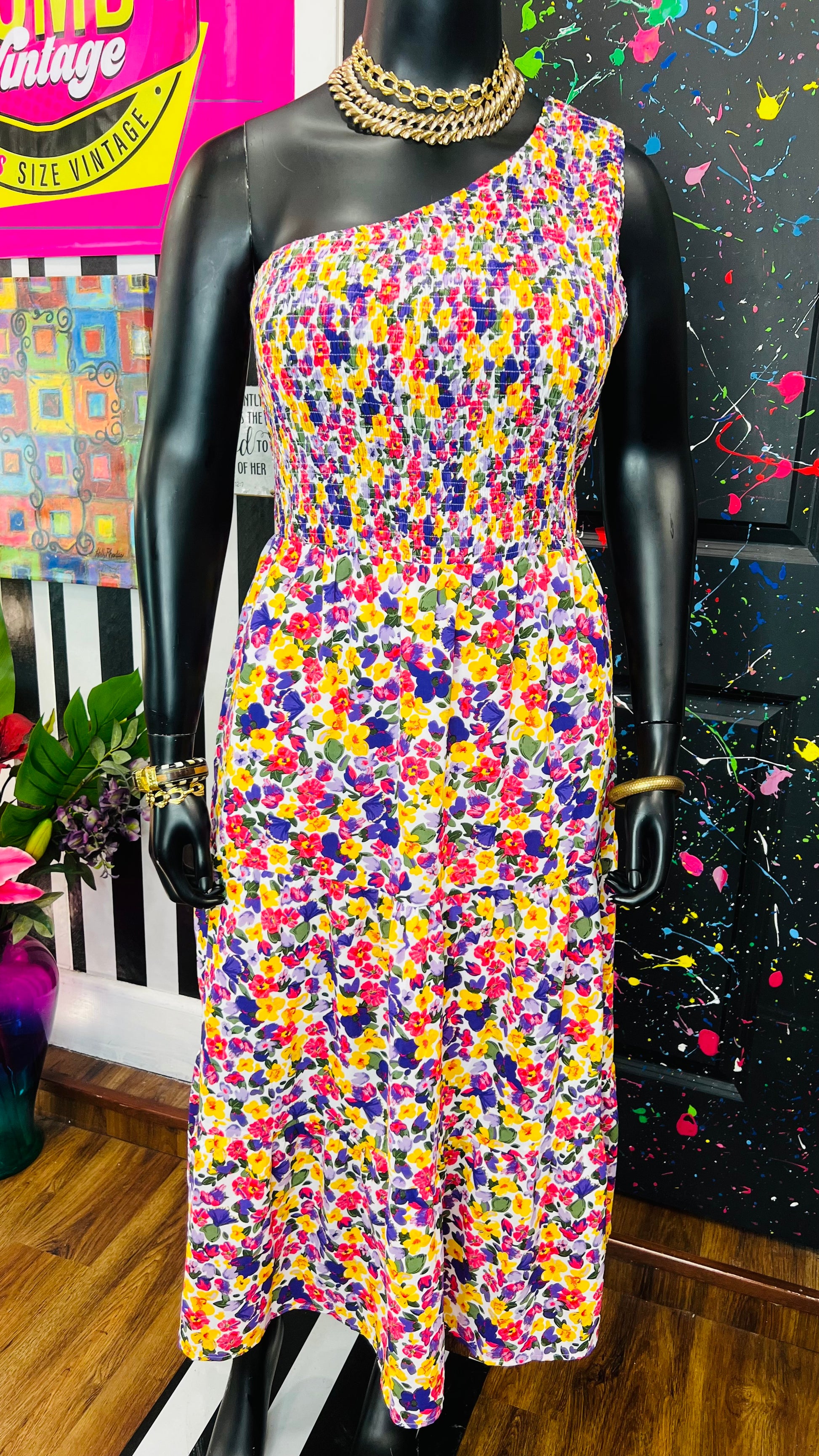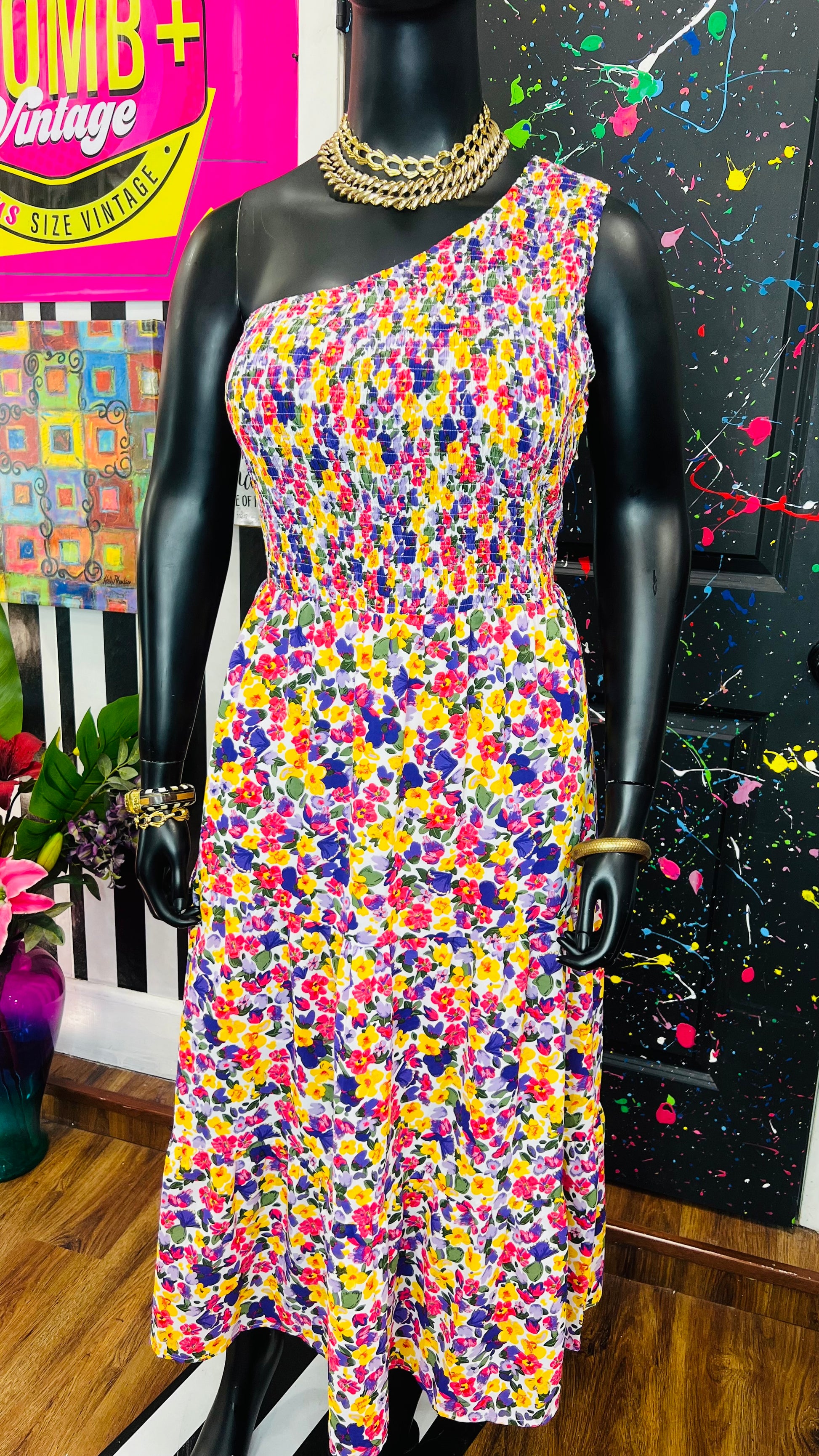 One Shoulder Floral Dress
