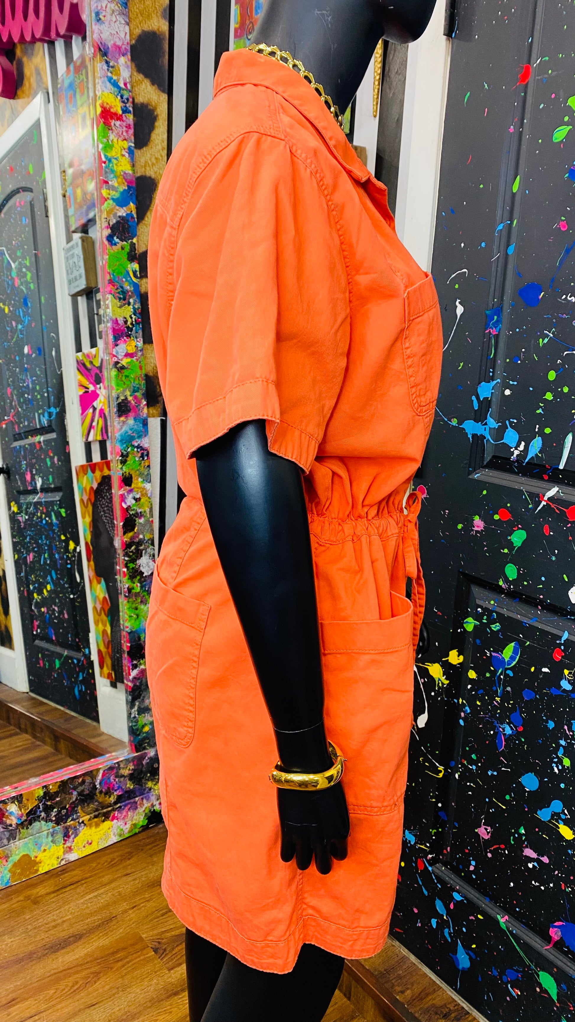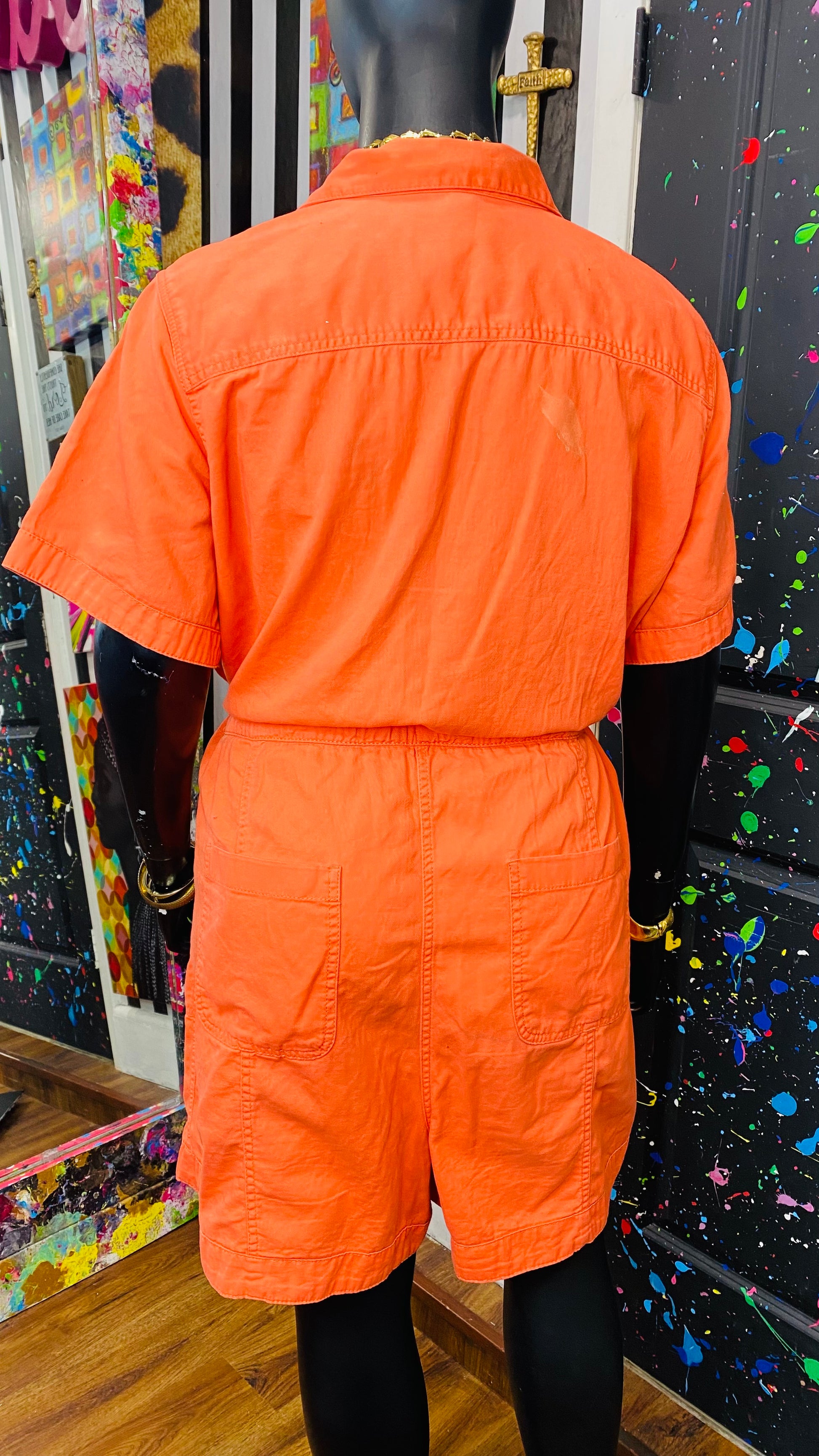 Orange Denim Shorts Romper (20)