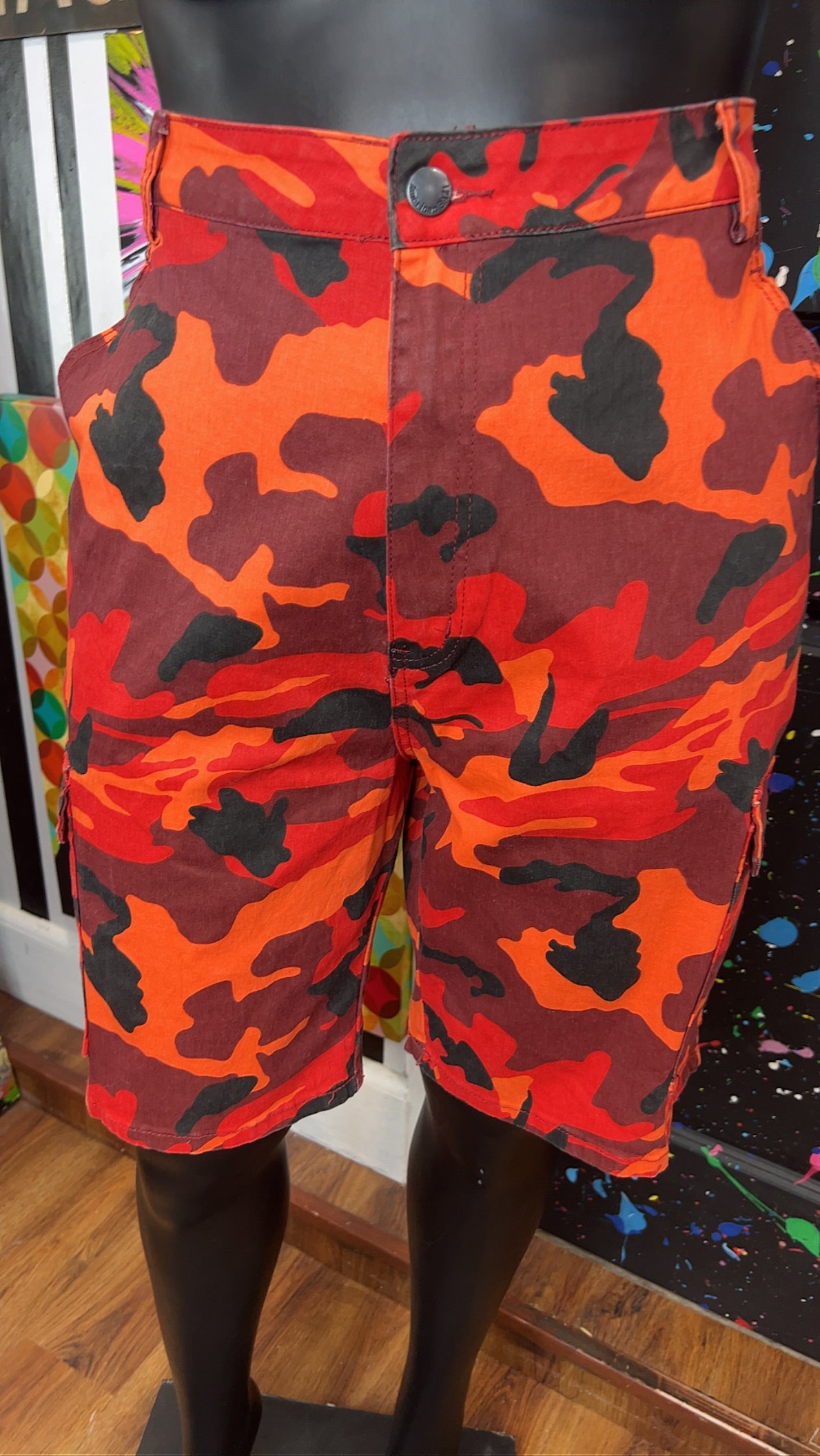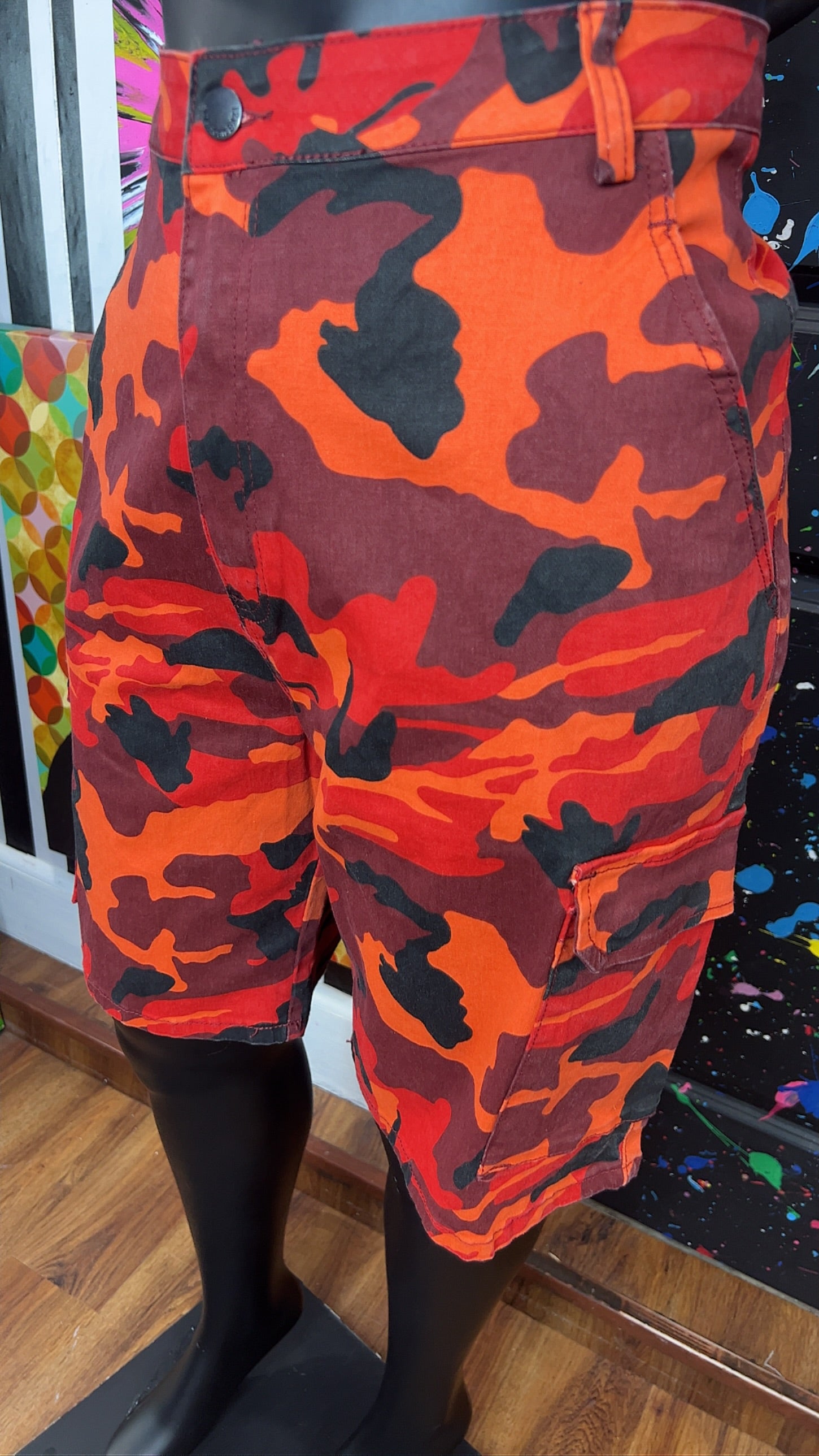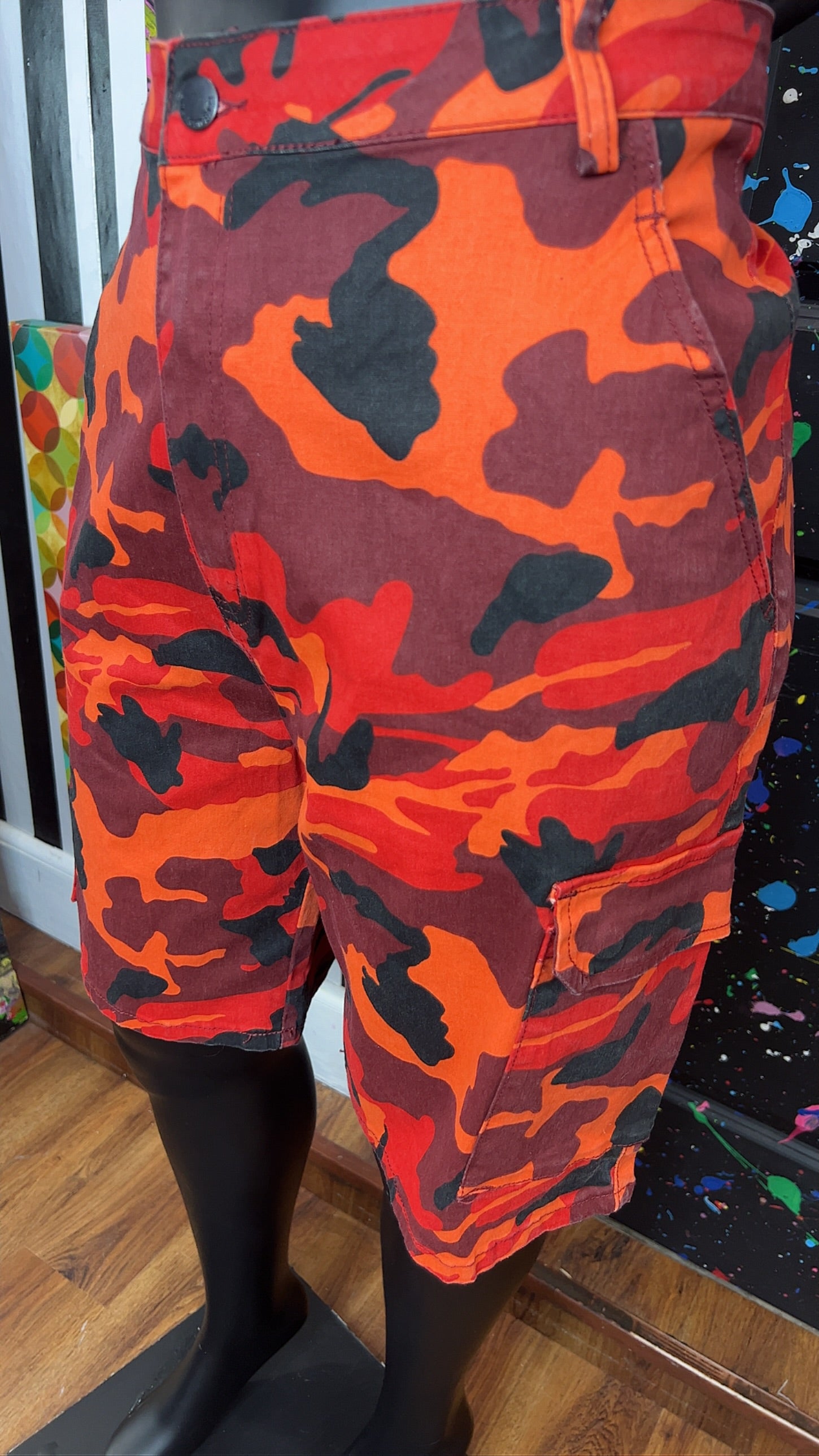 Orange & Red Camo Cargo Shorts - Has Stretch (18)