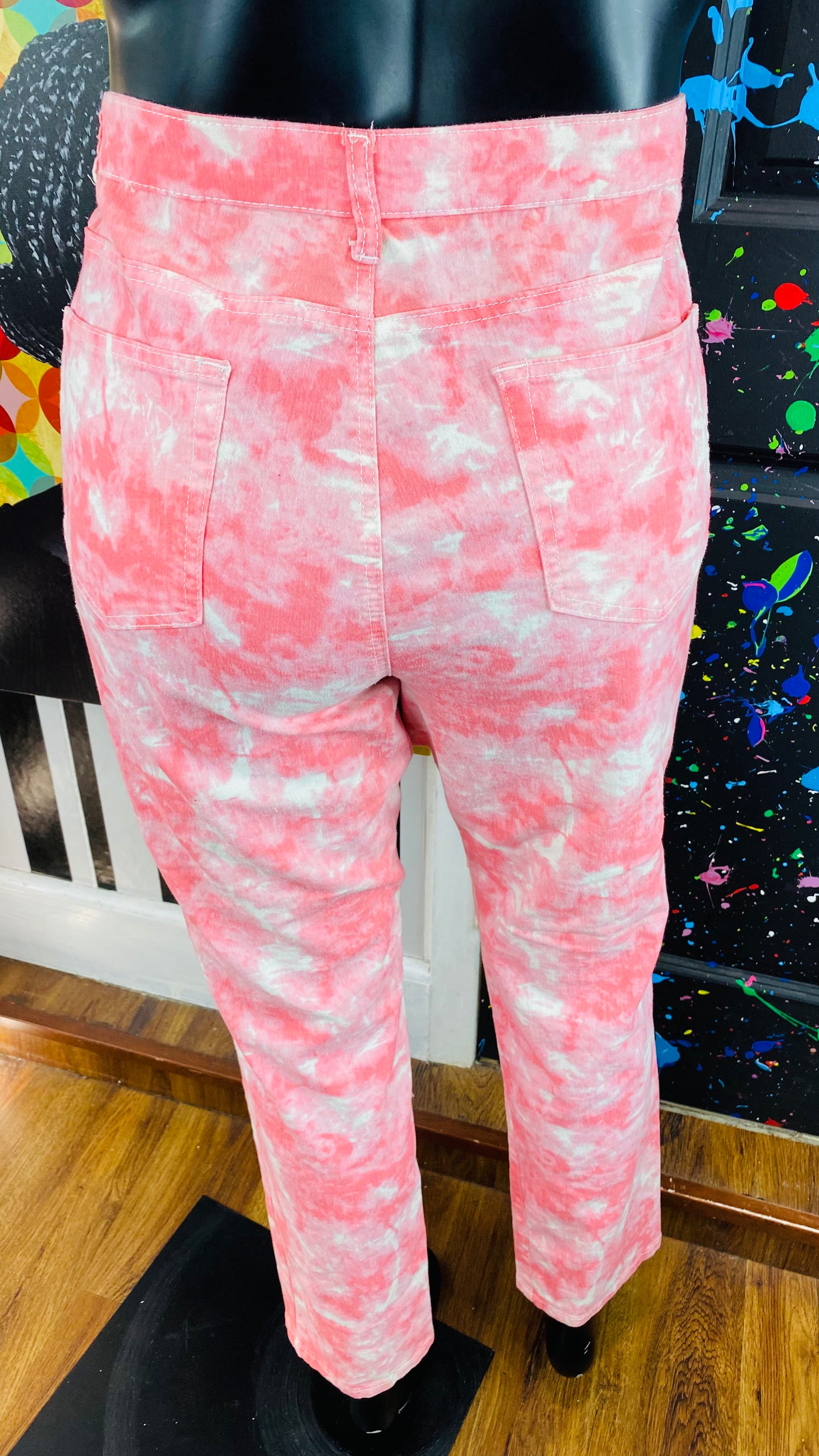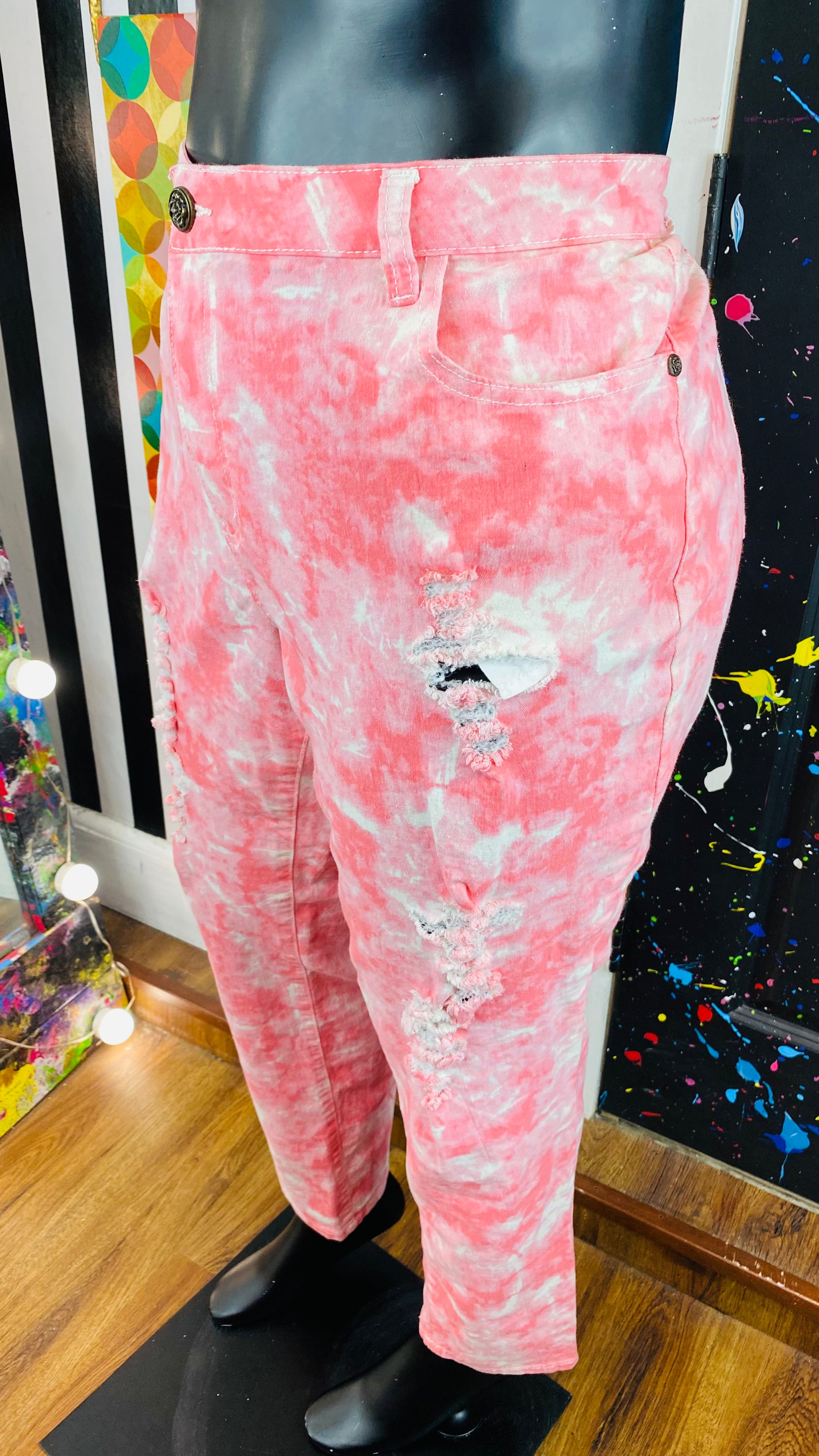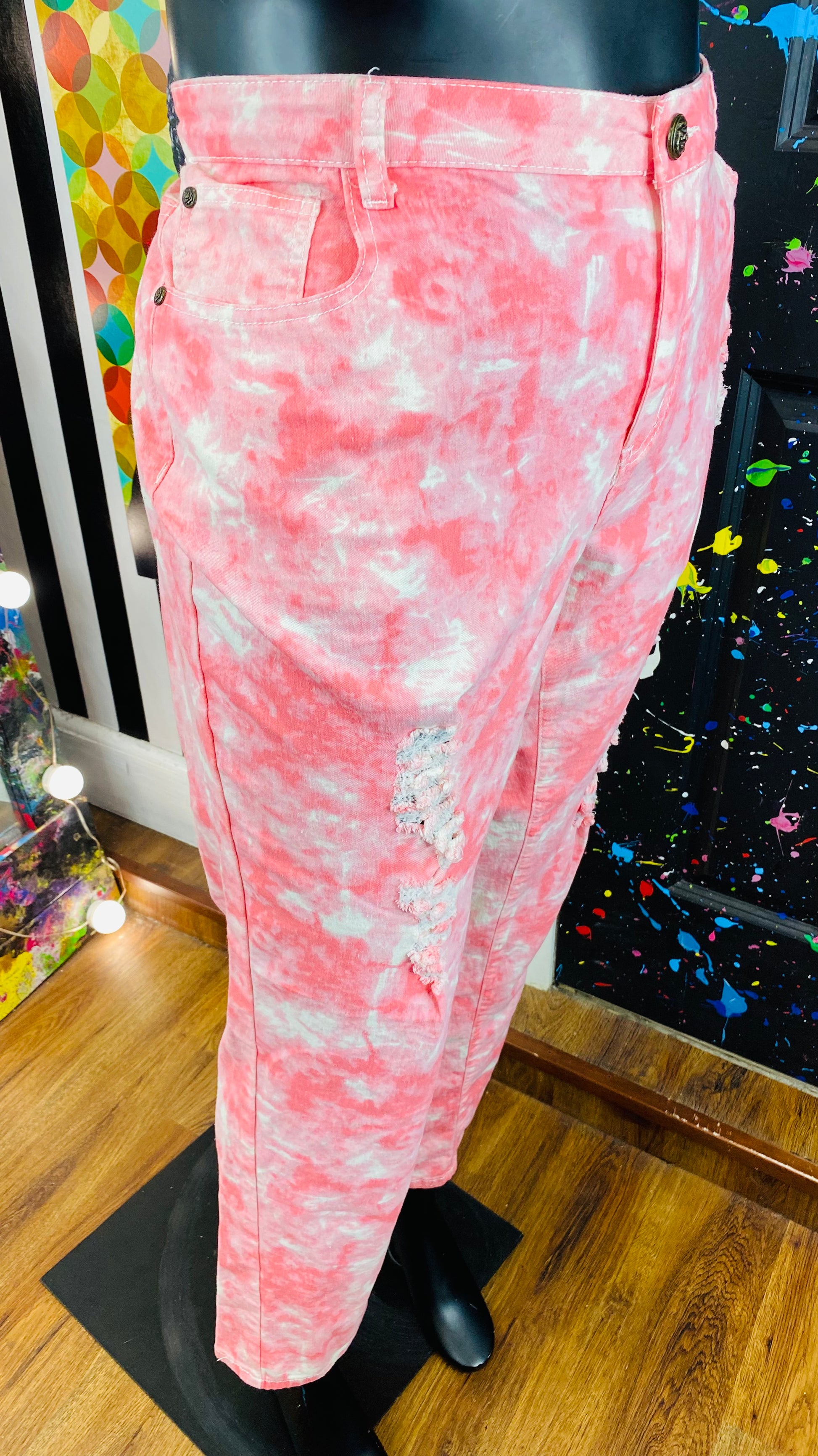 Pink&White Ty-Dyed Distressed Pants