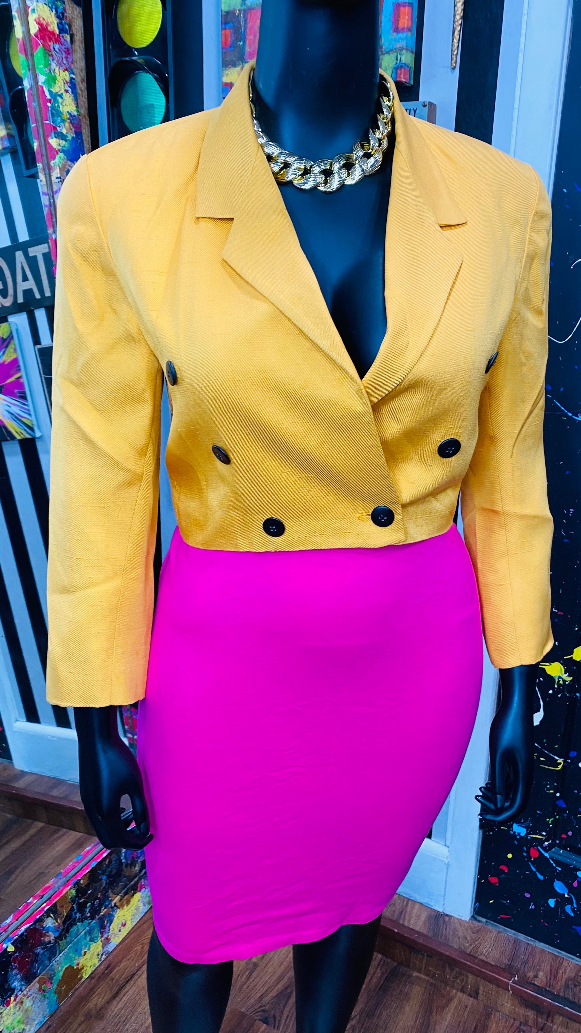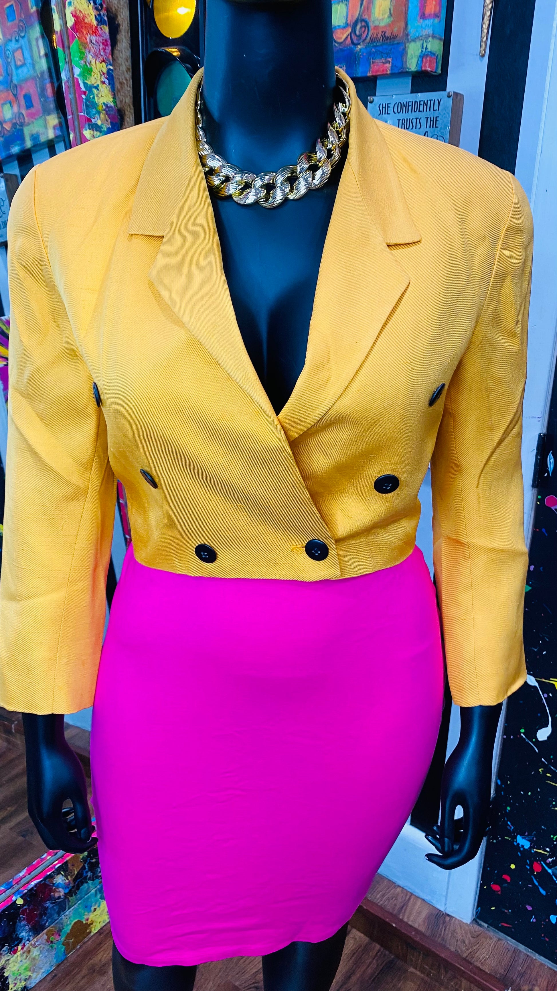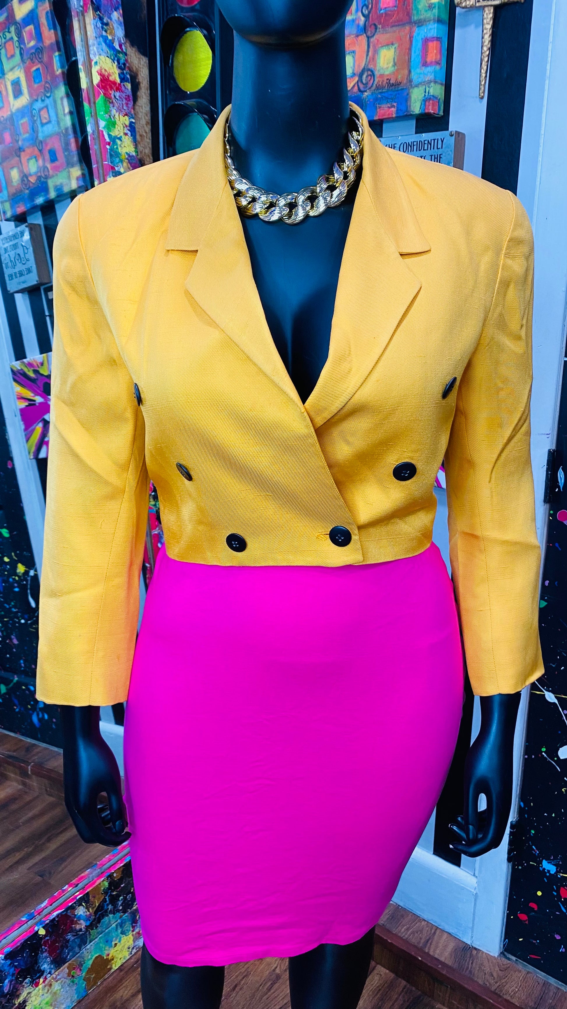 Plus Size 100% Silk Vintage Mustard Yellow Cropped Blazer (12)