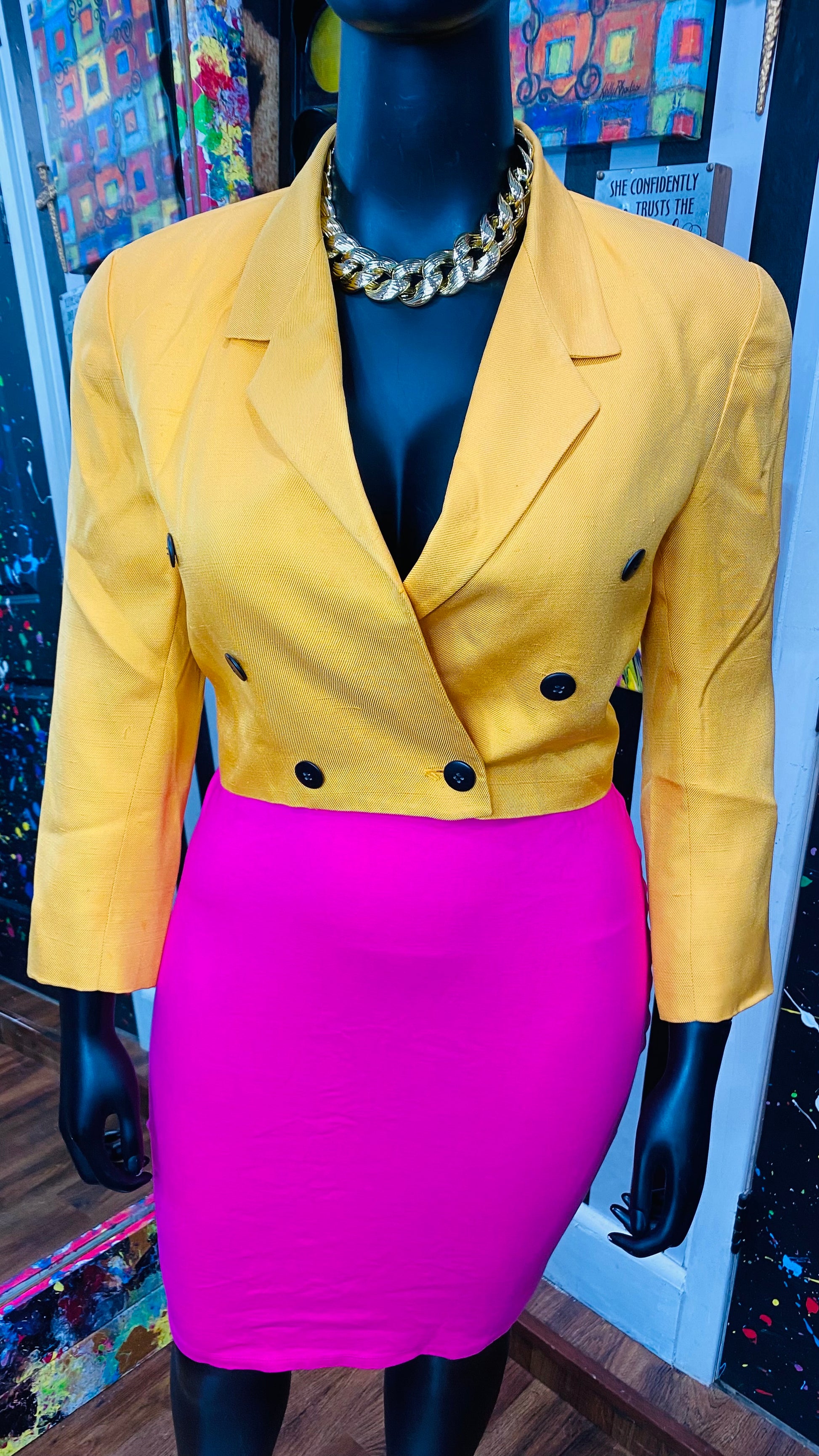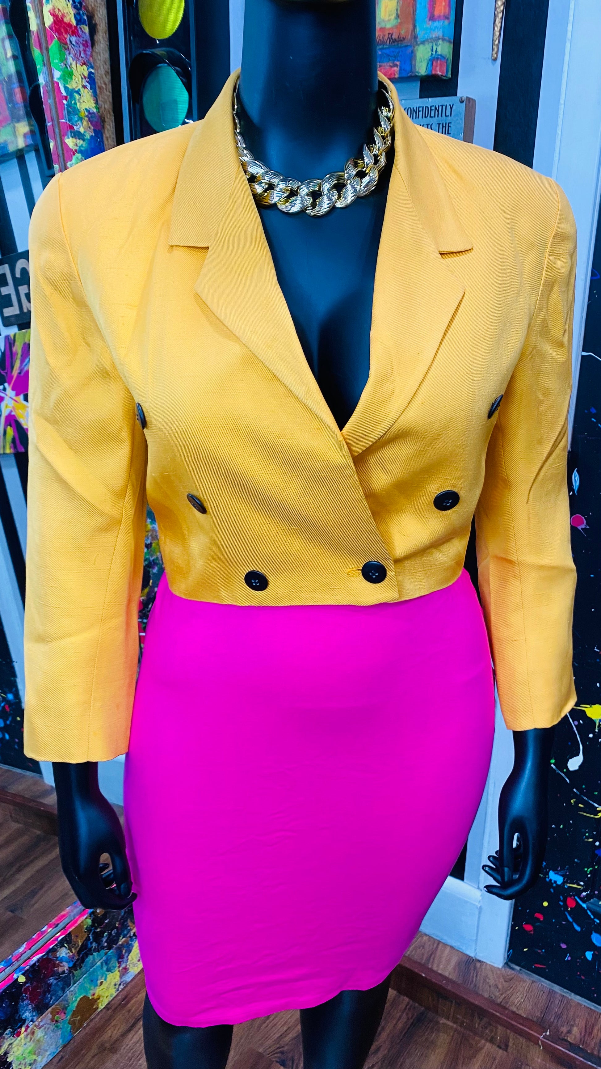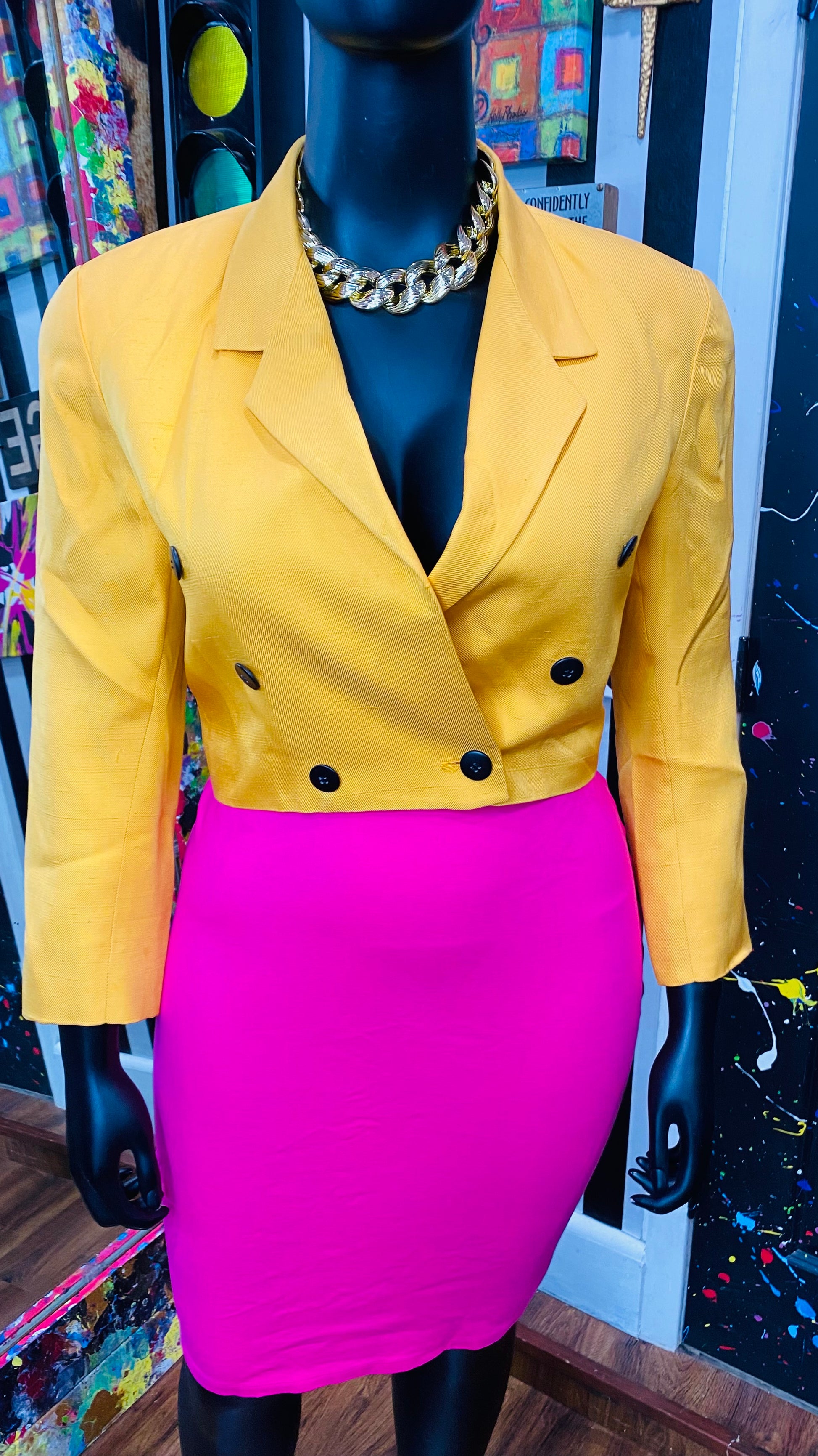 Plus Size 100% Silk Vintage Mustard Yellow Cropped Blazer (12)