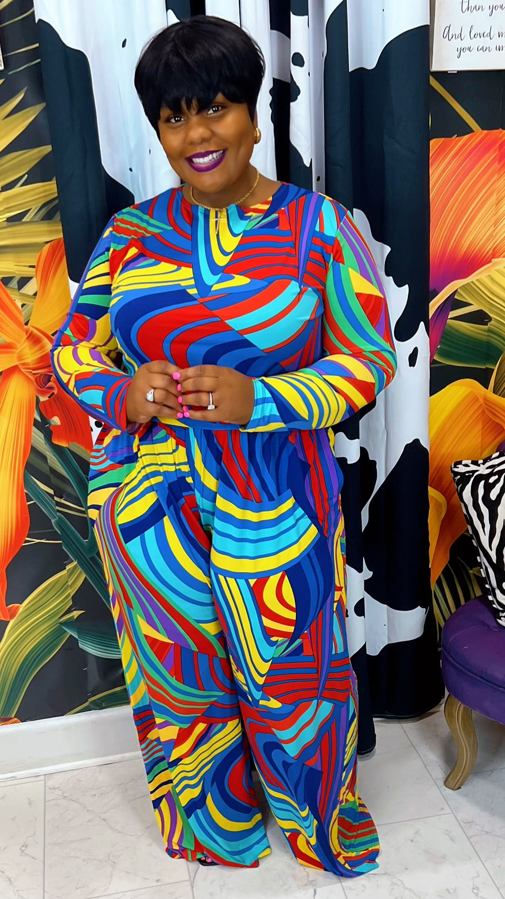 The Sandi Sweet Pants Set is a must-have for any fashion-forward individual! This colorful wide leg pants set is perfect for any occasion and is made from eerie material that is perfect for any season. Embrace effortless style and versatility with this amazing set!