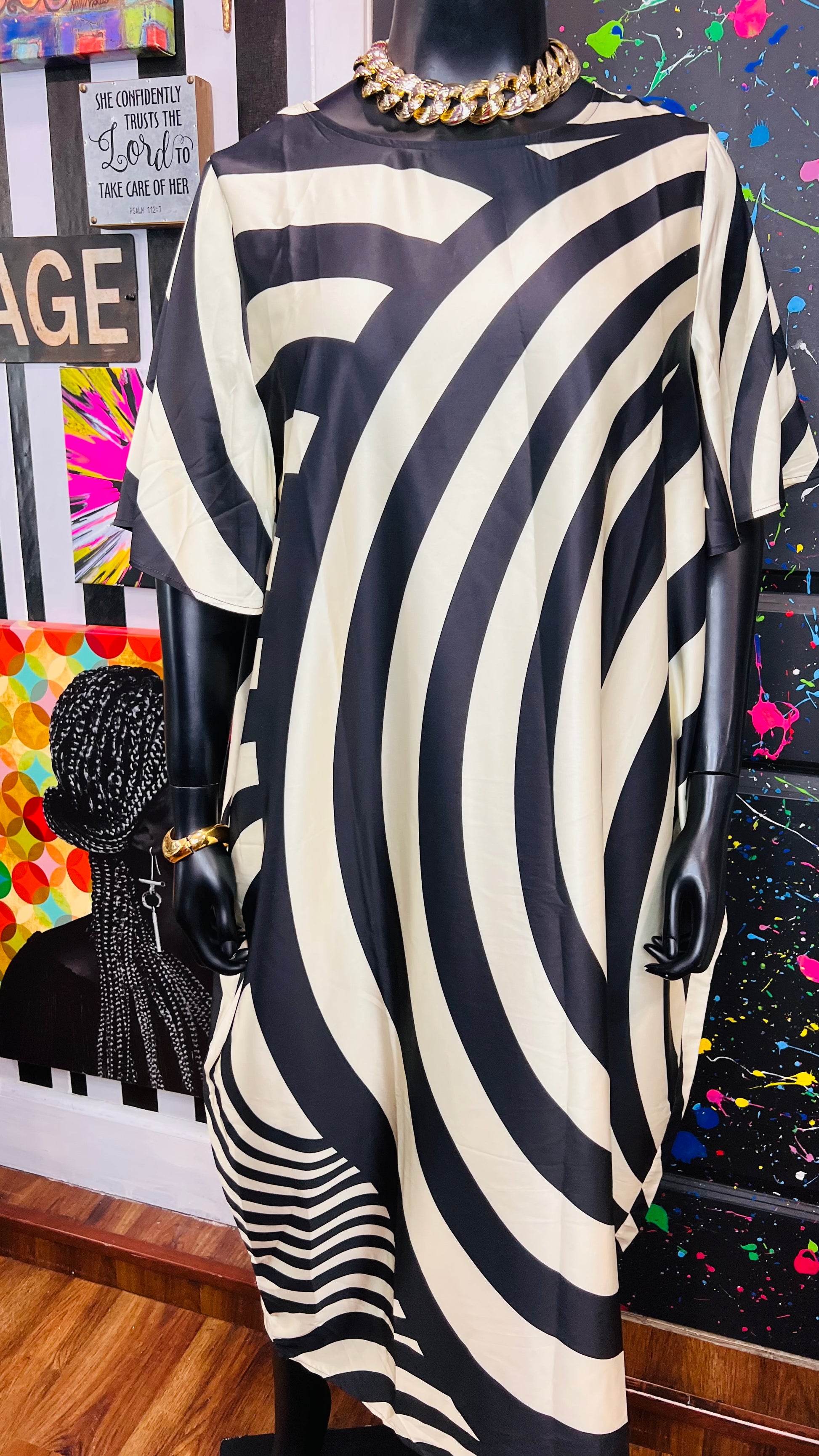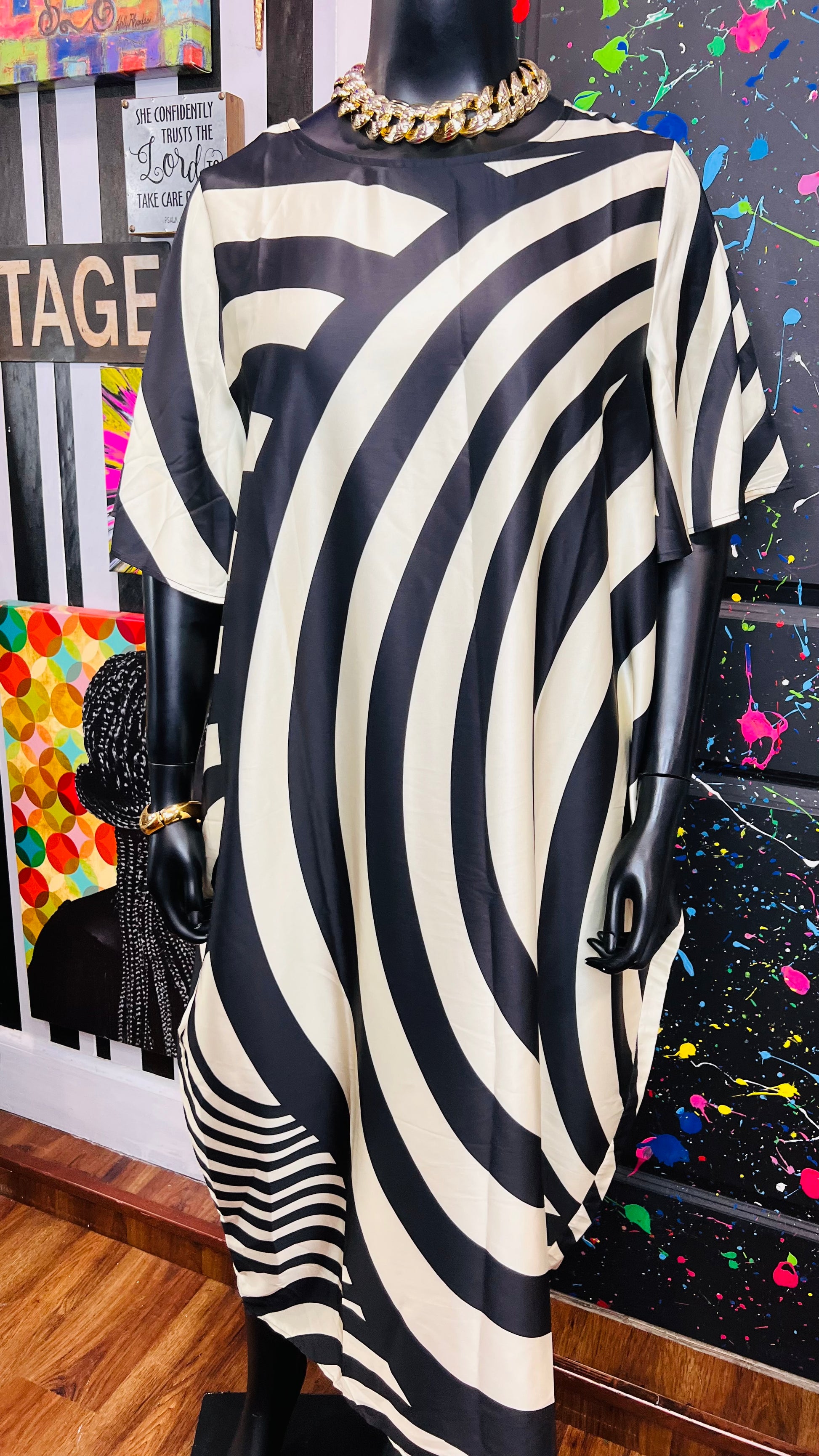 Silk Like Cream & Black Dress (16)