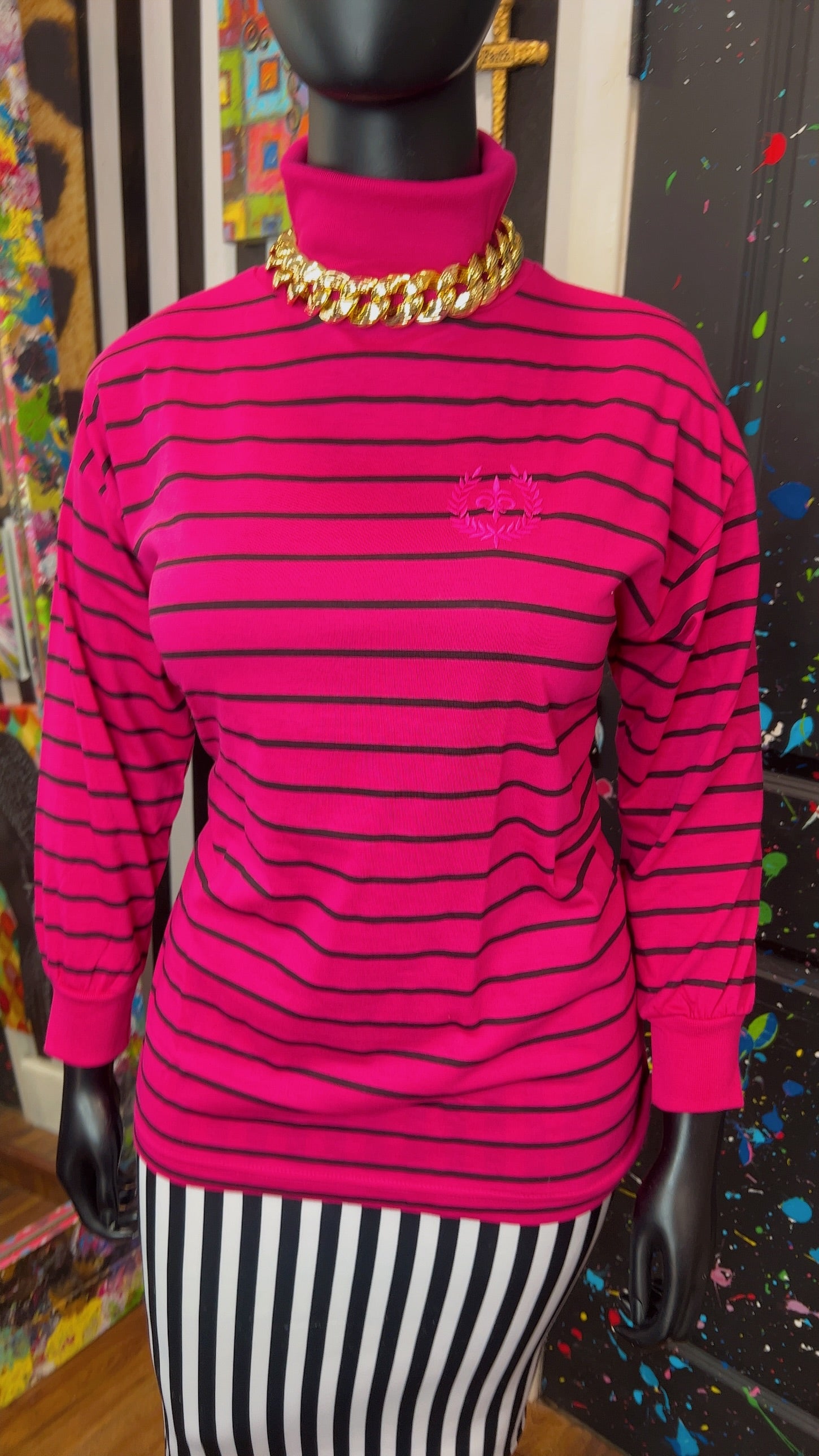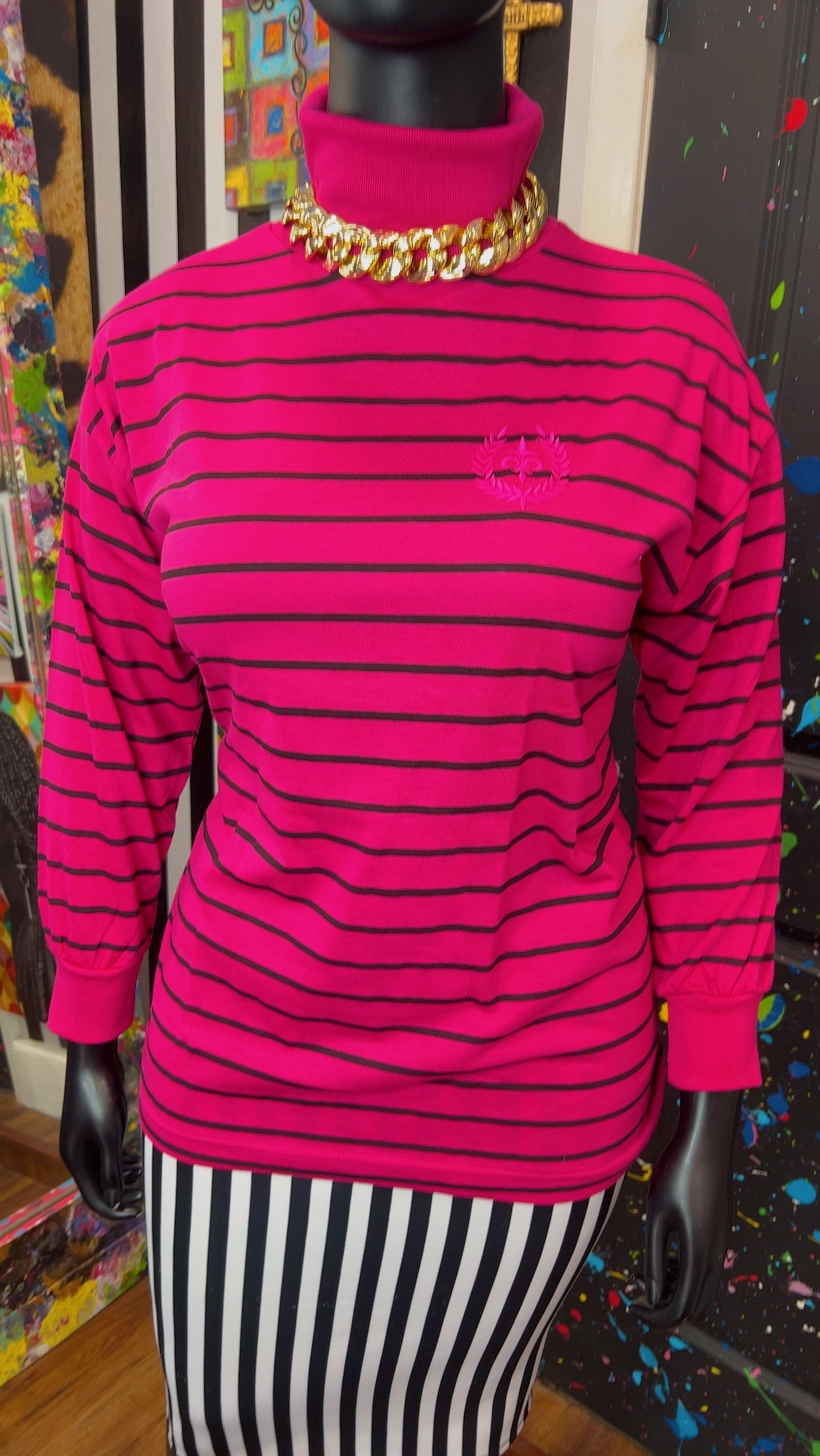 Vintage 100% Cotton Black Striped Turtle Neck - Pink (18)