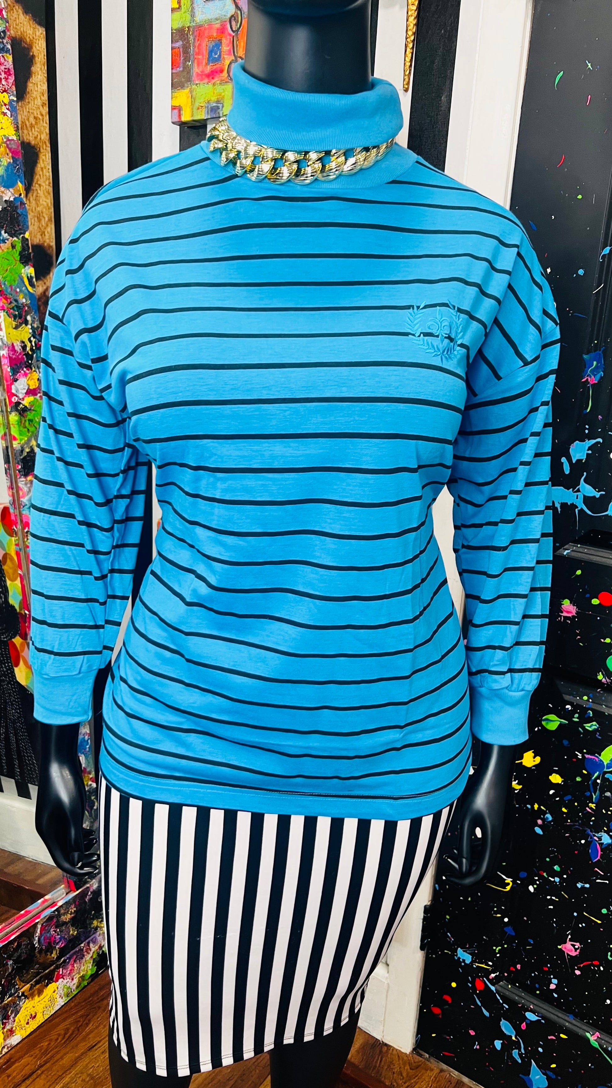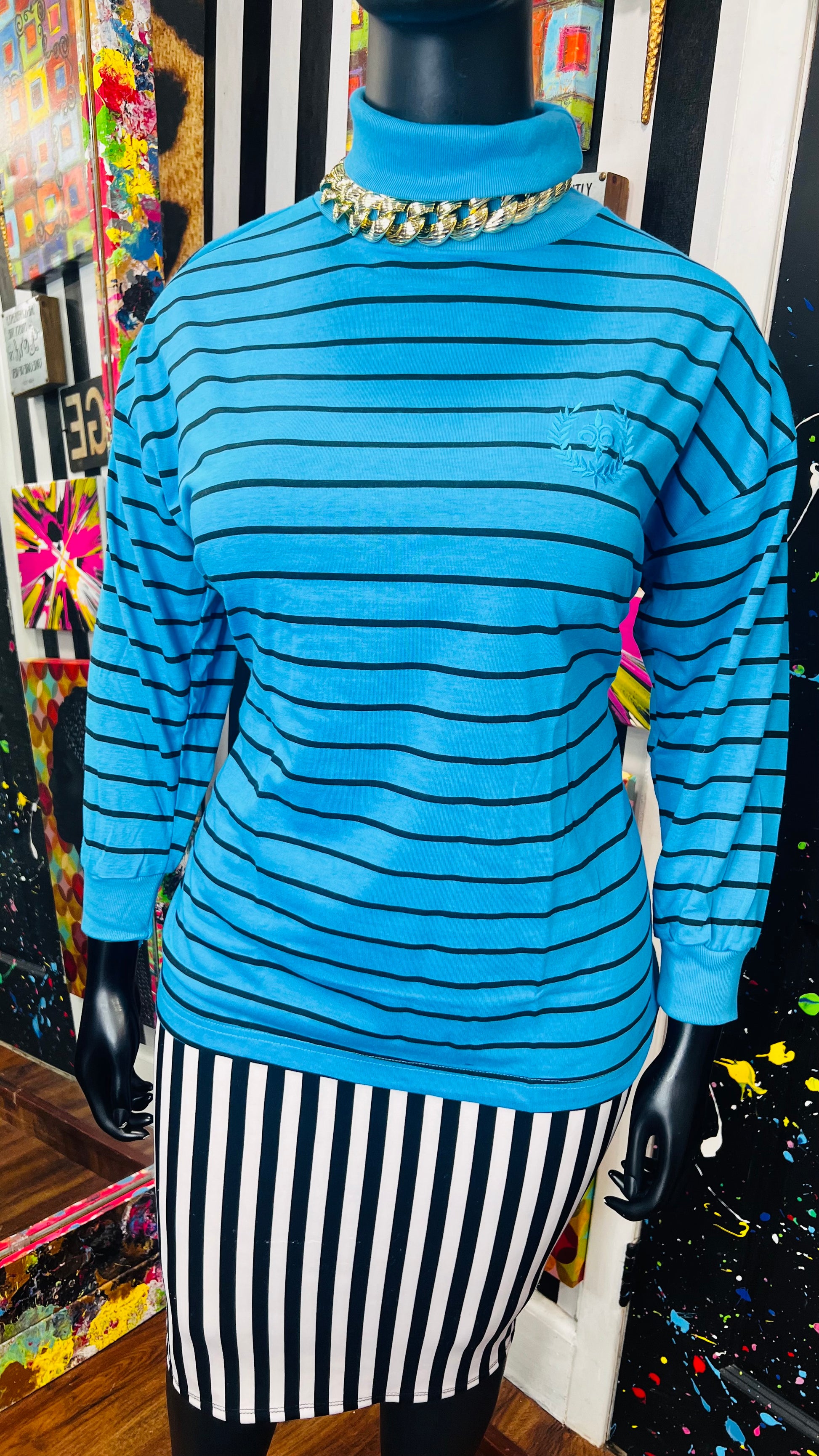 Vintage 100% Cotton Black Striped Turtle Neck- Blue (18)