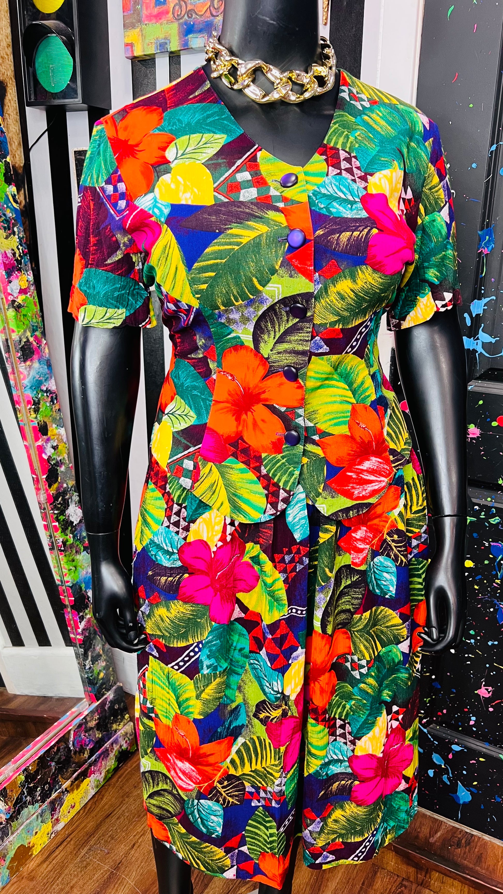 Vintage 100% Rayon Tropical Skirt Set (14) *KC