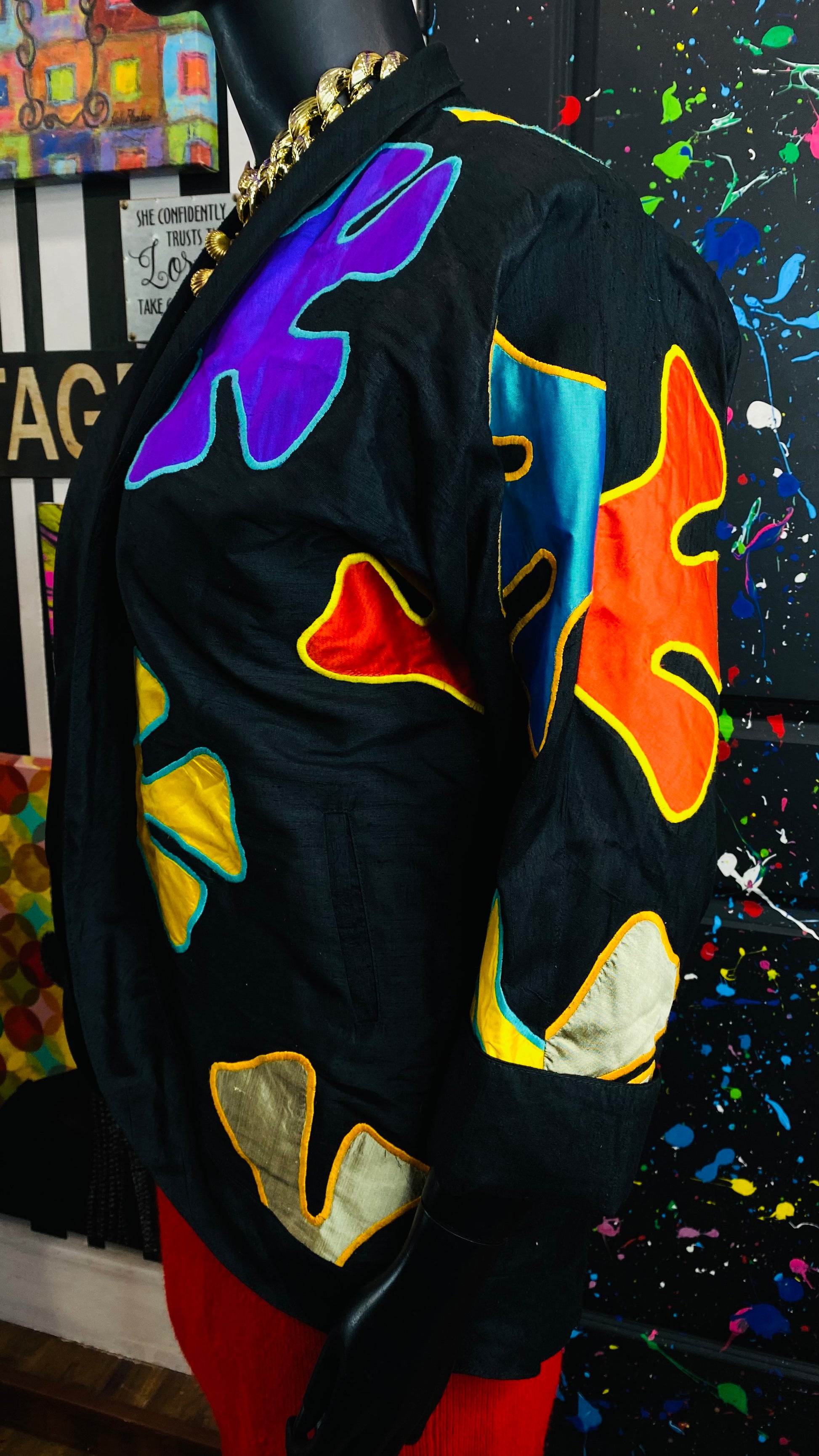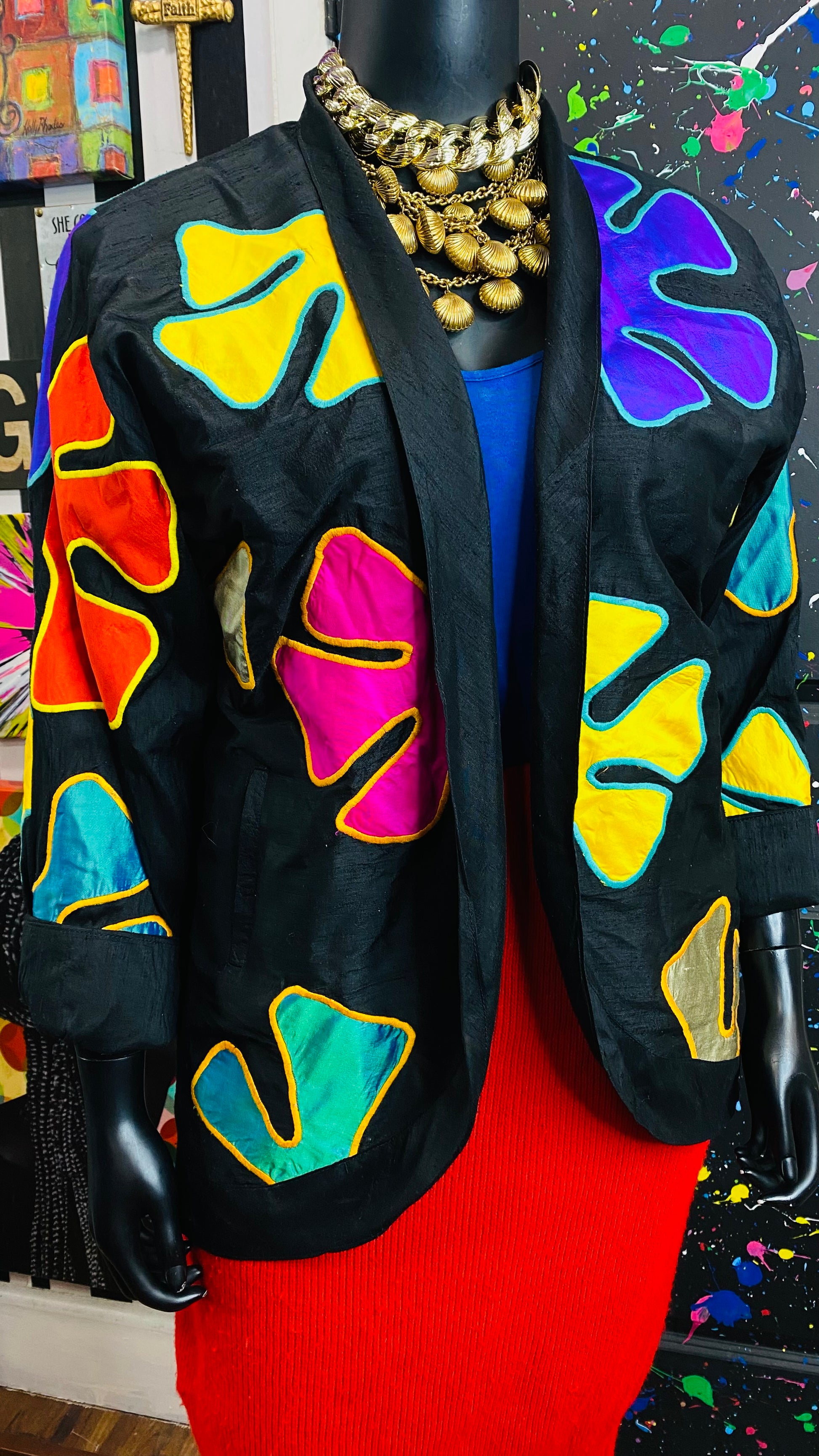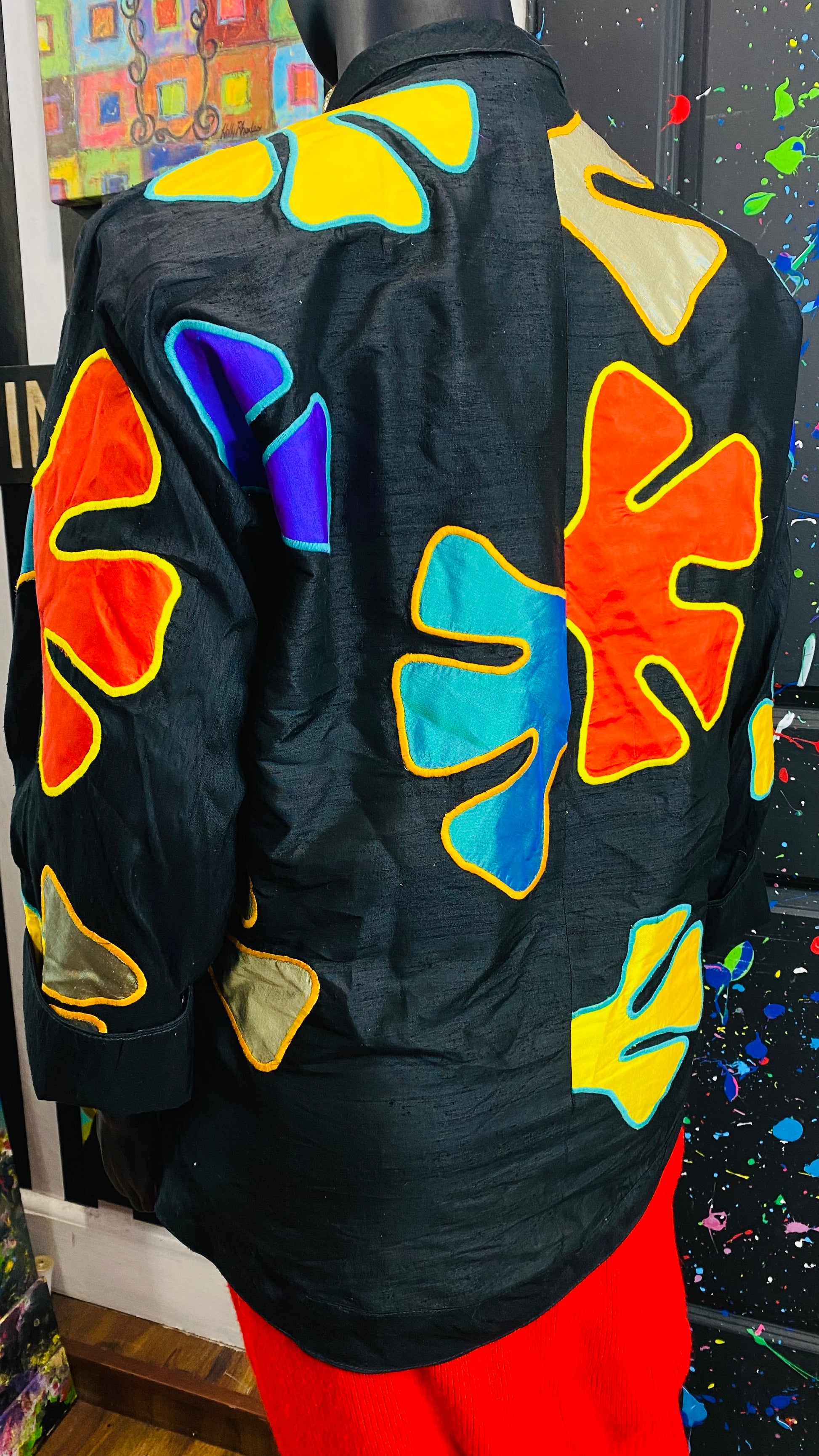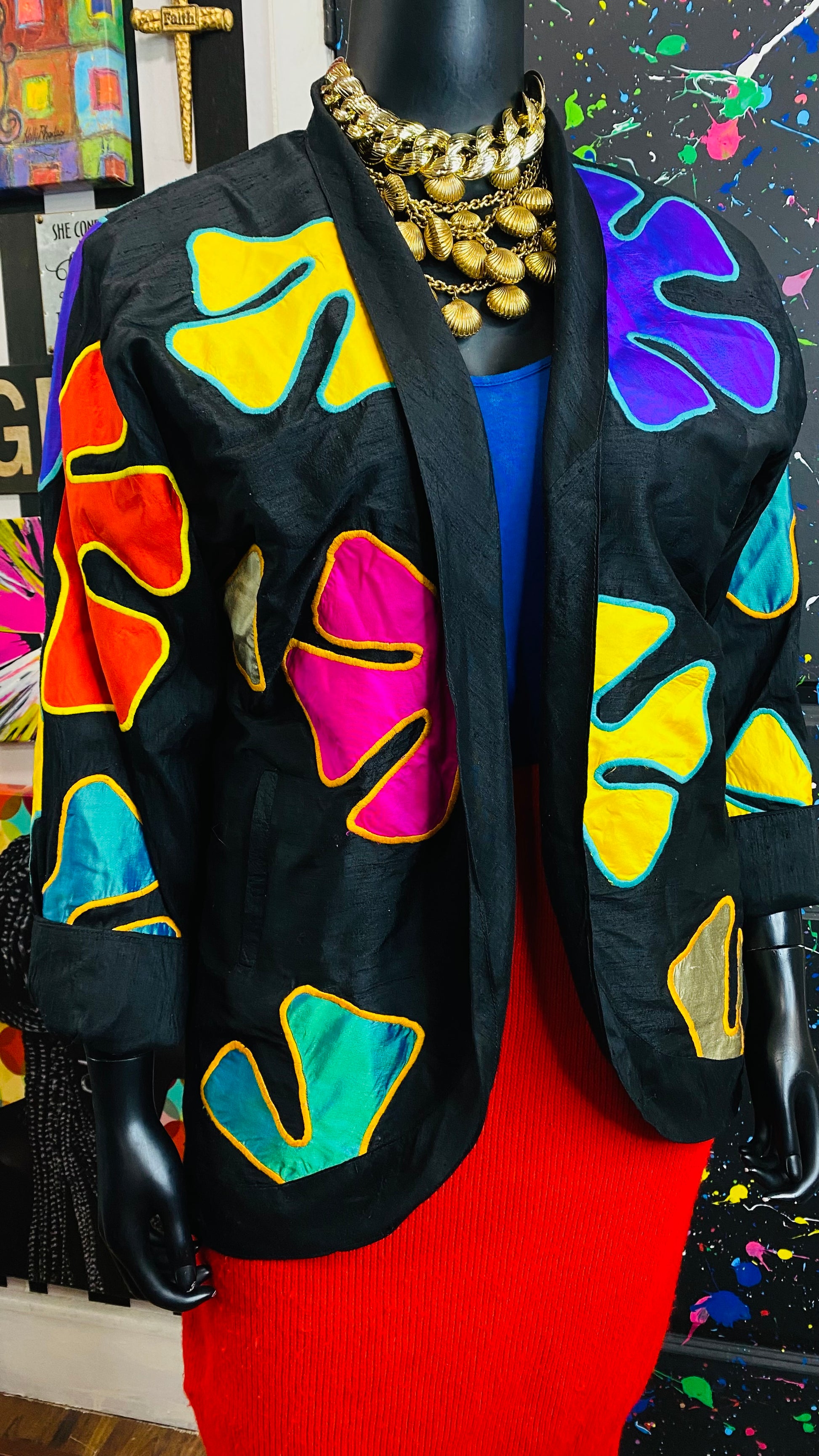 Vintage 100% Silk Embroidered Duster/ Open Blazer (OS)