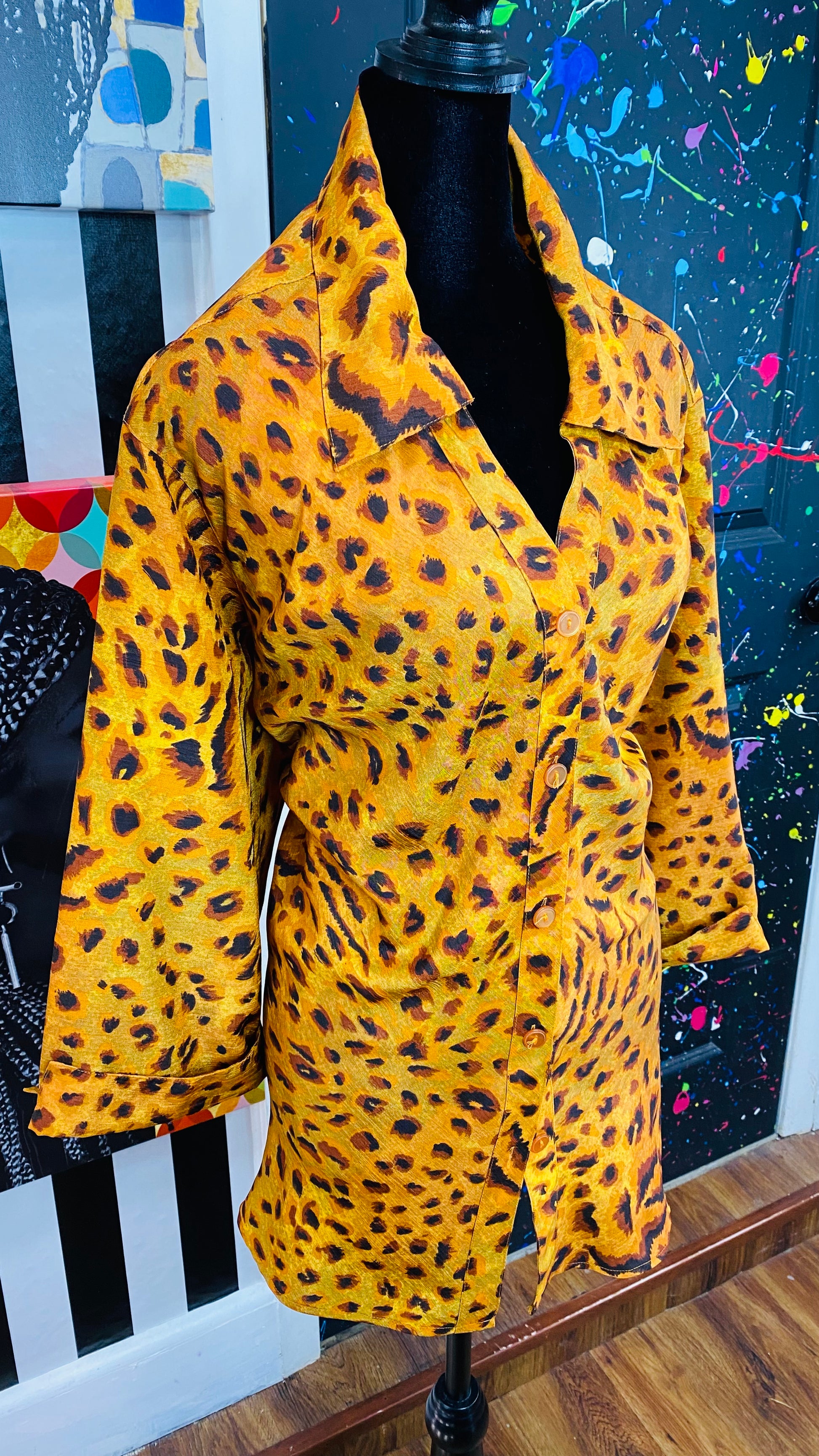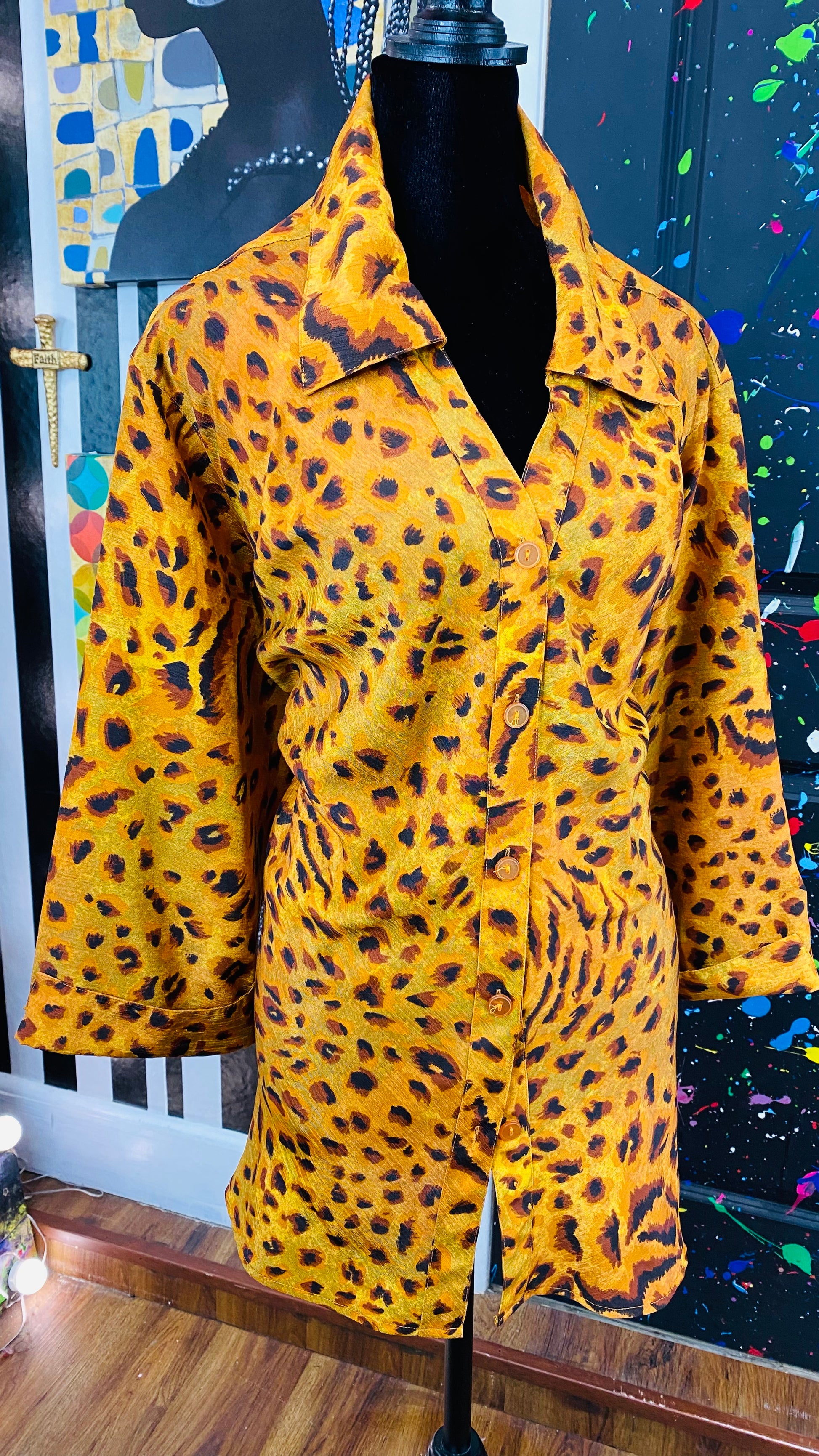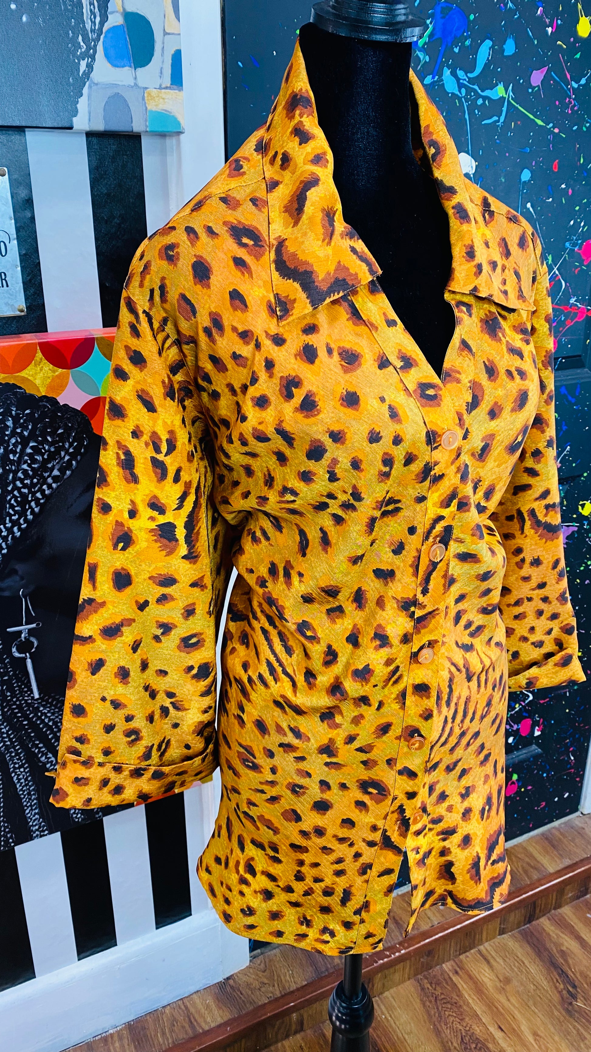 Vintage 3/4 Sleeve Cheetah Print Blouse
