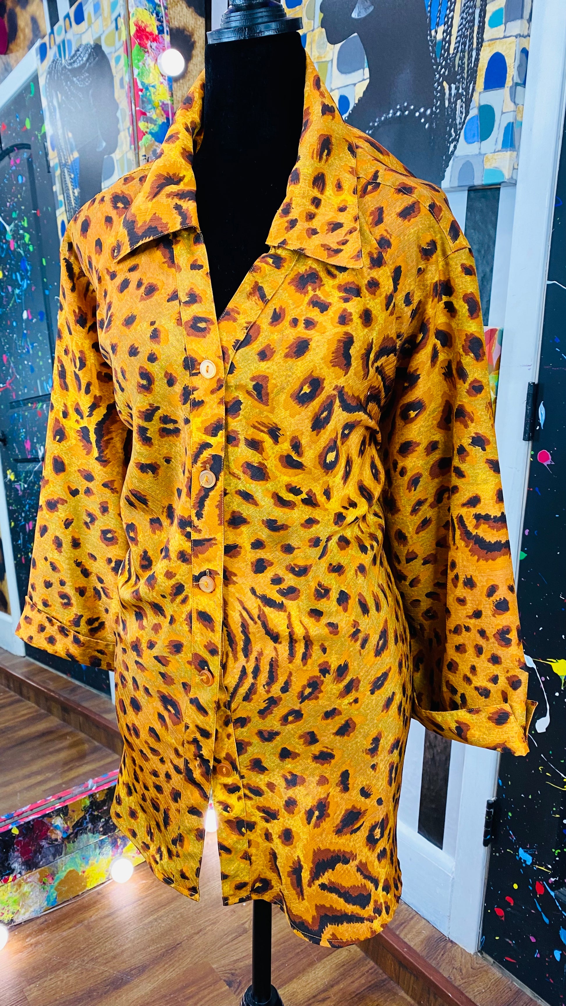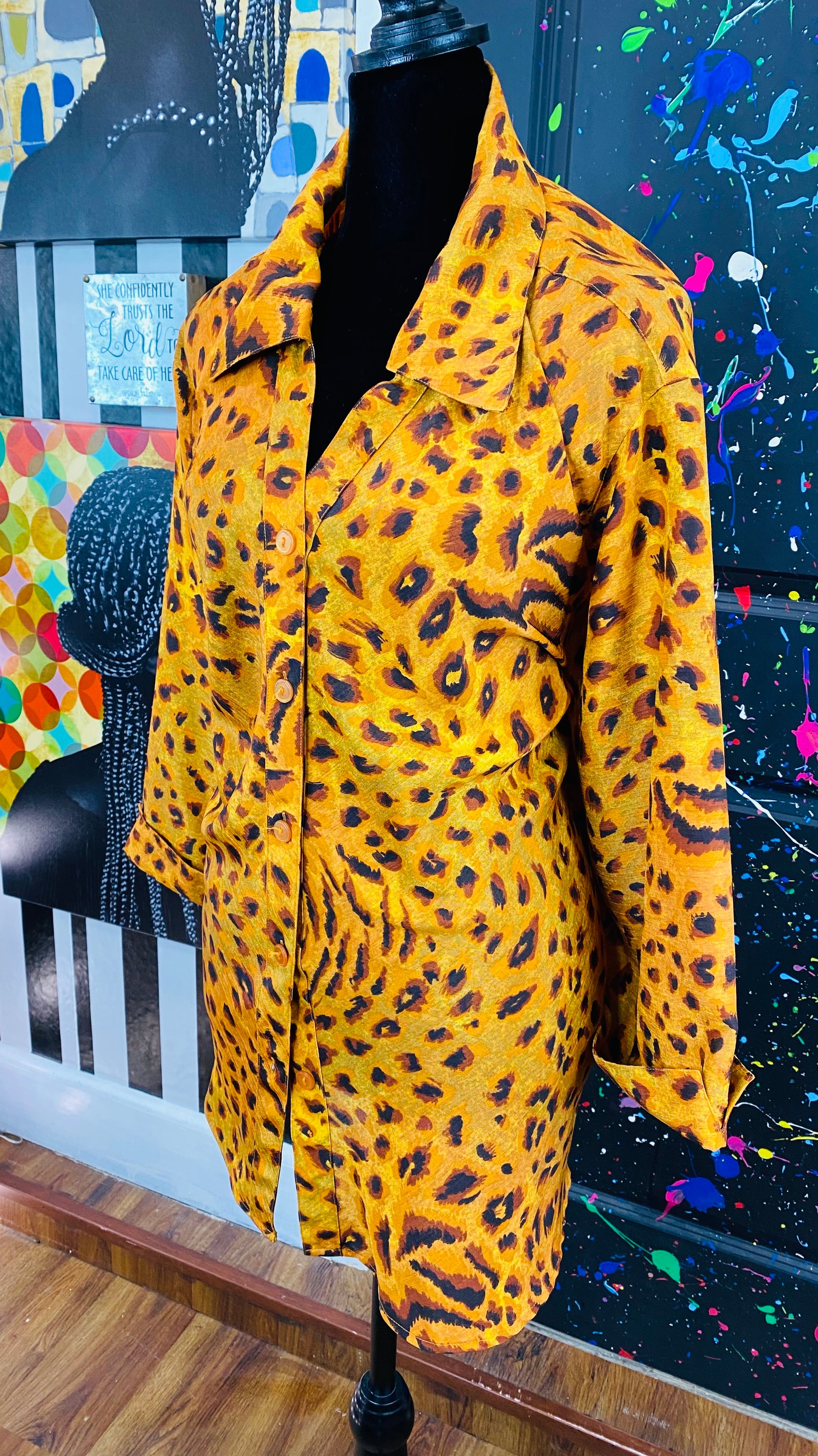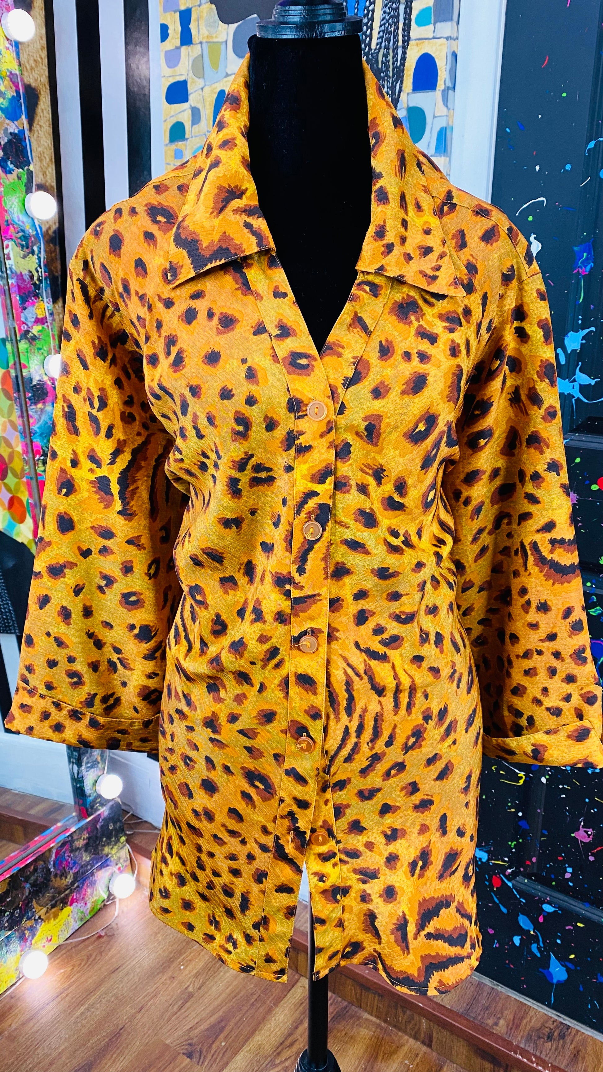 Vintage 3/4 Sleeve Cheetah Print Blouse