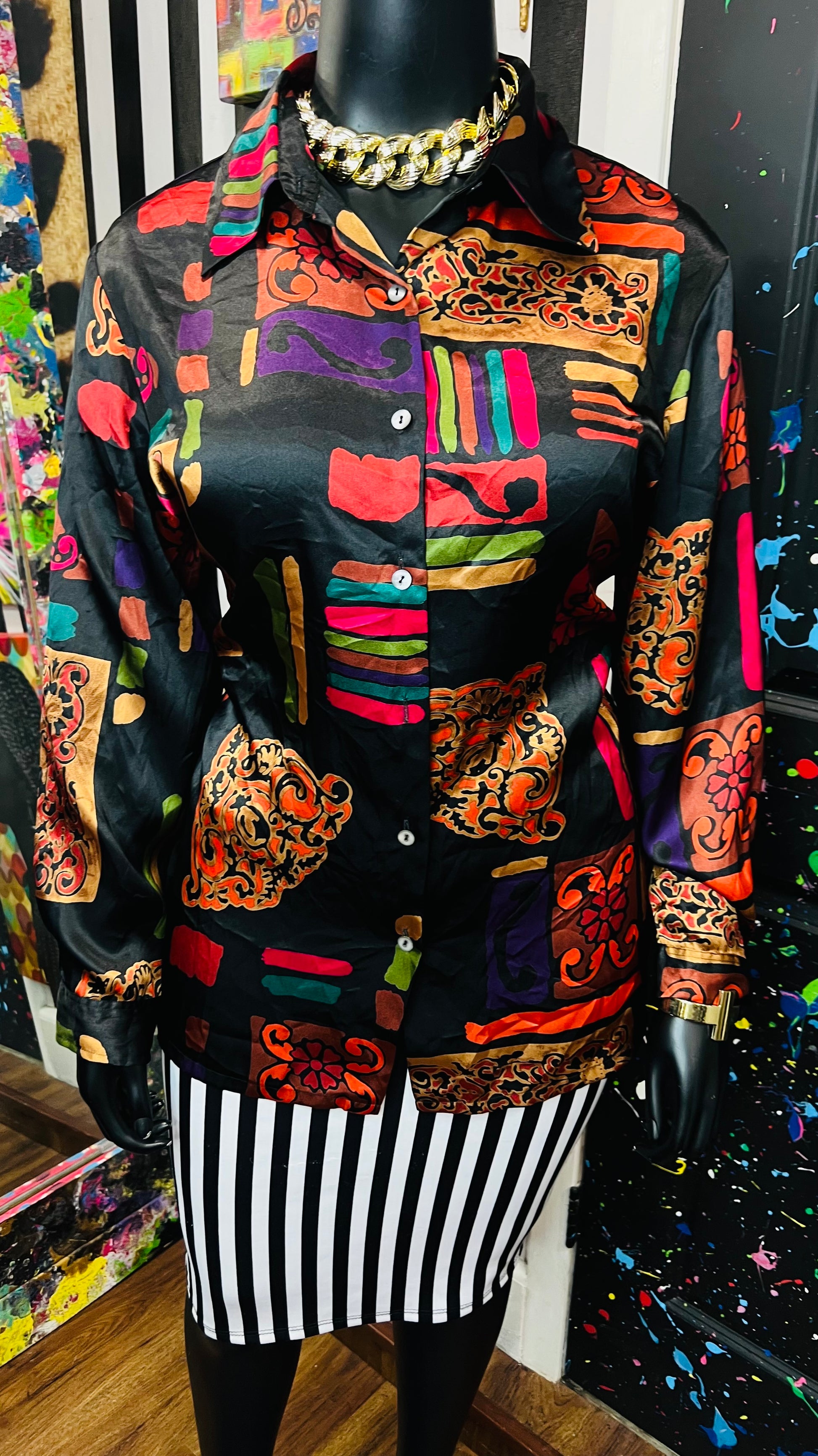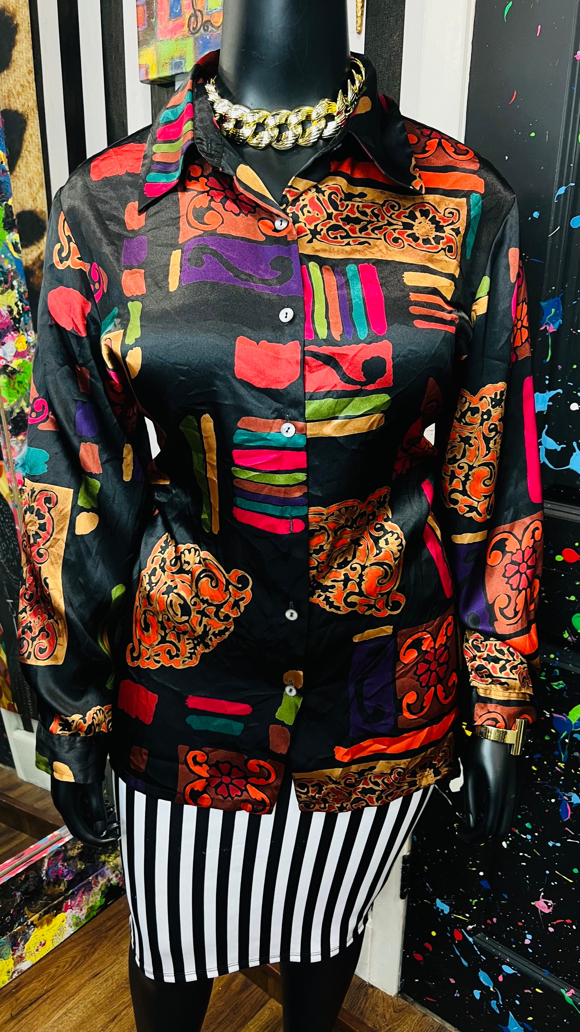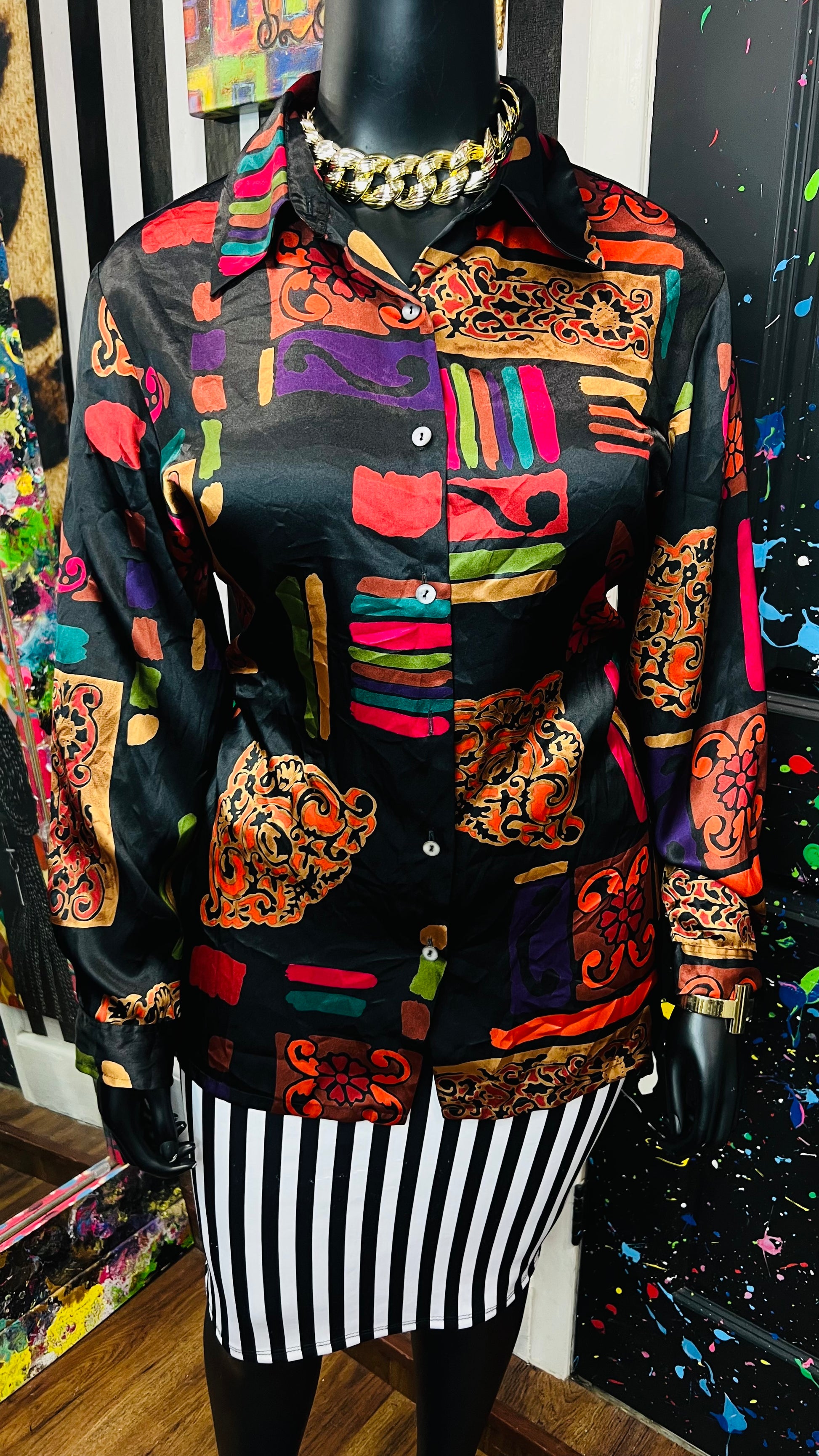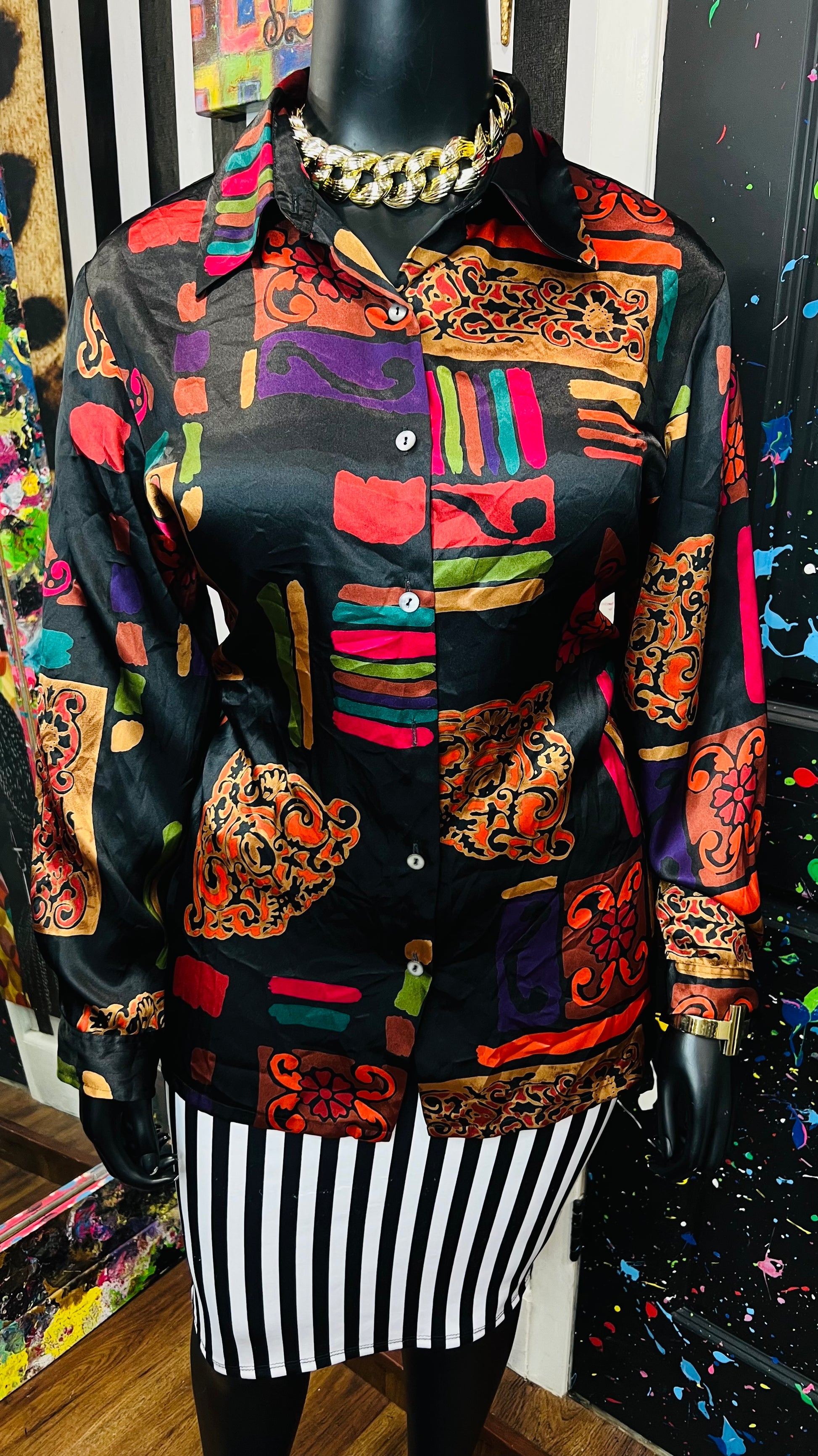 Vintage Abstract Long Sleeve Blouse (18/20)