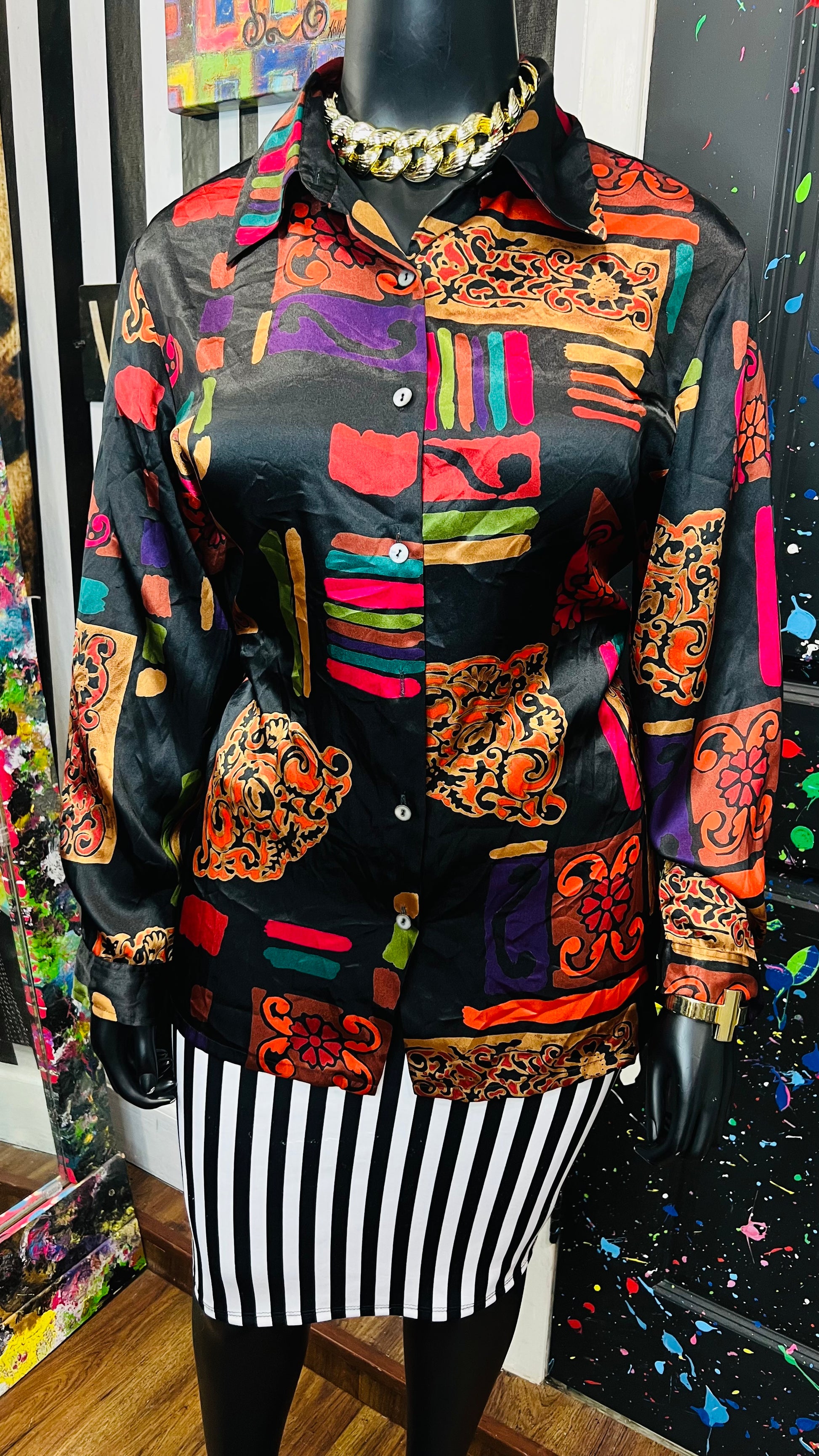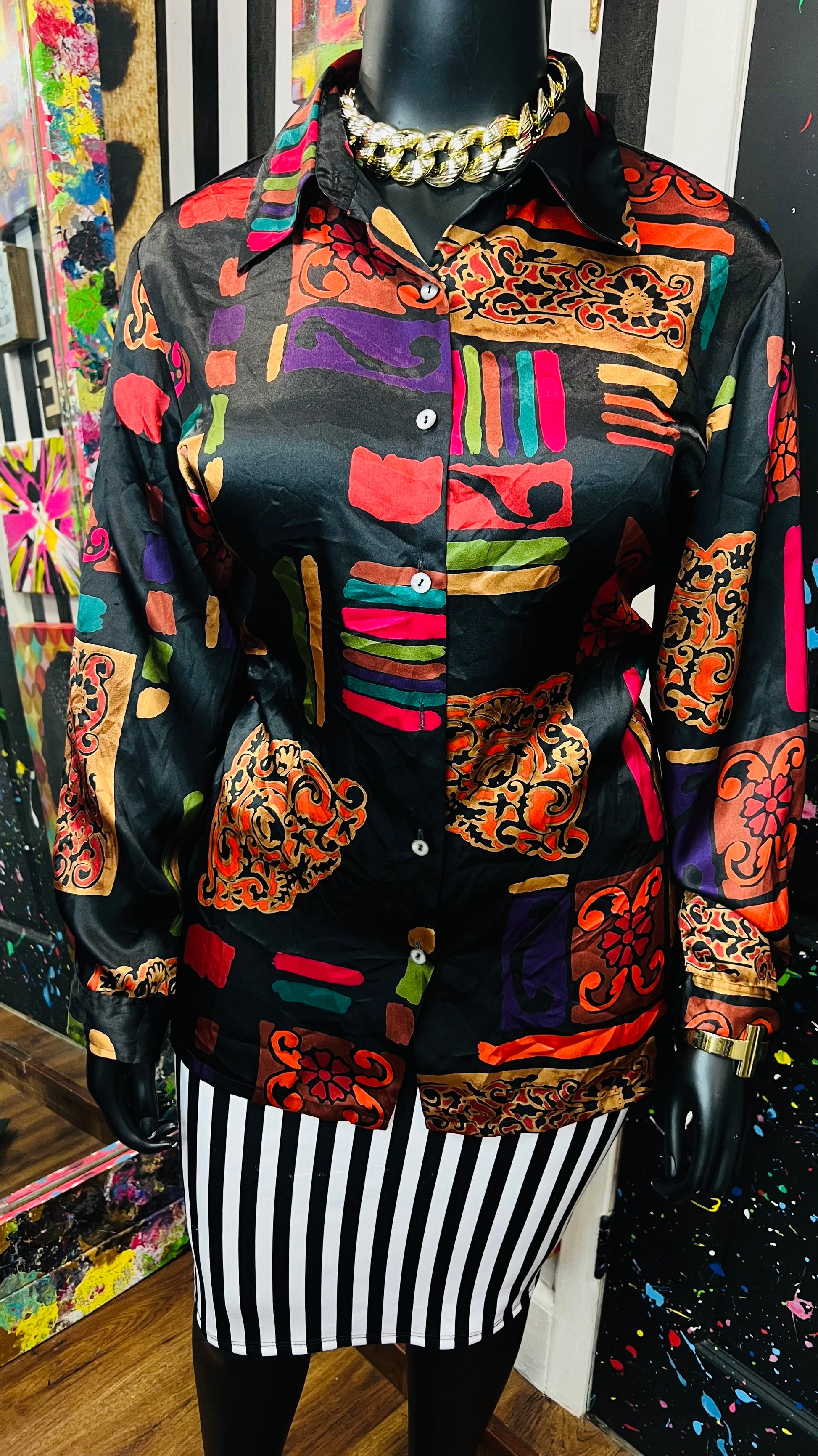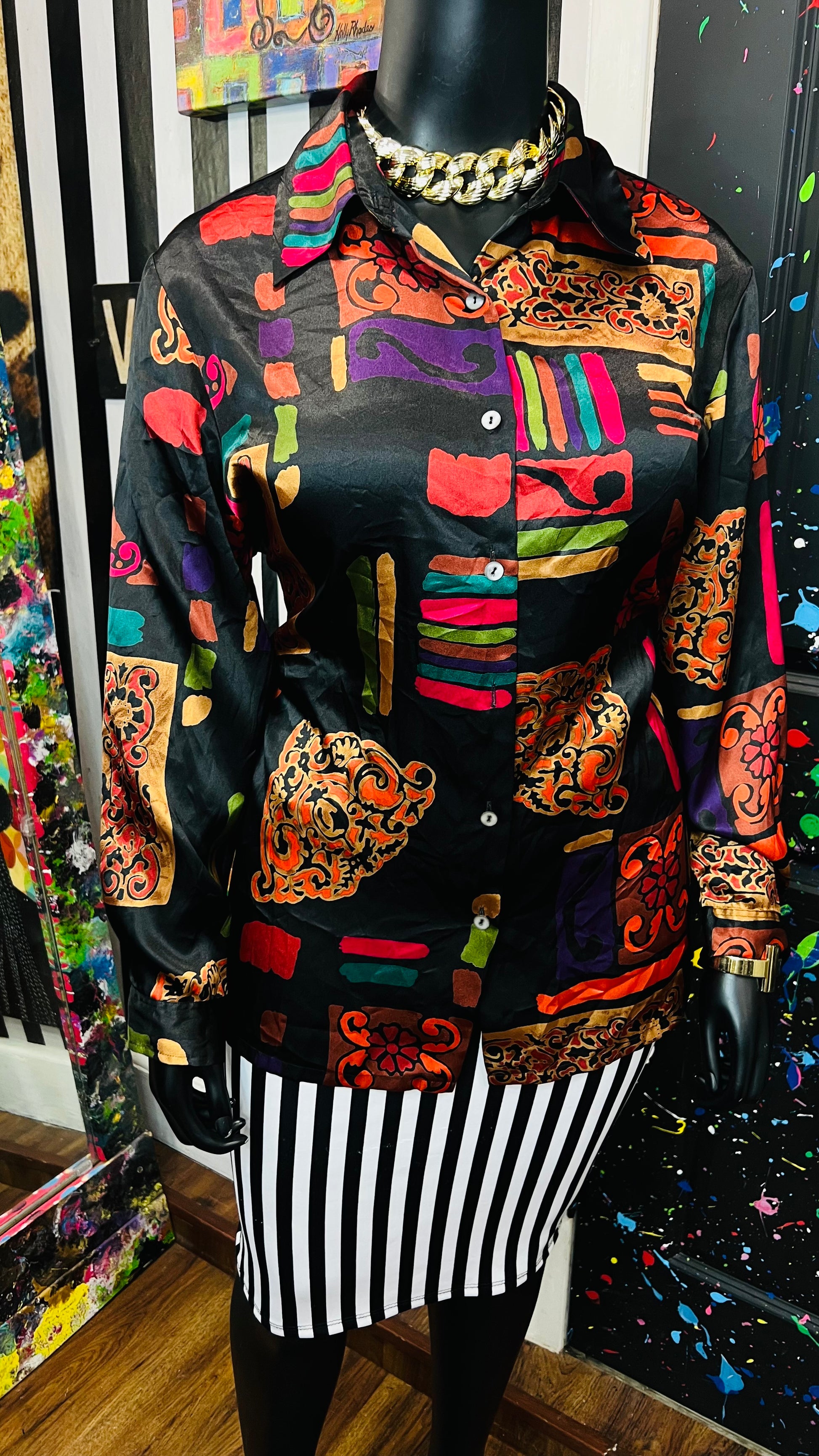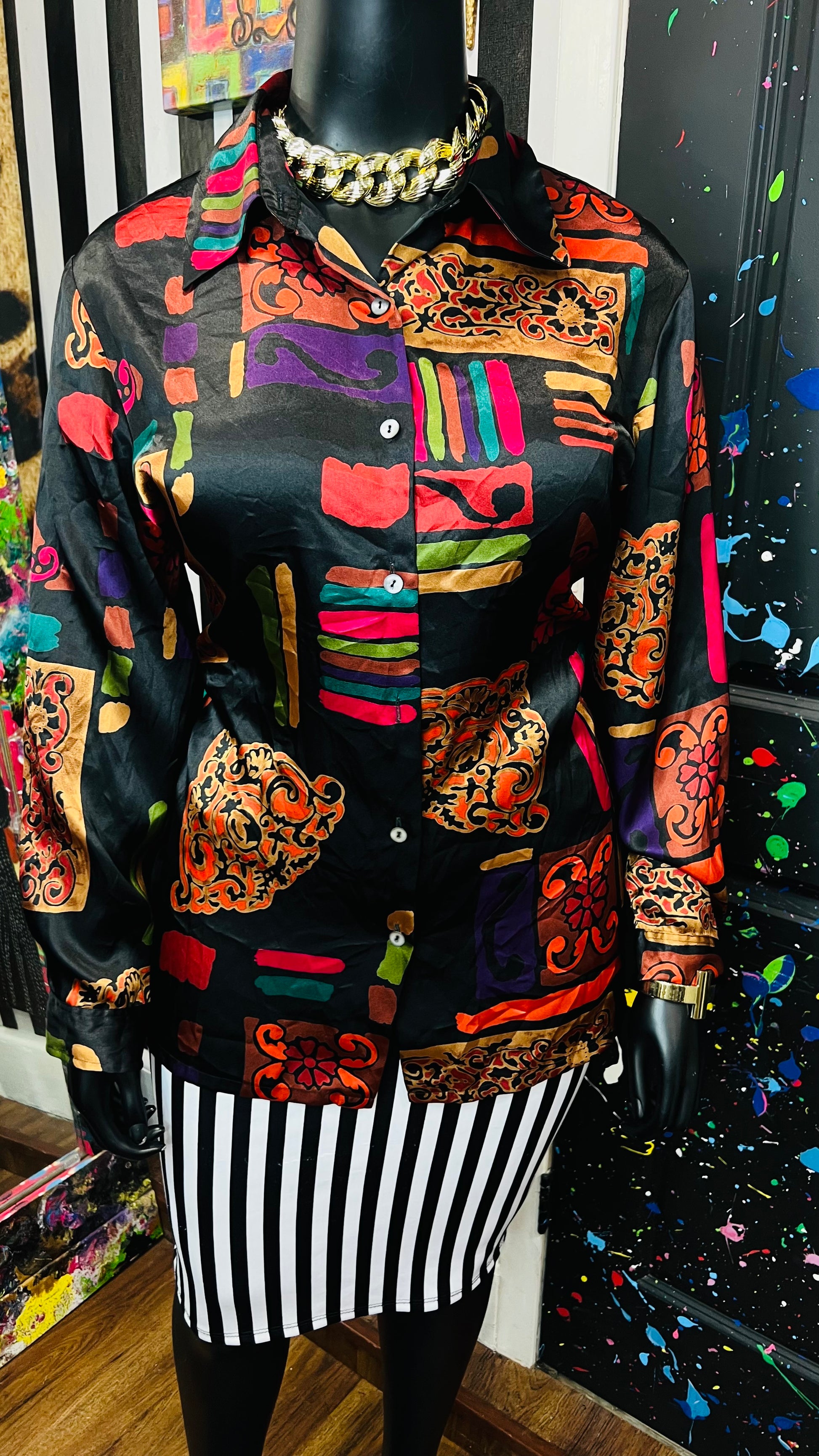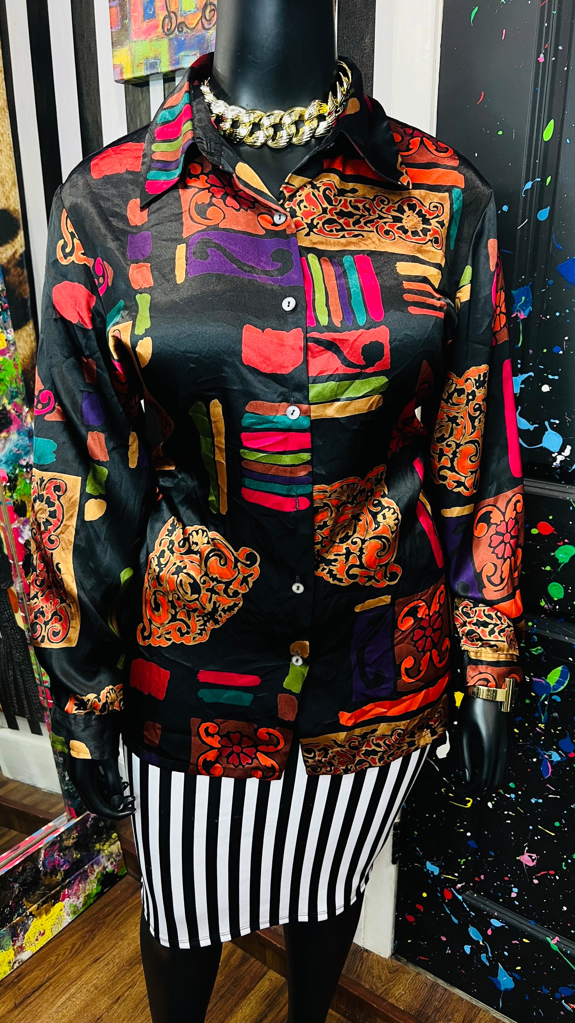 Vintage Abstract Long Sleeve Blouse (18/20)