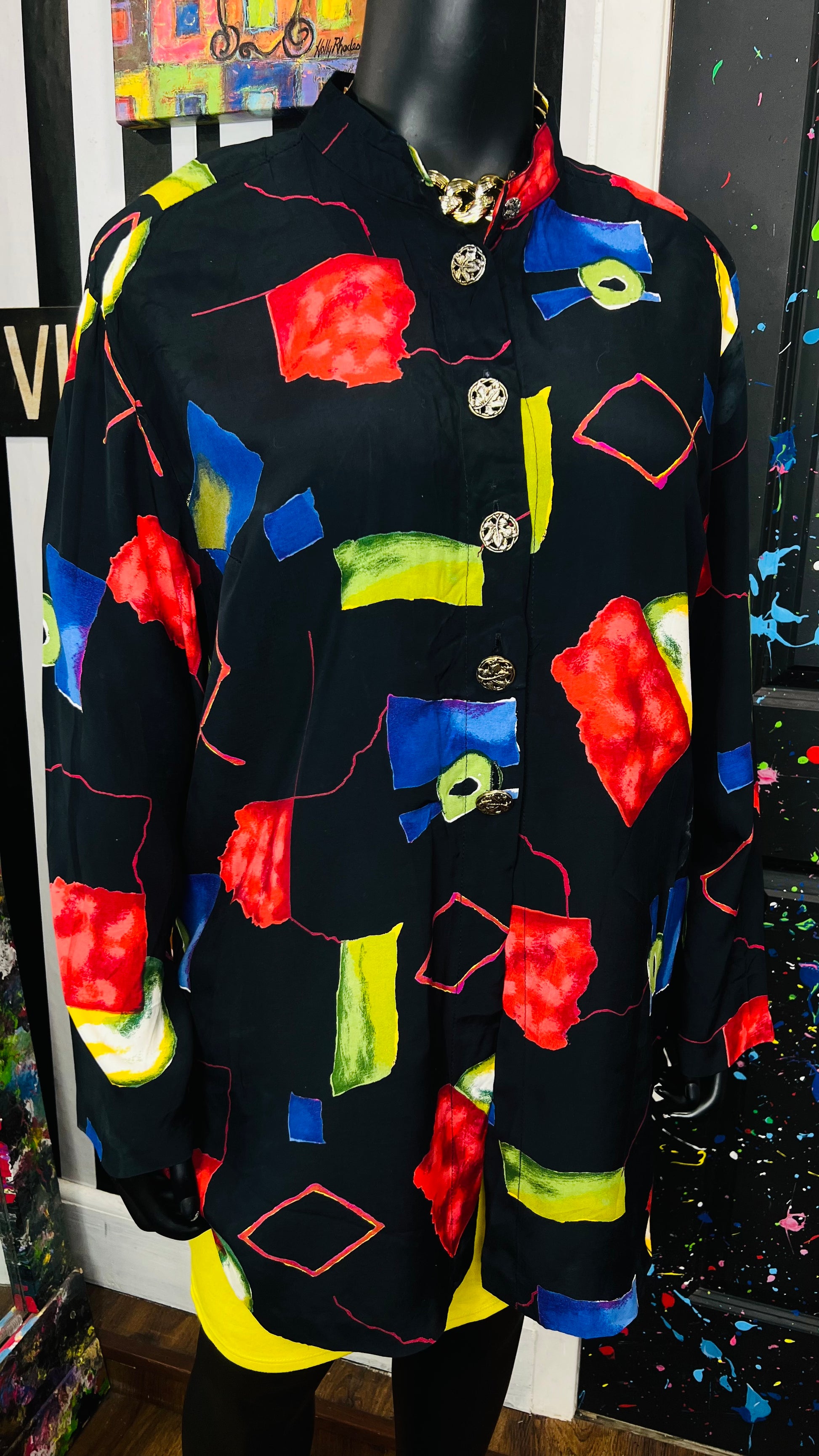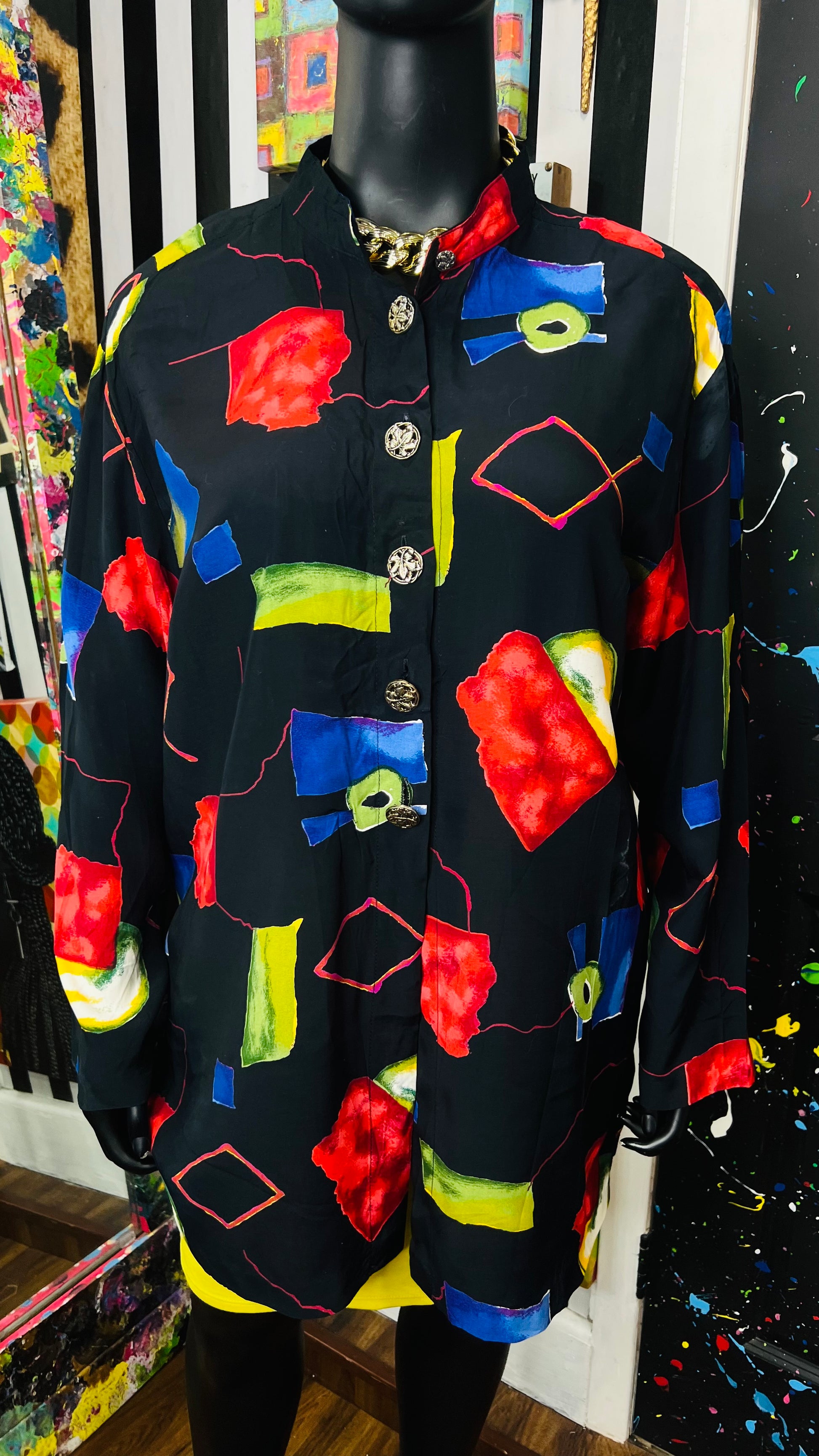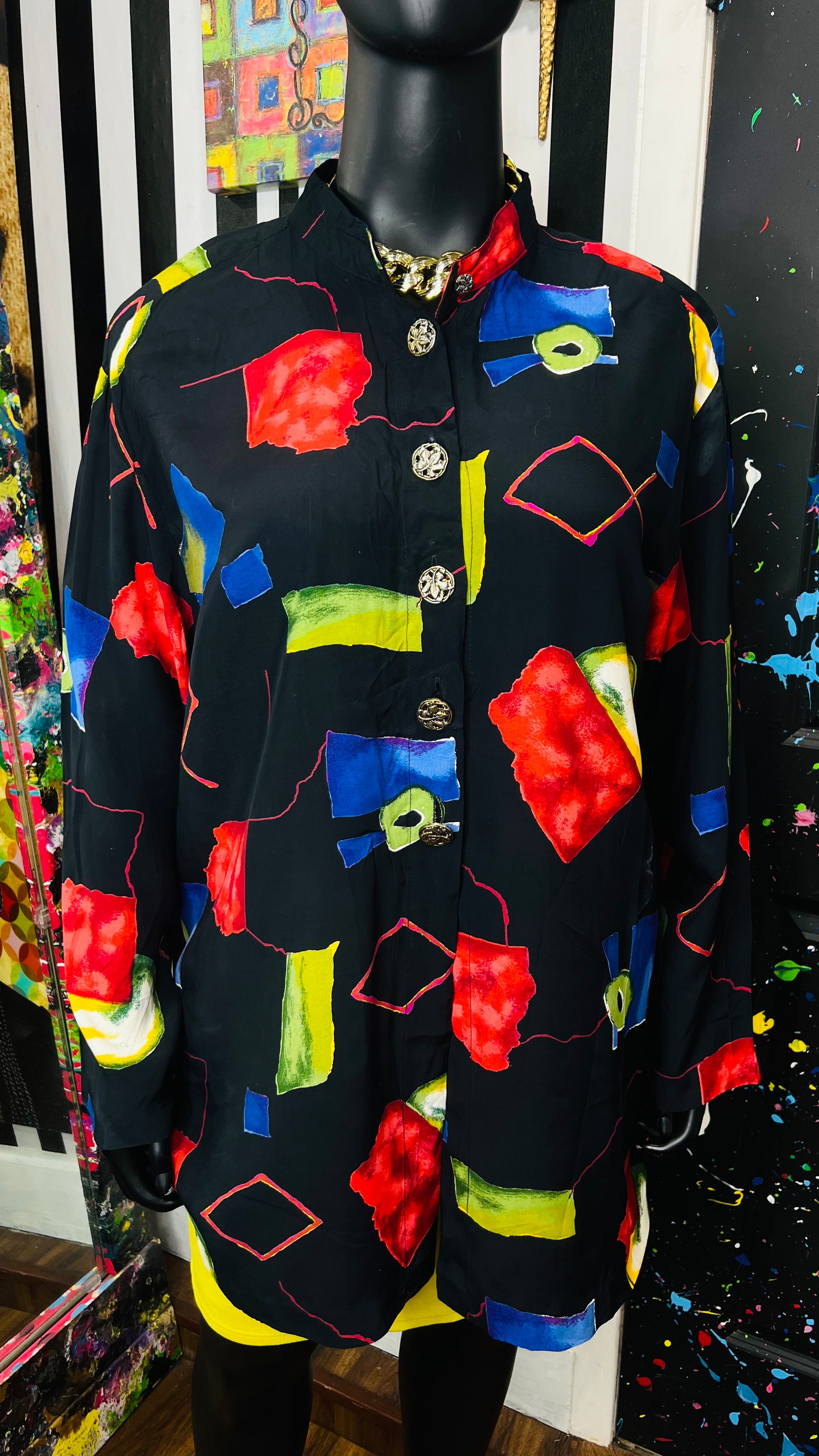 Vintage Abstract Long Sleeve Blouse (24W)