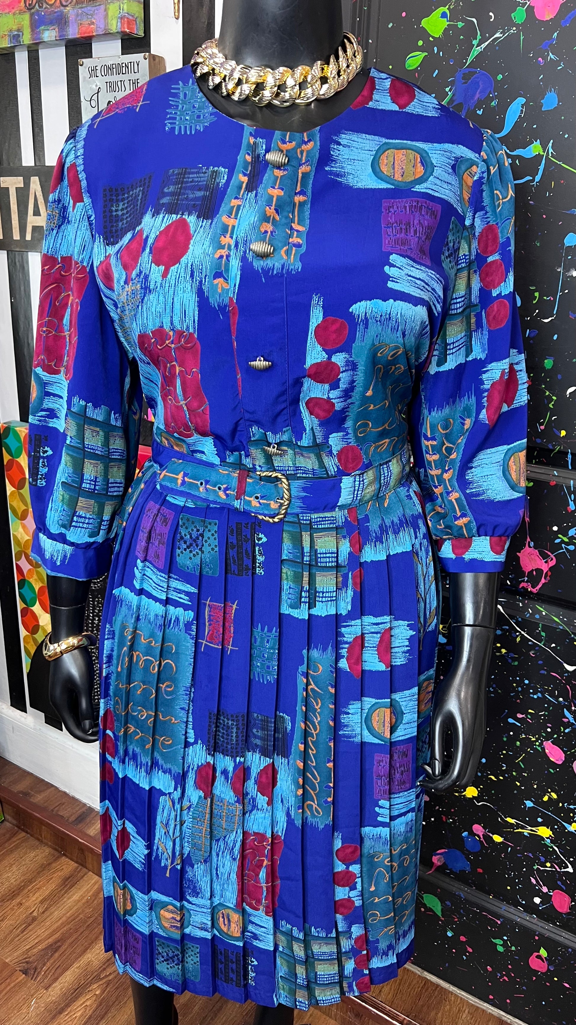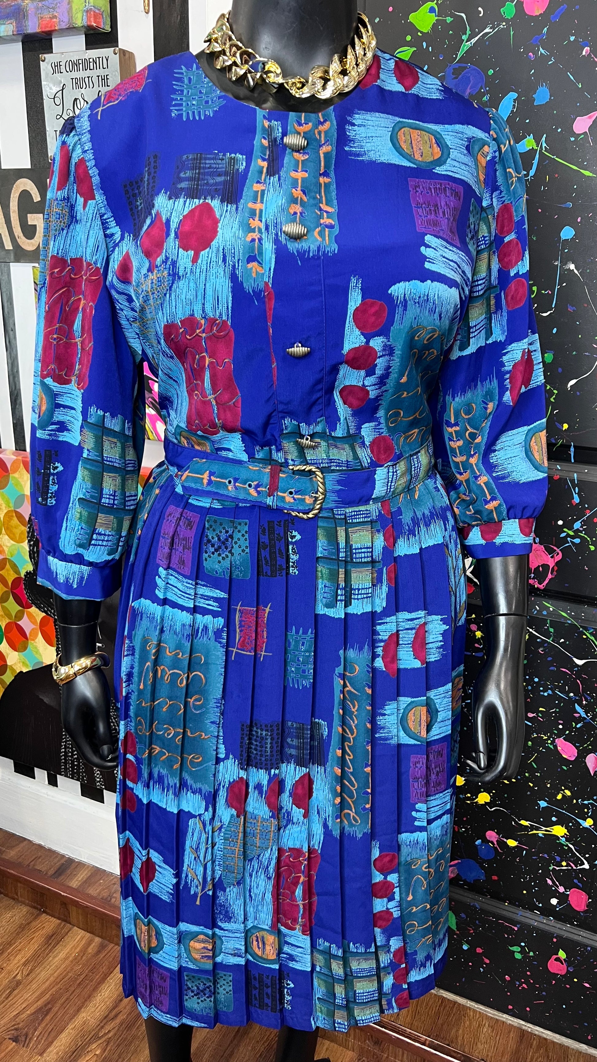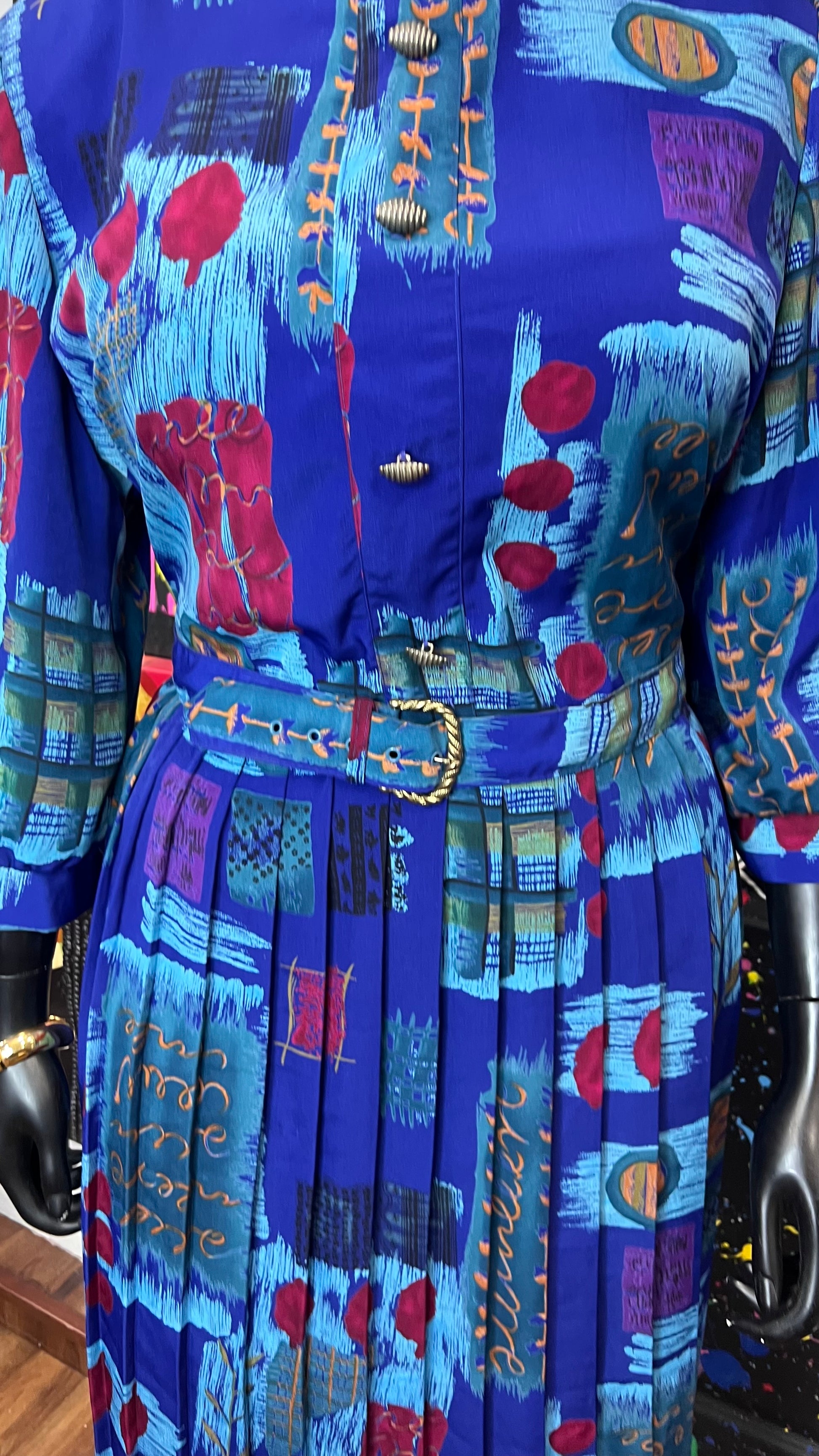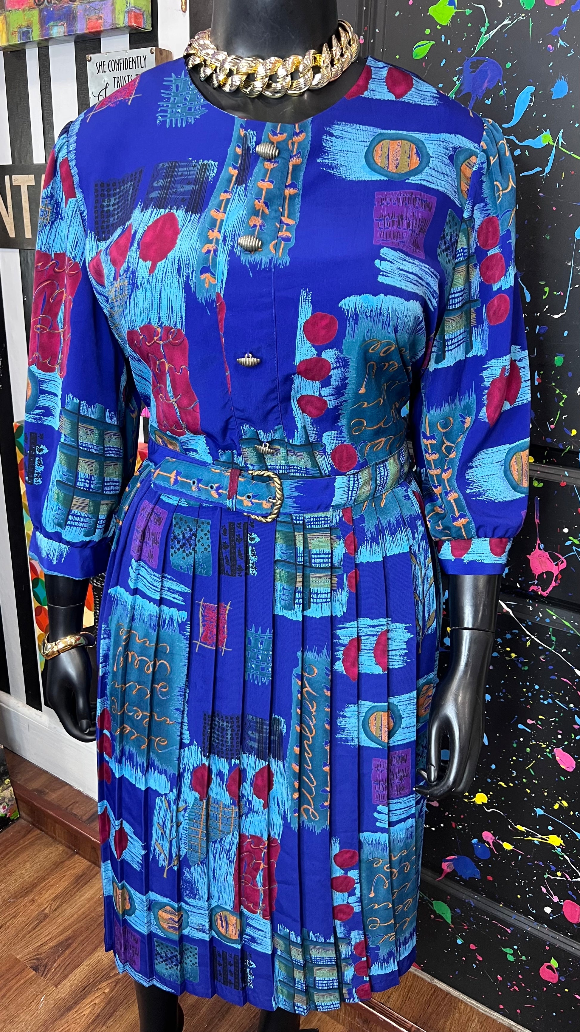 Vintage Abstract Print Dress w/ Belt (22)