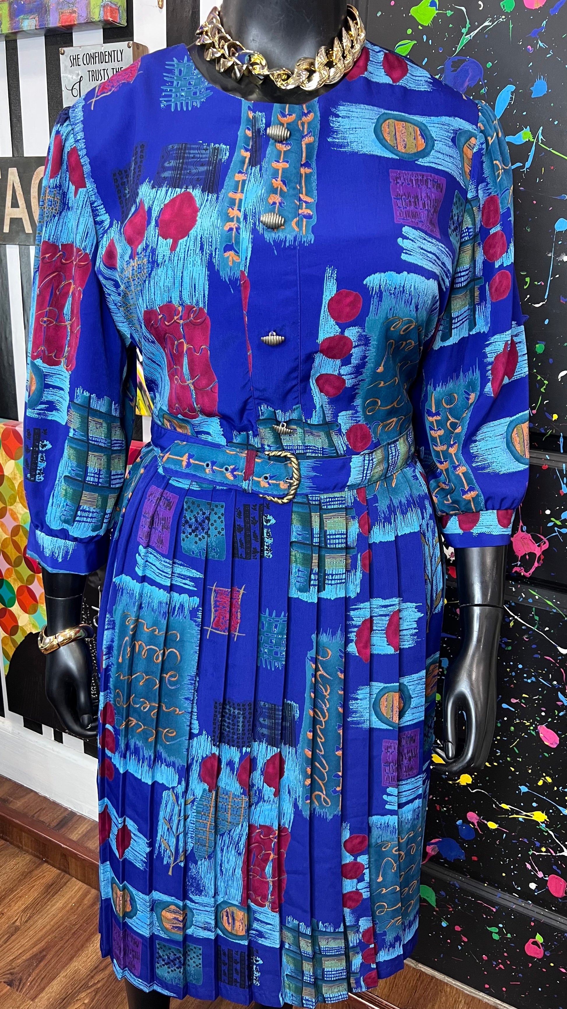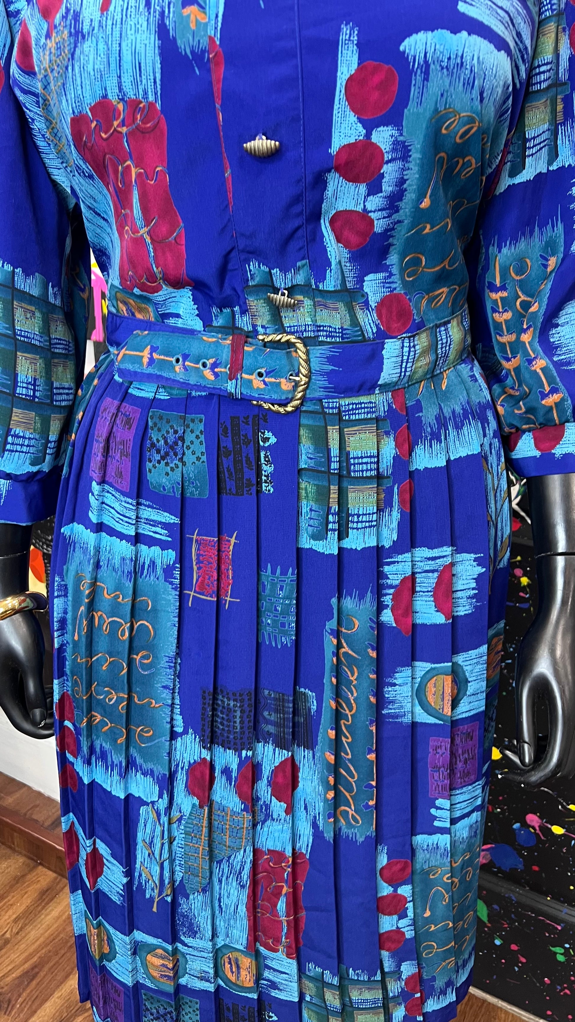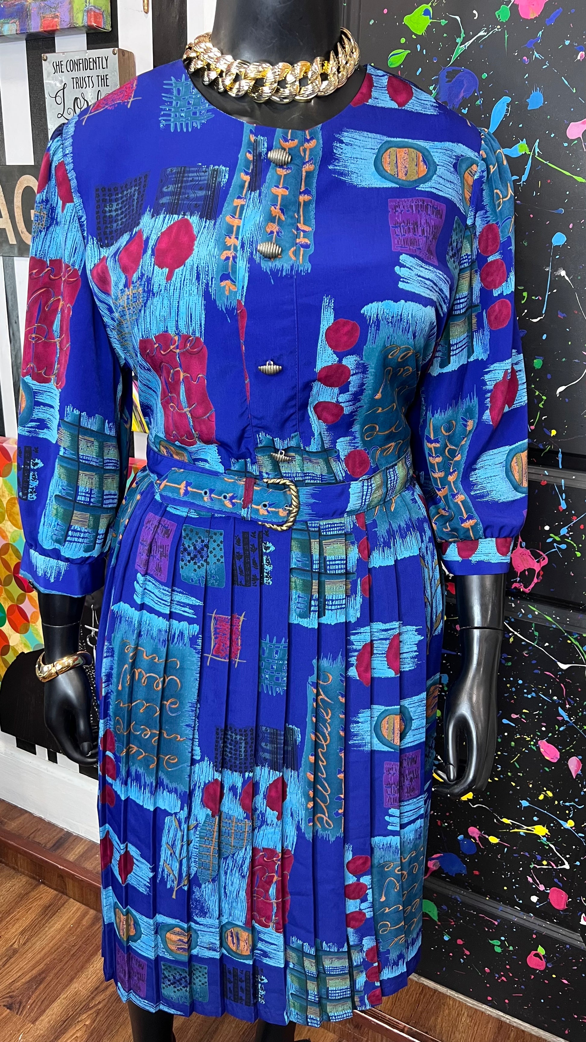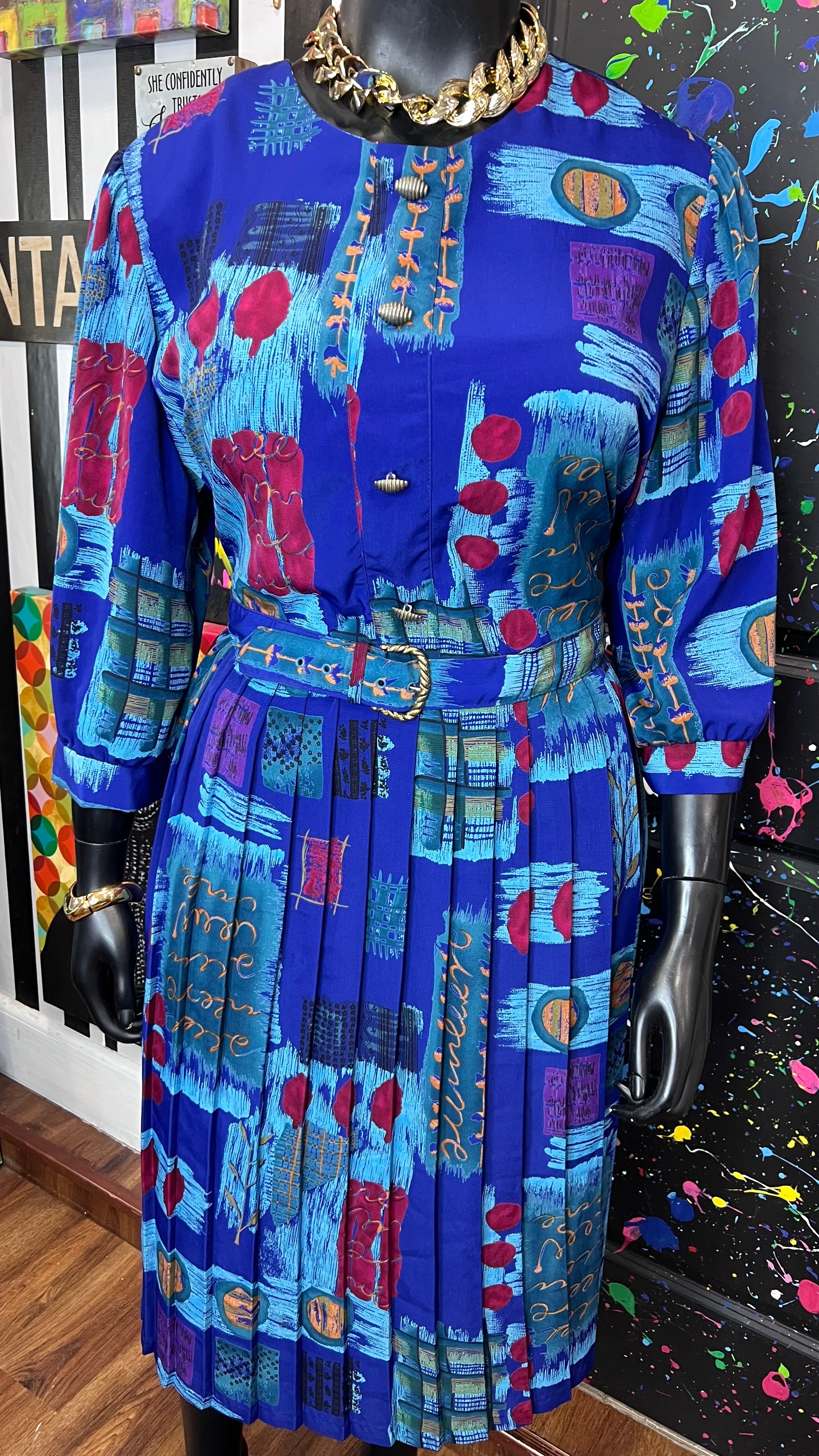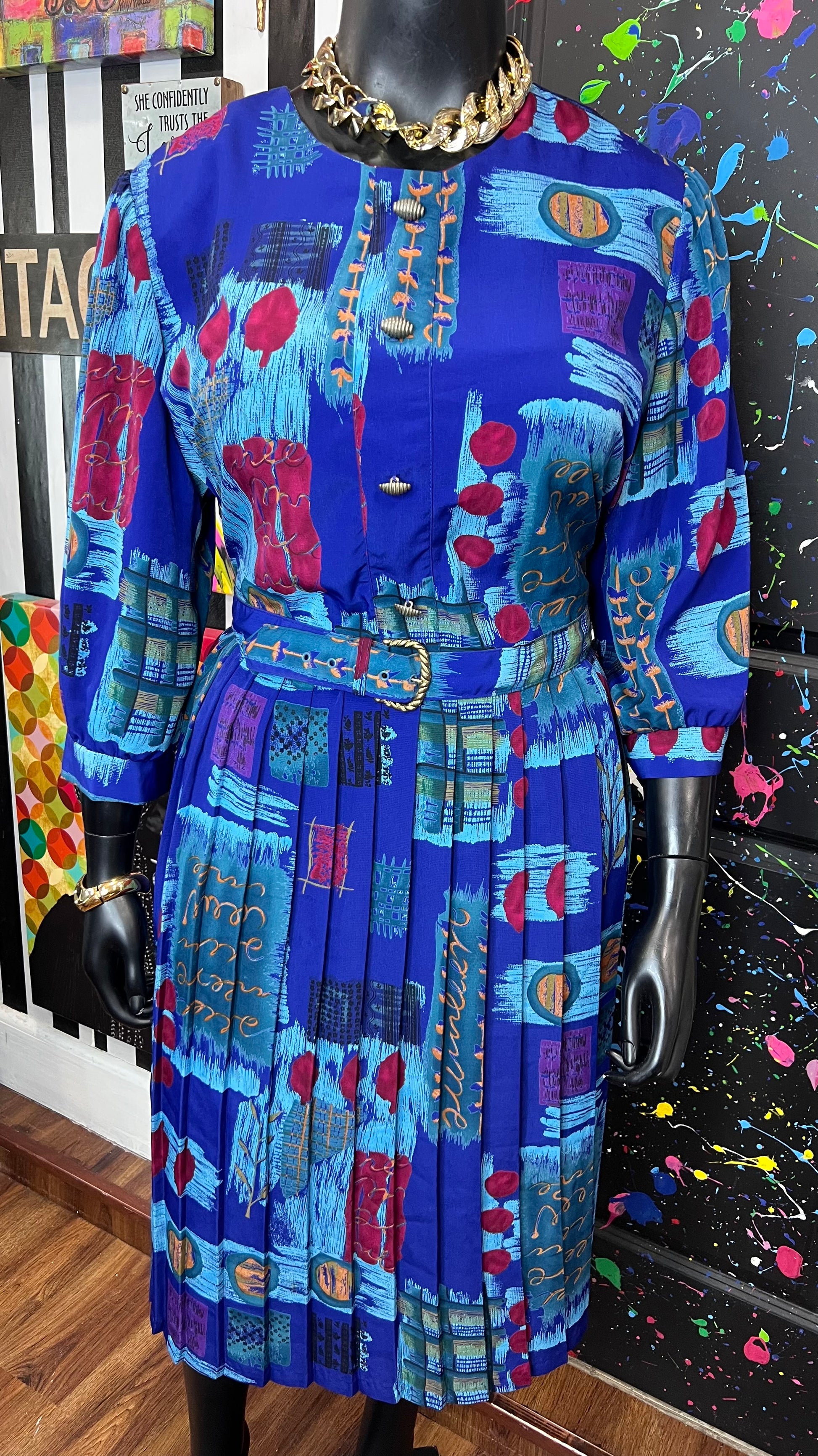 Vintage Abstract Print Dress w/ Belt (22)