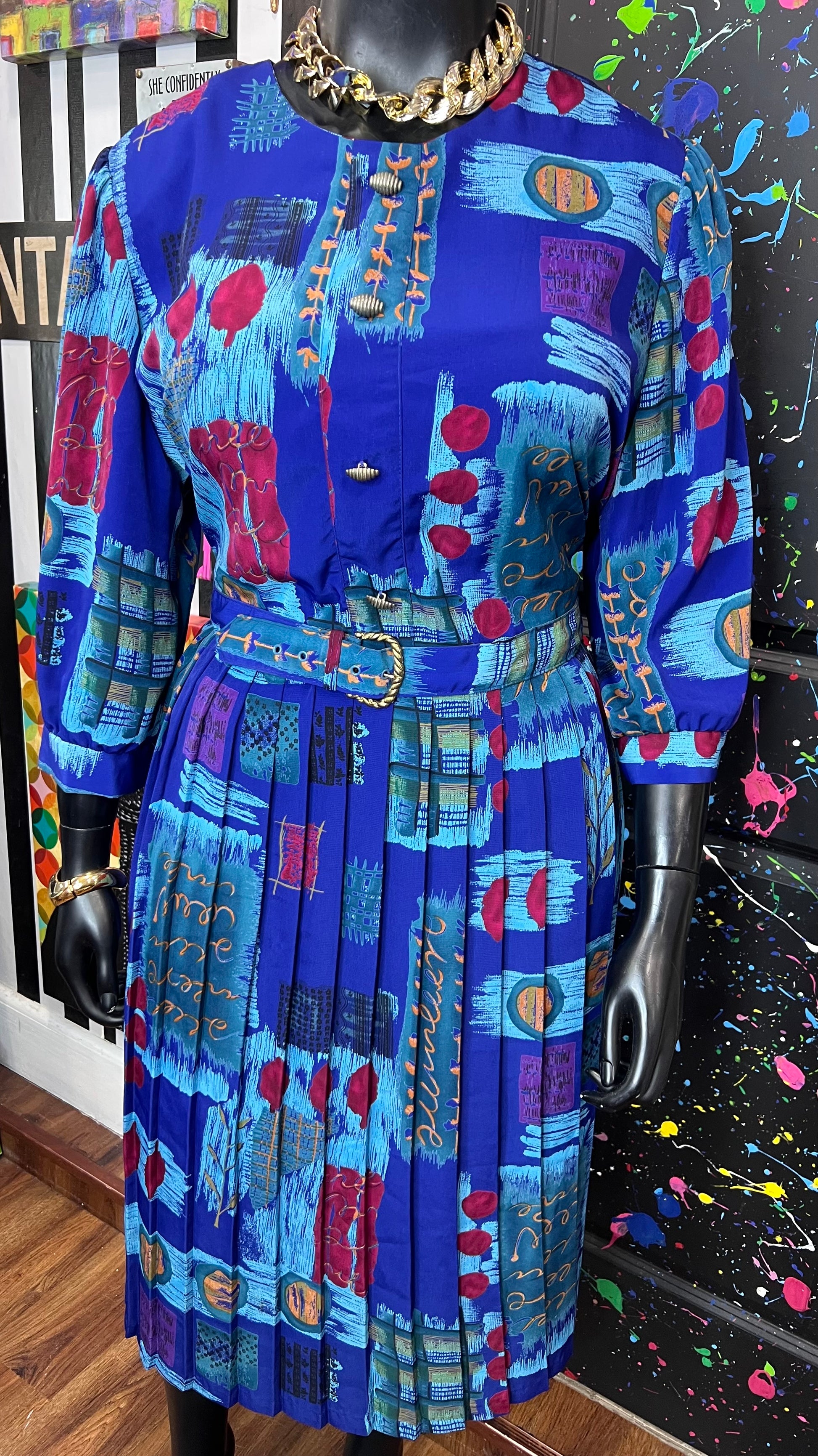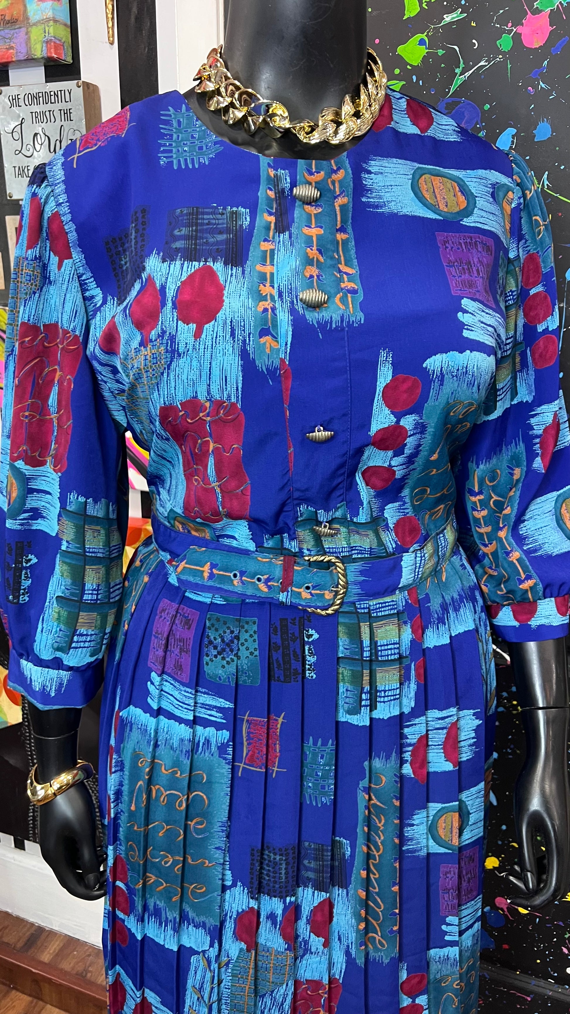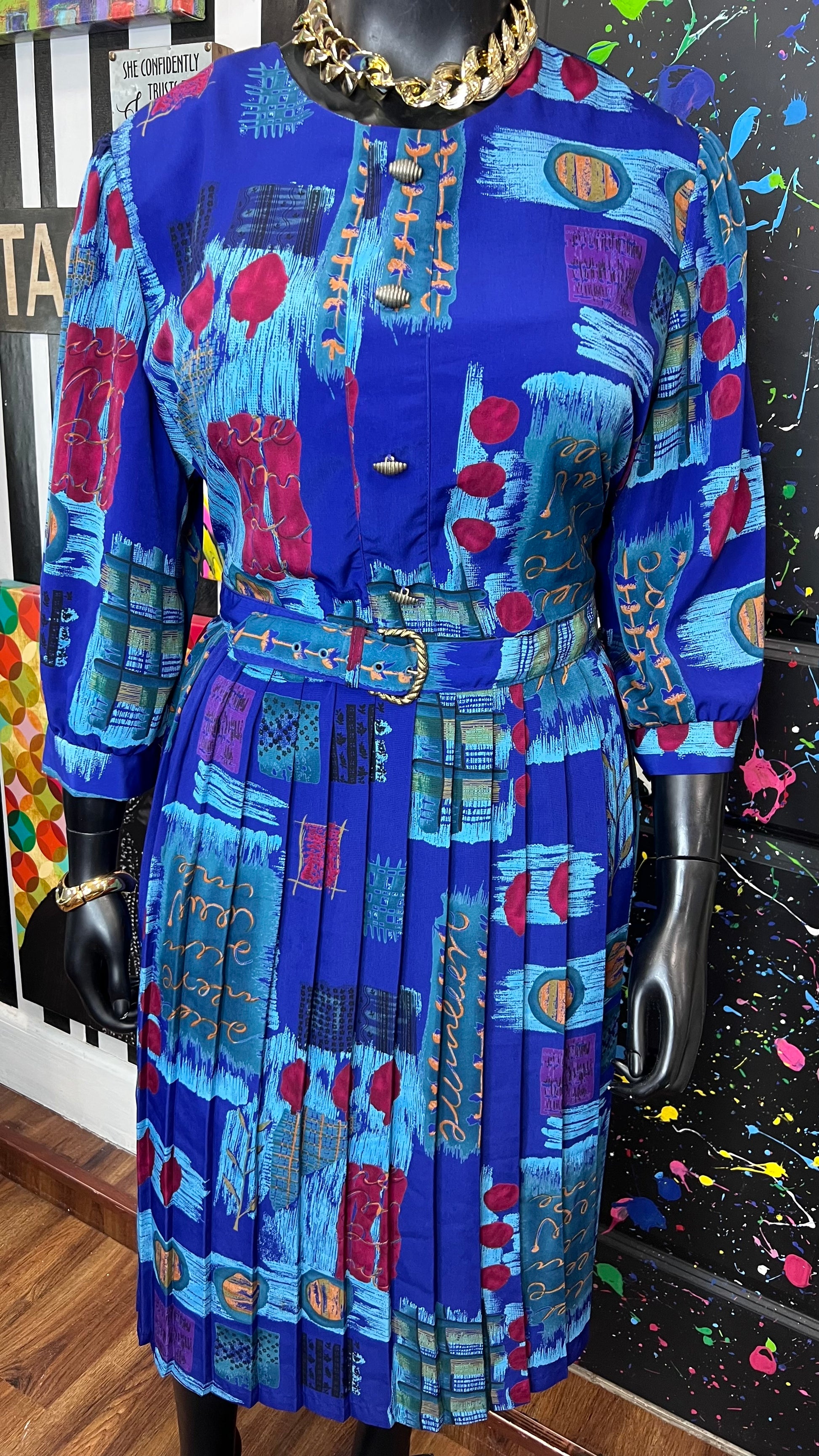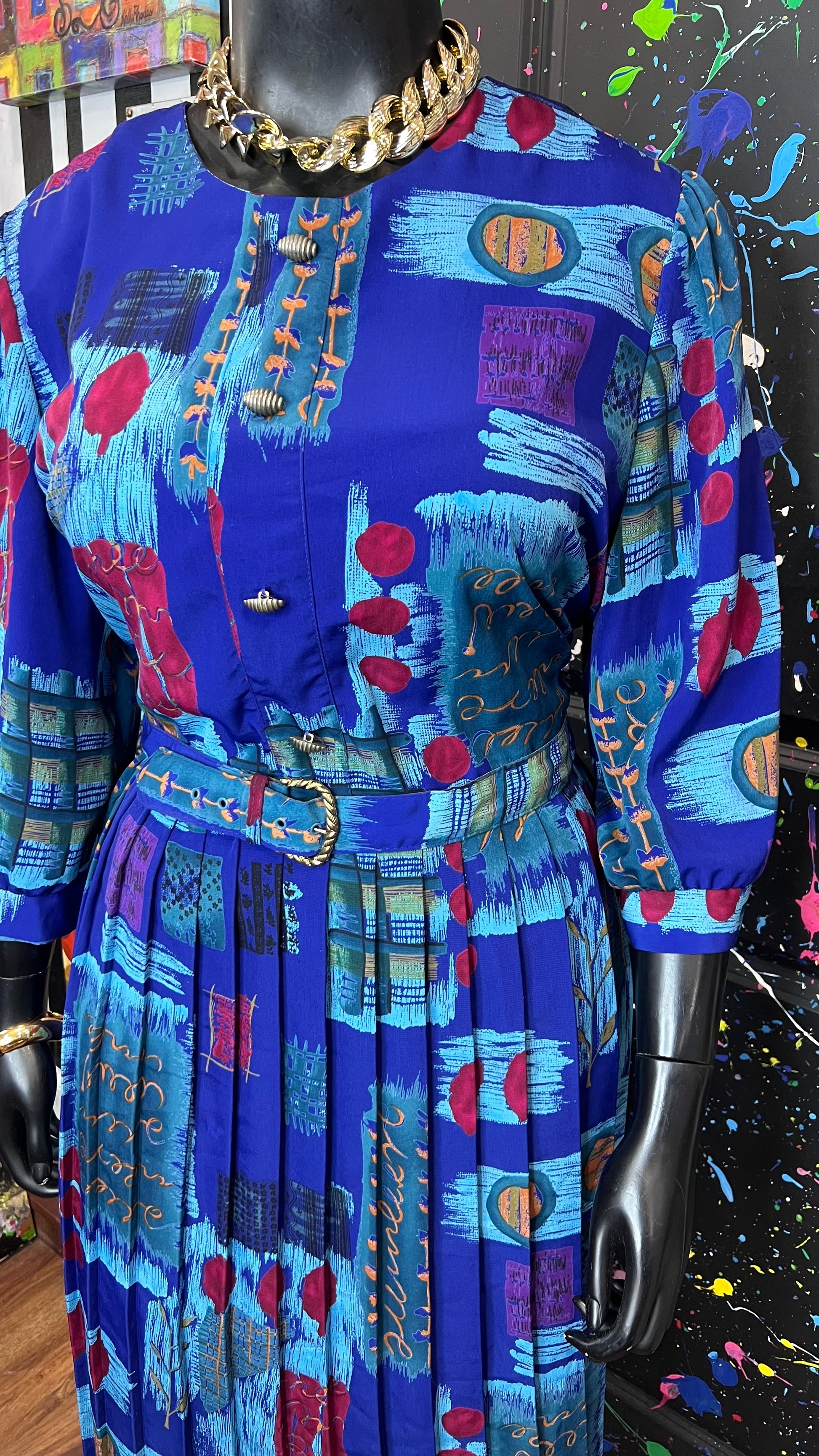 Vintage Abstract Print Dress w/ Belt (22)