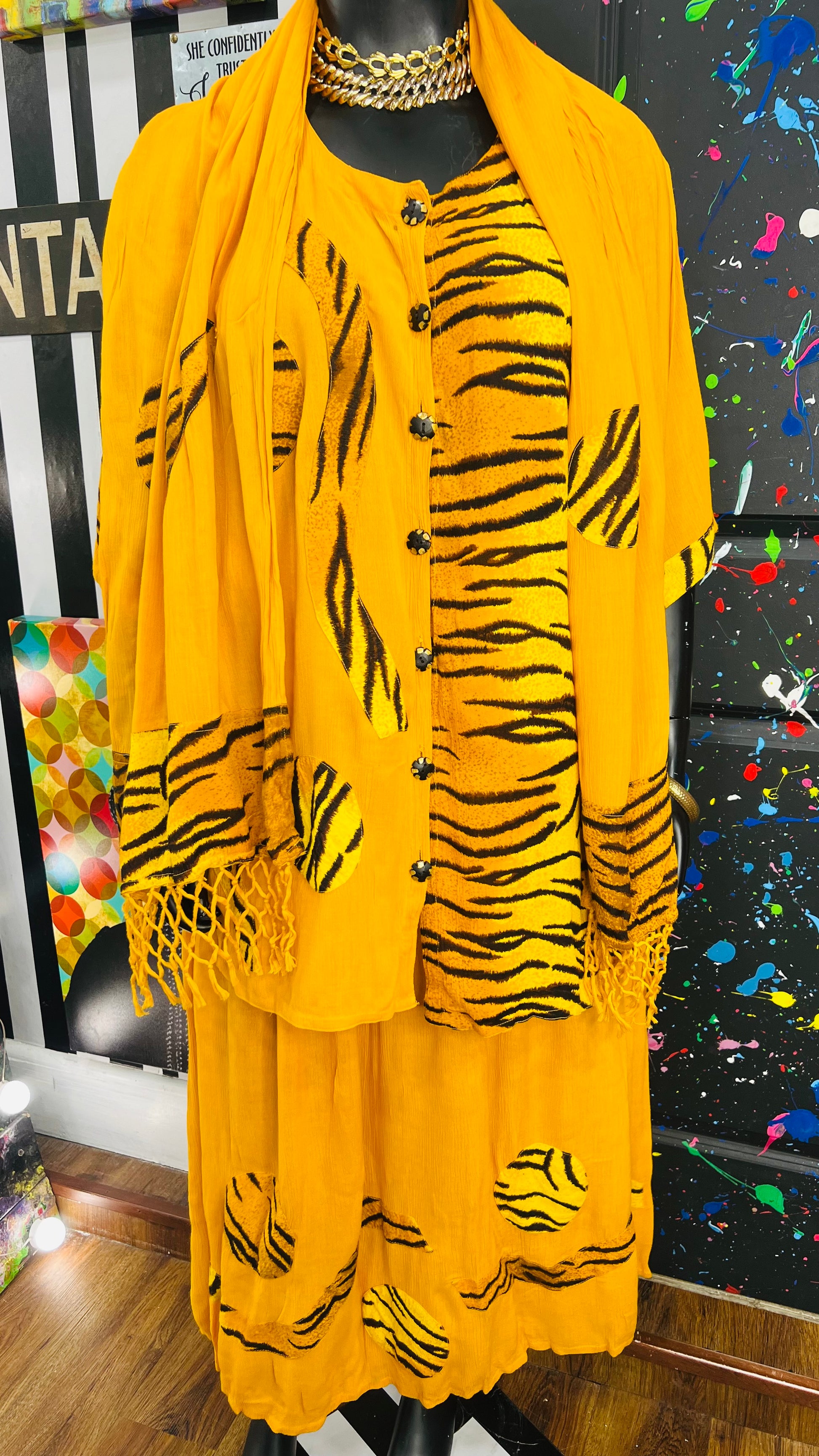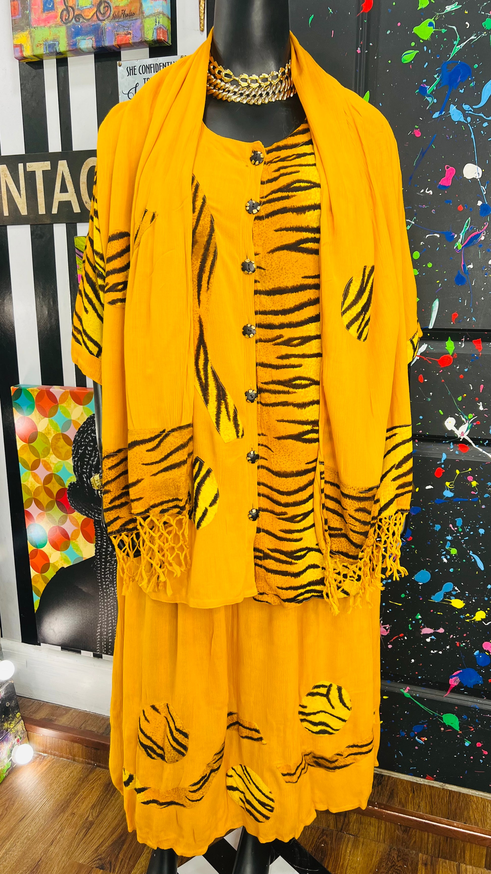 Vintage Animal Print Three Piece Rayon Set (OS)