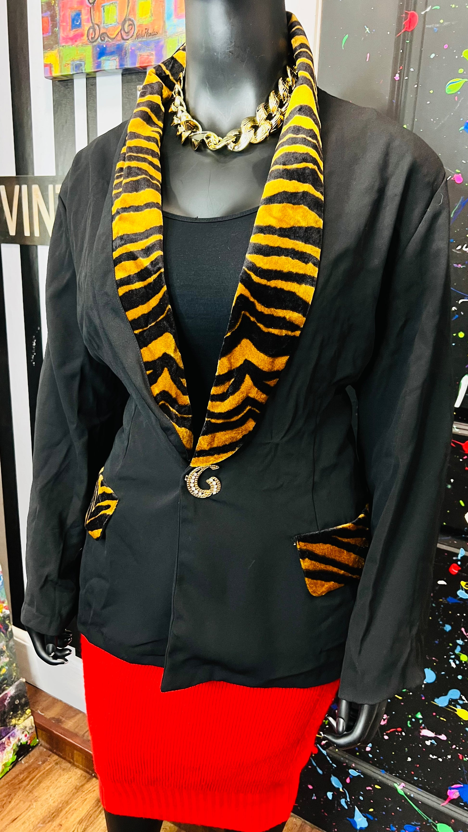 Vintage Animal Print Trim Blazer (20/22)