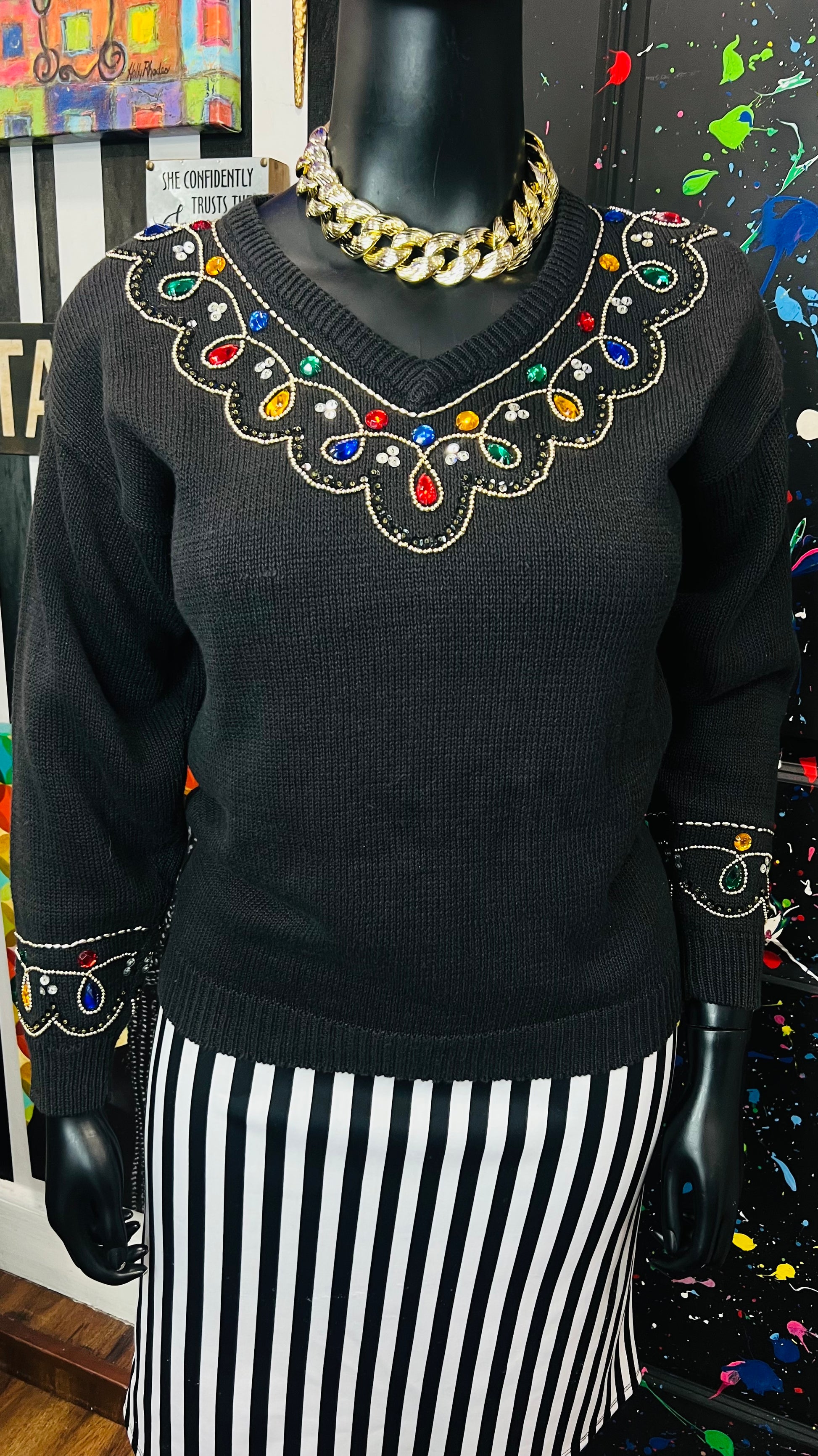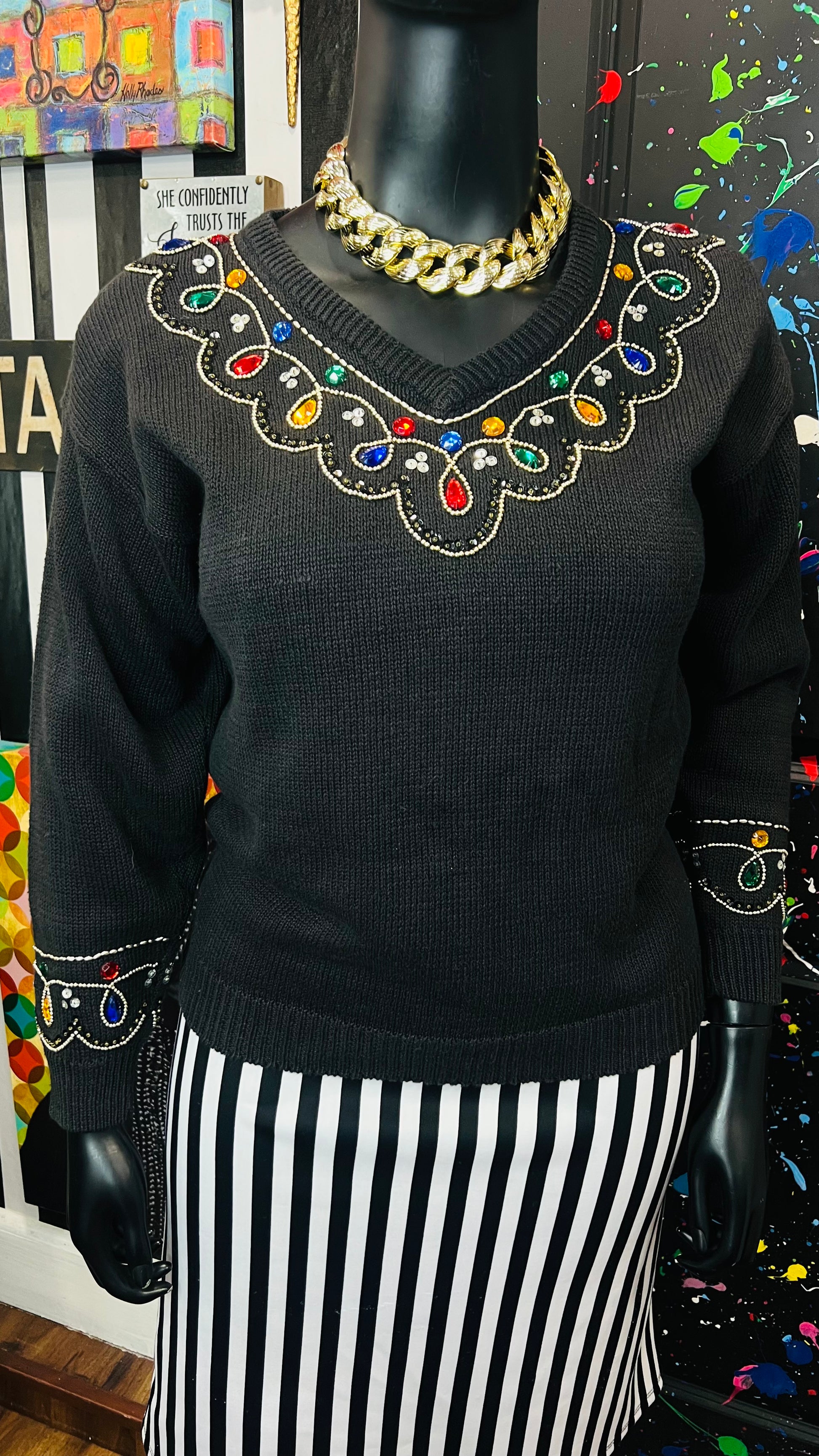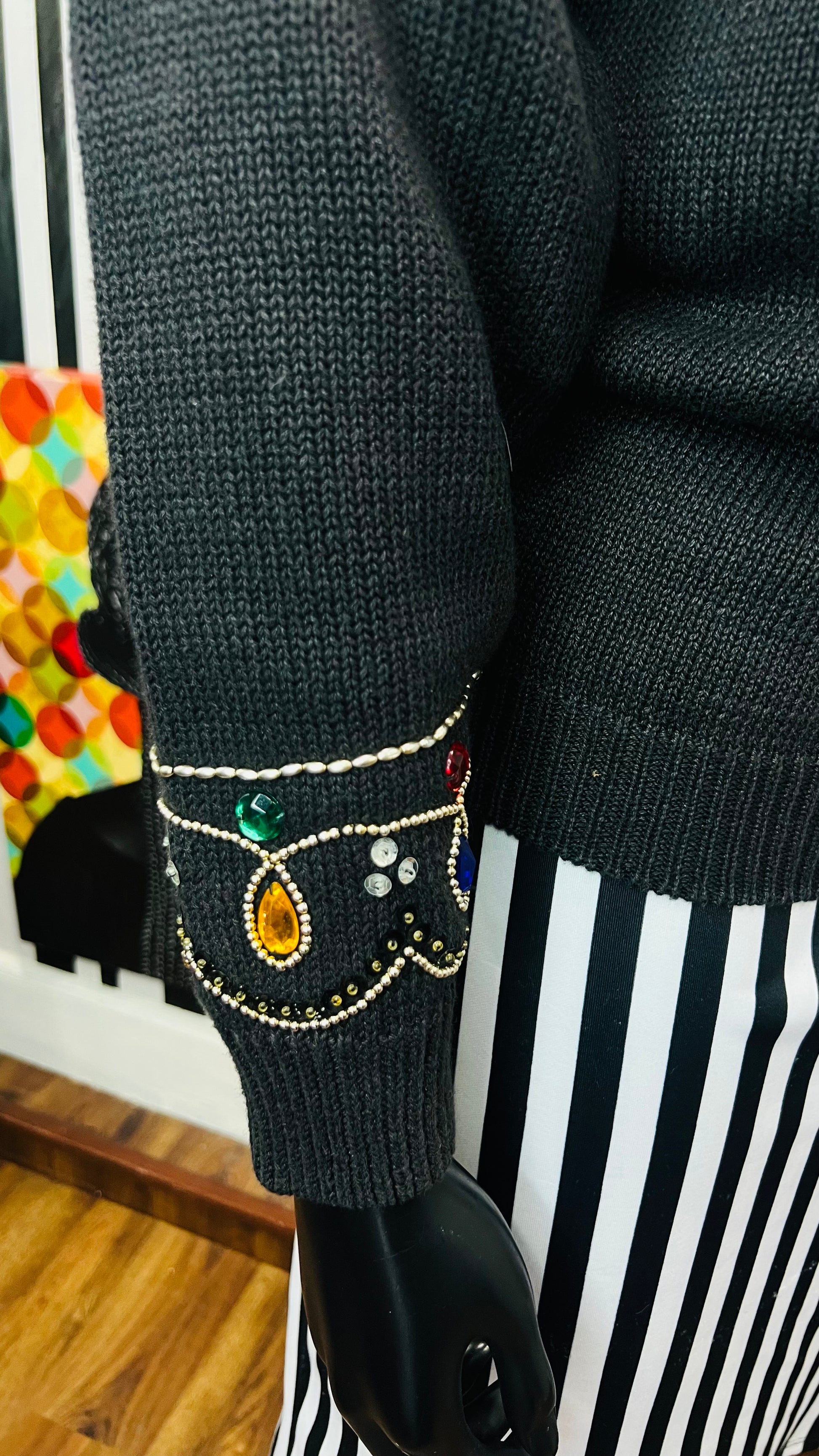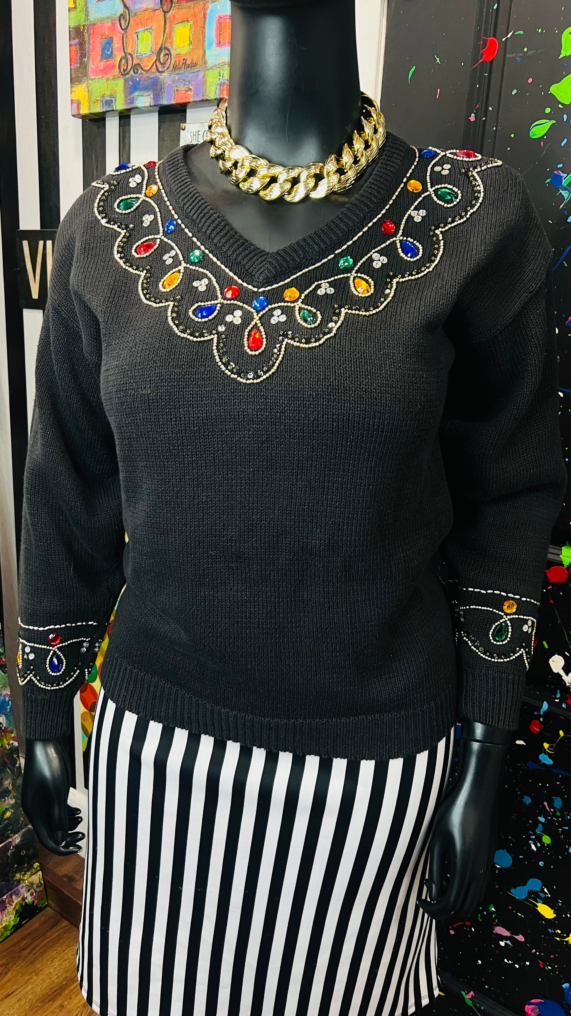 Vintage Black Knit Jeweled Sweater (16)