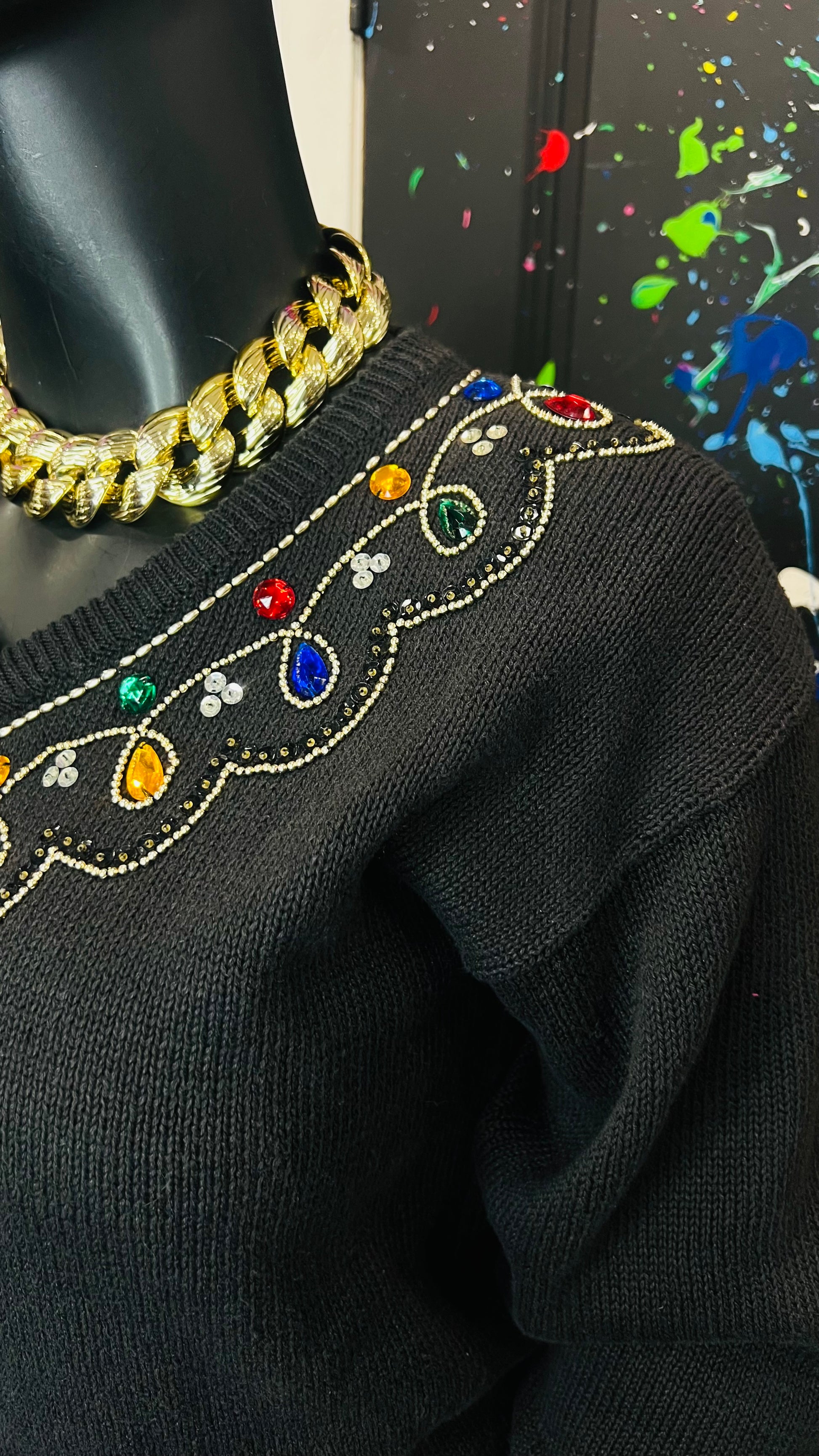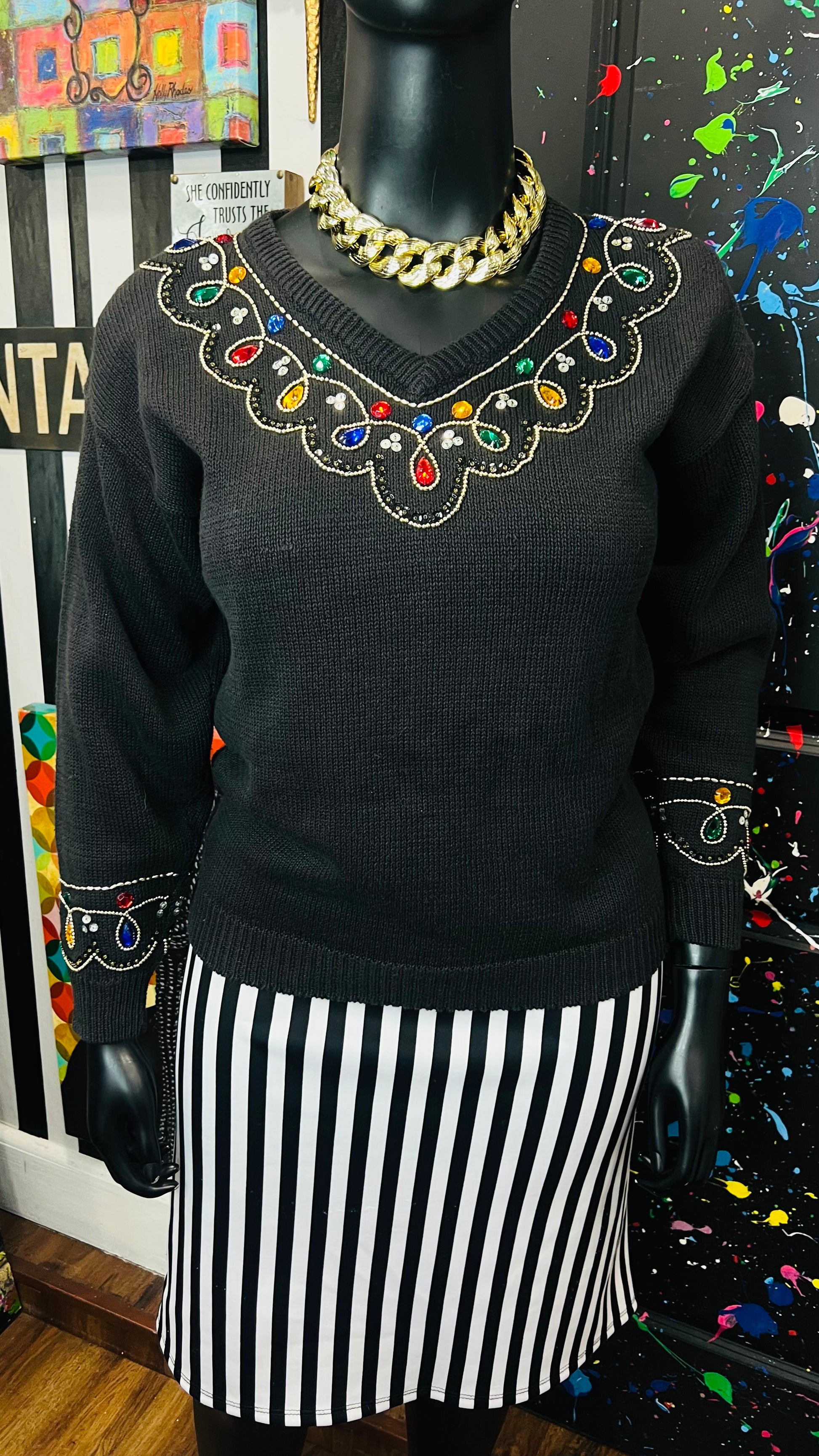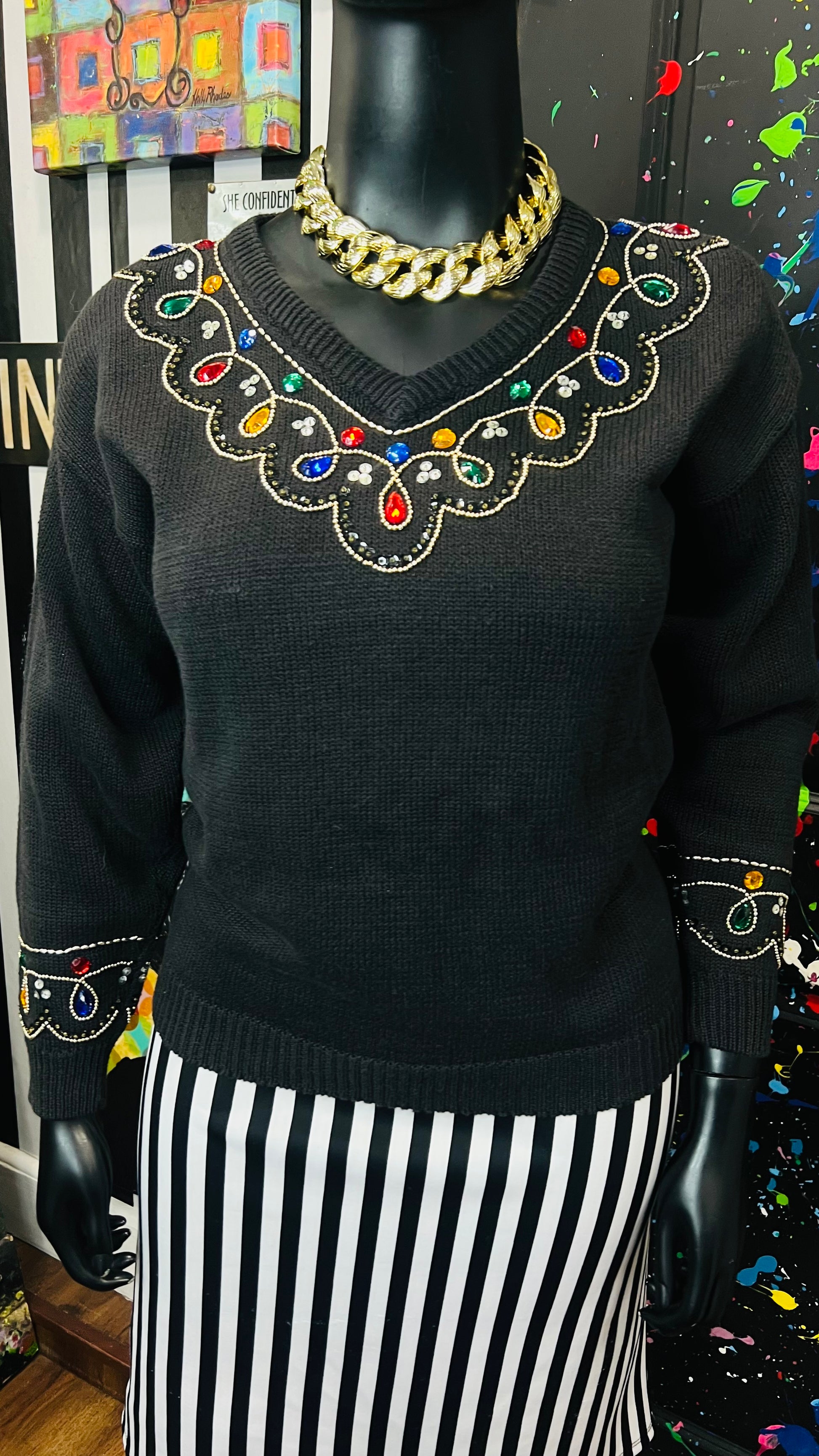 Vintage Black Knit Jeweled Sweater (16)