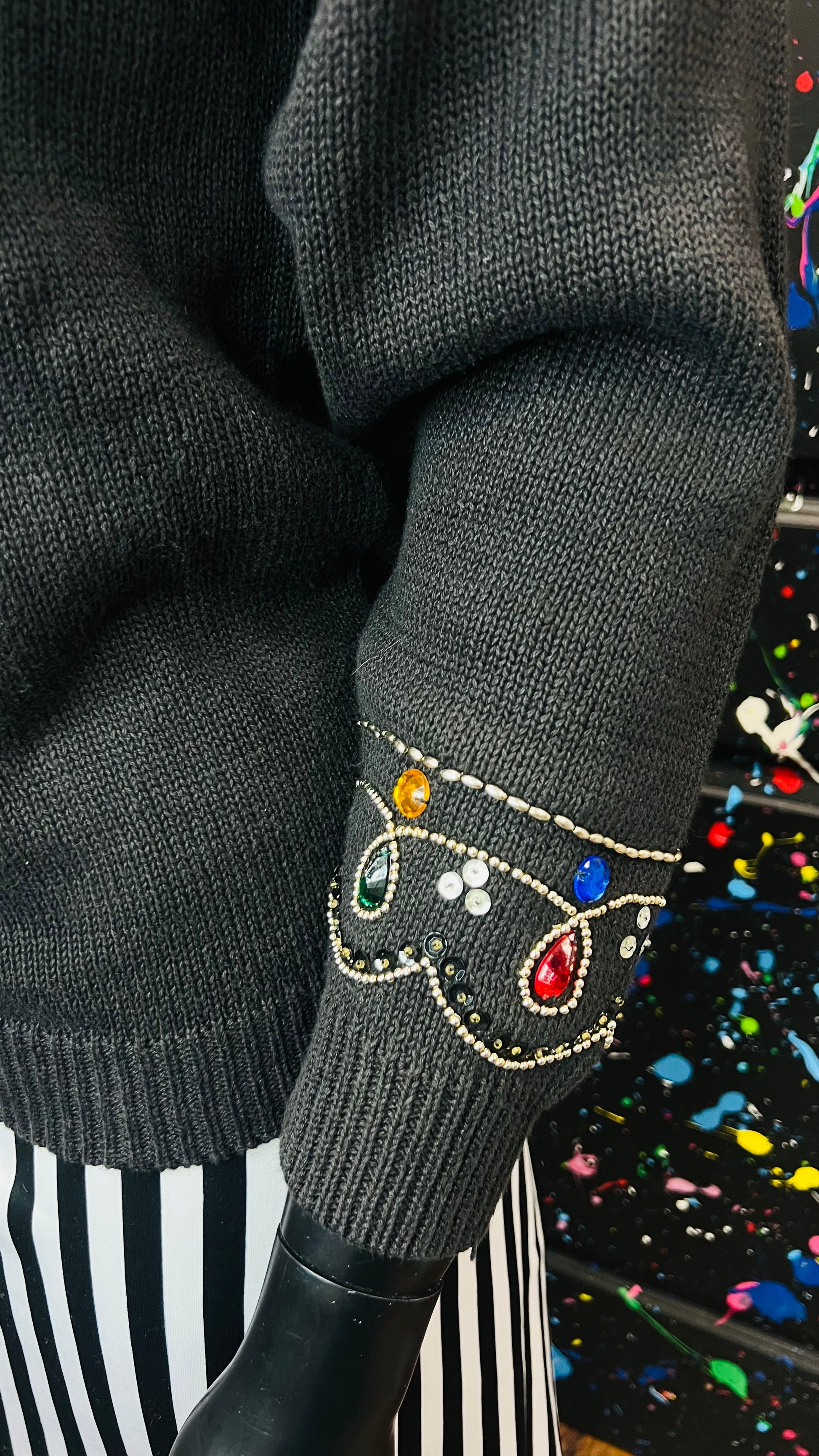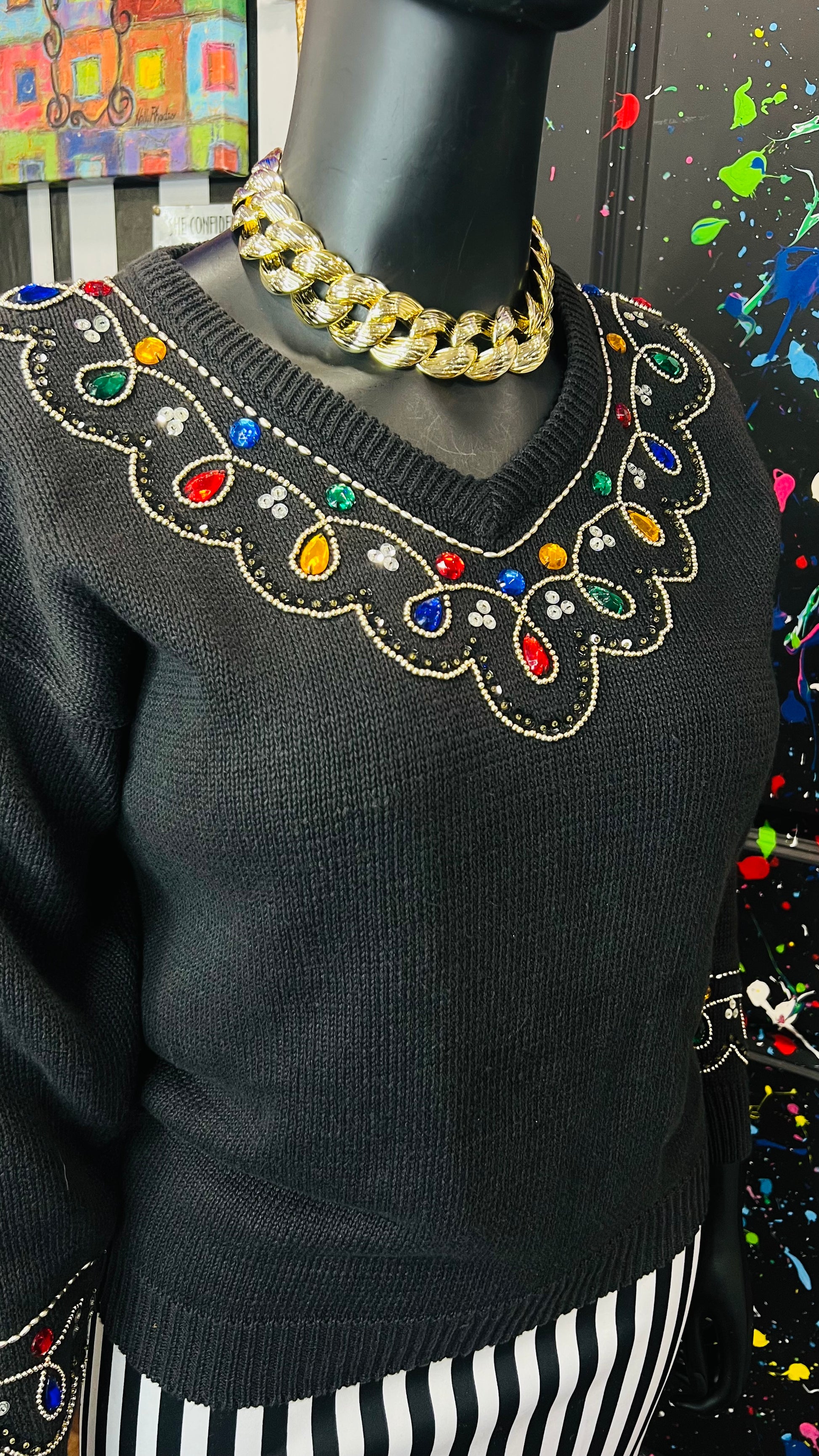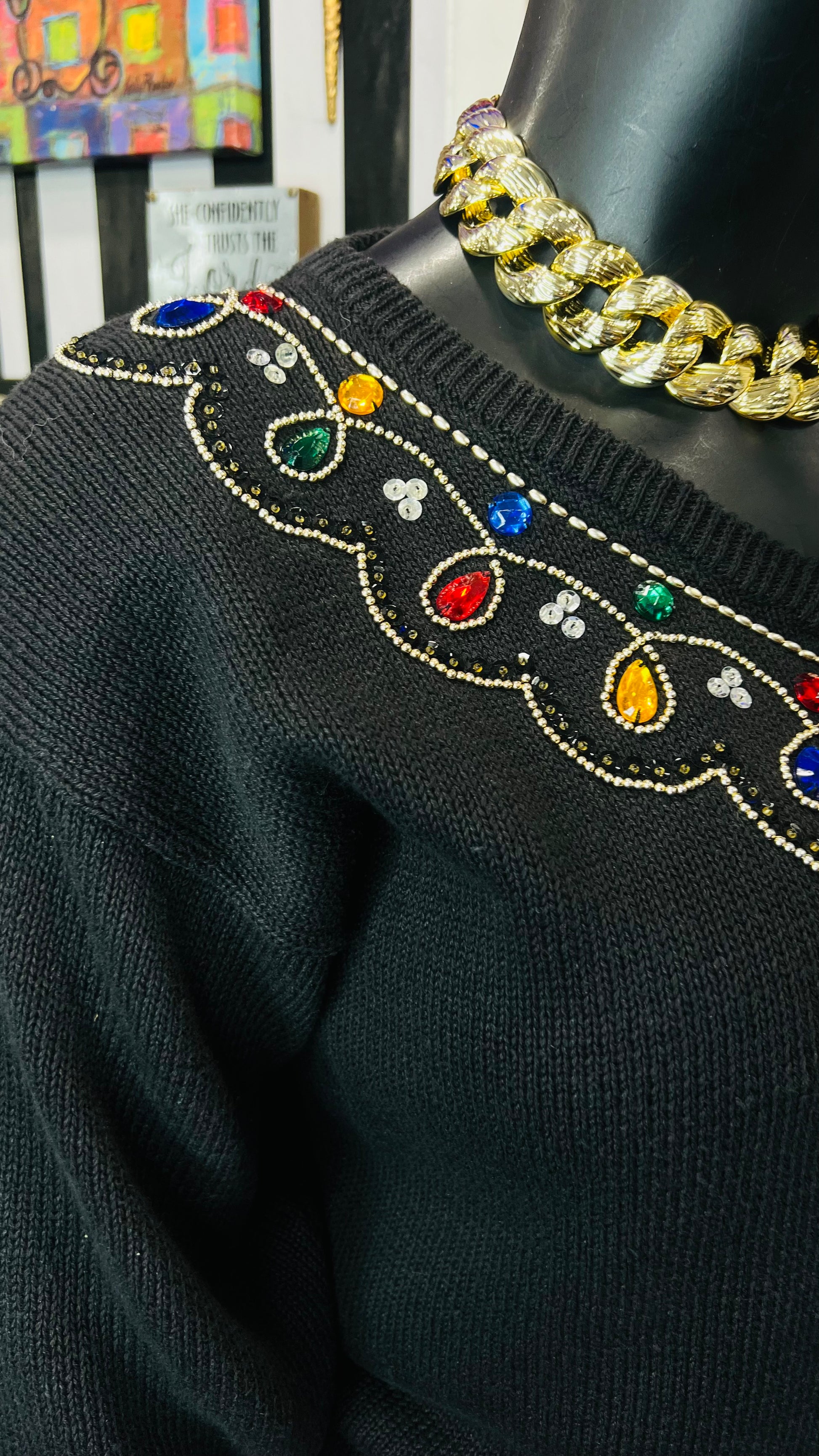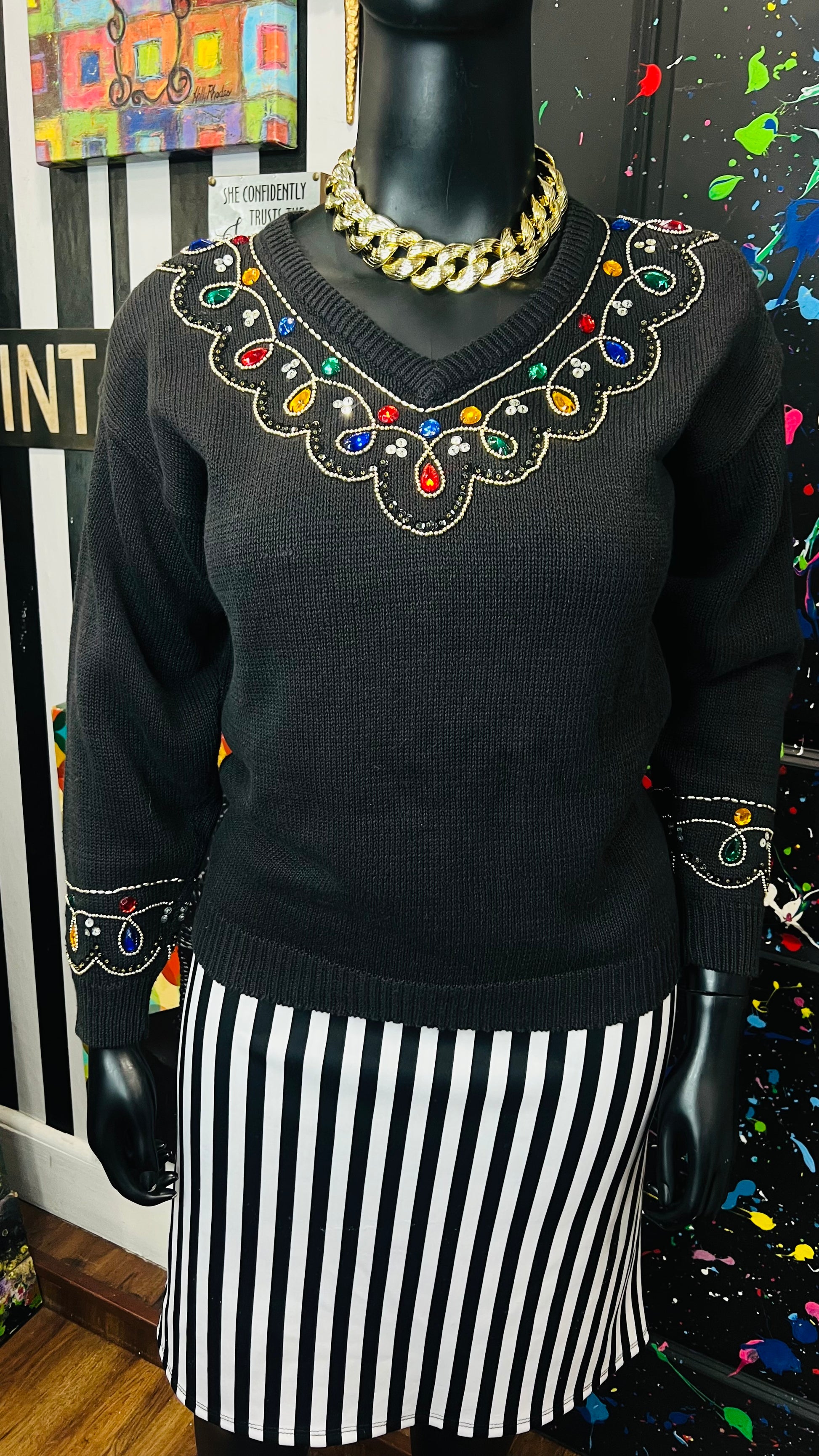 Vintage Black Knit Jeweled Sweater (16)