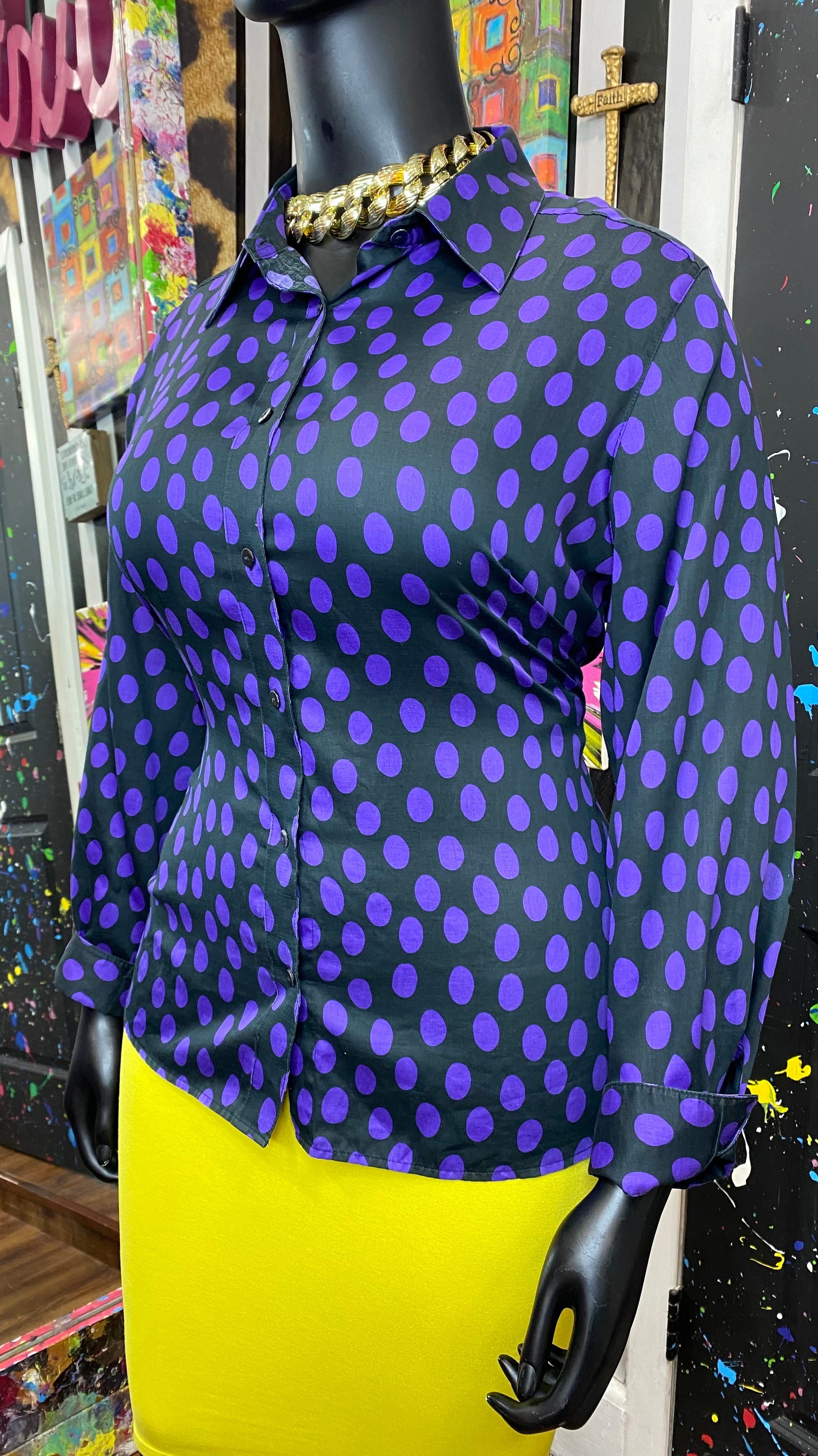 Vintage Black & Purple Polka Dot Blouse (20W)