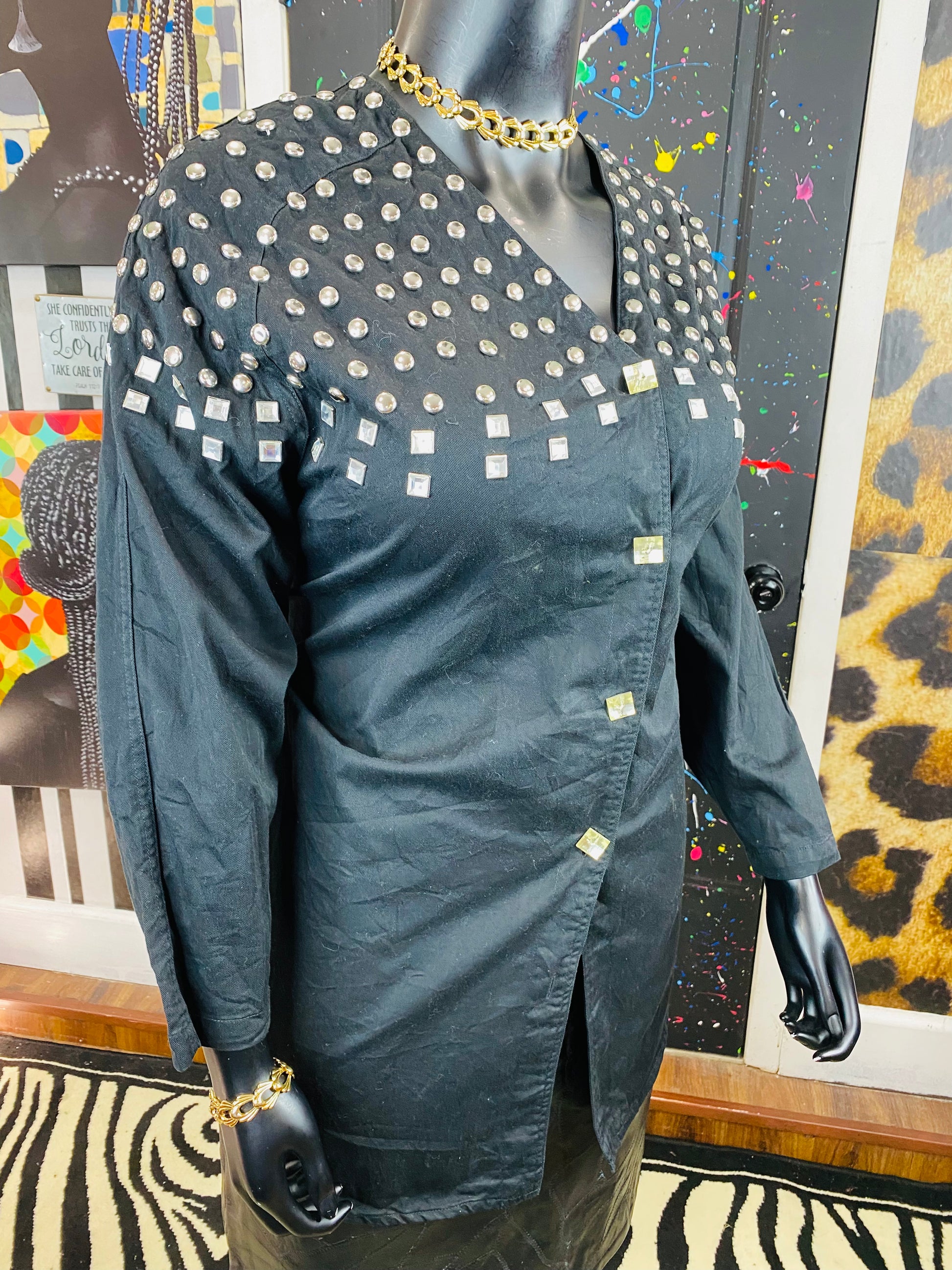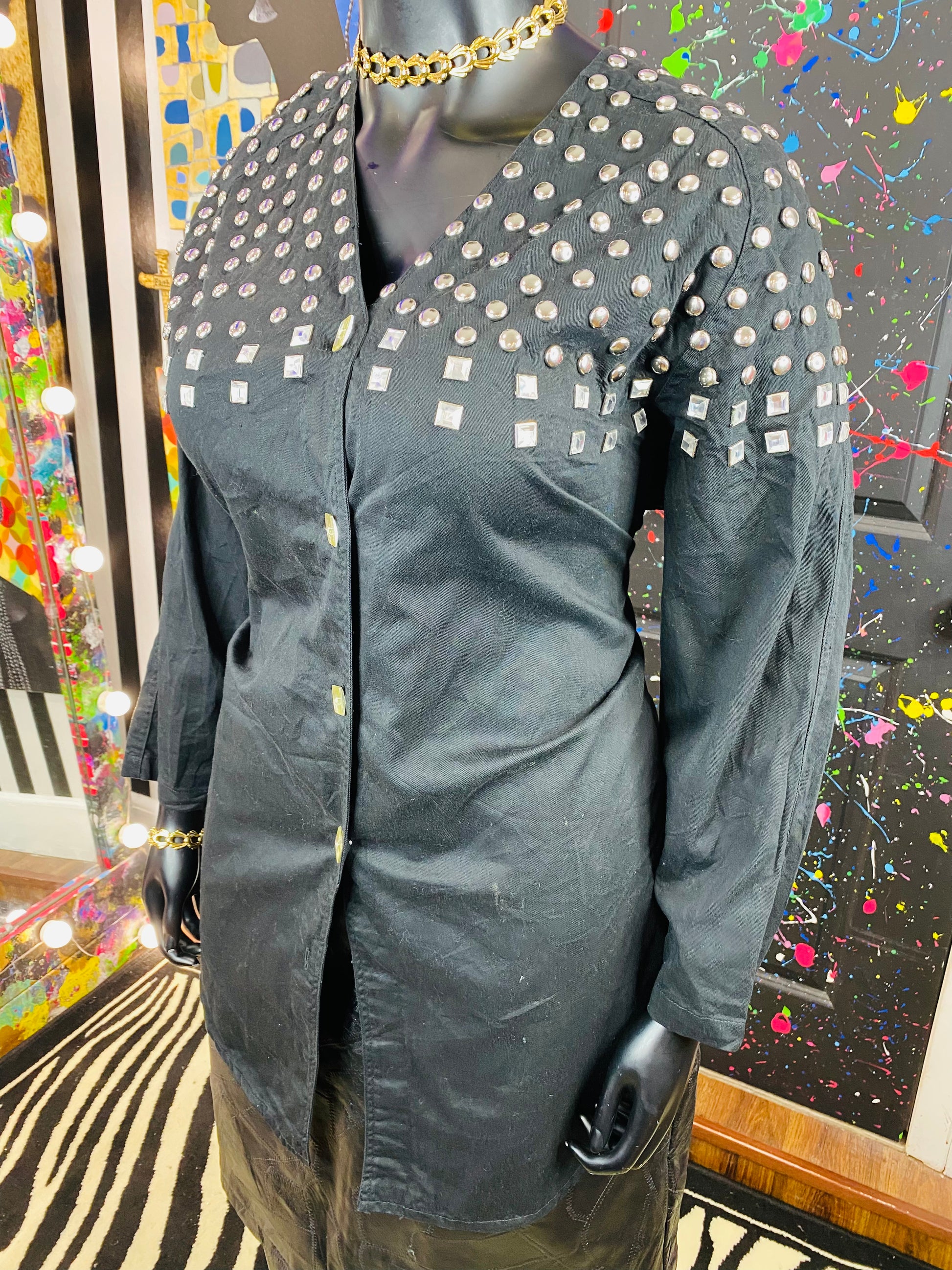 Vintage Black Silver Studded Long Sleeve Blouse