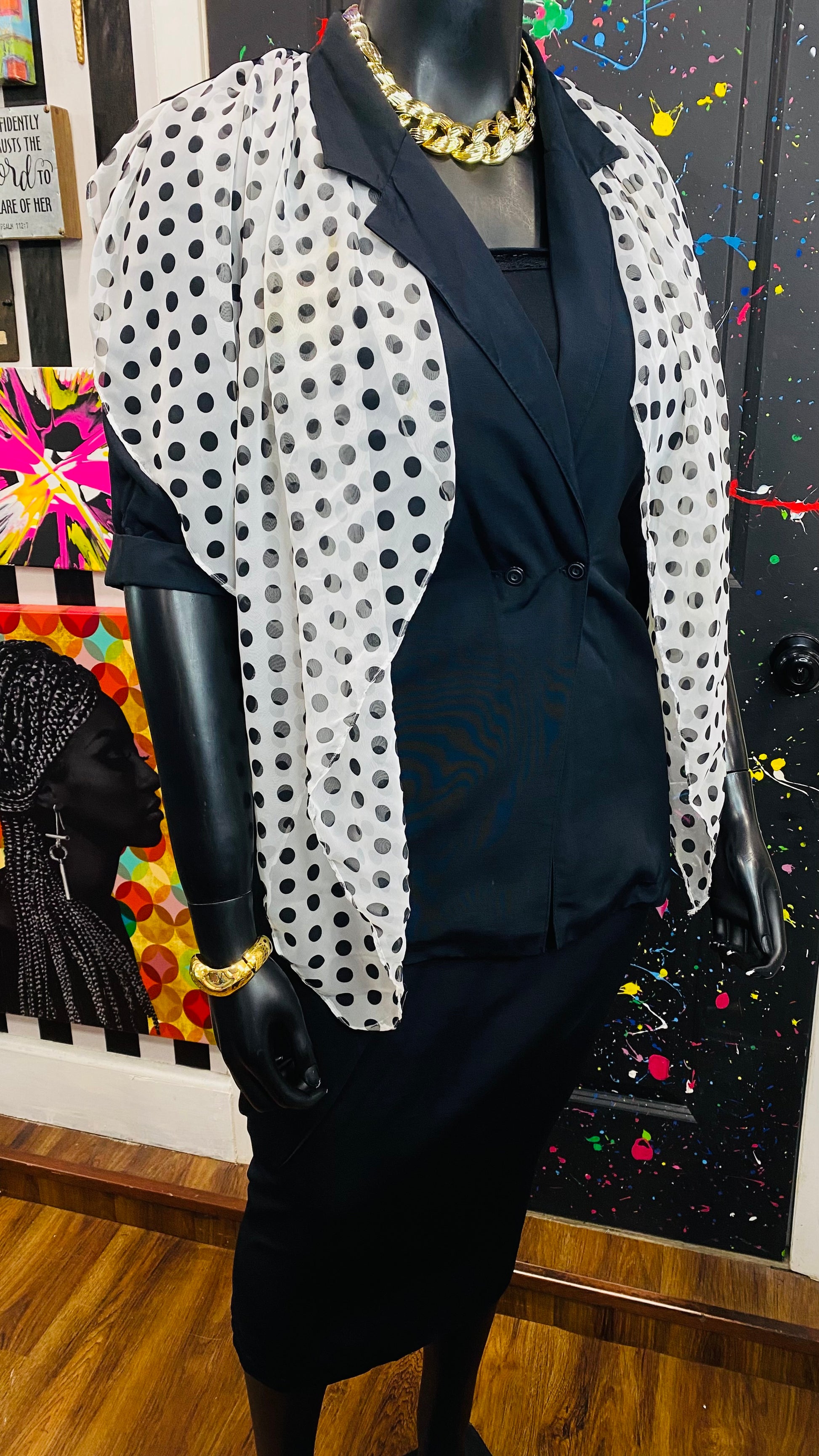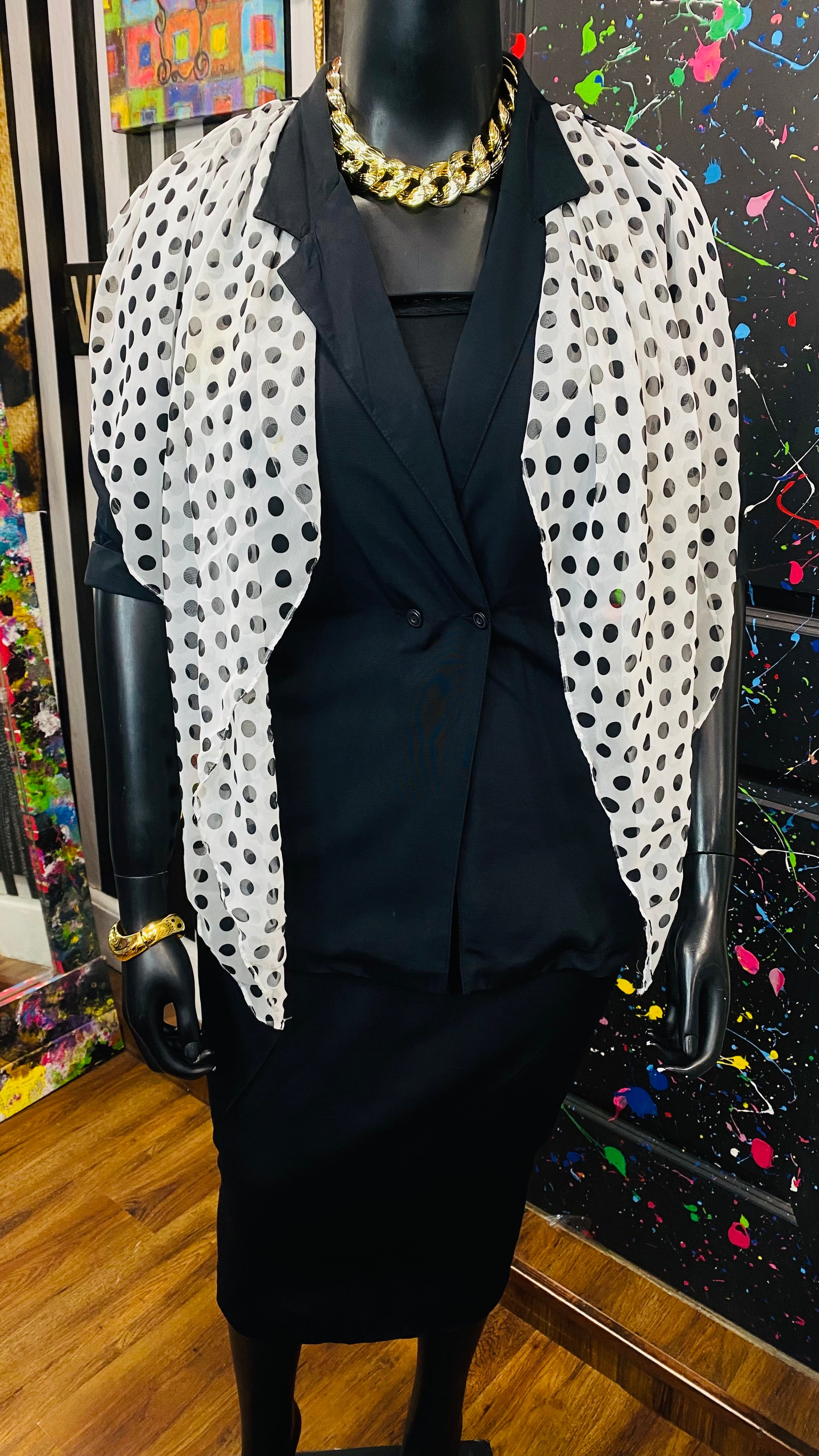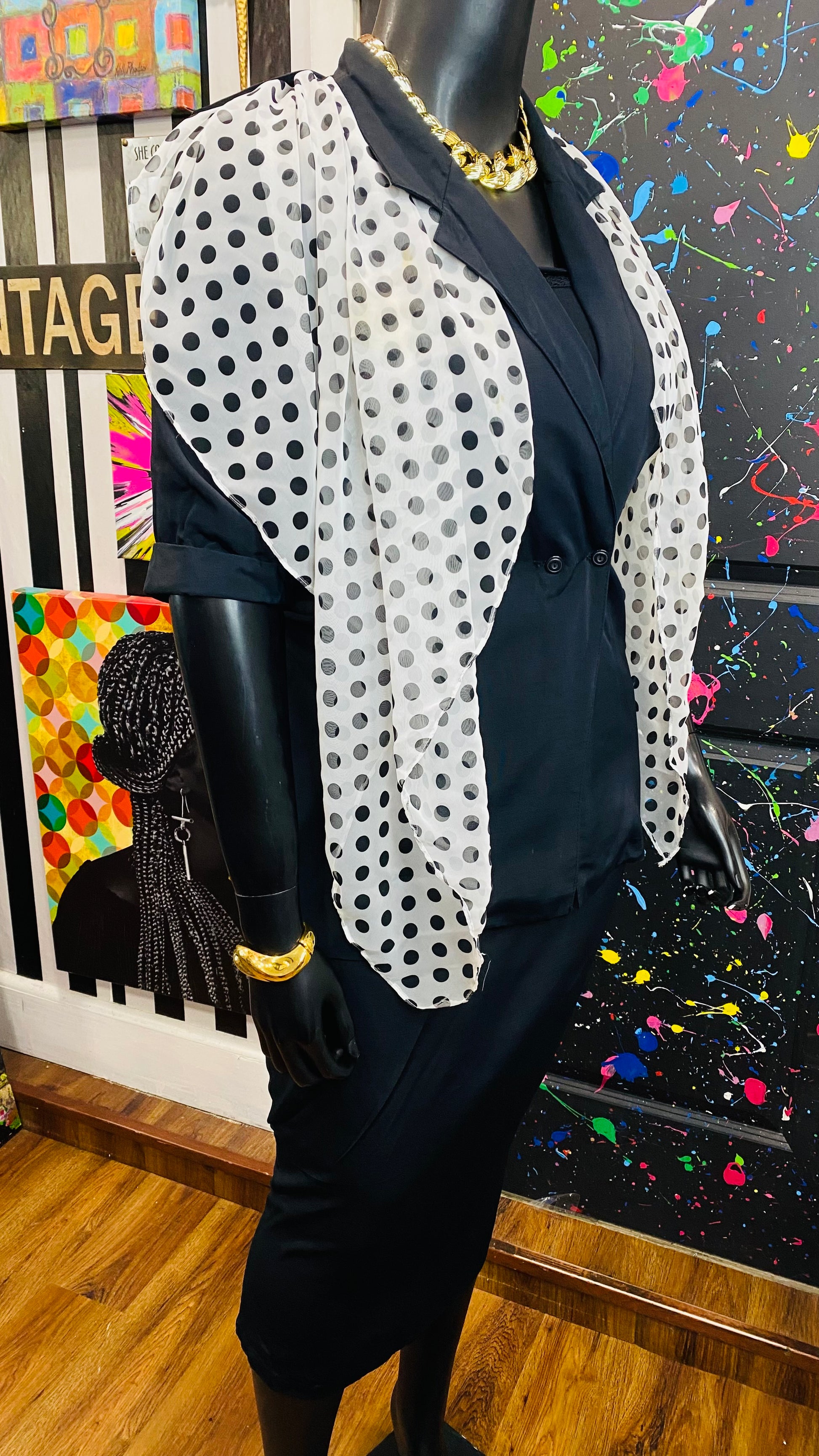 Vintage Black Skirt Set w/ Polka Dot & White Scarf (14)