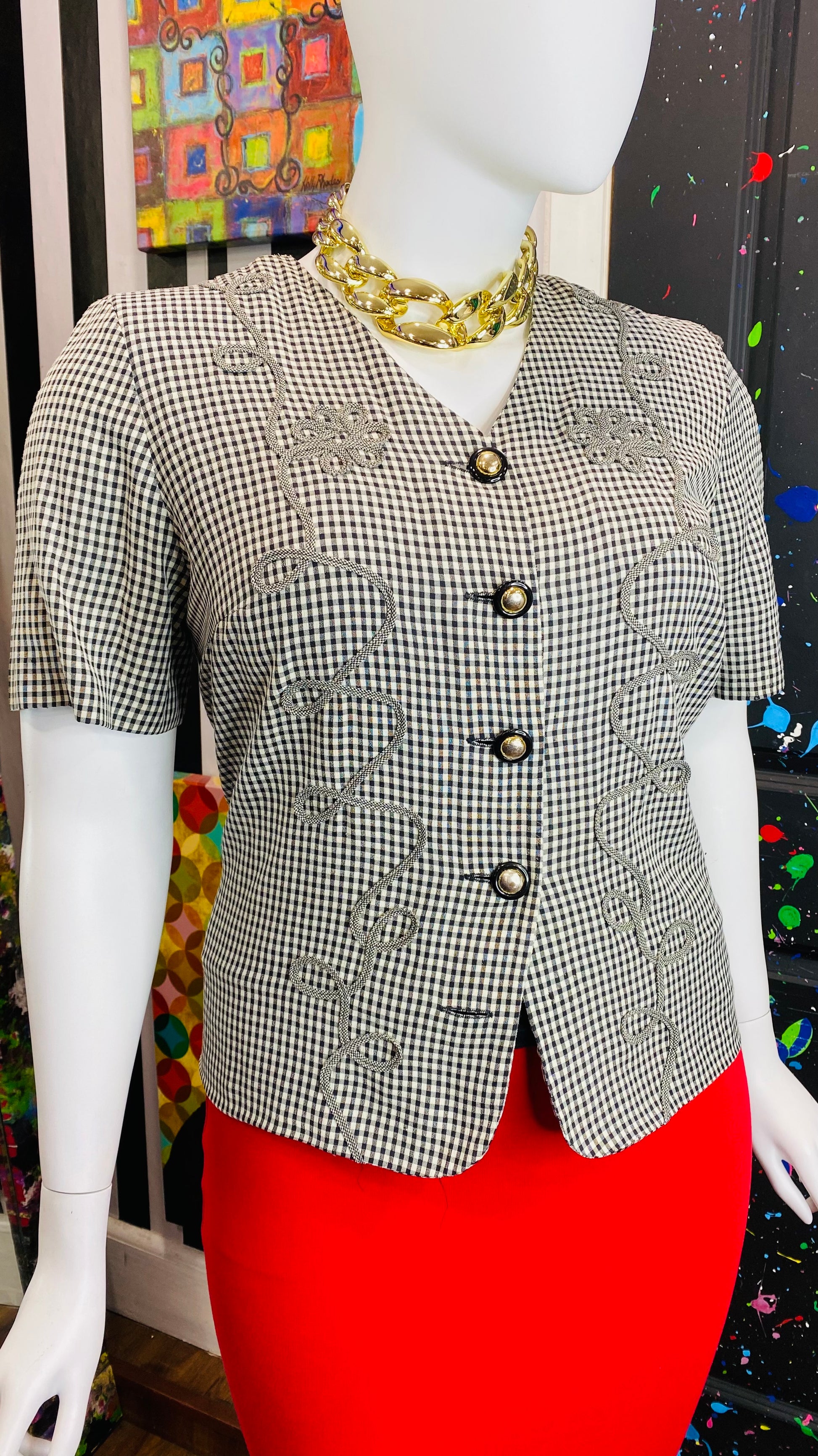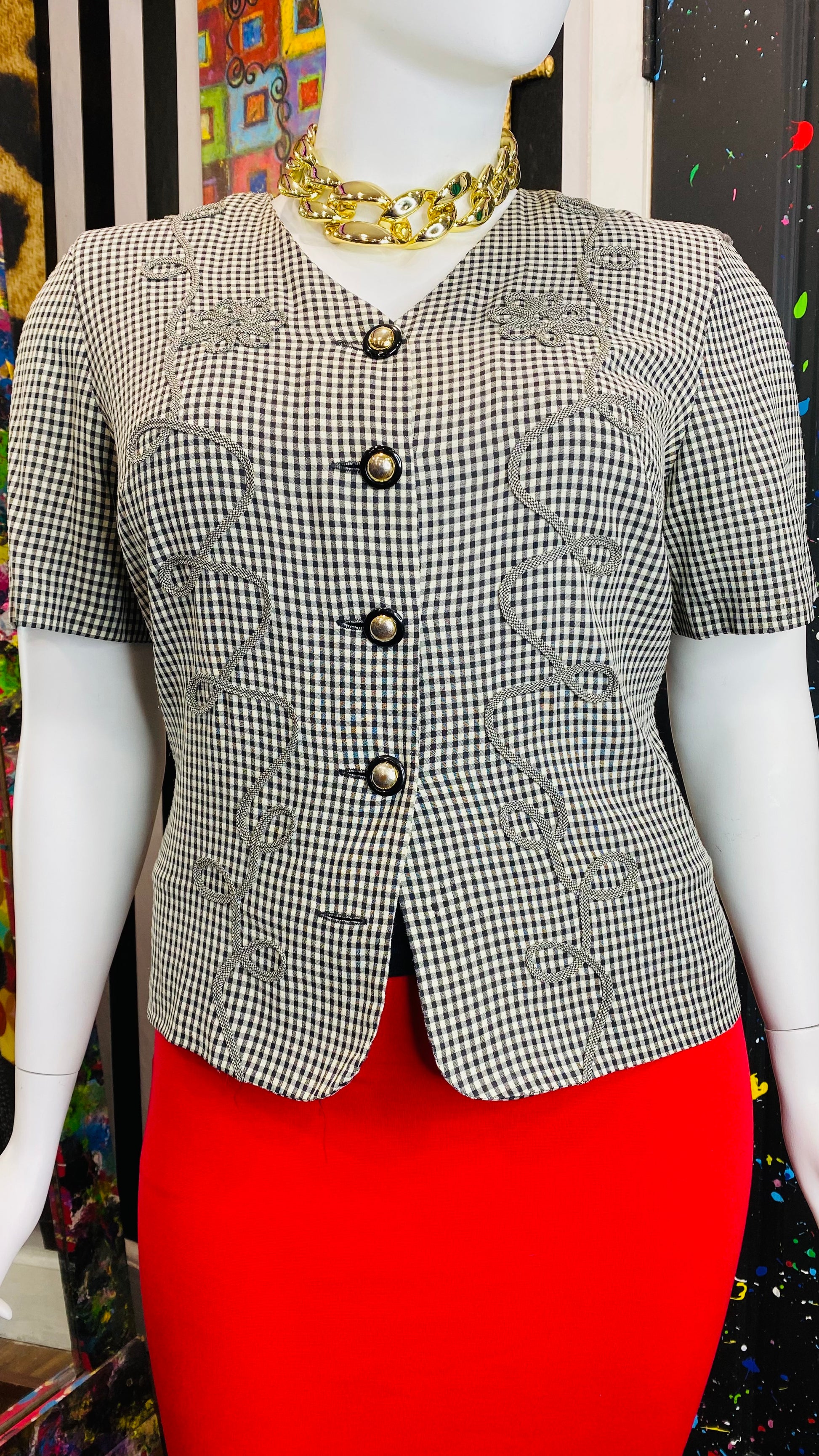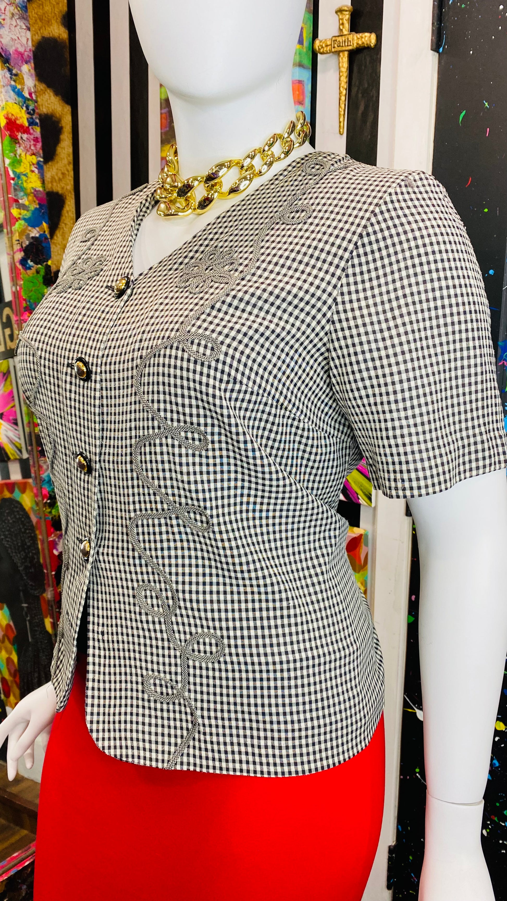 Vintage Black & White Checkered Blouse (16W)