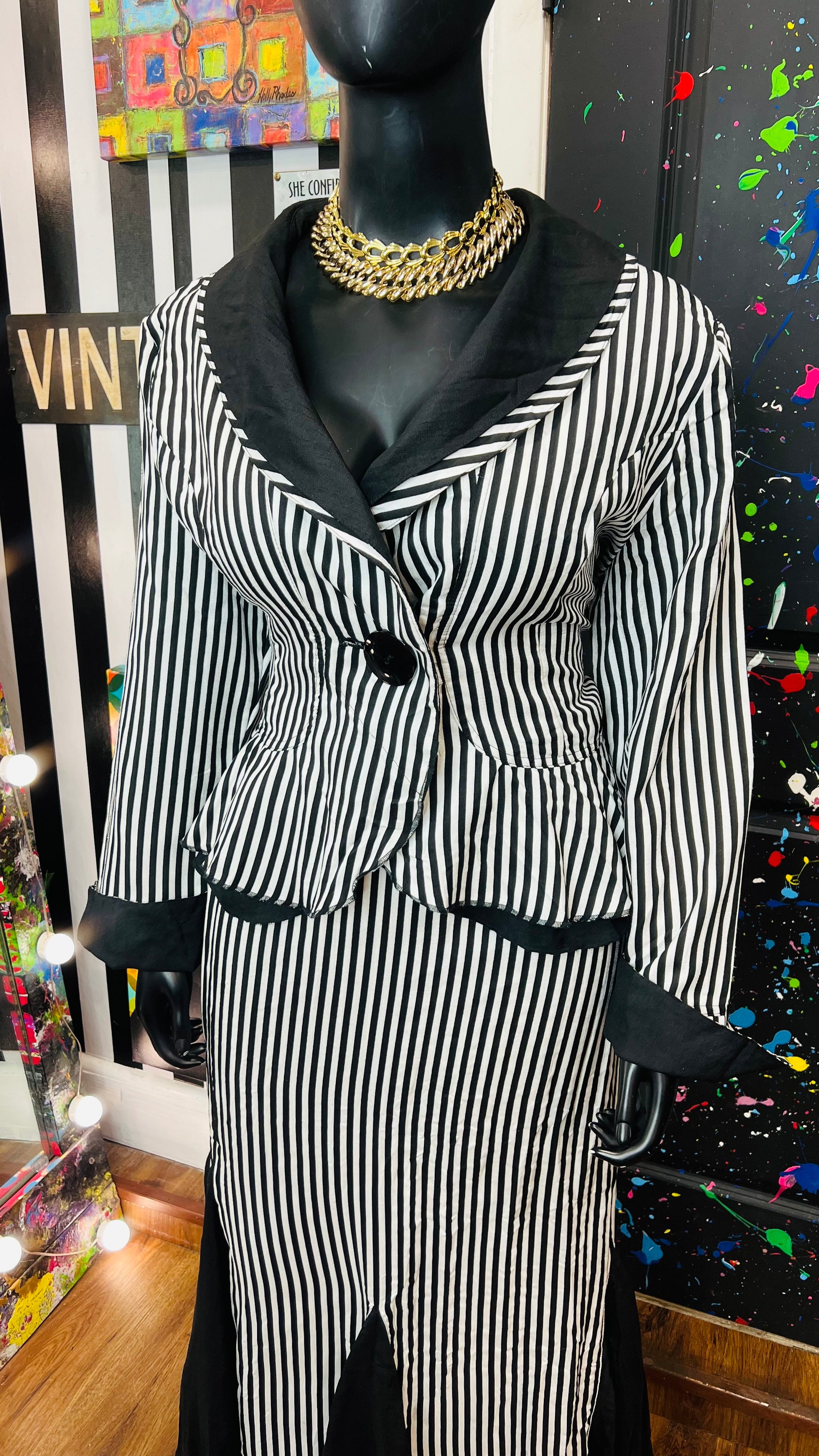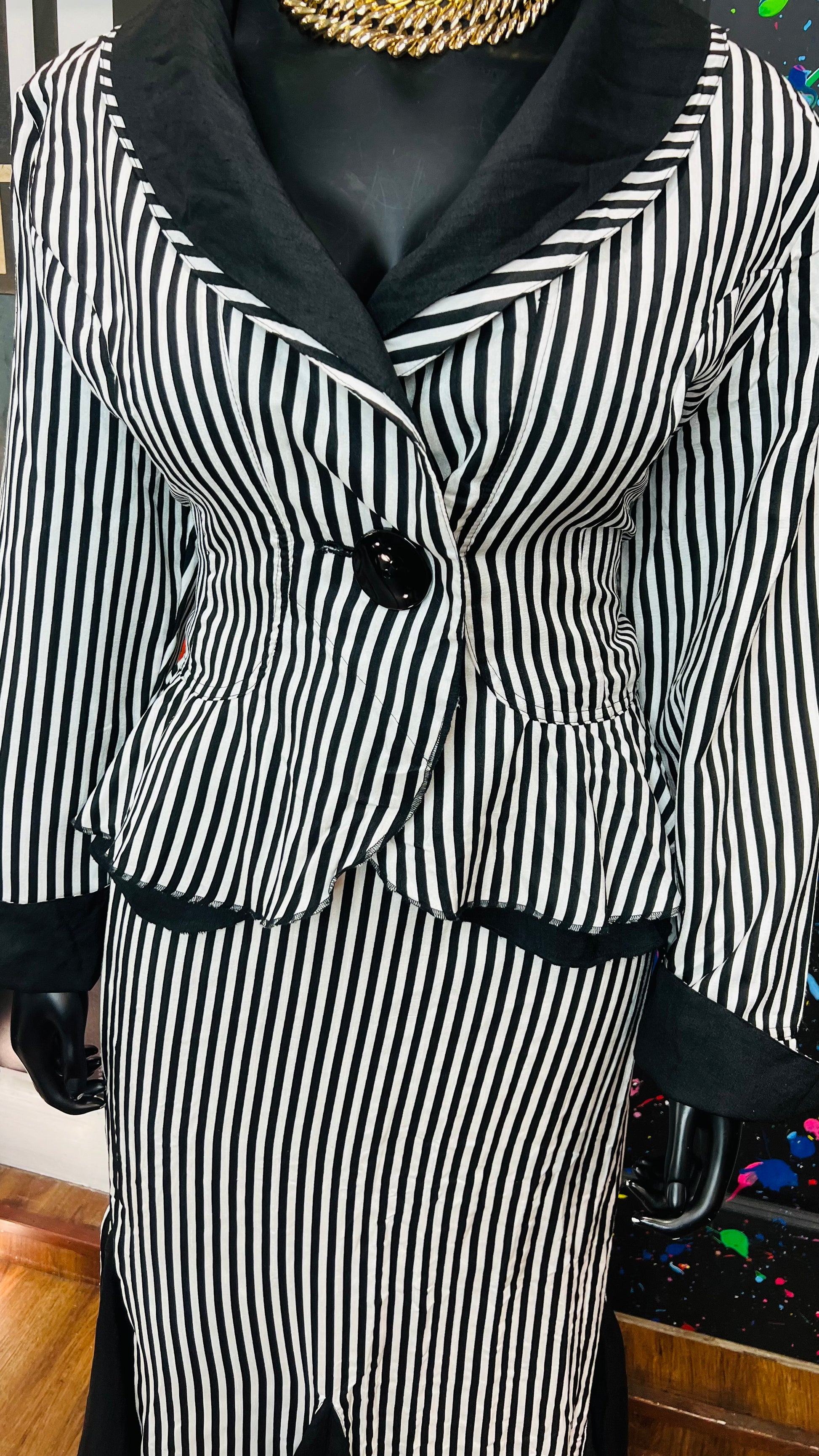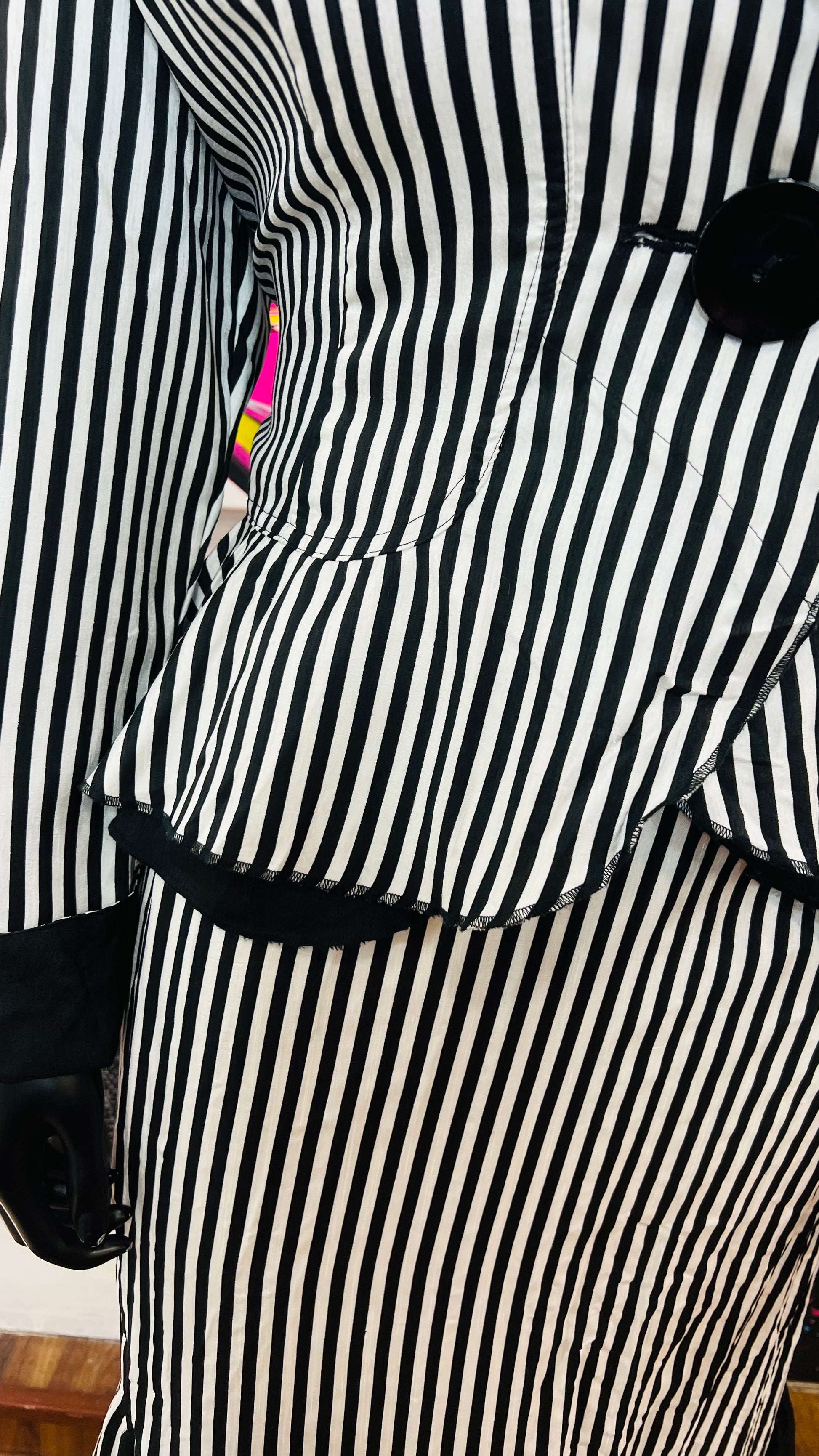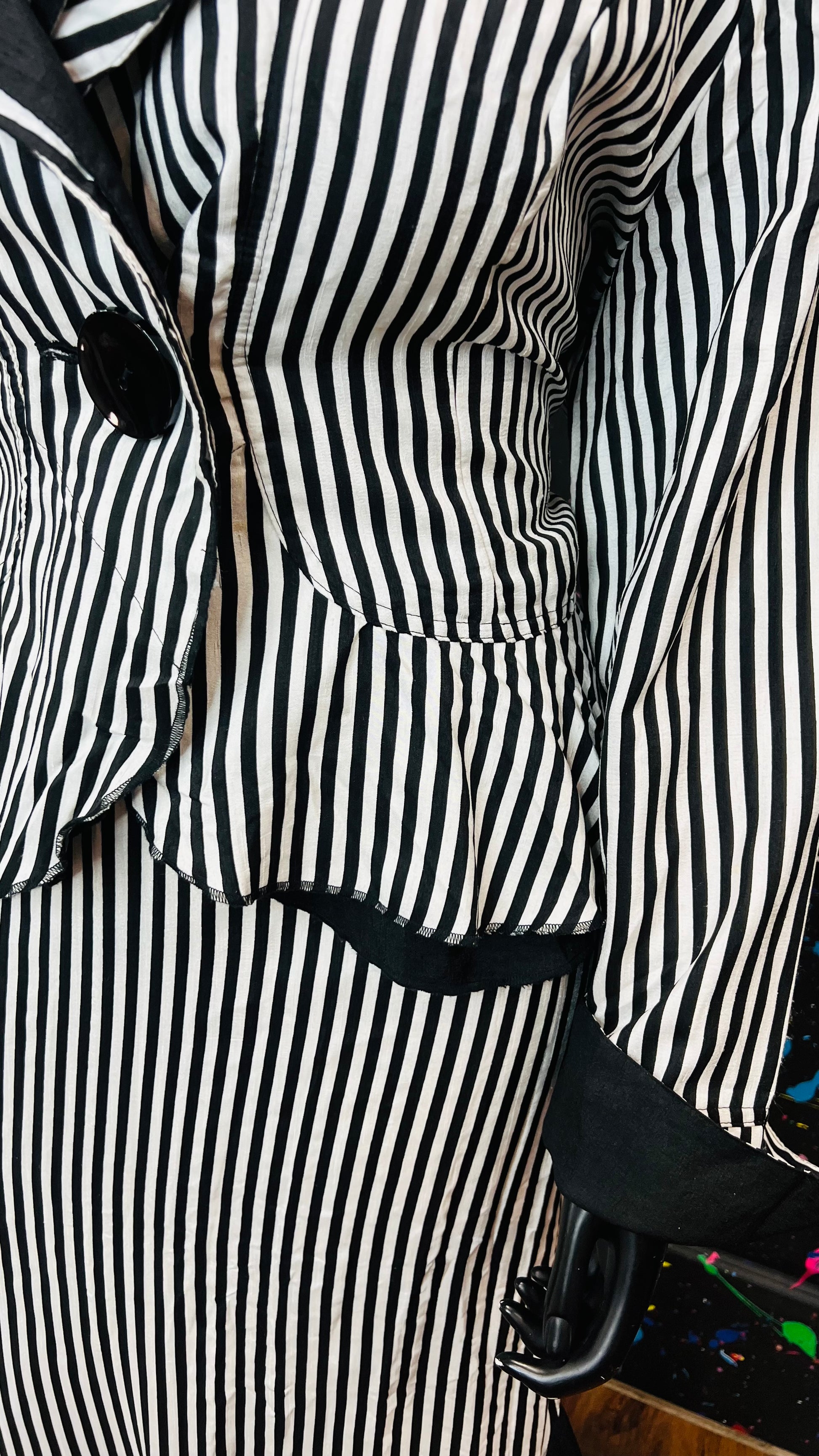 Vintage Black & White Peplum Striped Skirt Set (22)