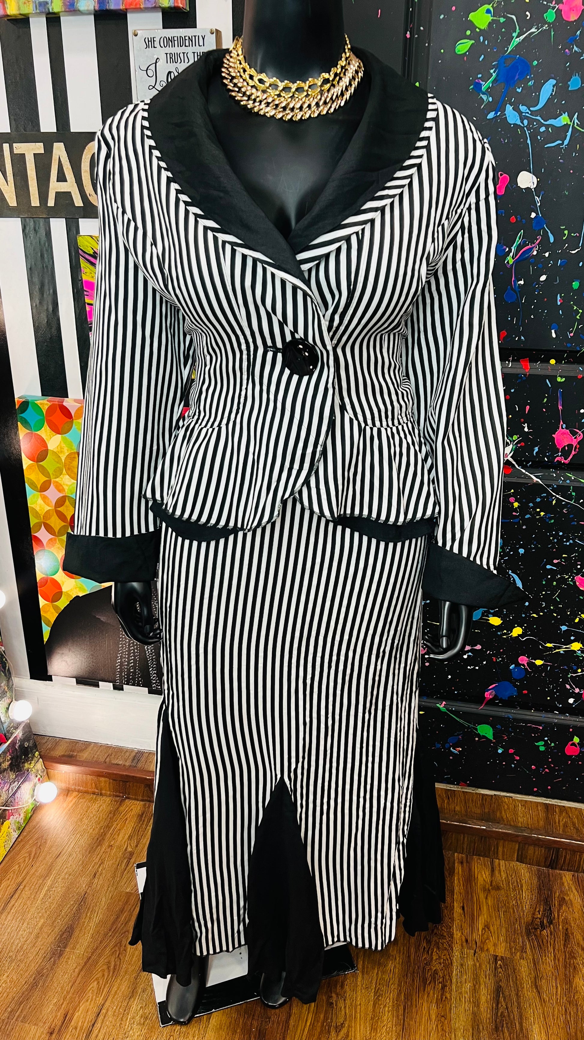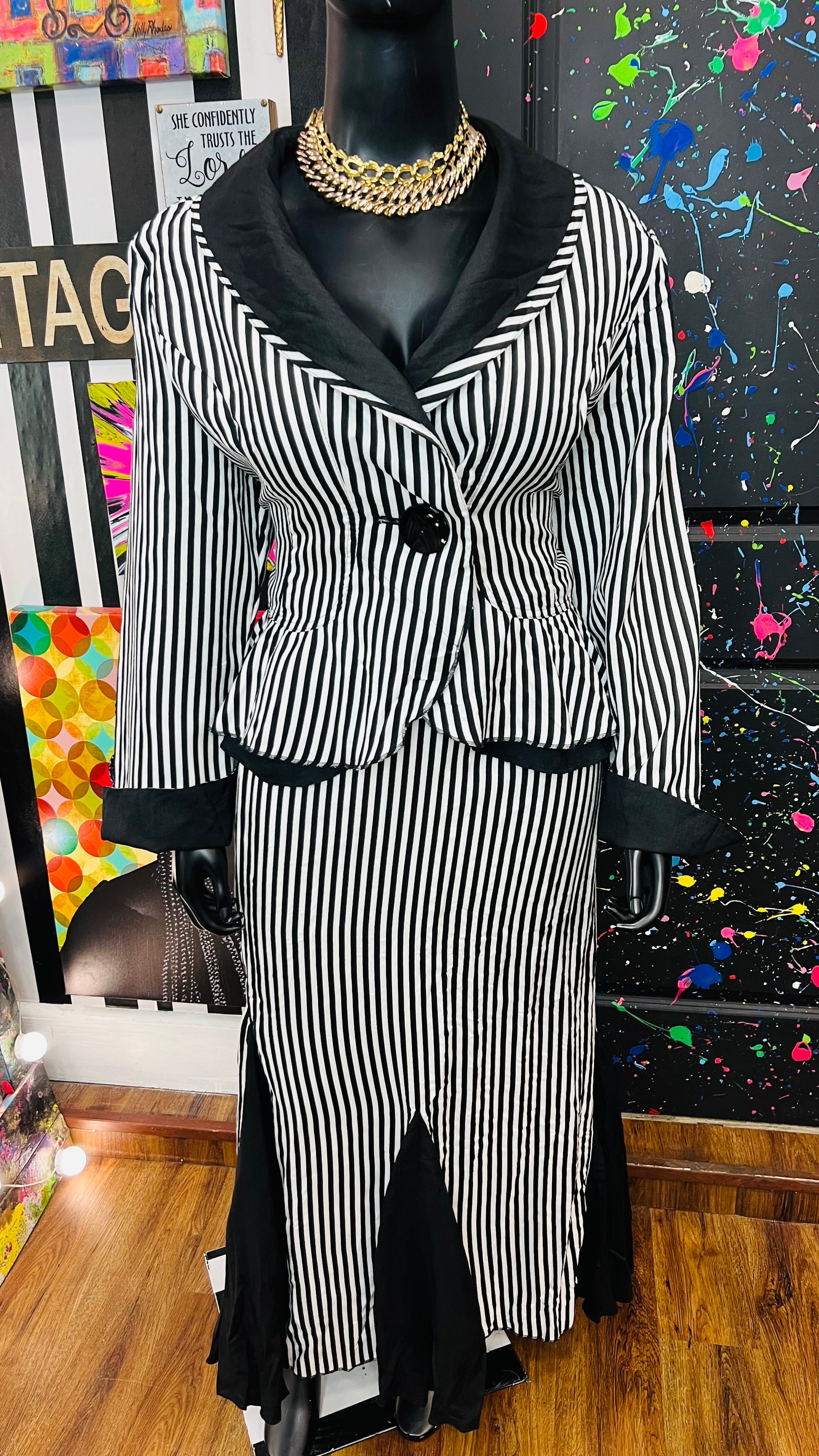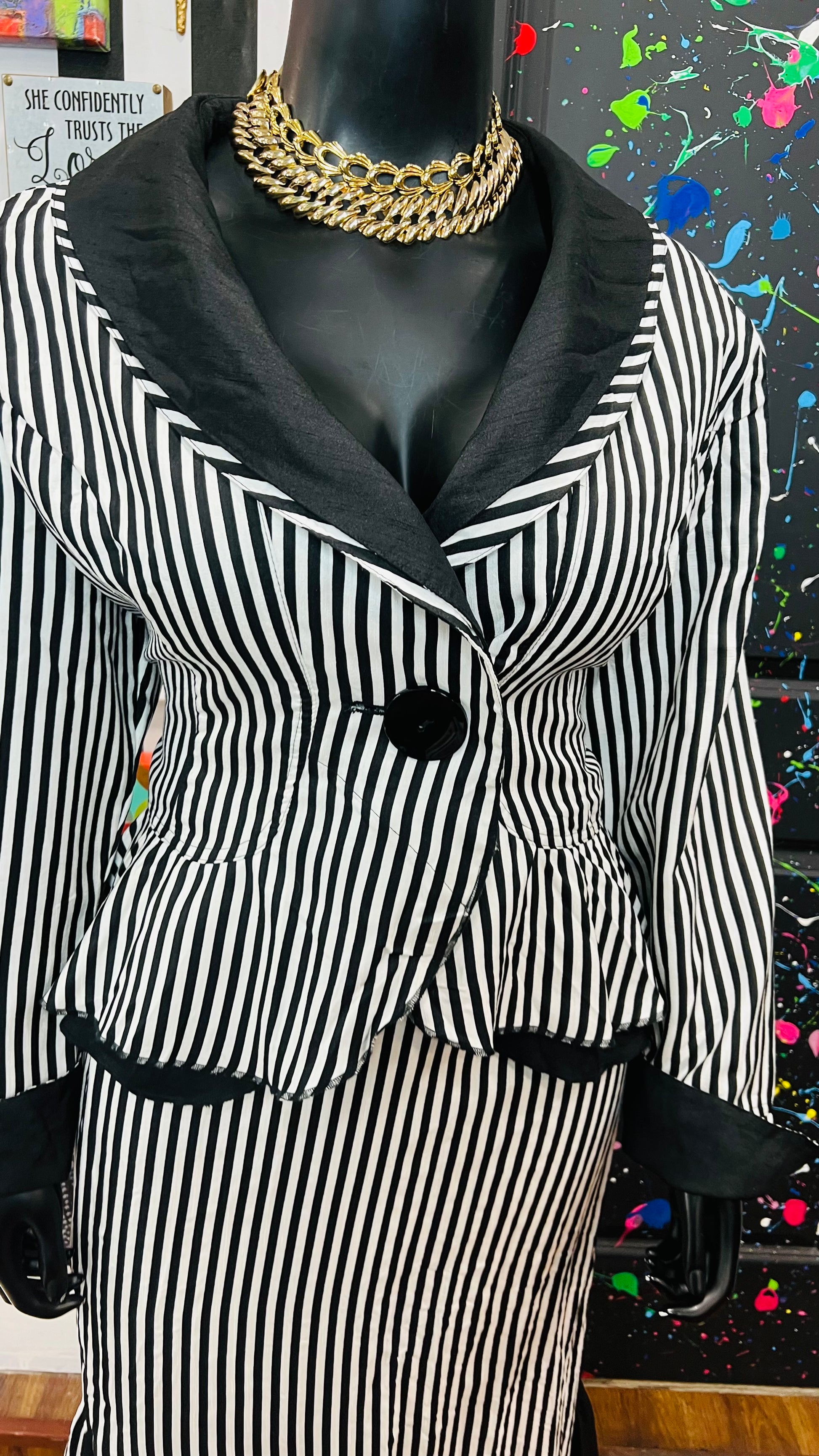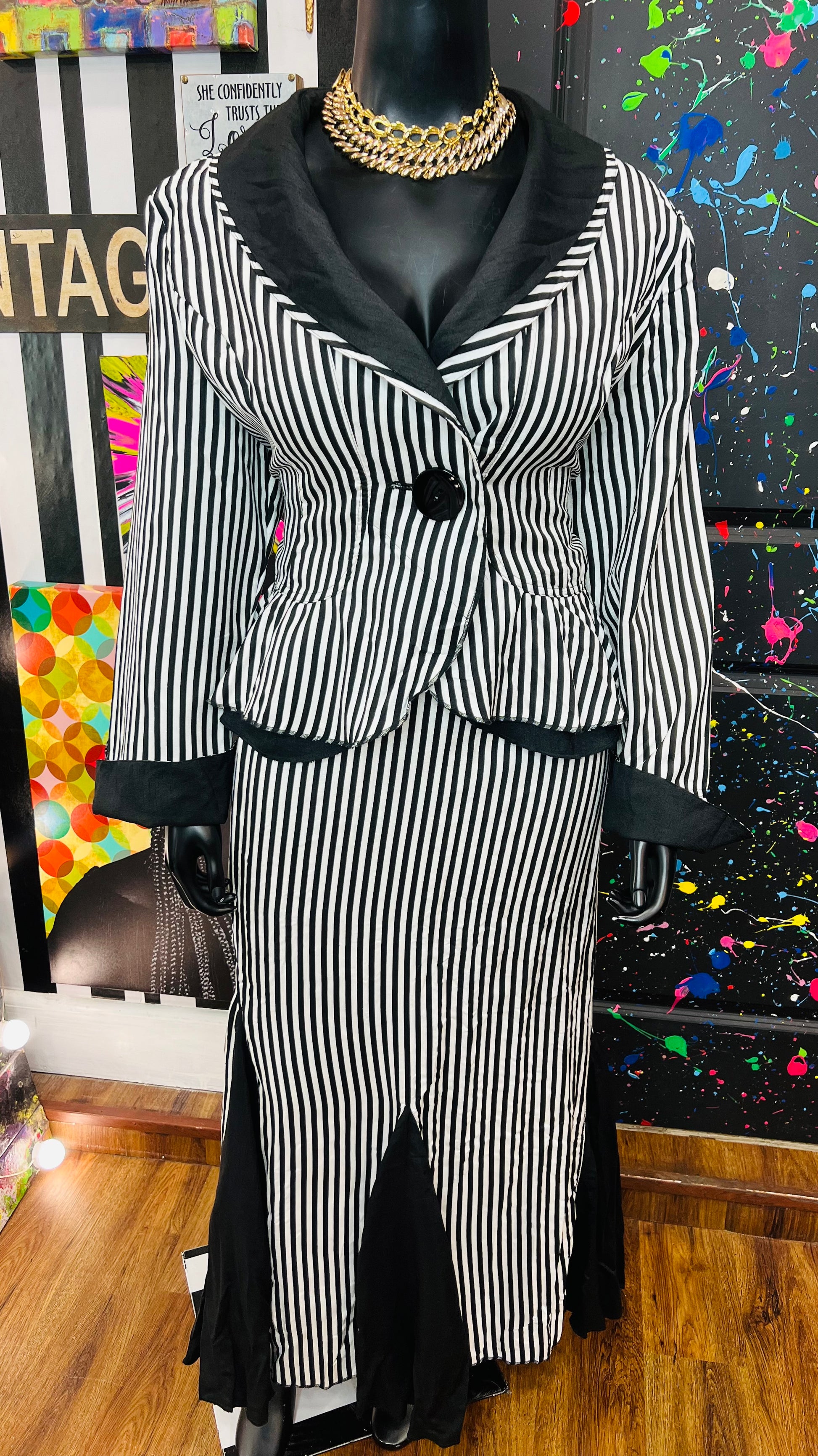 Vintage Black & White Peplum Striped Skirt Set (22)