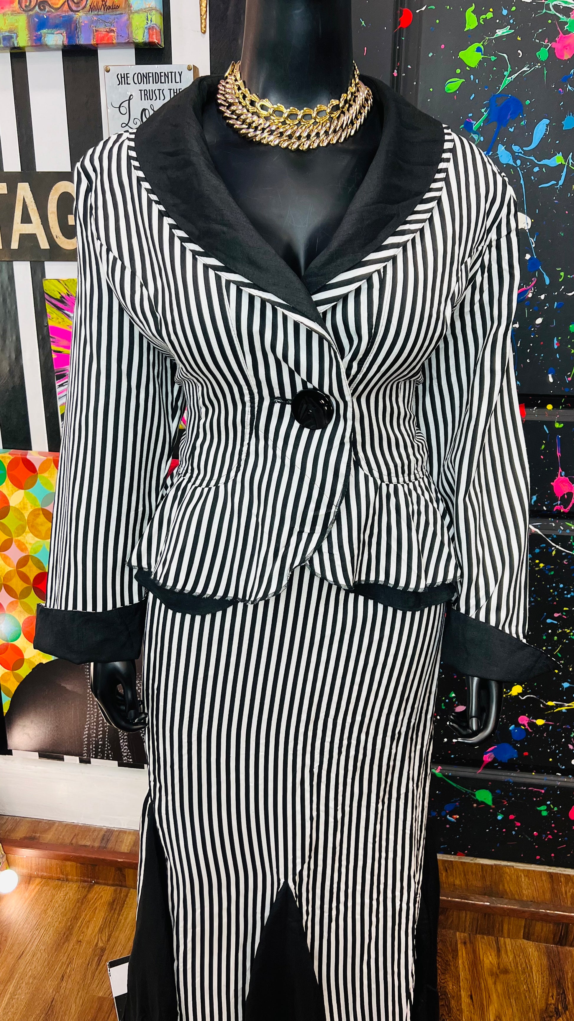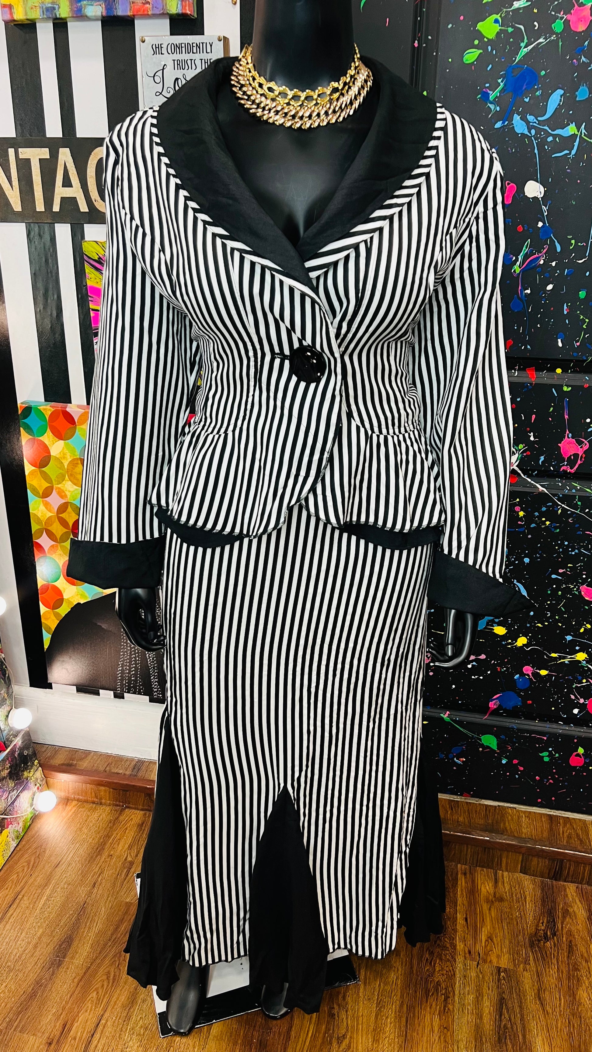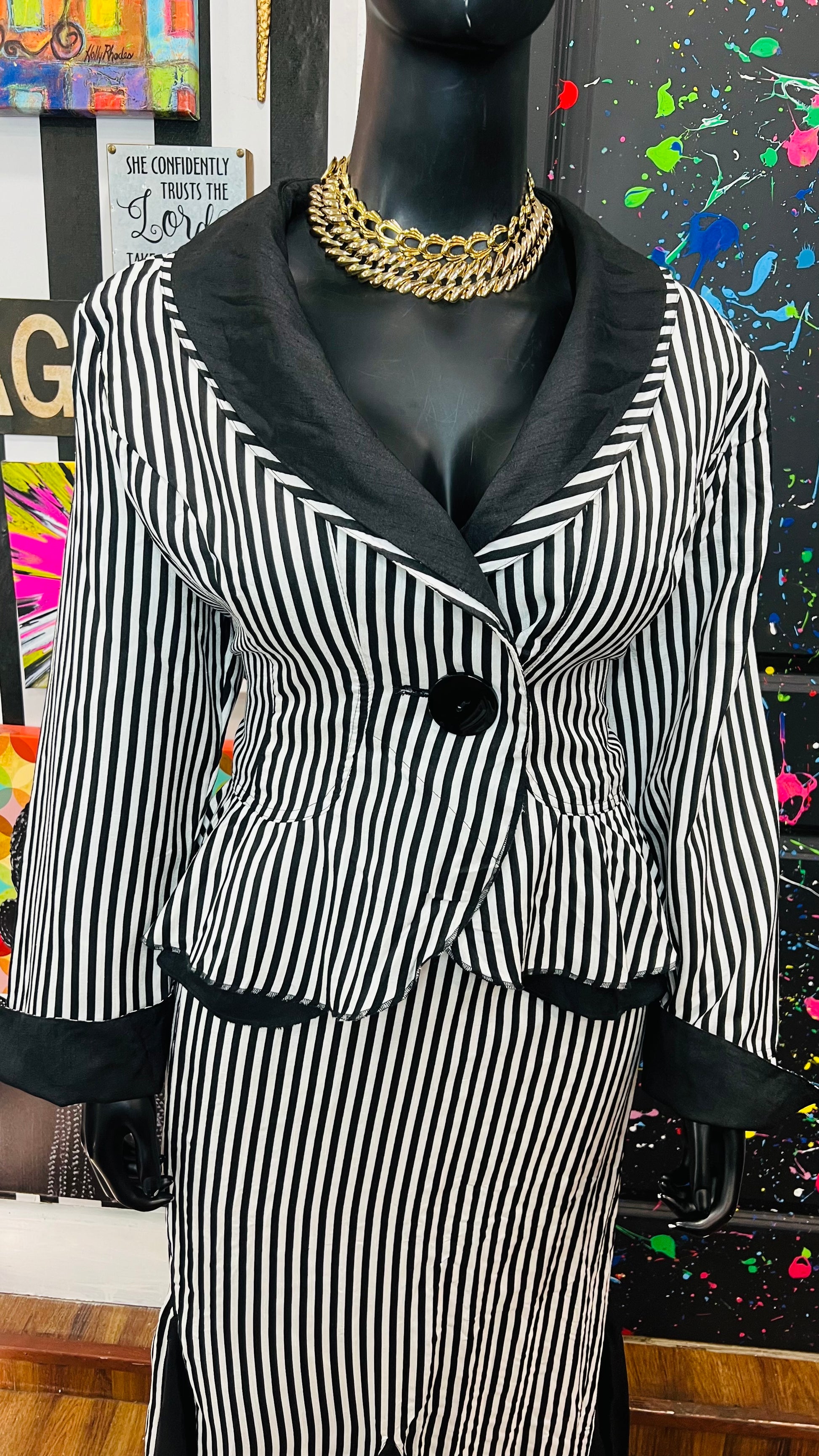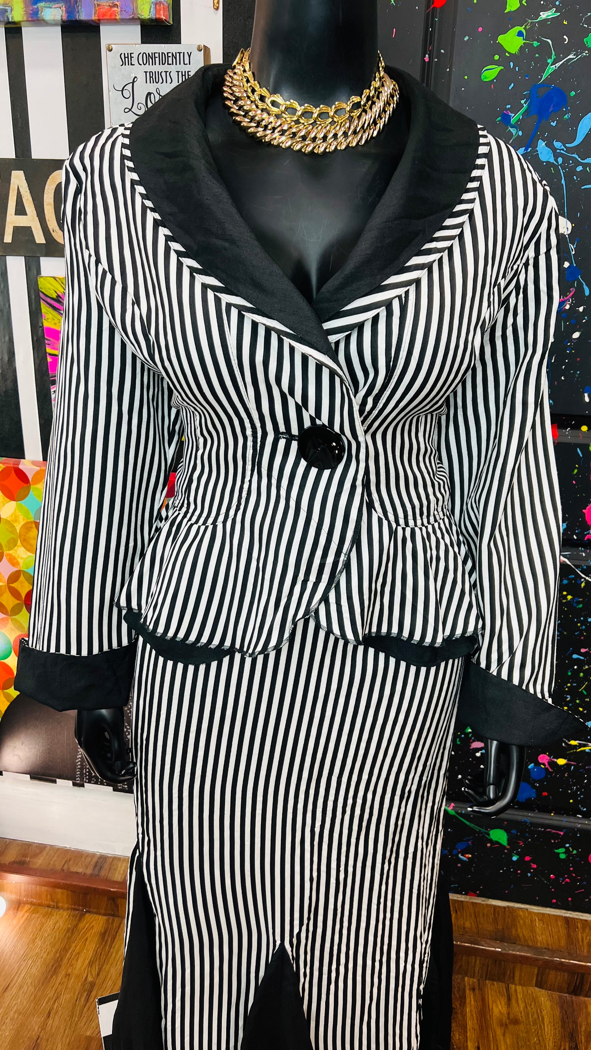 Vintage Black & White Peplum Striped Skirt Set (22)