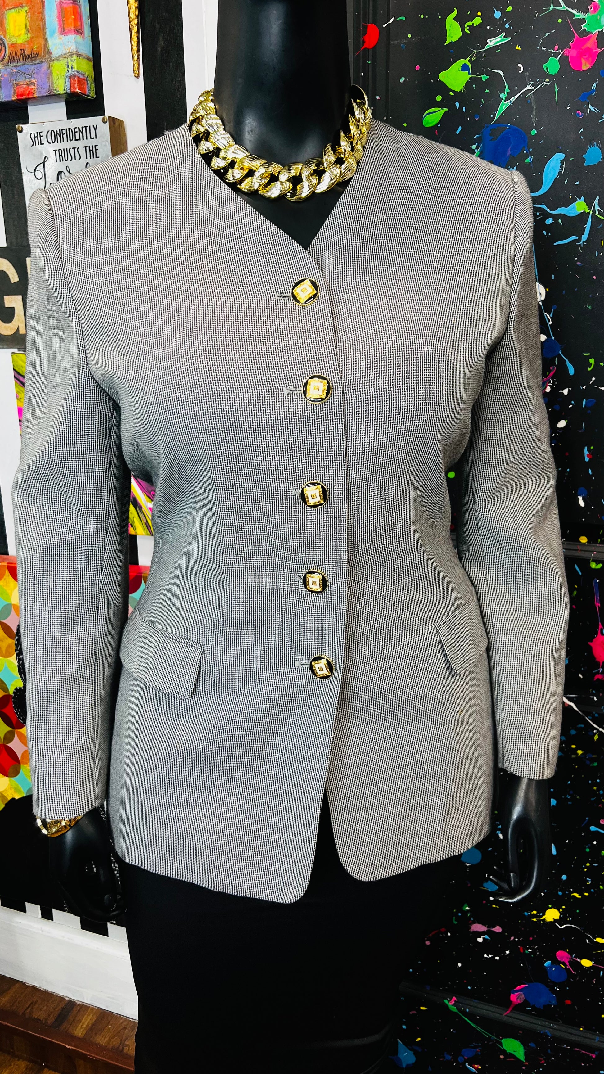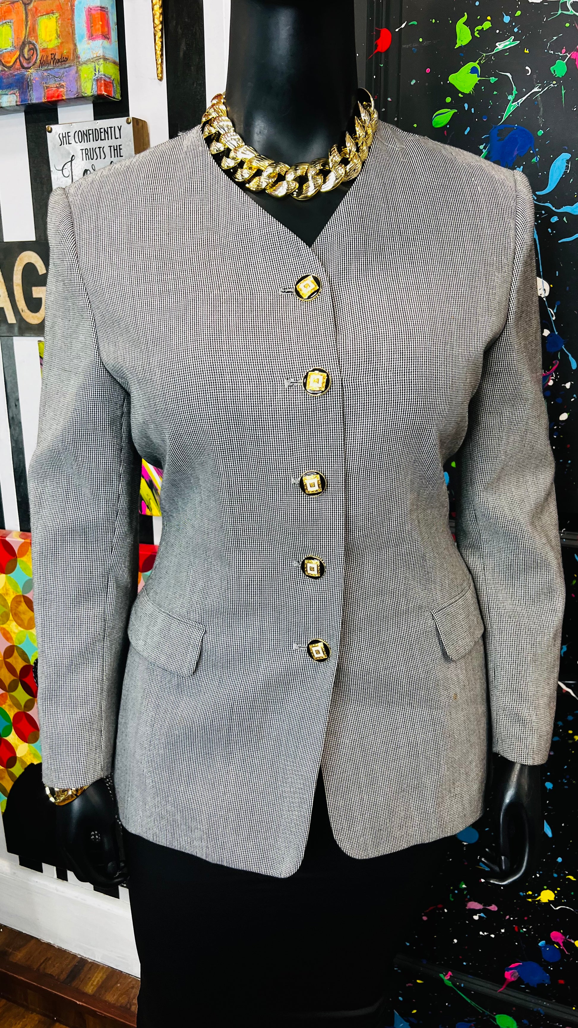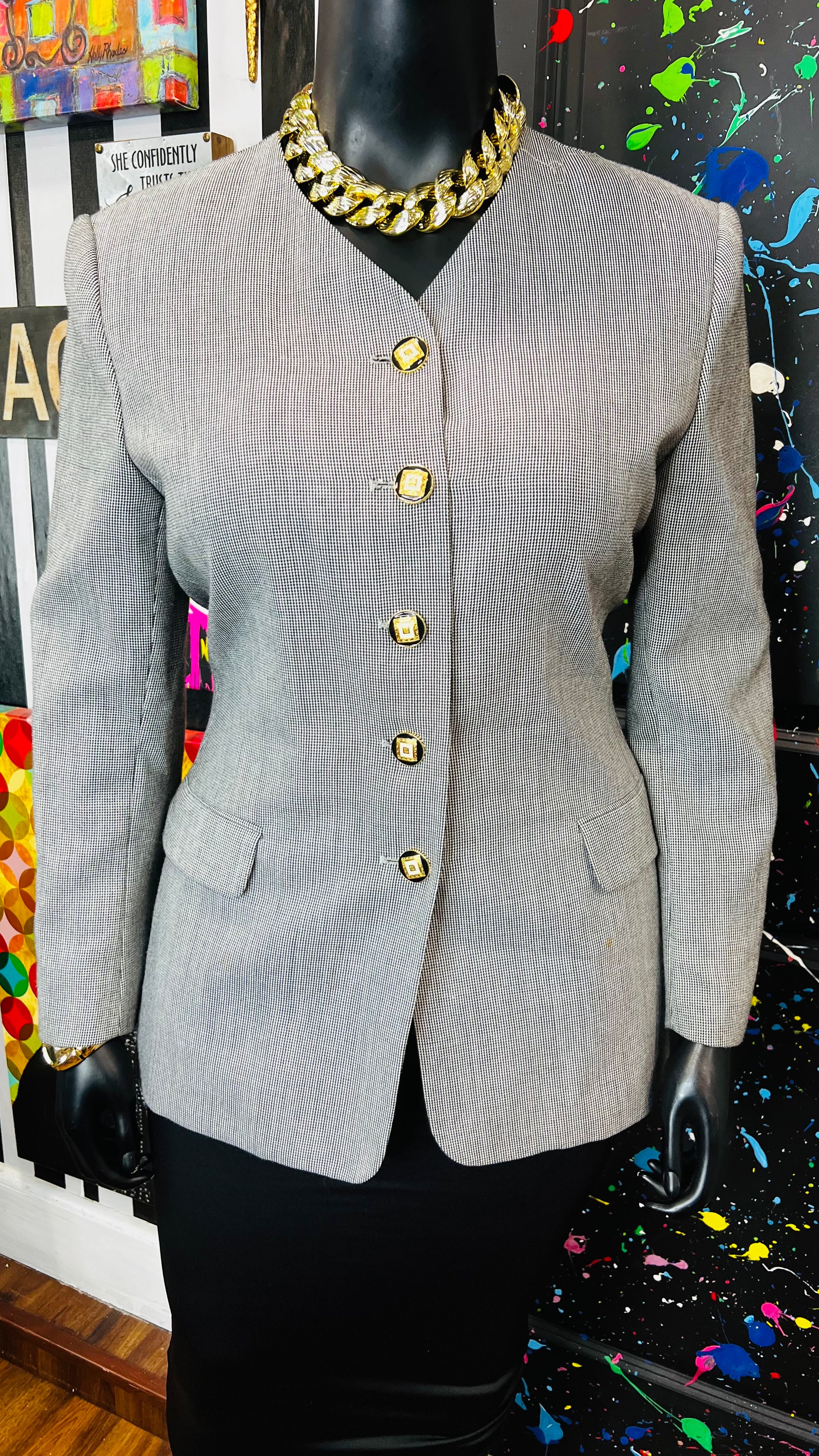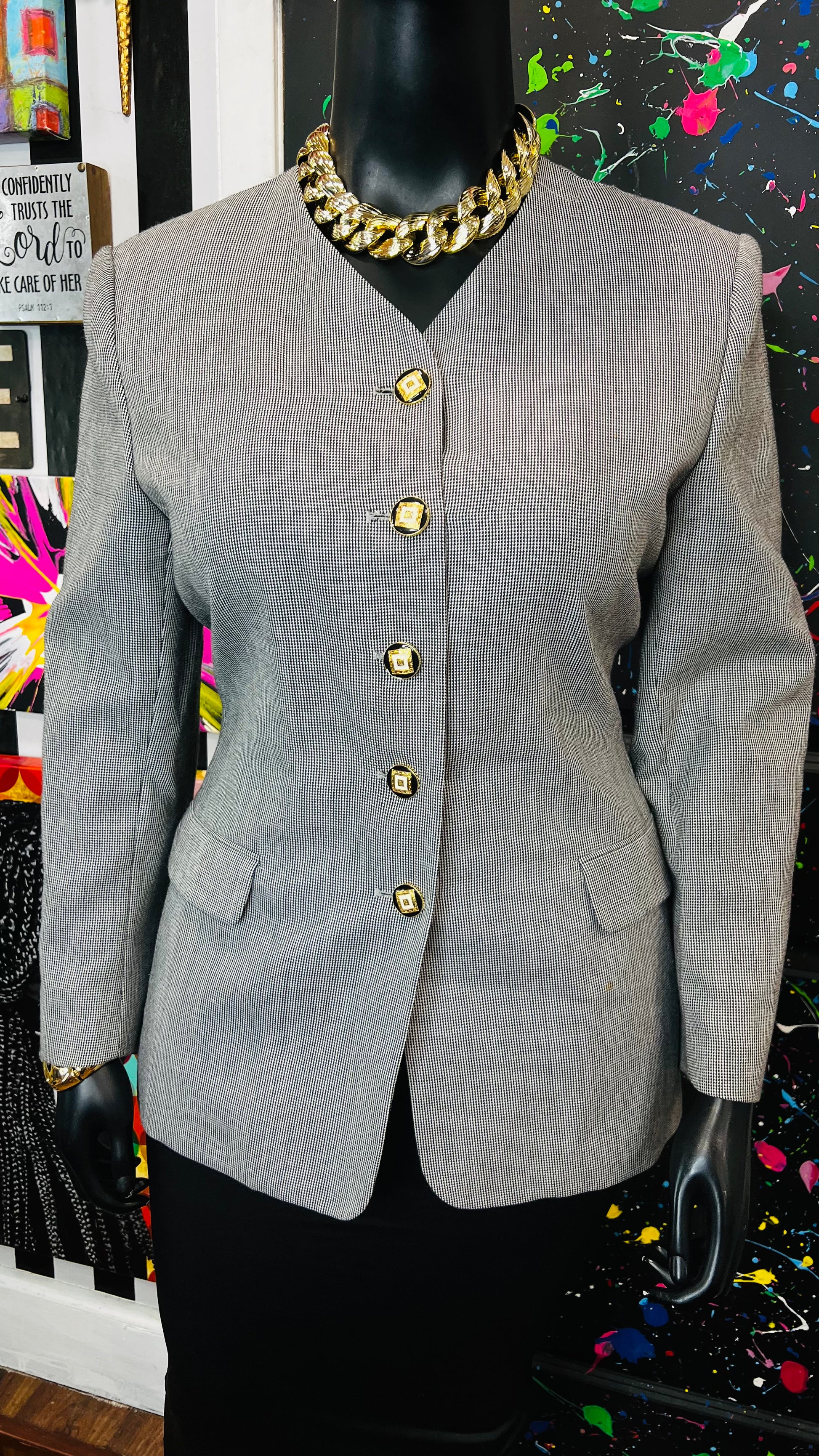 Vintage Black & White Pin Striped Blazer (16)