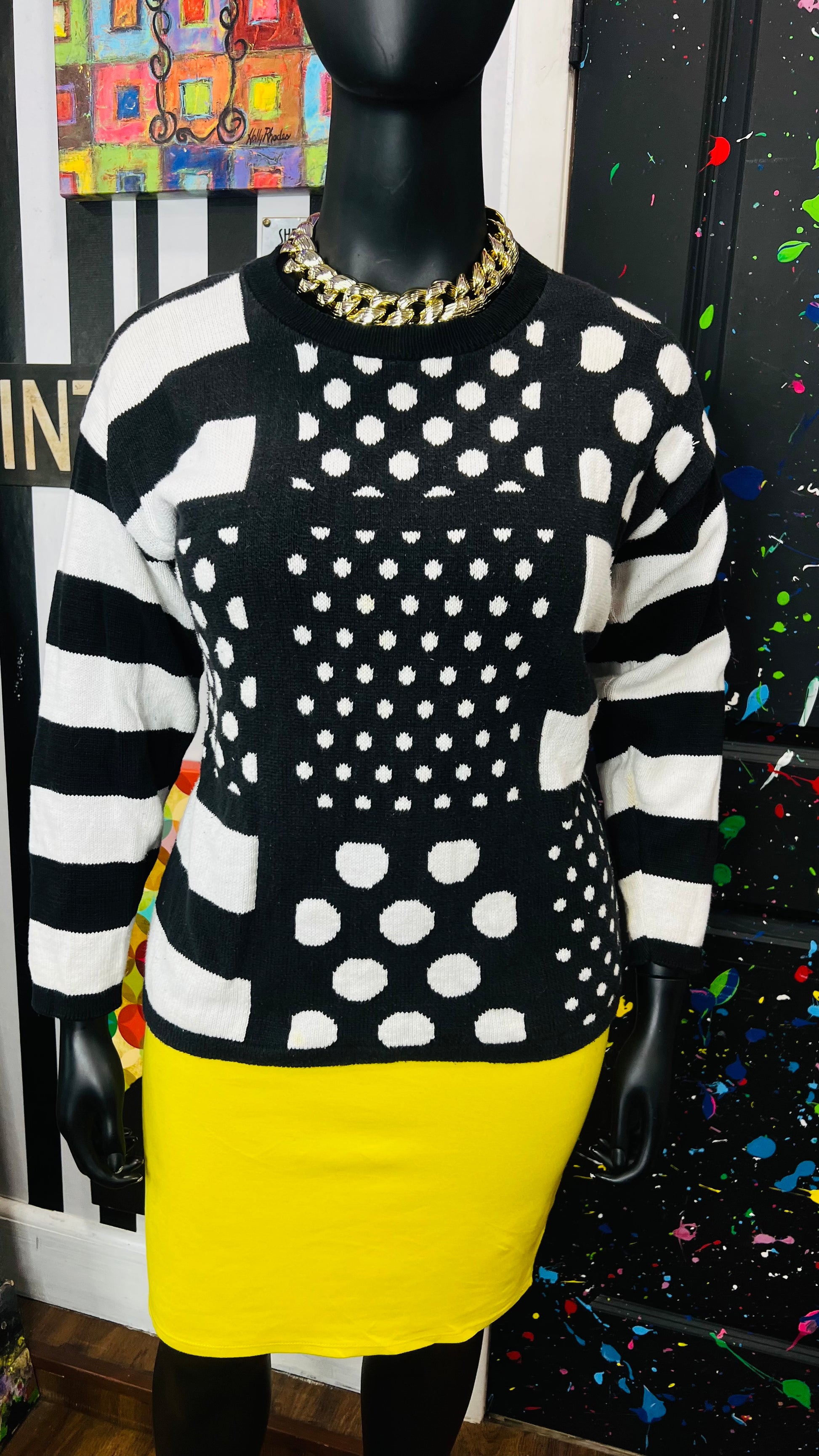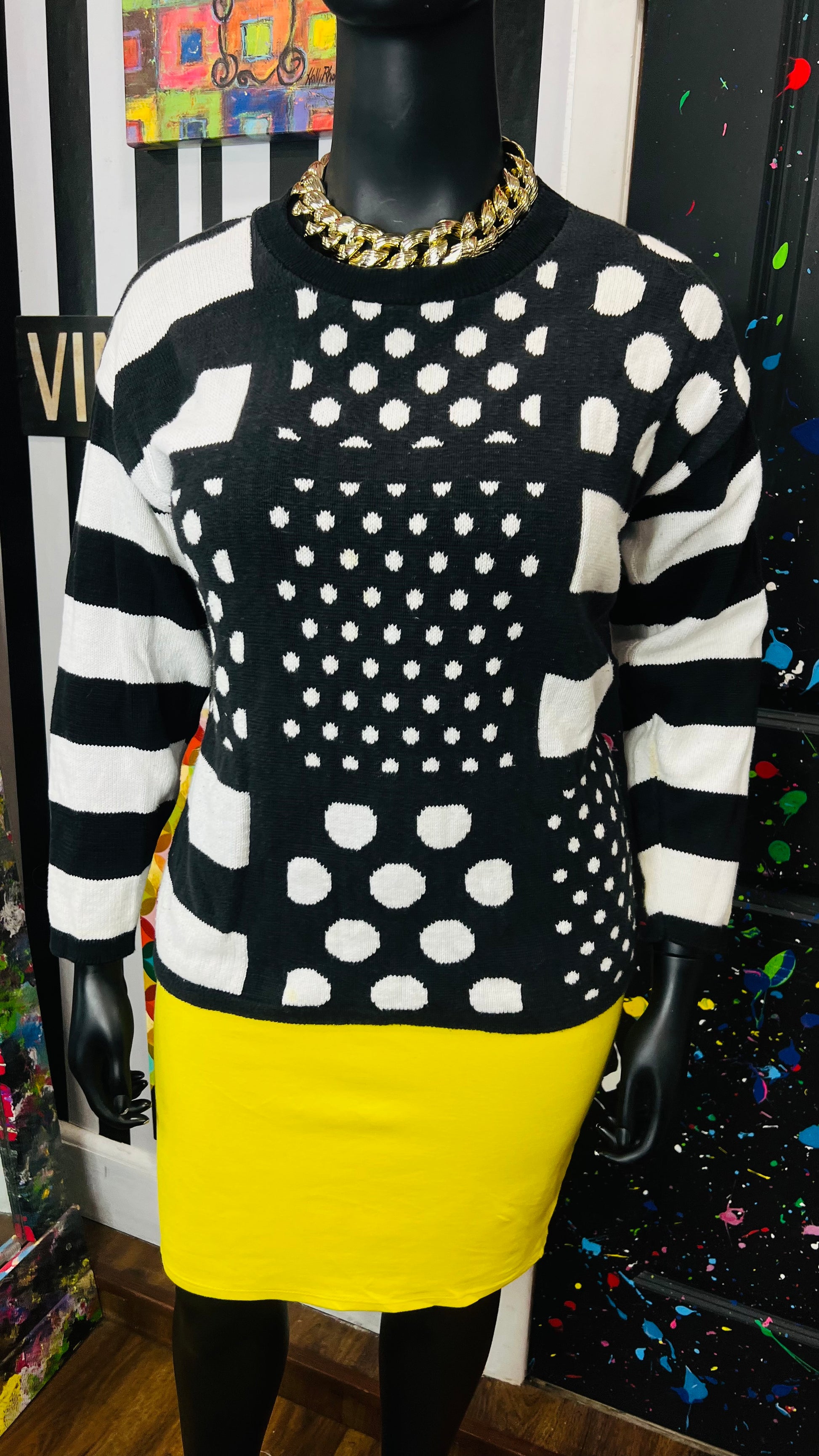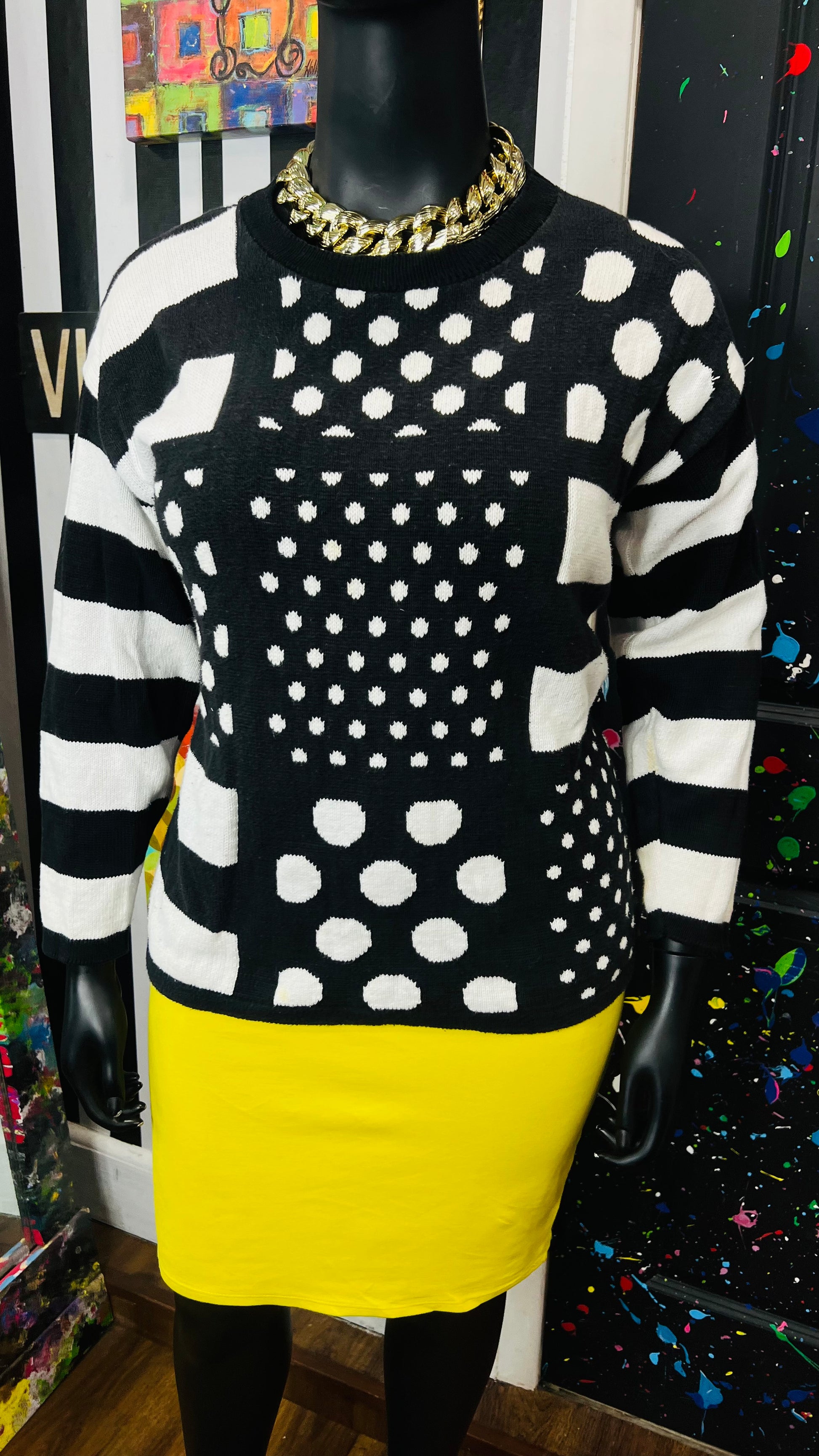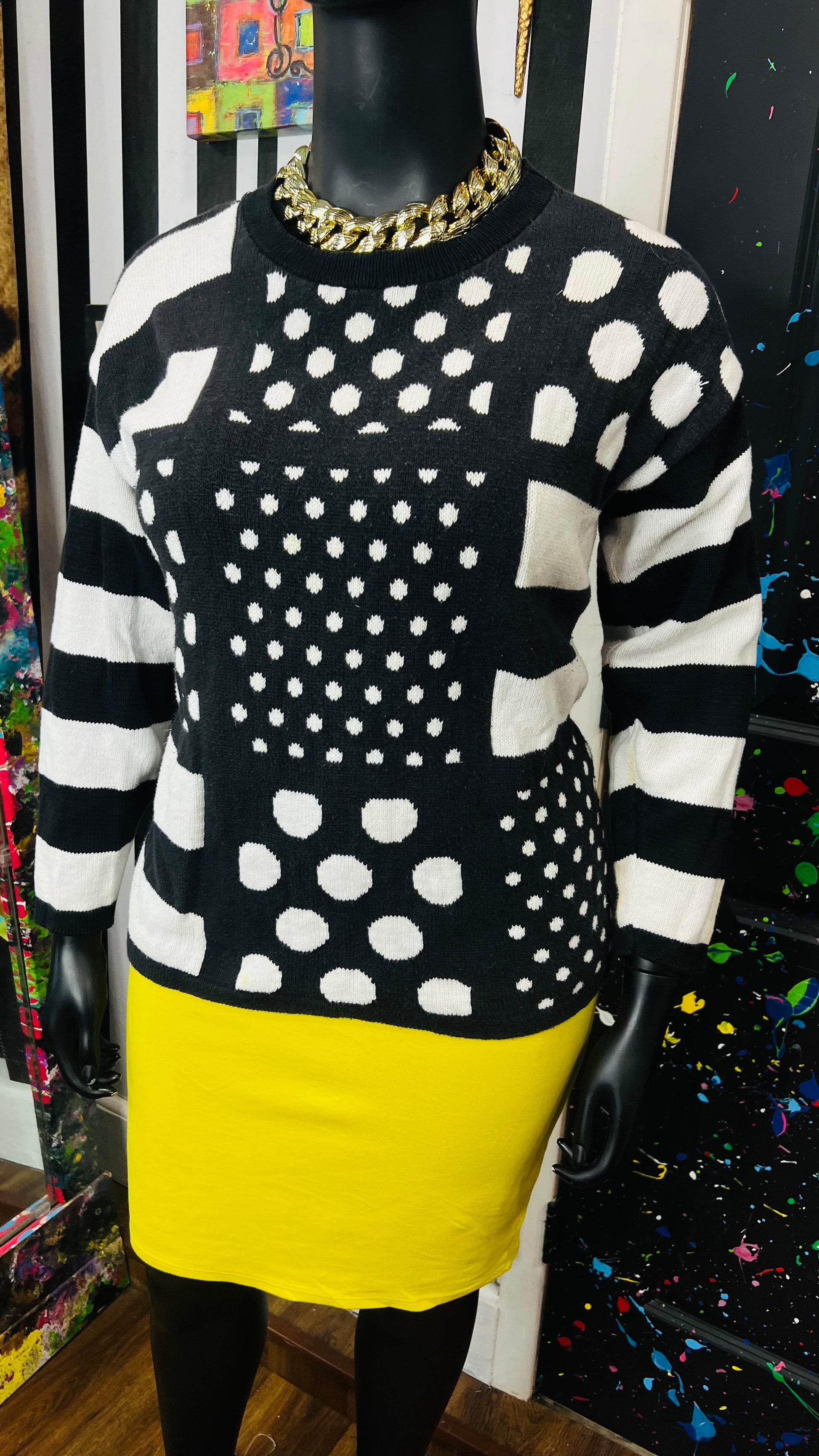 Vintage Black & White Polka Dot & Stripes Sweater (16)