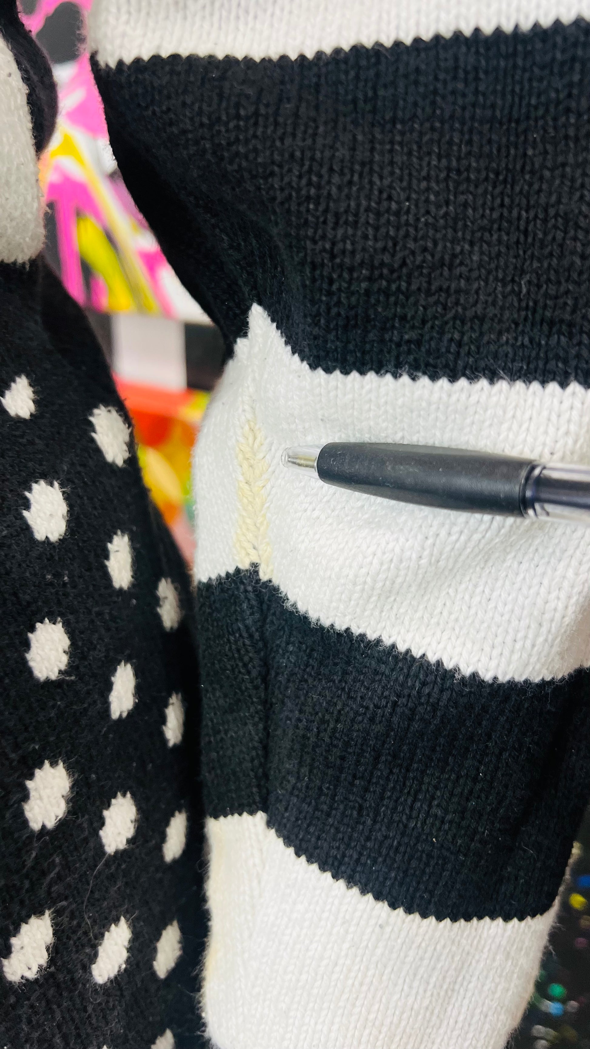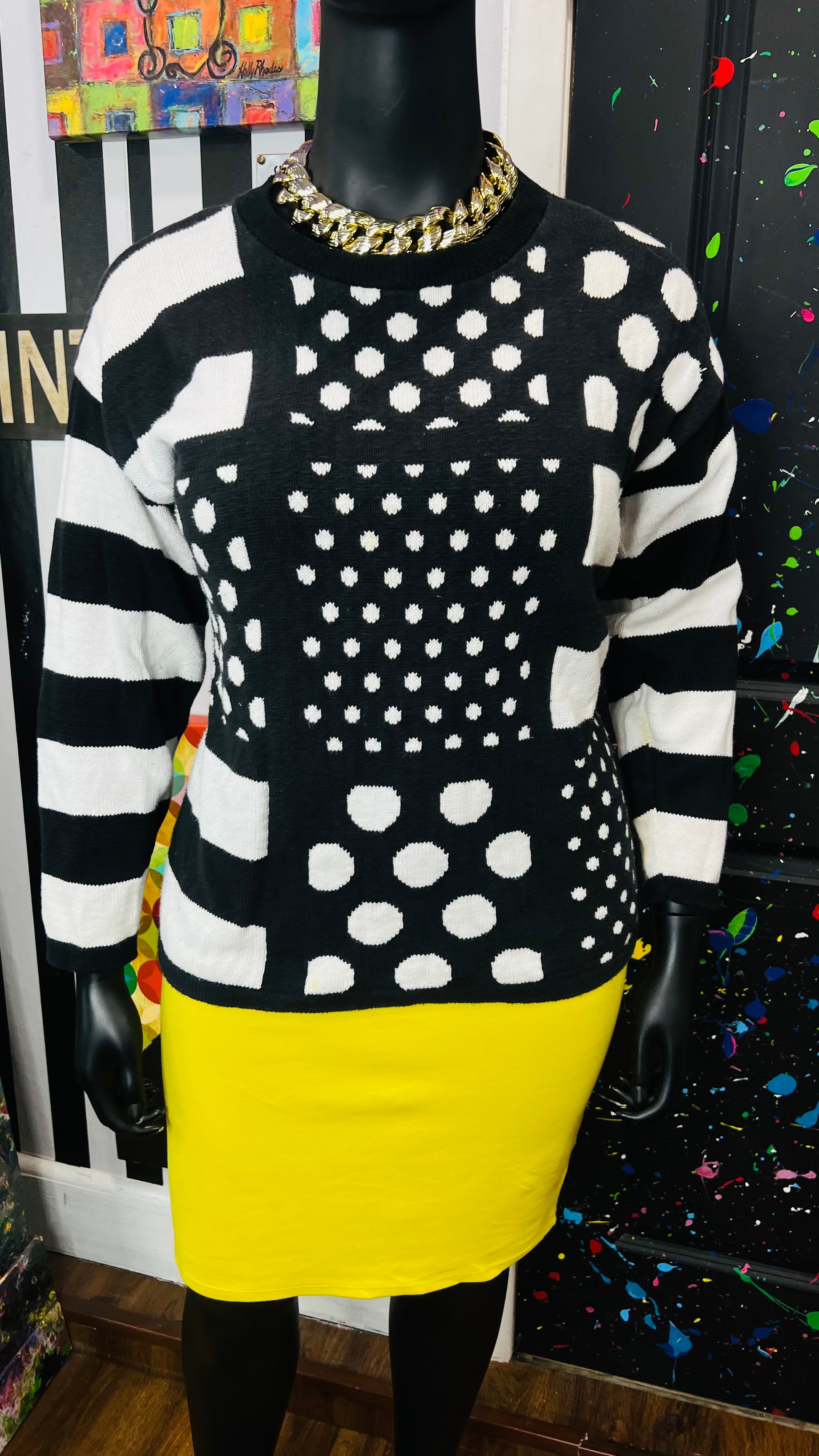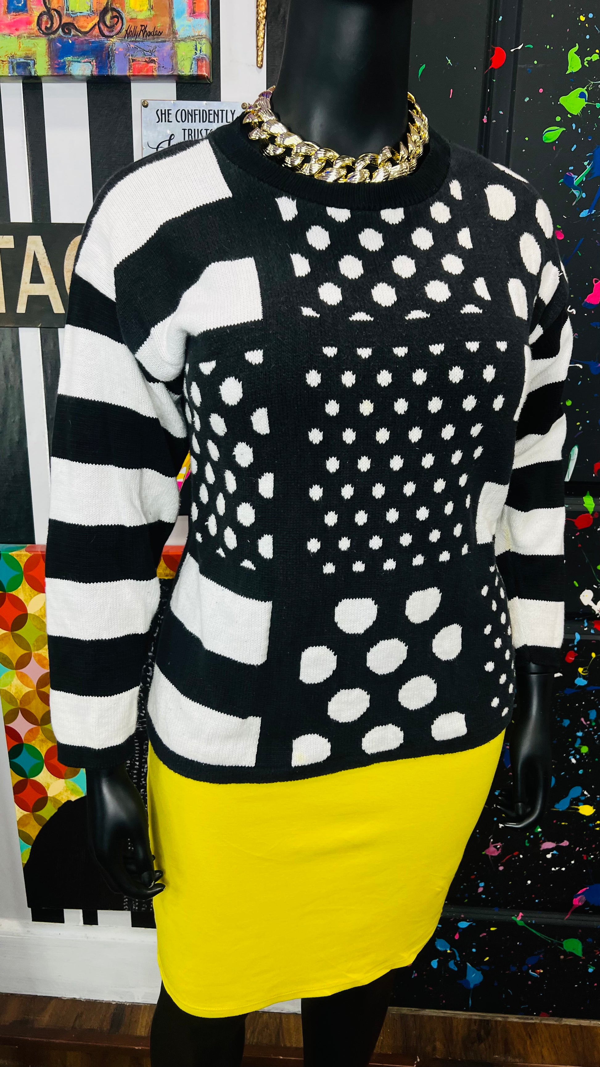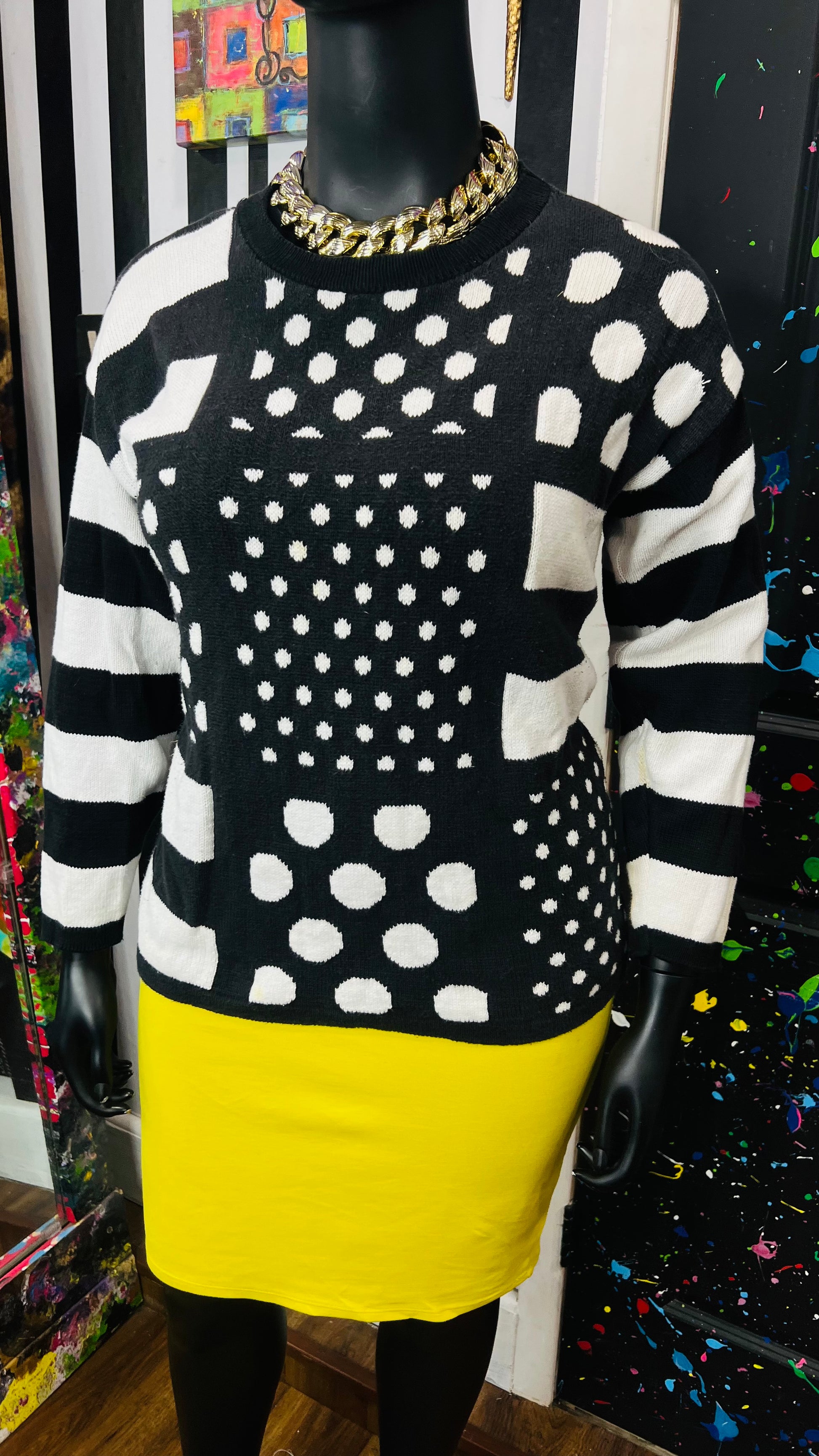 Vintage Black & White Polka Dot & Stripes Sweater (16)