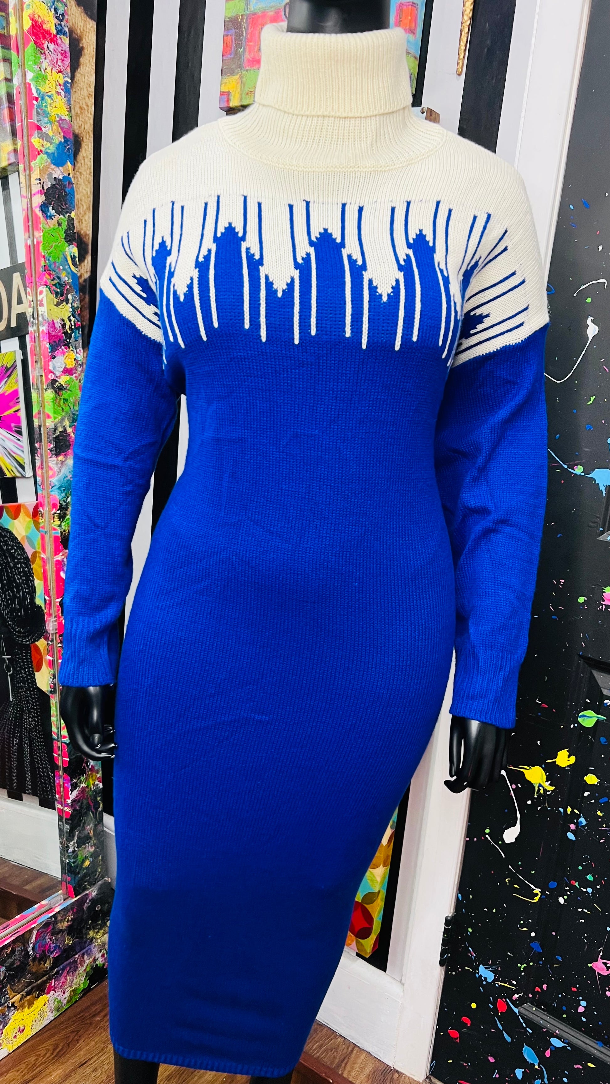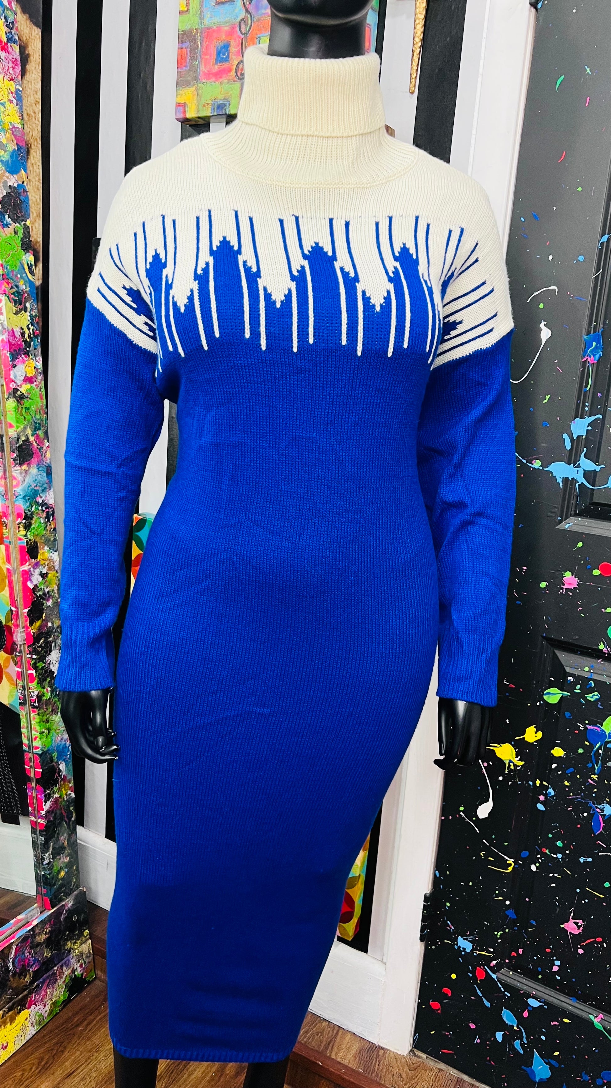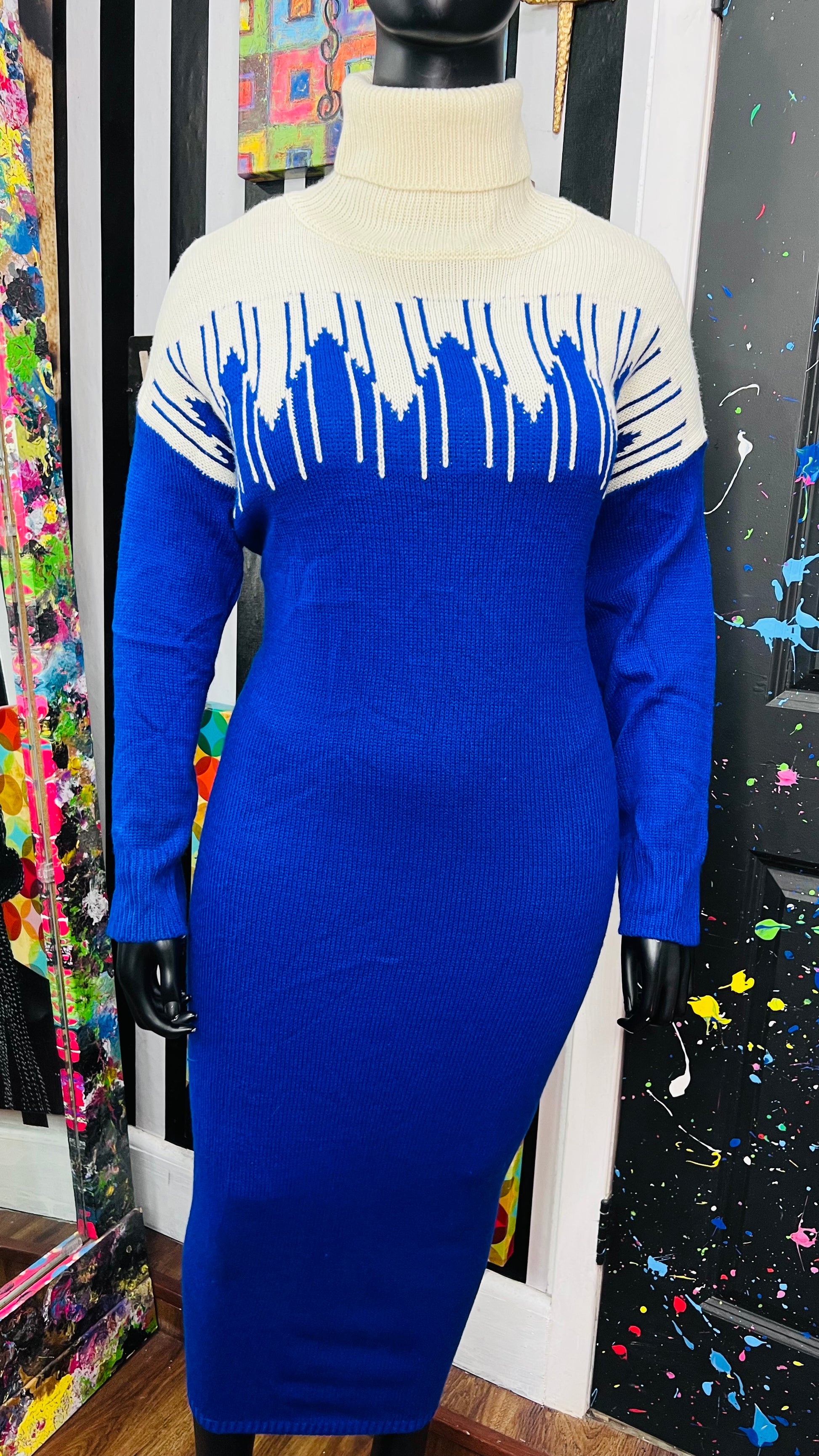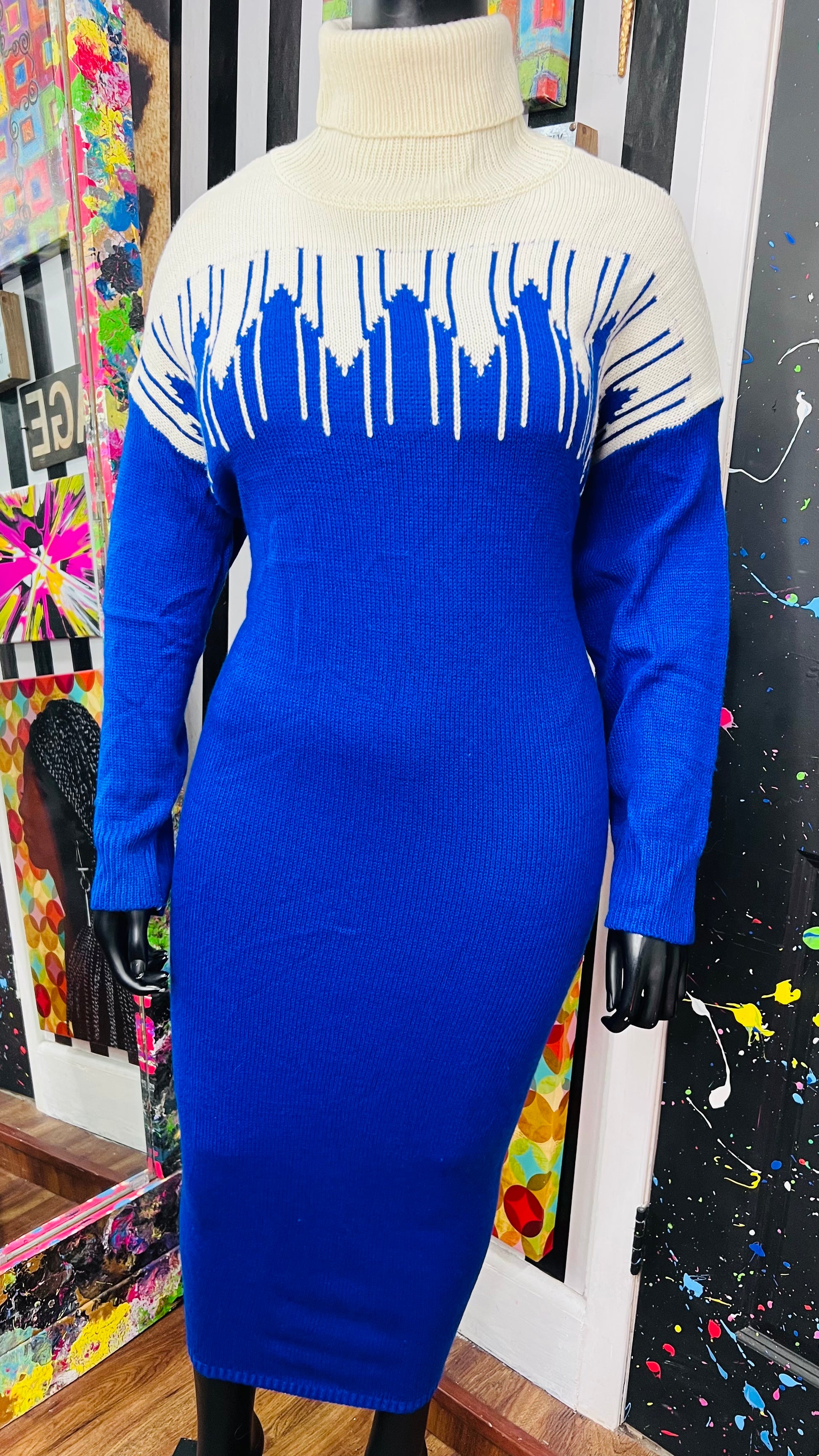 Vintage Blue & Cream Sweater Dress (24)