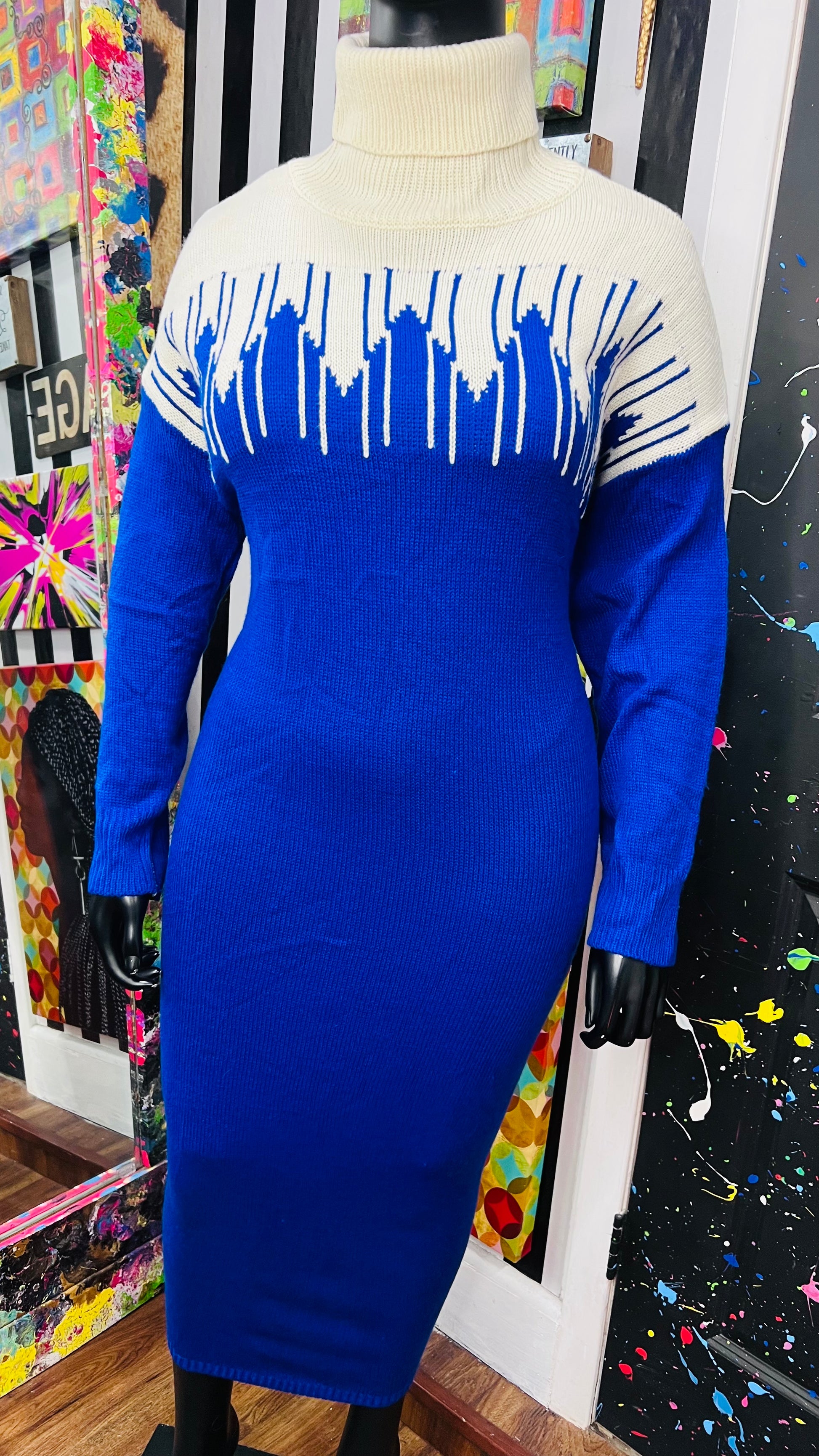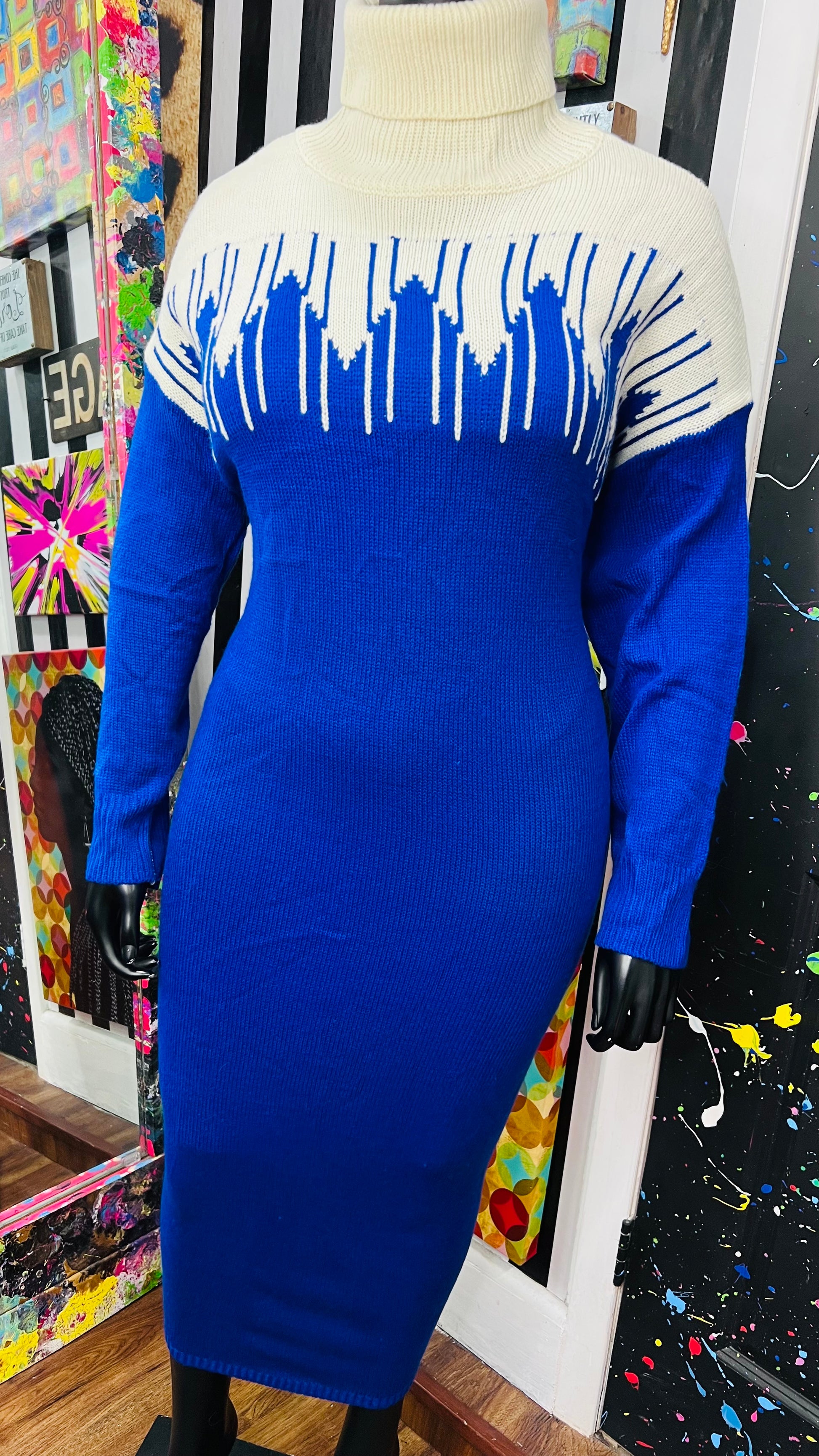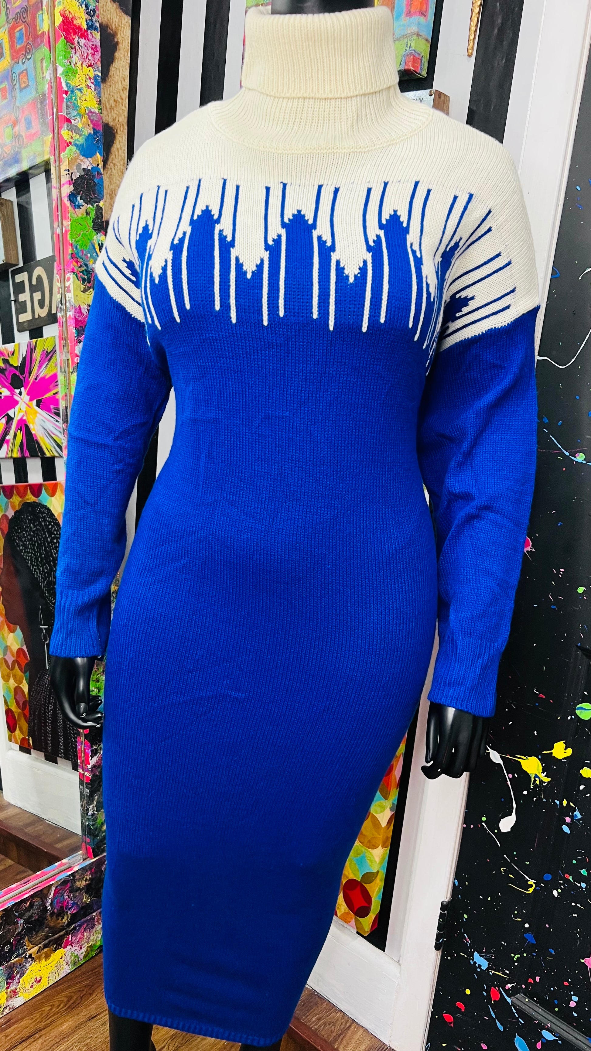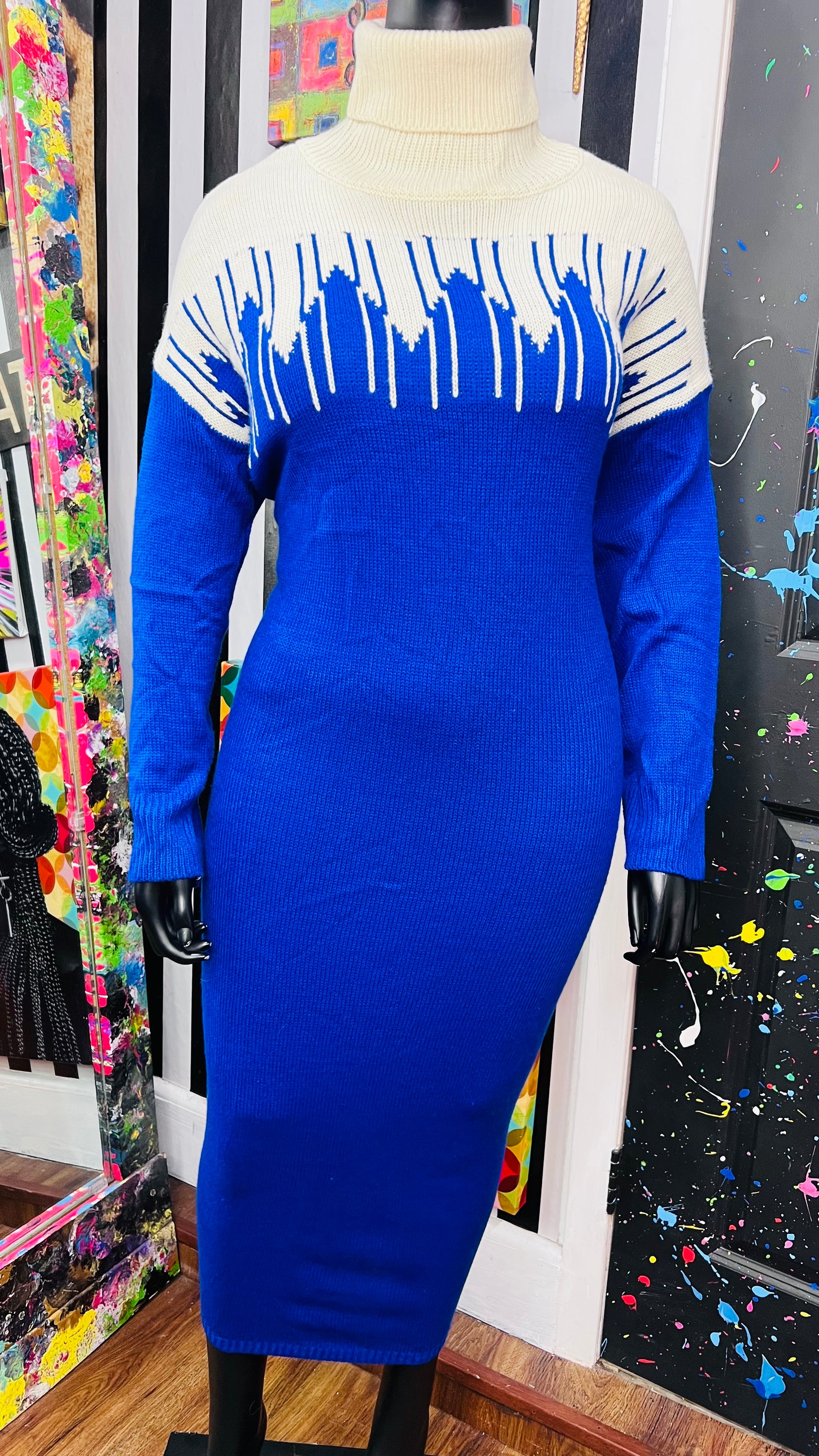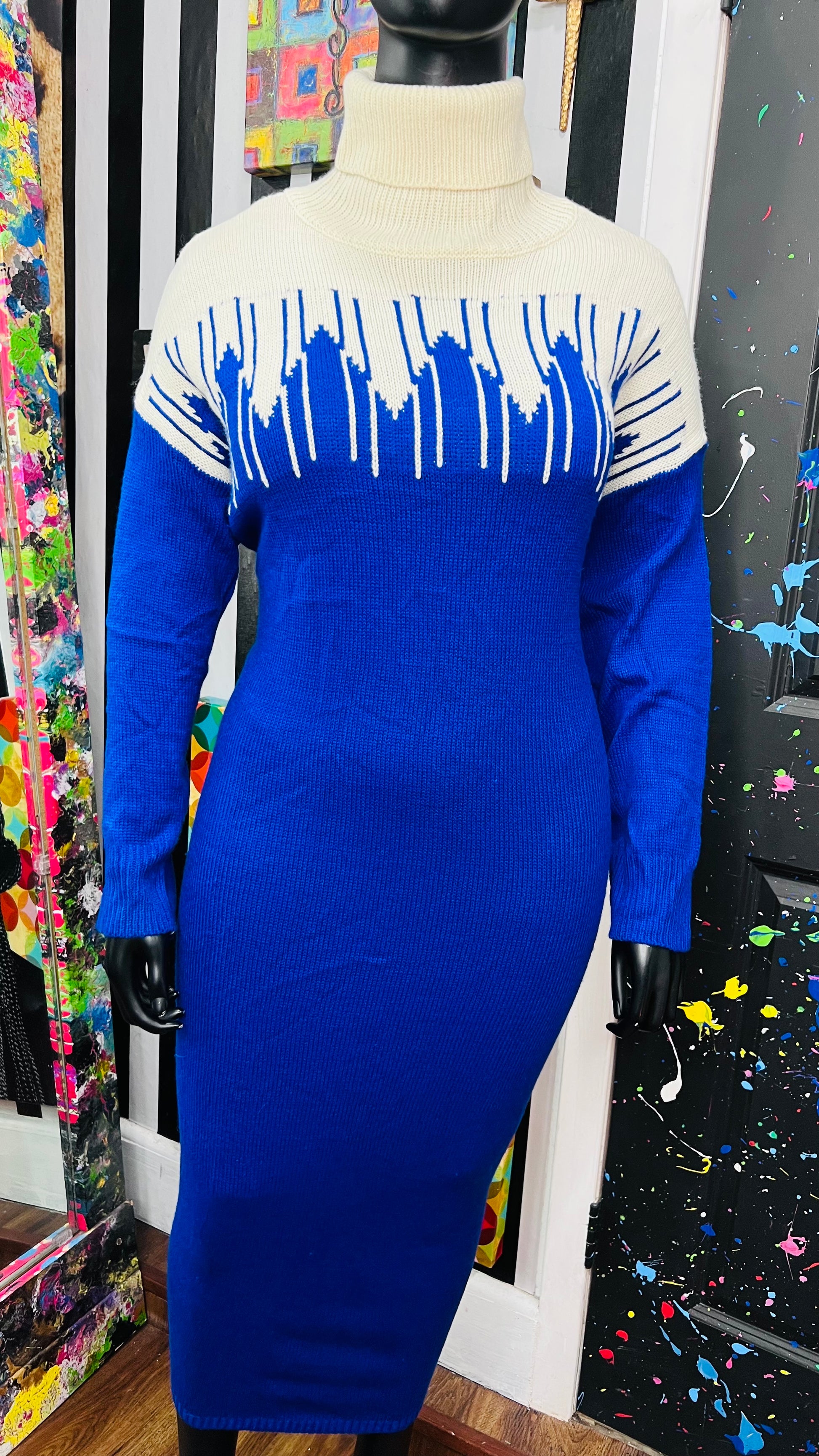 Vintage Blue & Cream Sweater Dress (24)