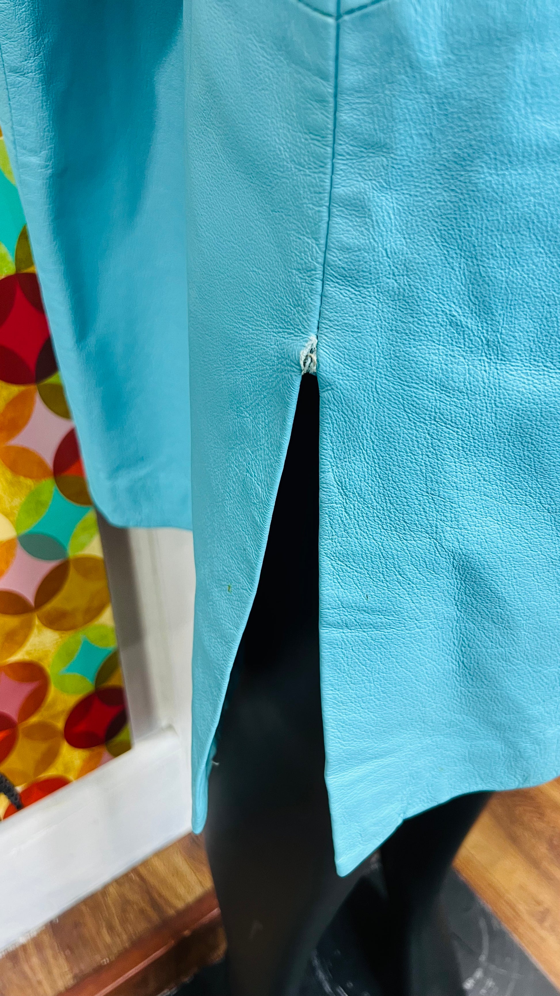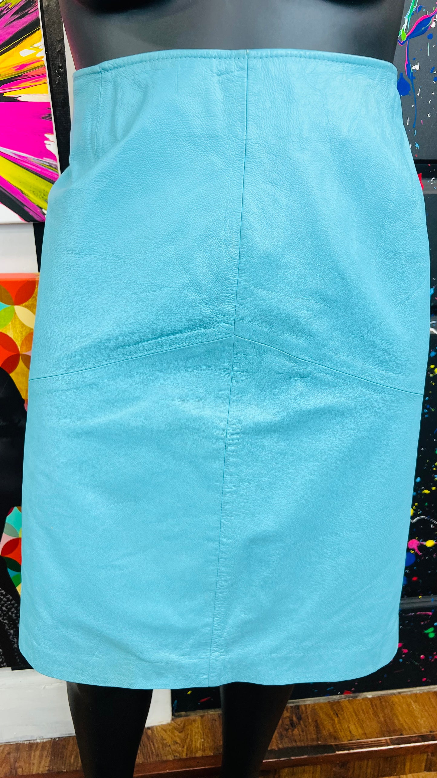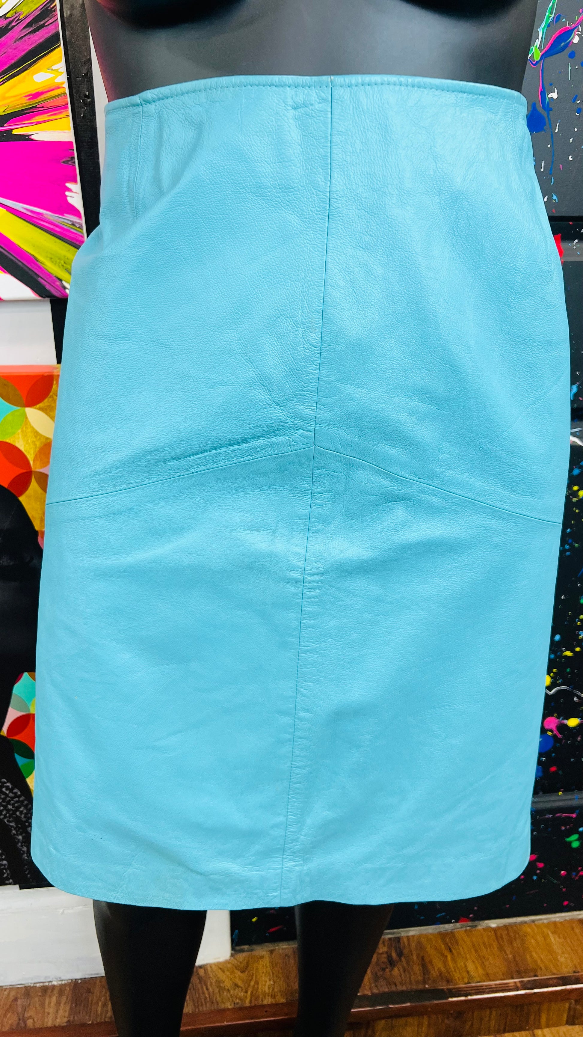 Vintage Blue Genuine Leather Skirt w/ Two Splits on Each Side (24W)