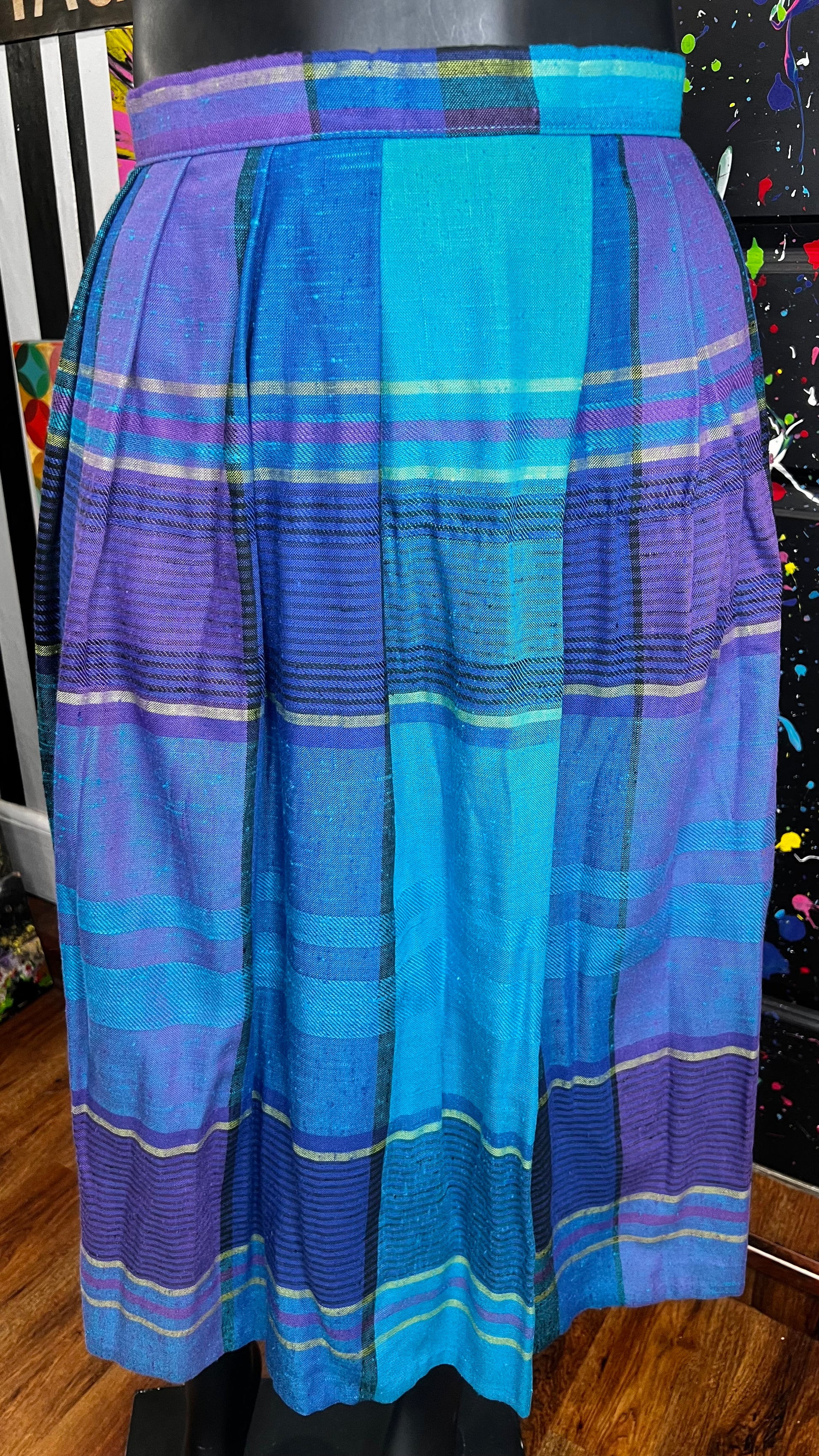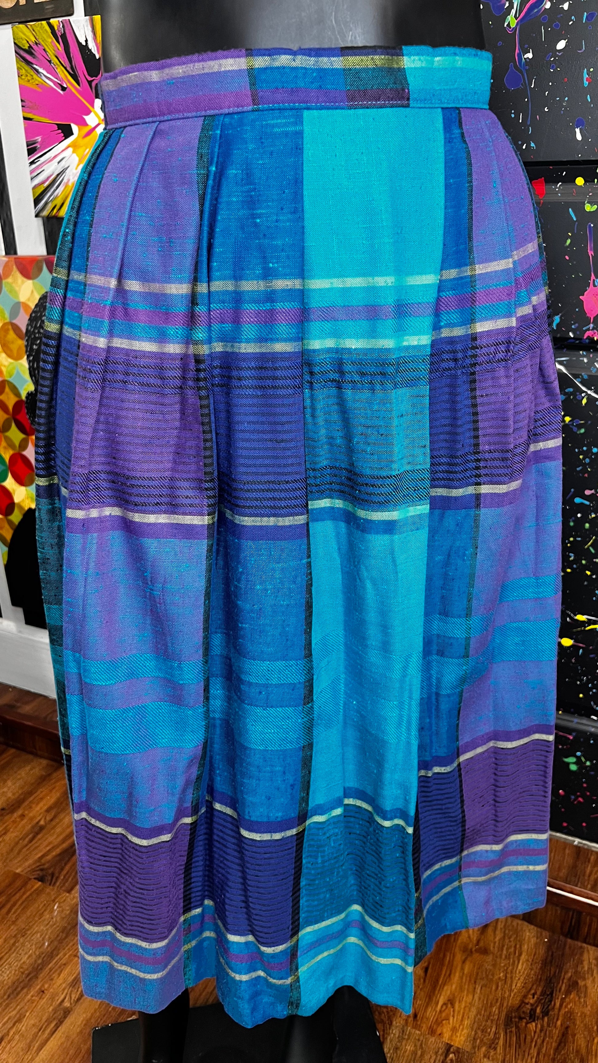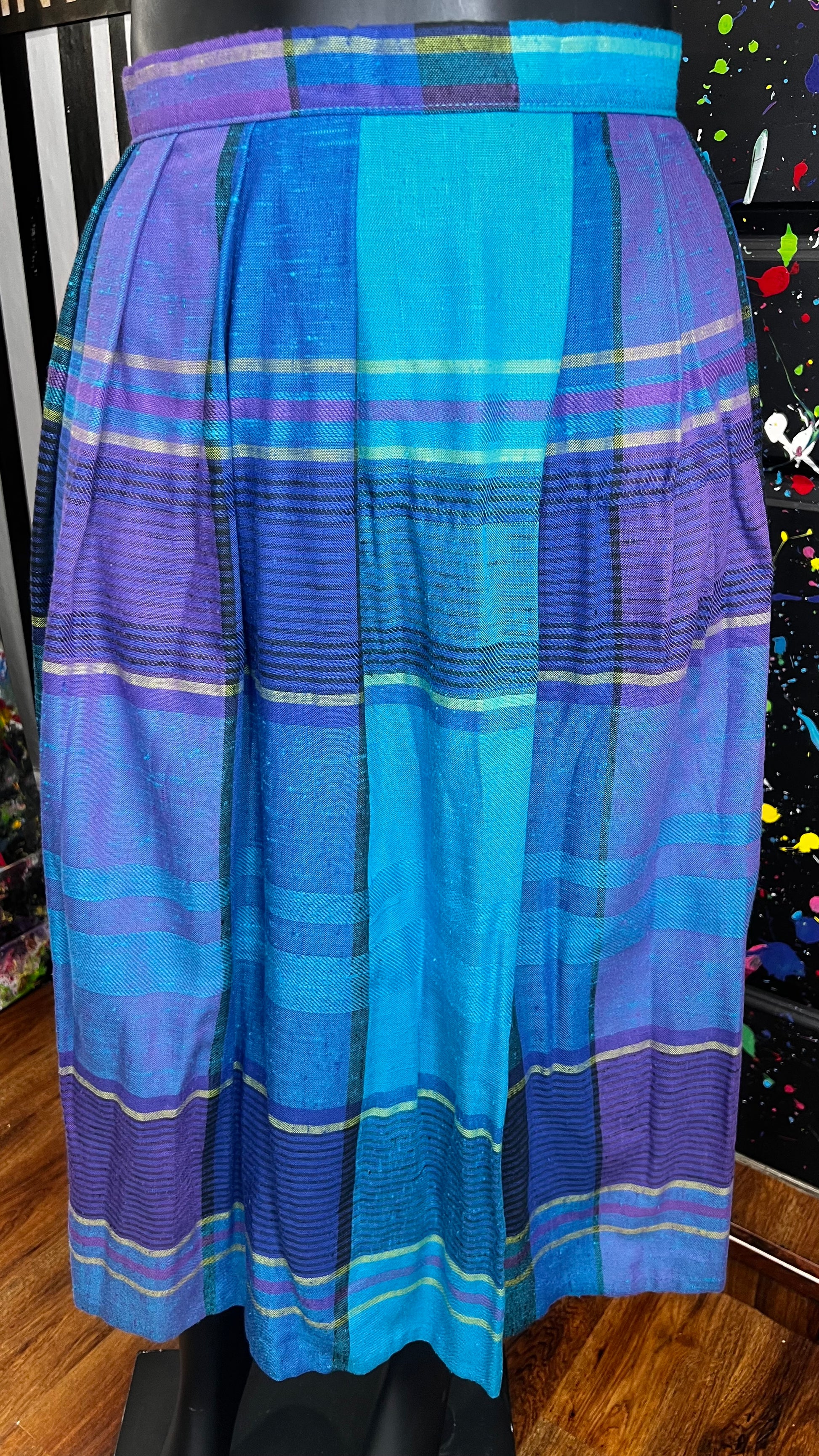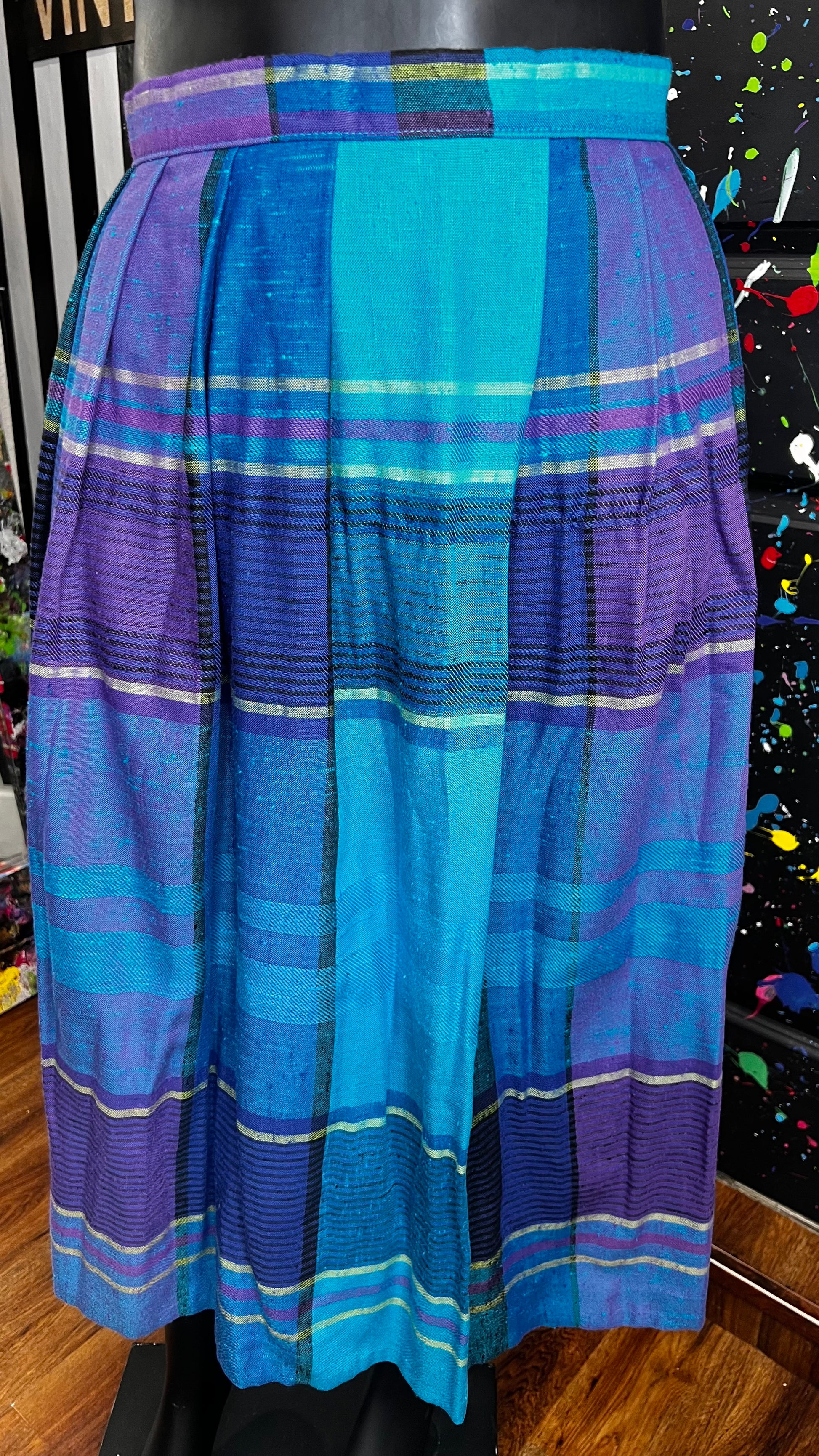 Vintage Blue & Purple Pleated Plaid Skirt - Dead Stock (16)