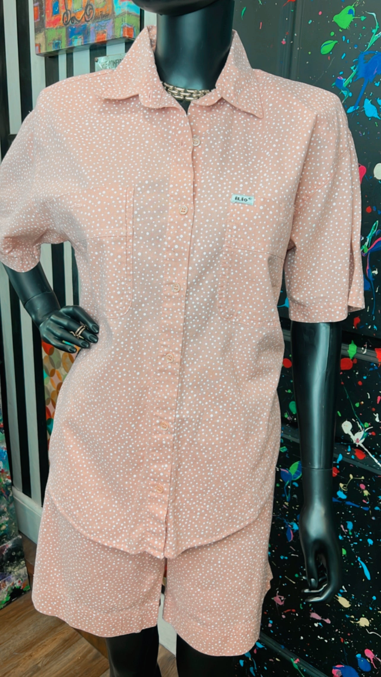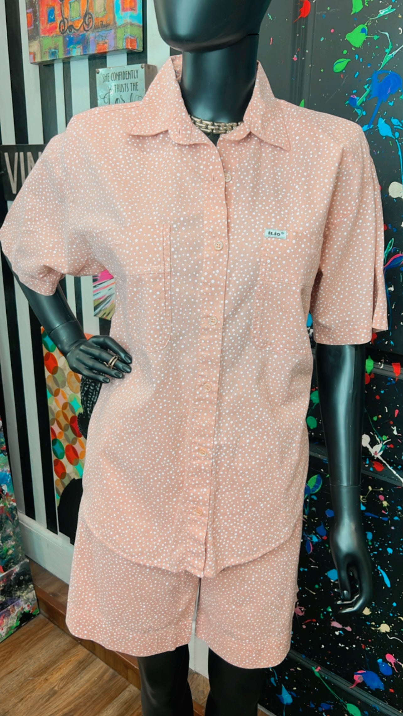 Vintage Blush Pink Polka Dot & White Shorts Set (12)