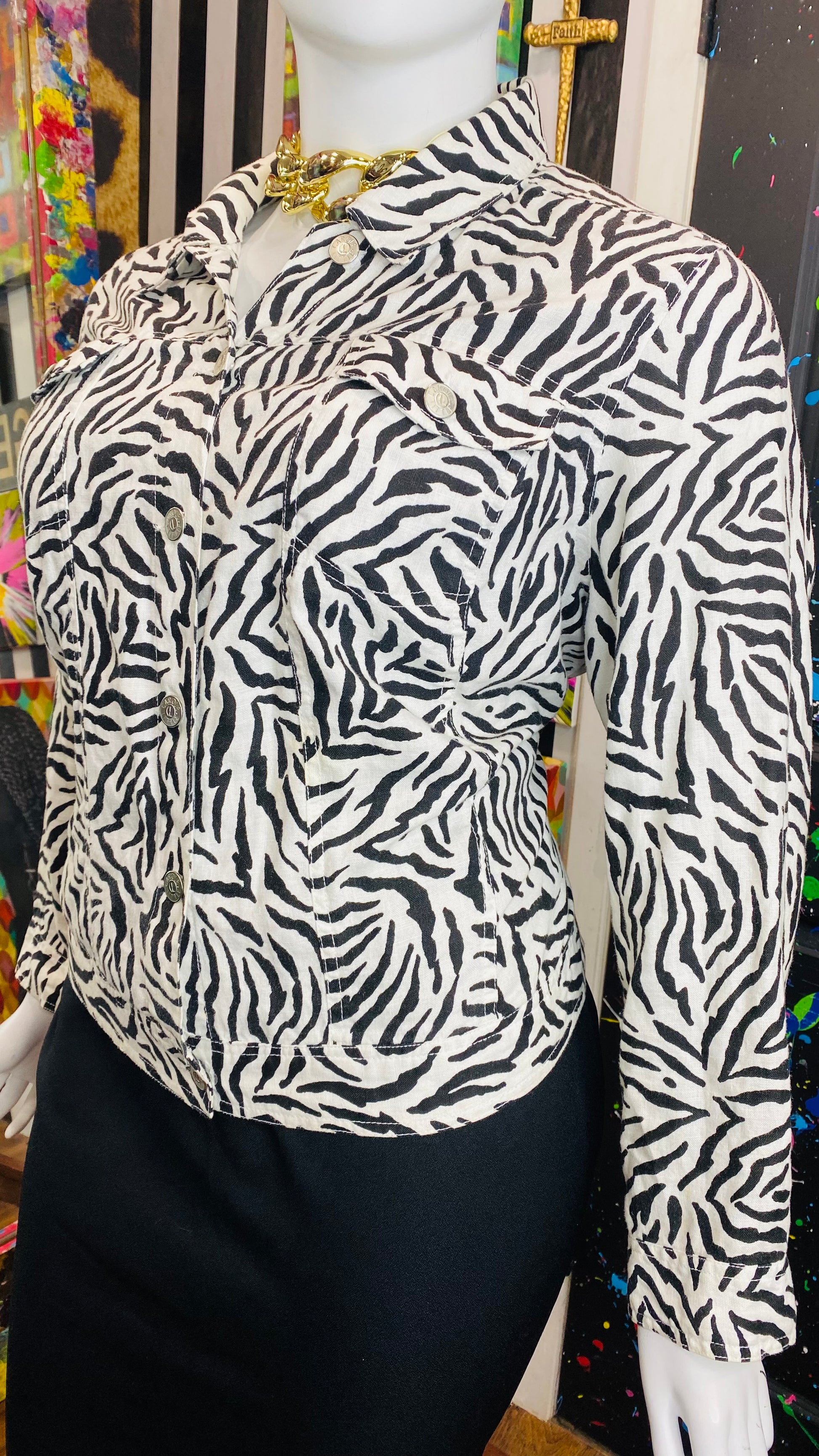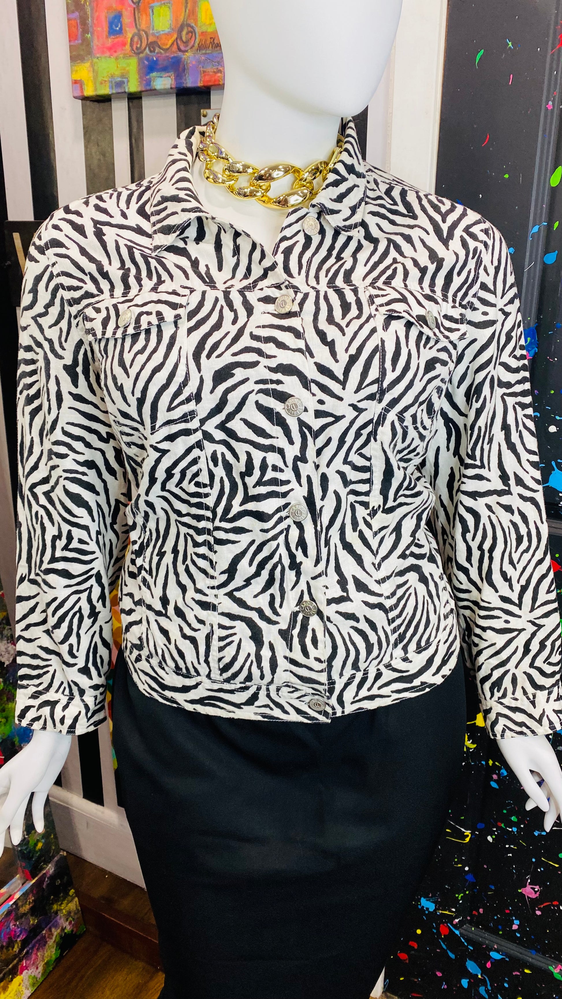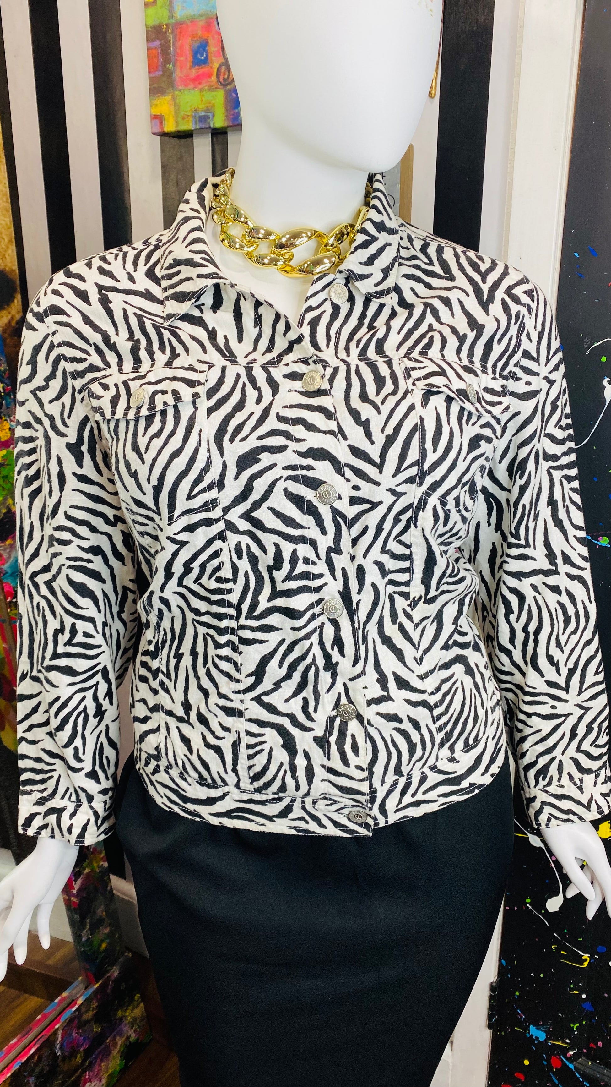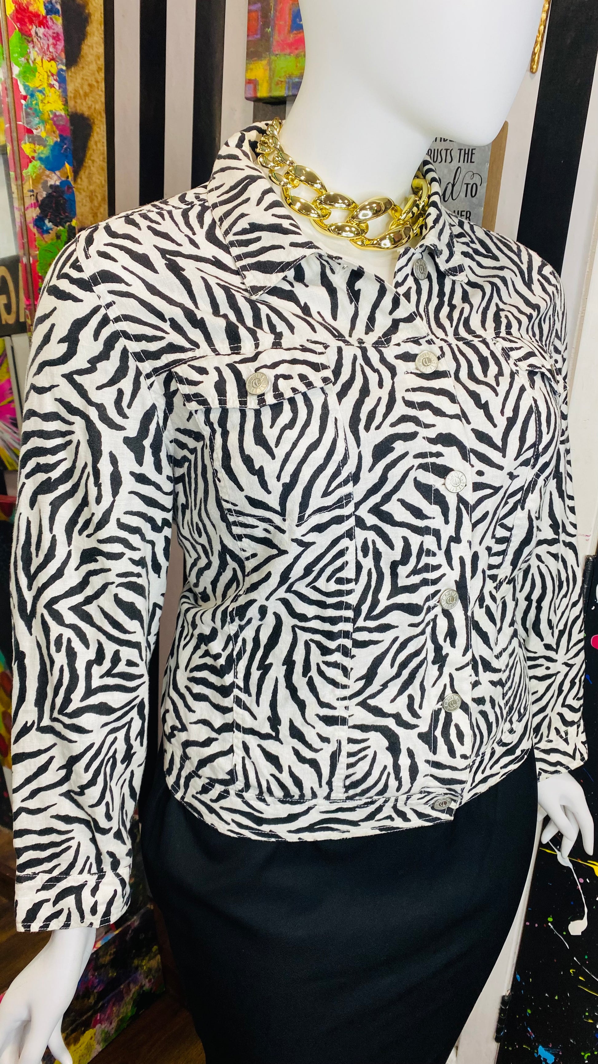 Vintage Carole Little Denim Zebra Print Jacket (24)